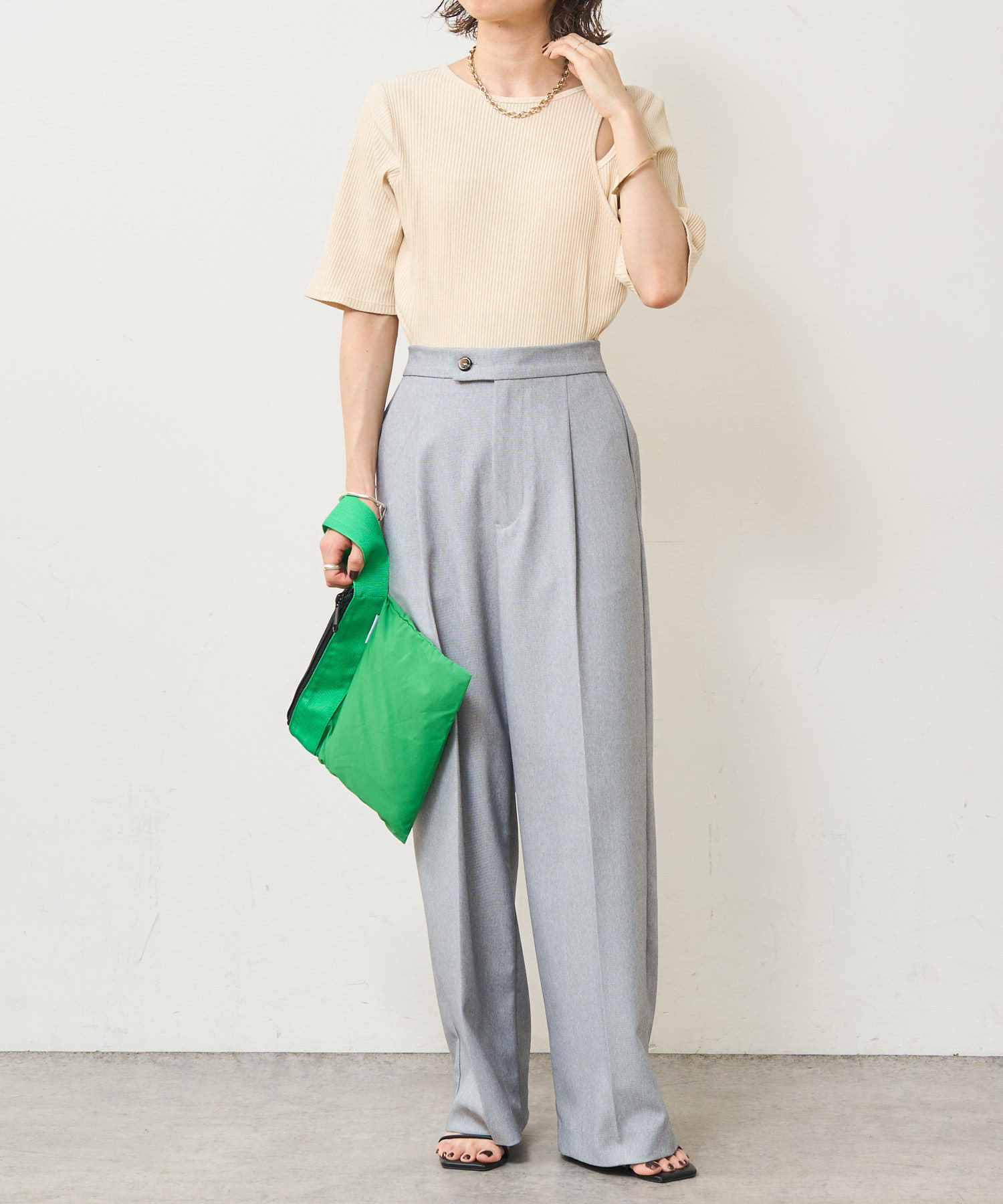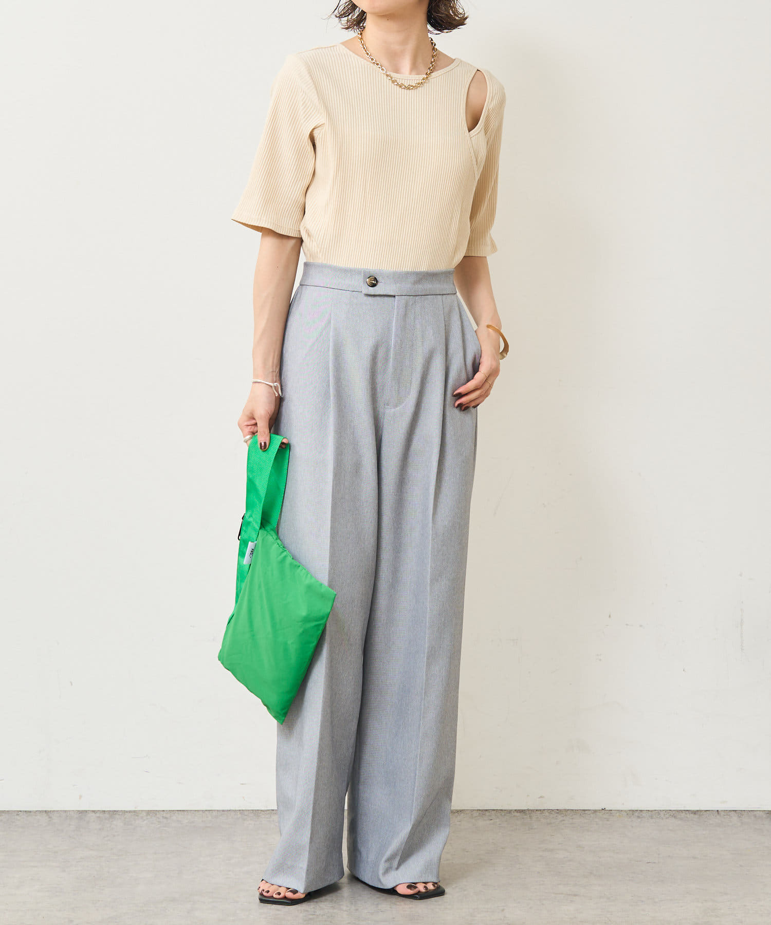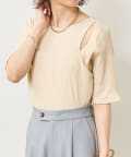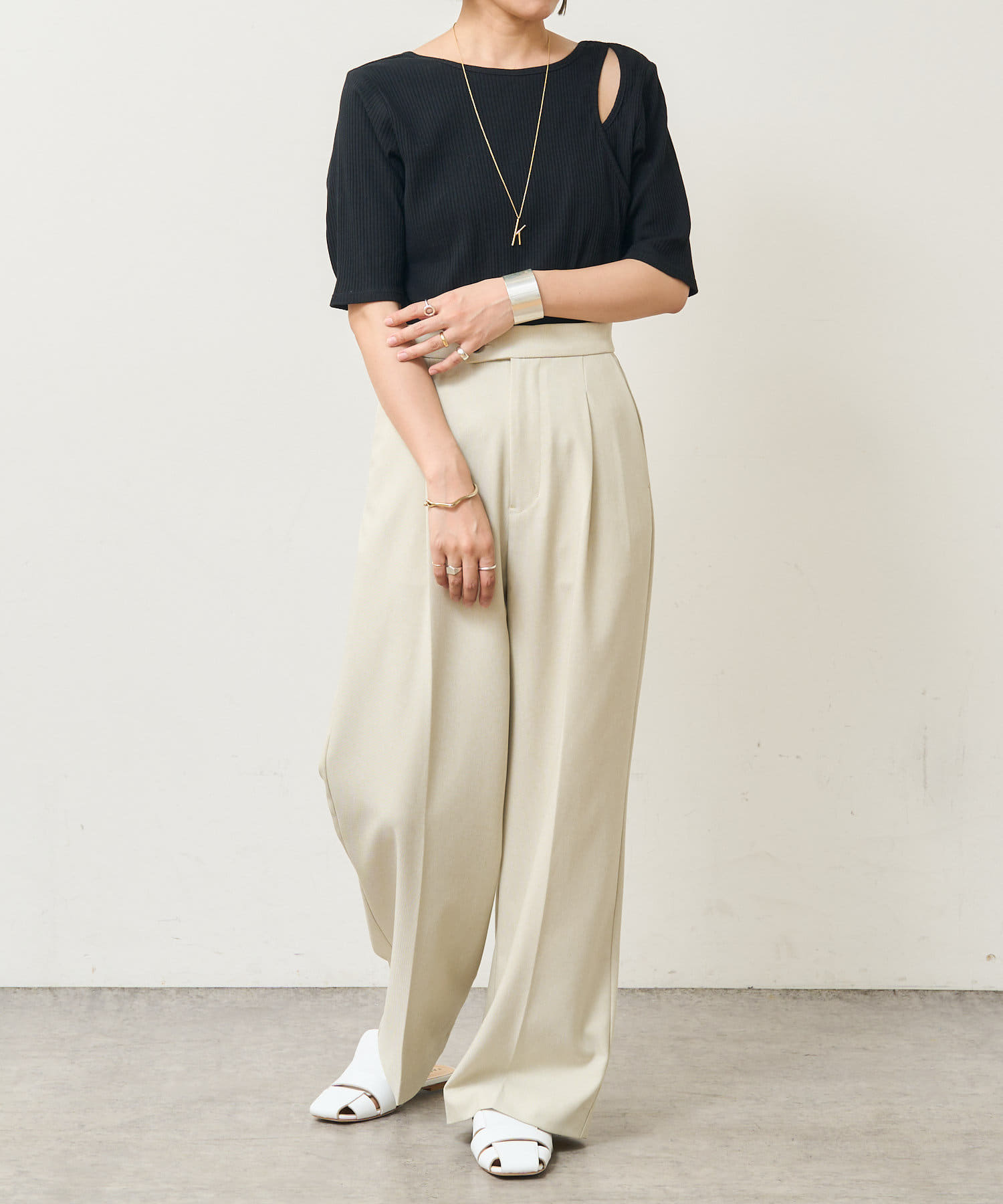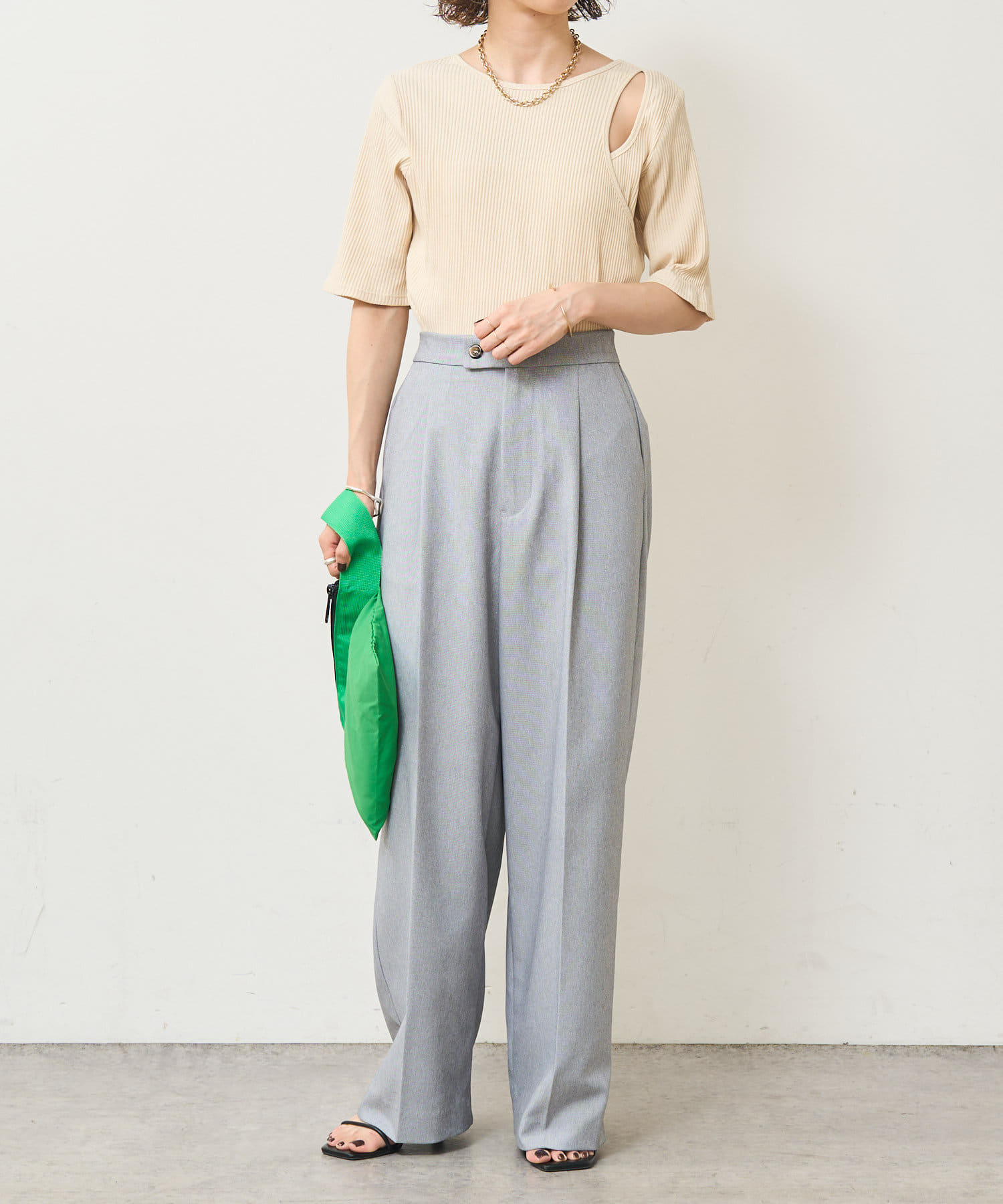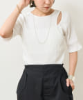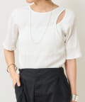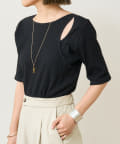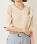 ・アシンメトリーのデザインで、アーム部分のスリットがさりげない肌見せになりコーディネートの抜け感になります