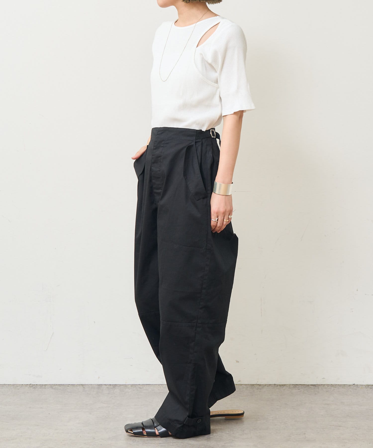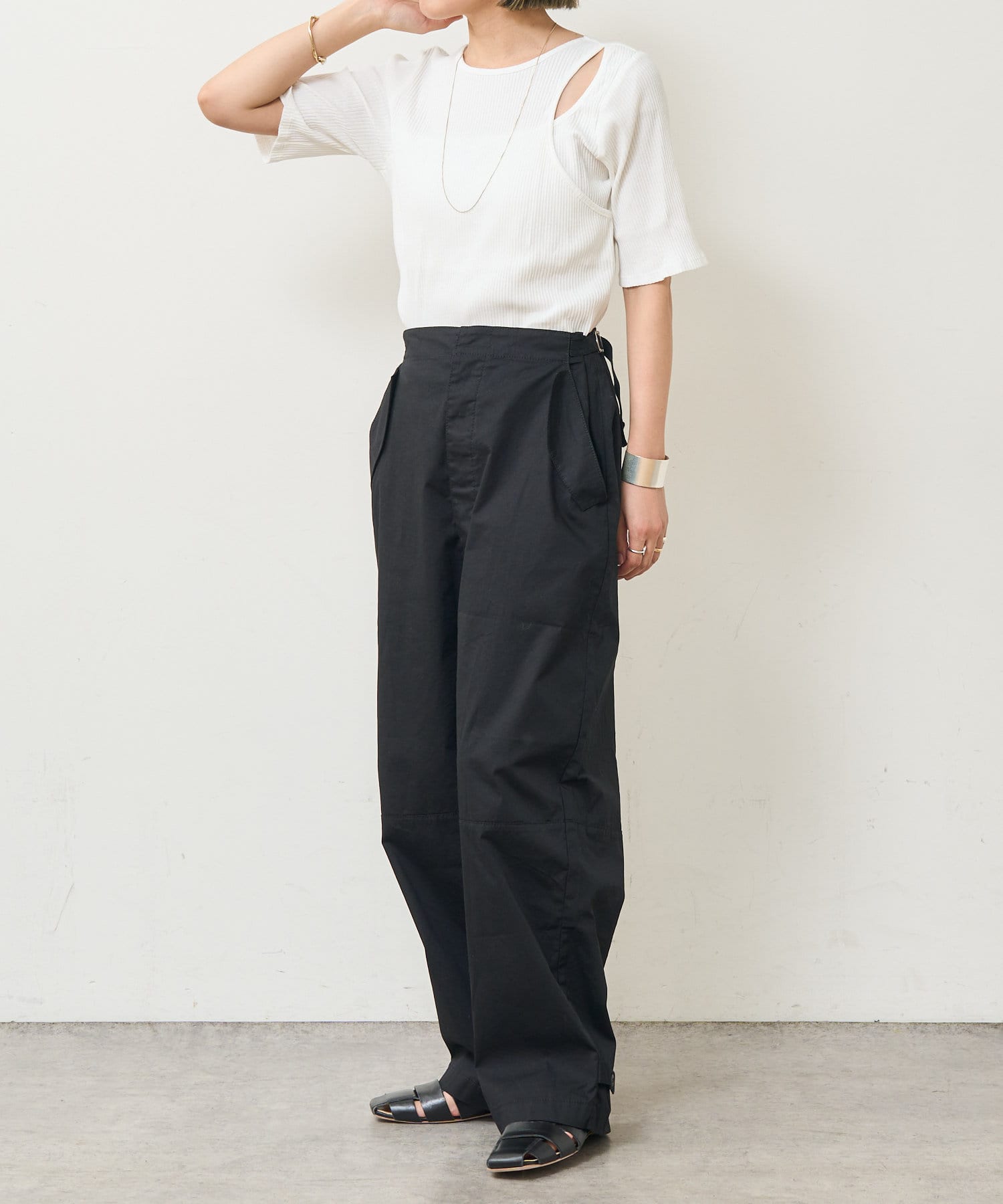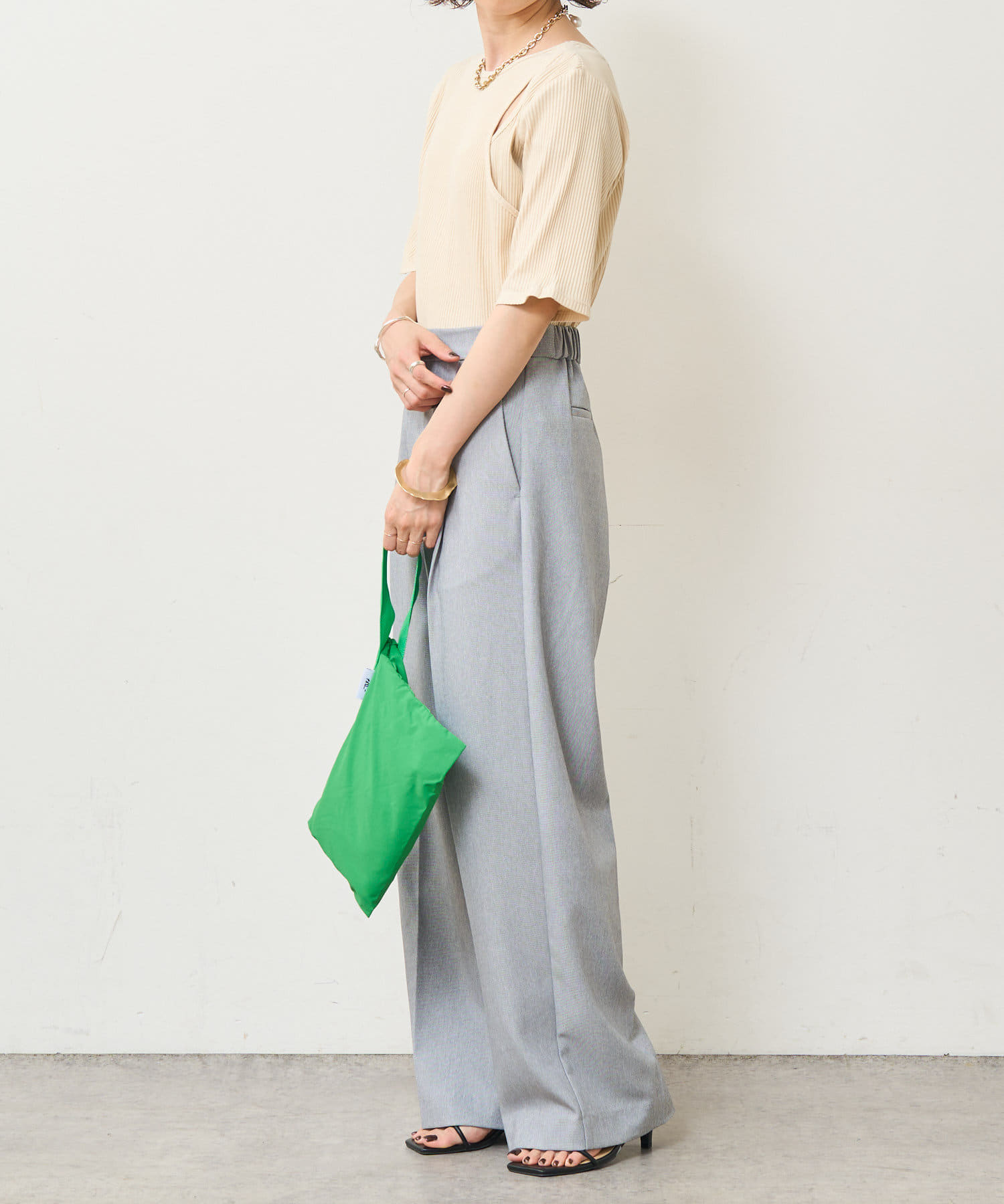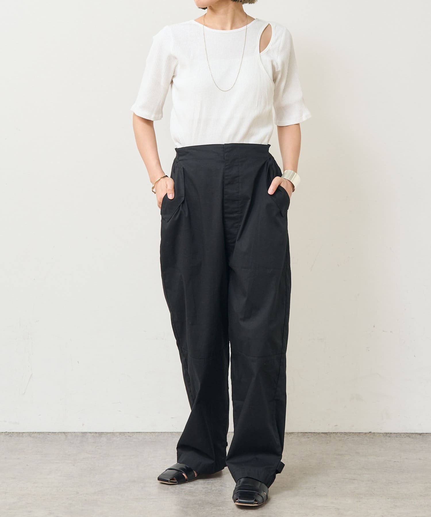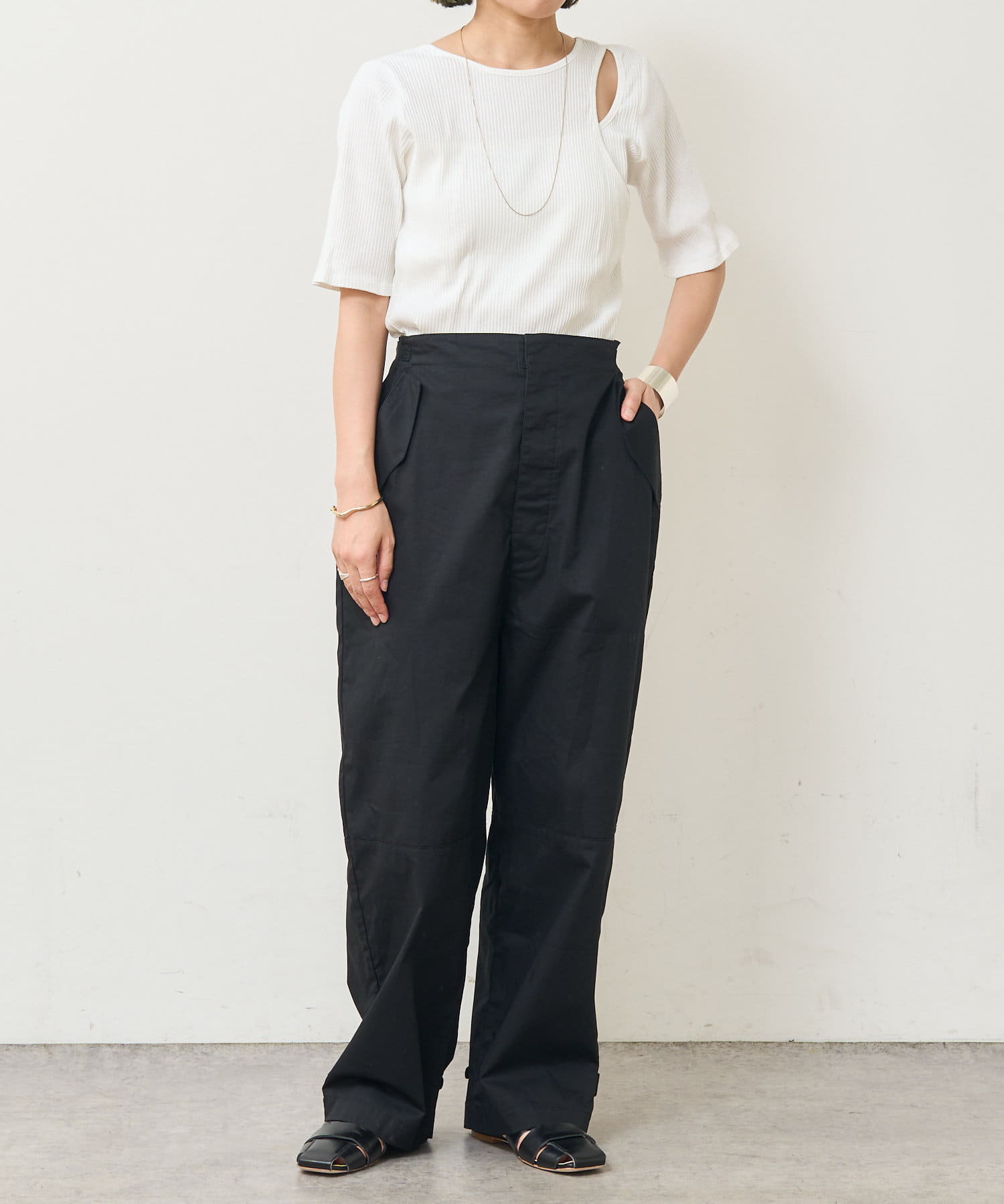 ・アシンメトリーのデザインで、アーム部分のスリットがさりげない肌見せになりコーディネートの抜け感になります