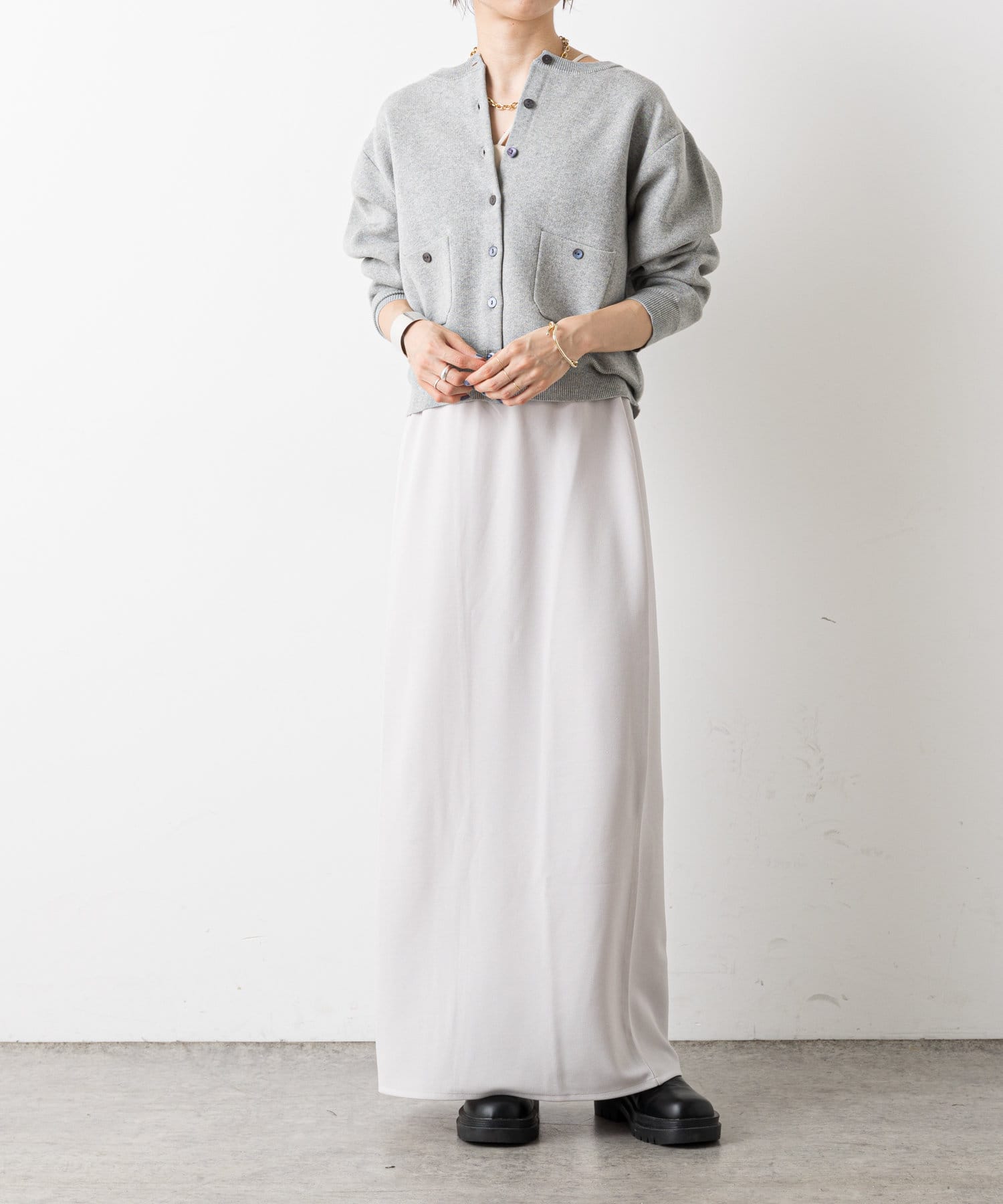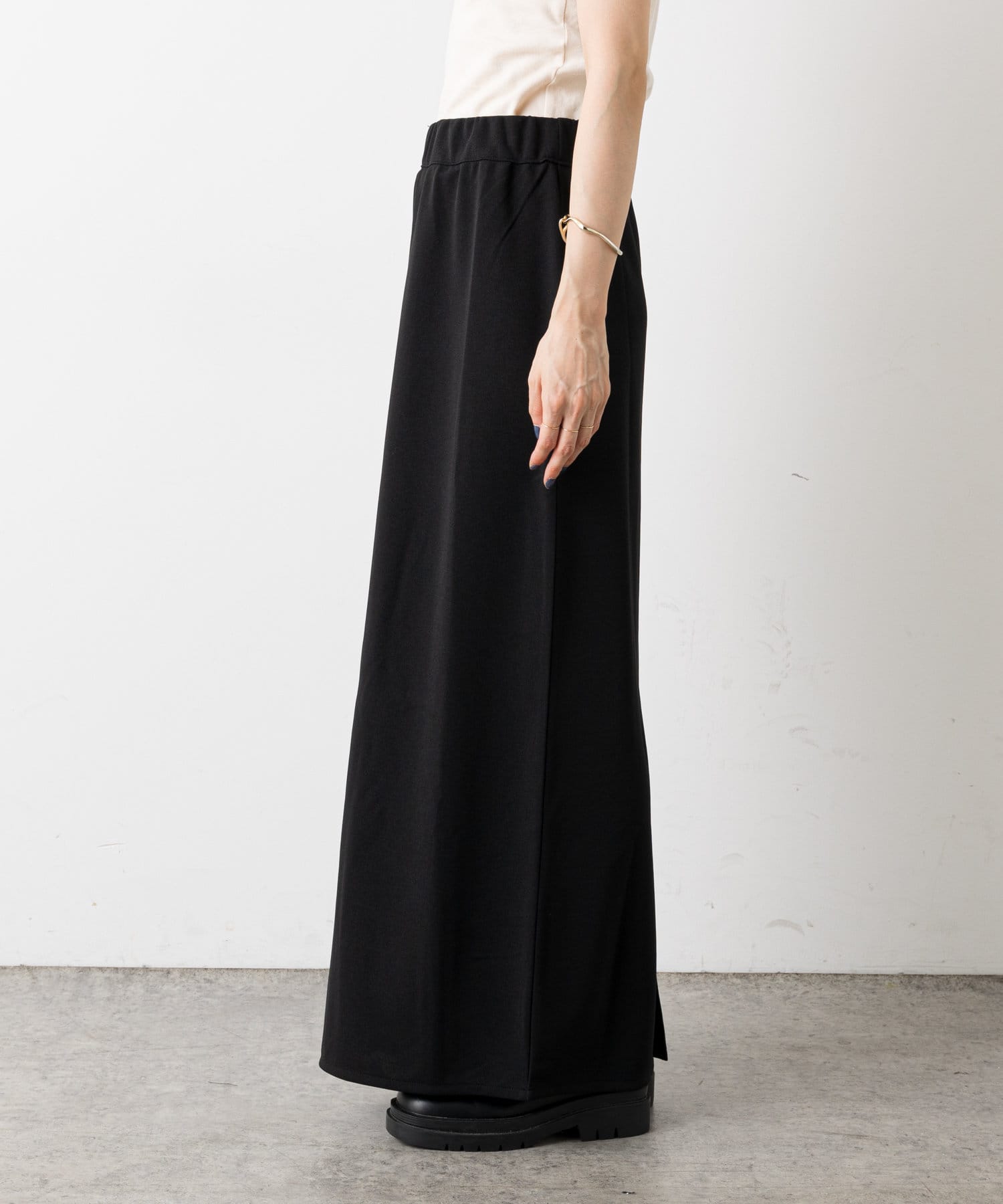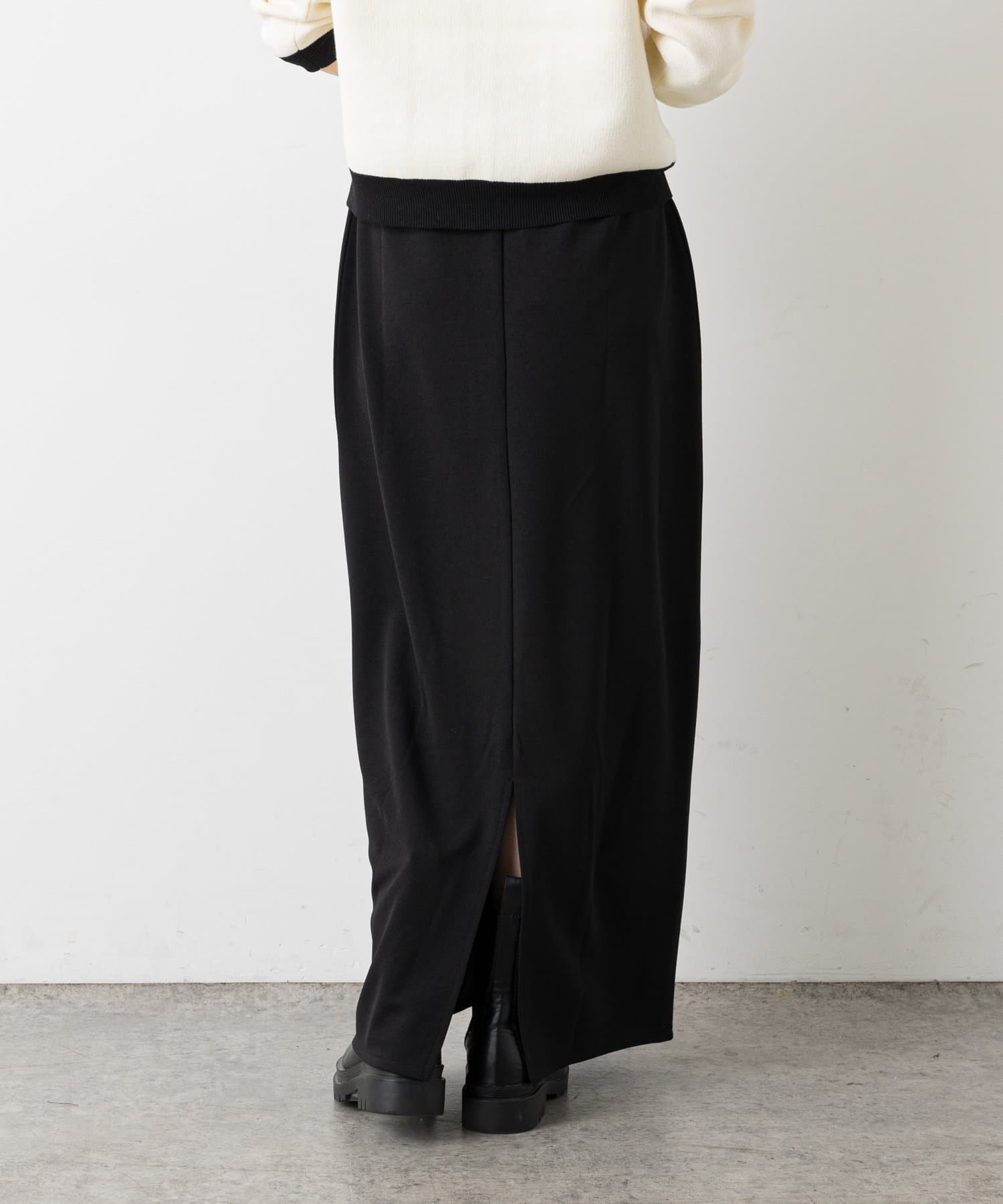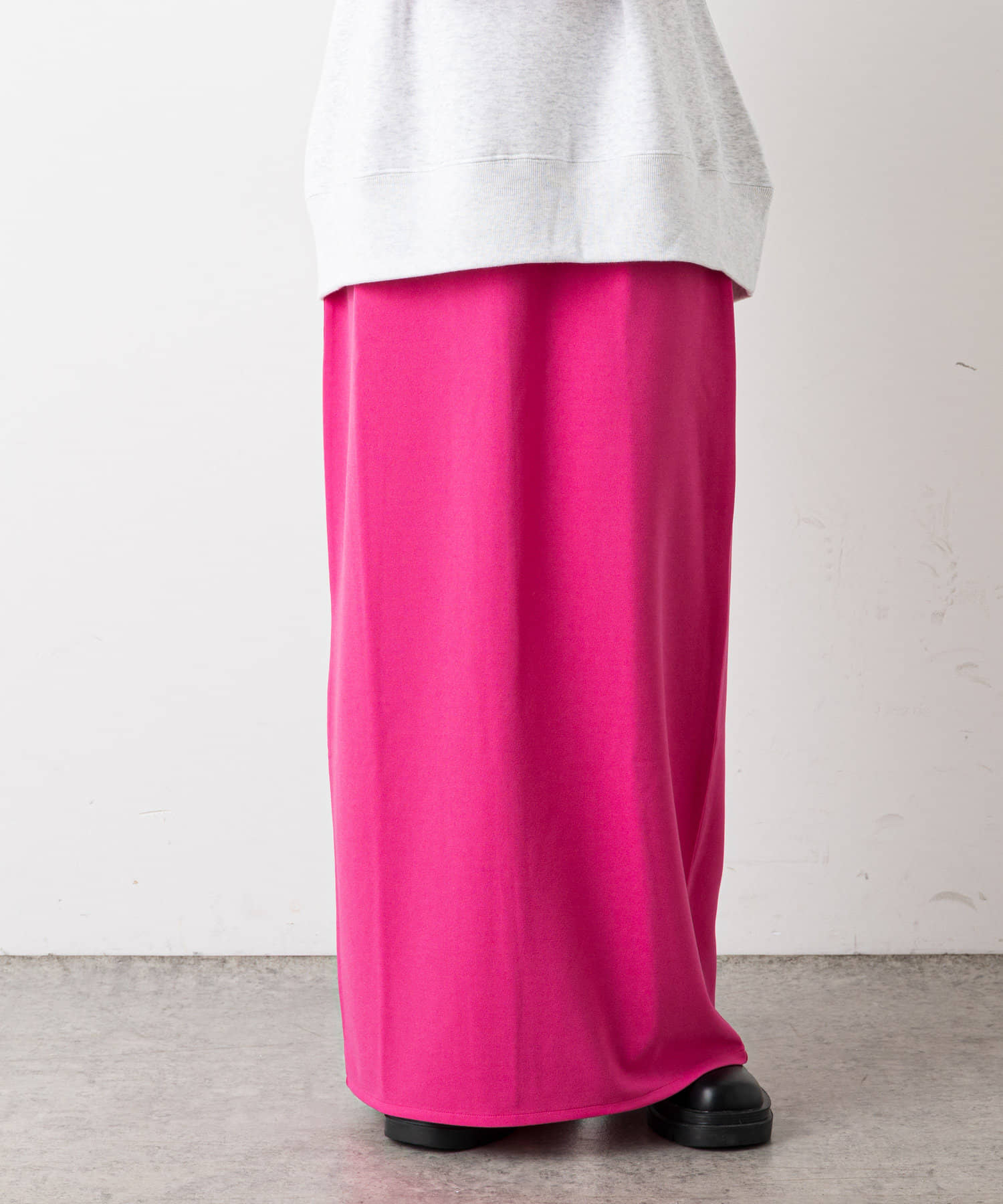 ・肌に溶け込むようなしっとり感のある着心地のロングスカート。伸縮性のある生地とウエストのゴム仕様で、タイトなシルエットですがリラクシーな履き心地です。