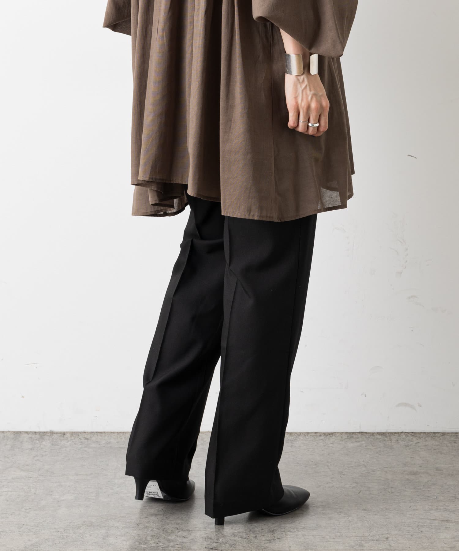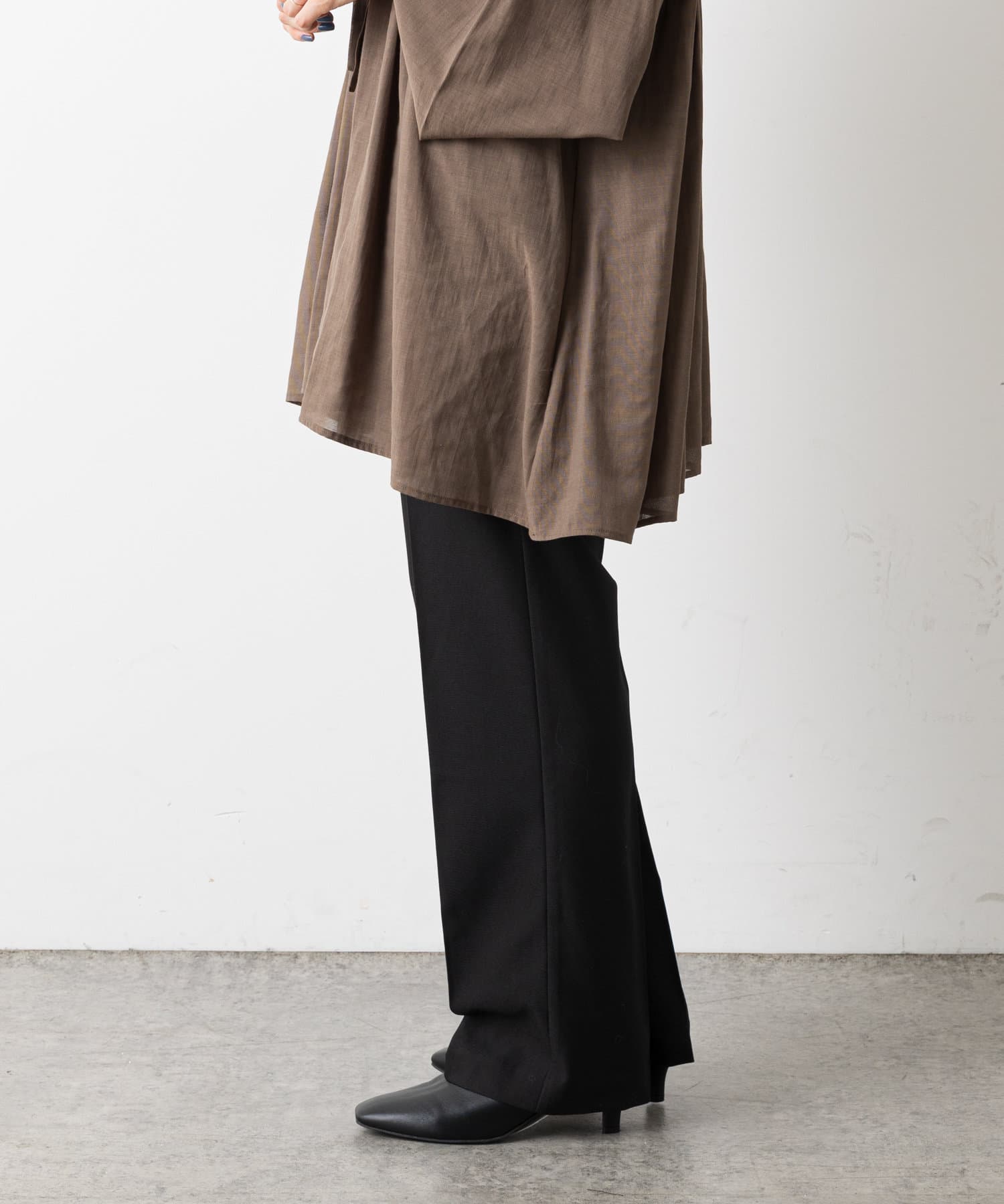 ・すっきりとしたシルエットですが、ウエストゴム仕様でノンストレな履き心地もうれしいポイント。