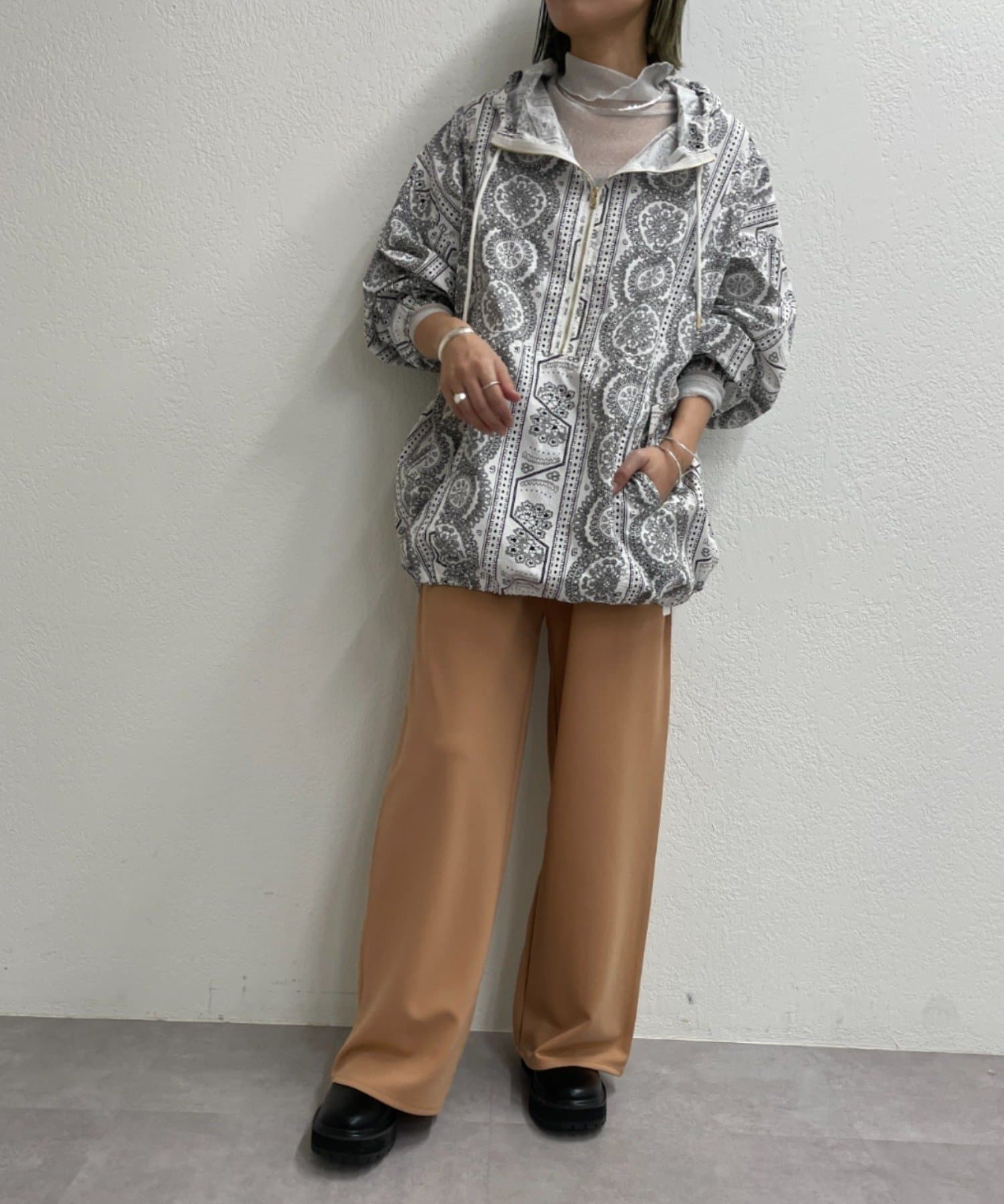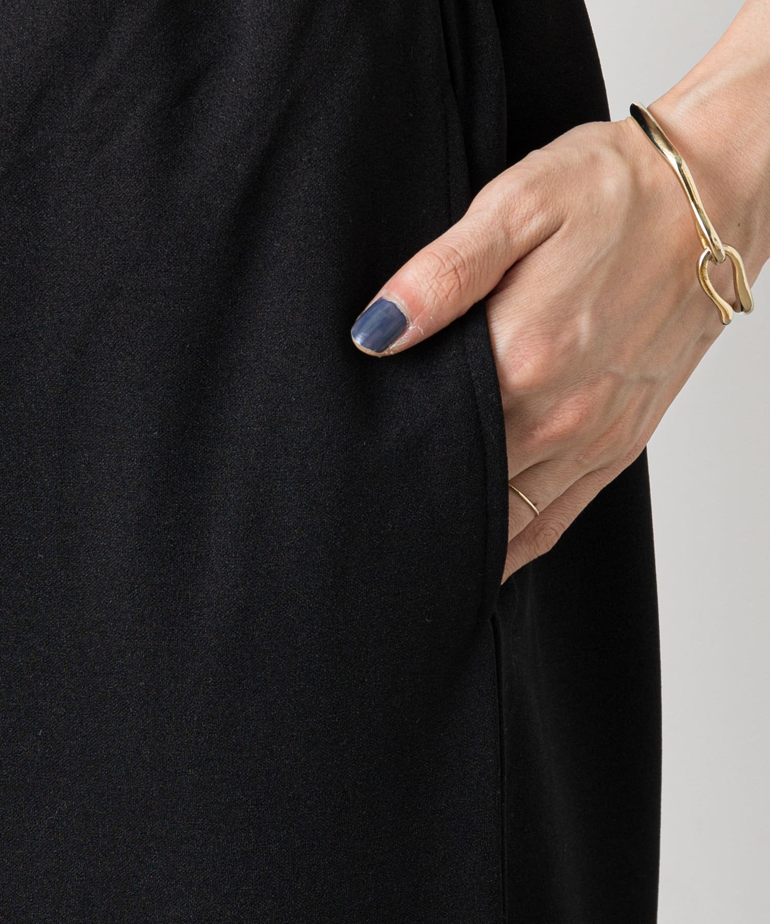 ・脚のラインを拾いづらいややワイドなシルエットと、裾がフレアになっているので美脚効果も◎