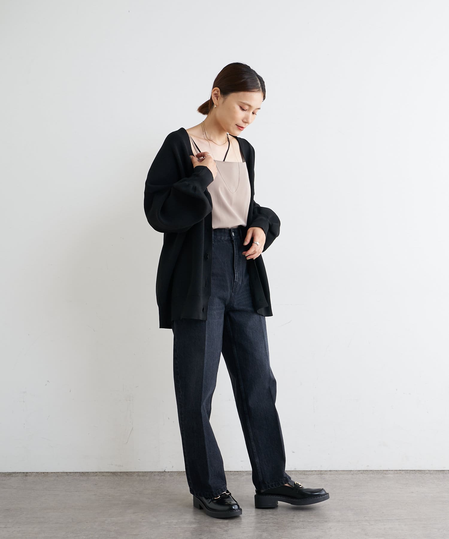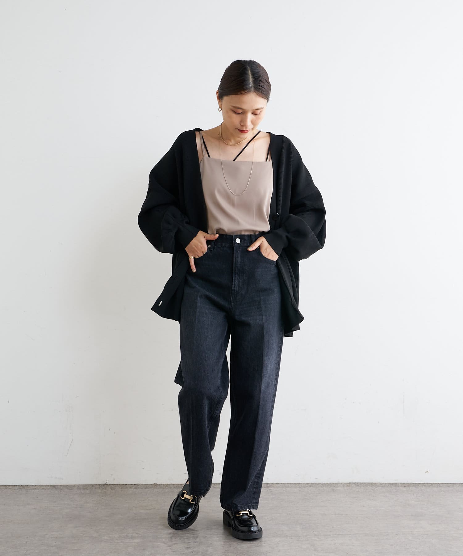 ・スタンダードなハイウエストのストレートシルエットで、全体のラインはほんのりスリムな印象となります。