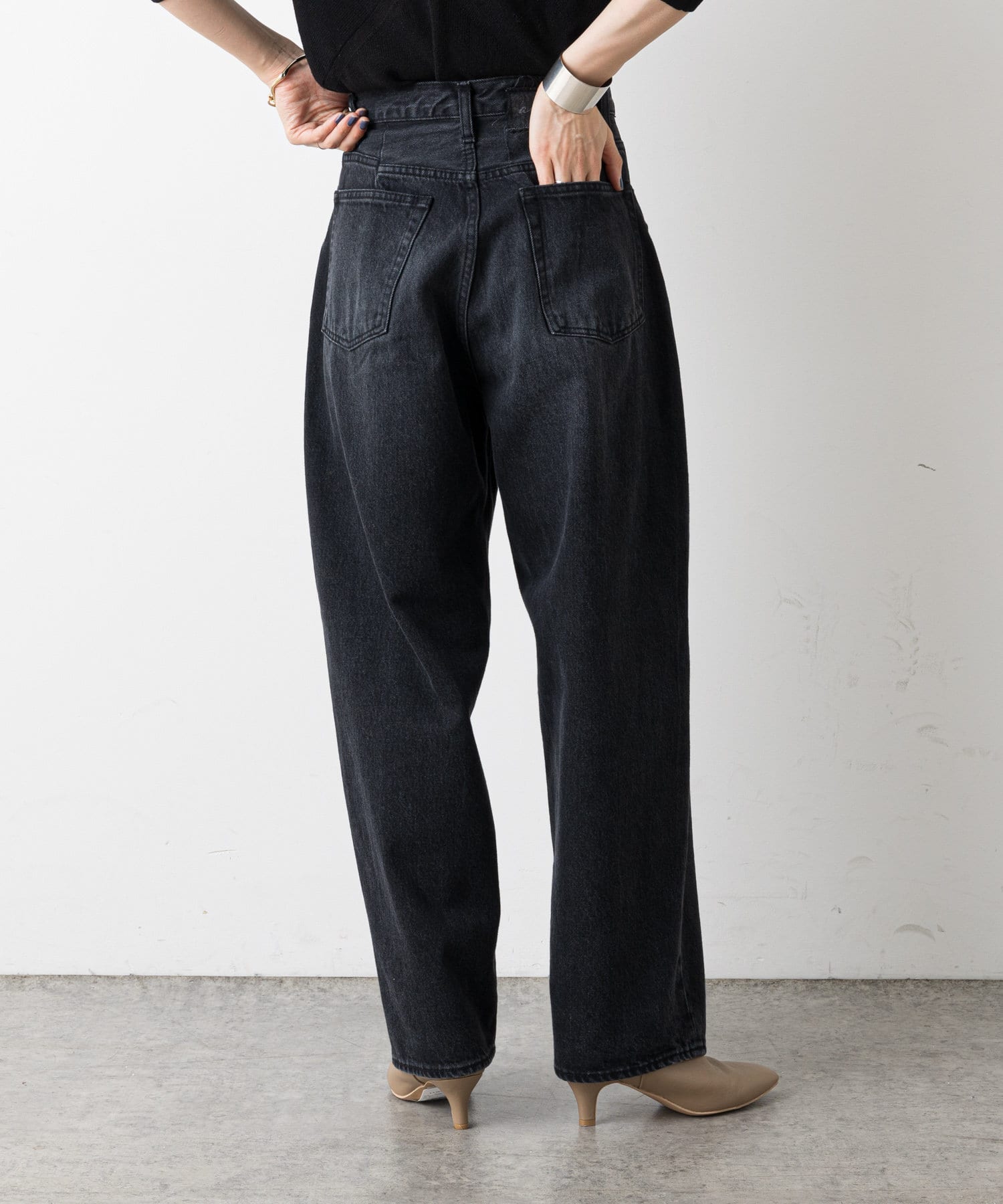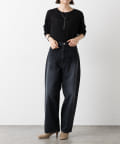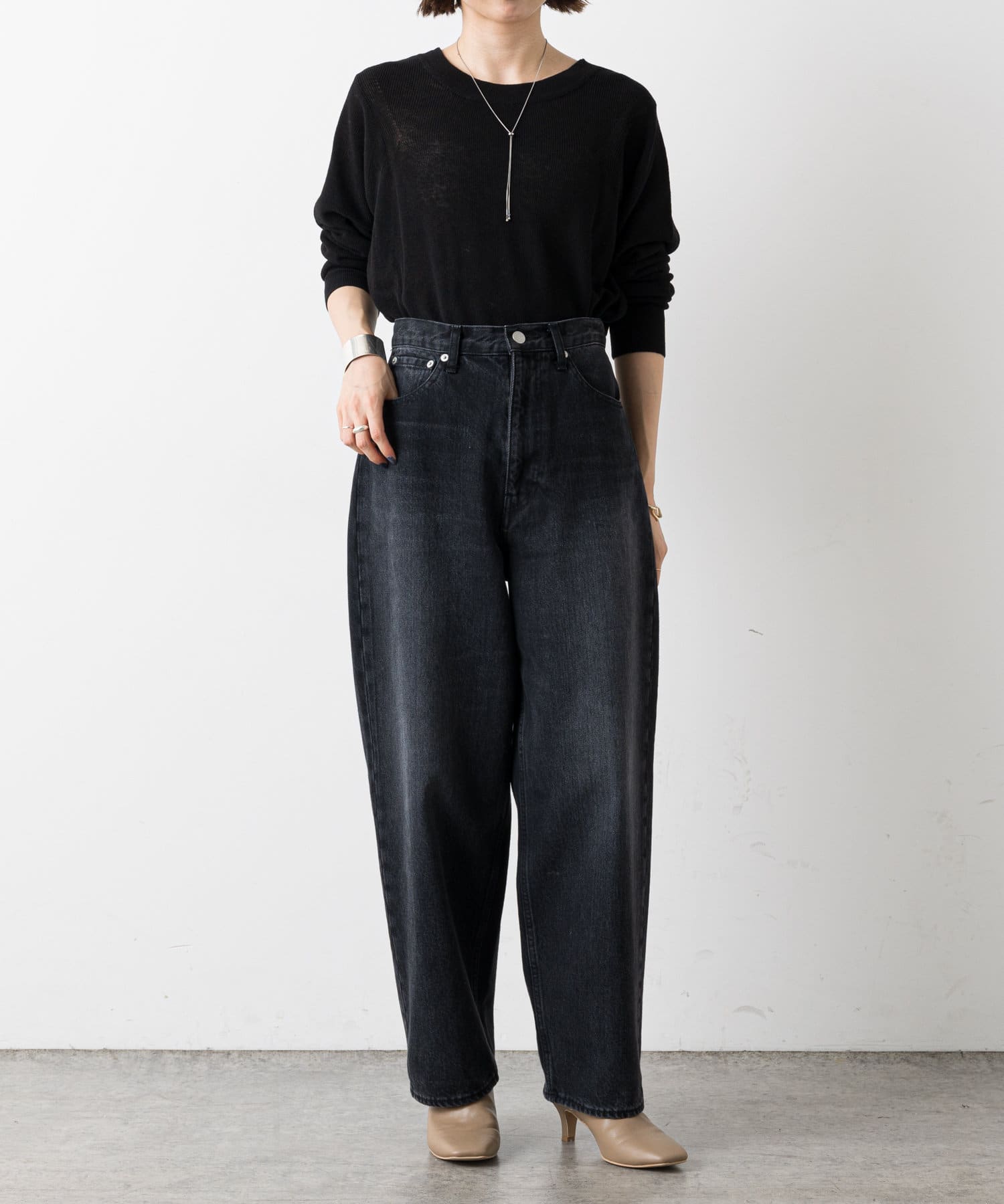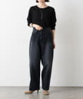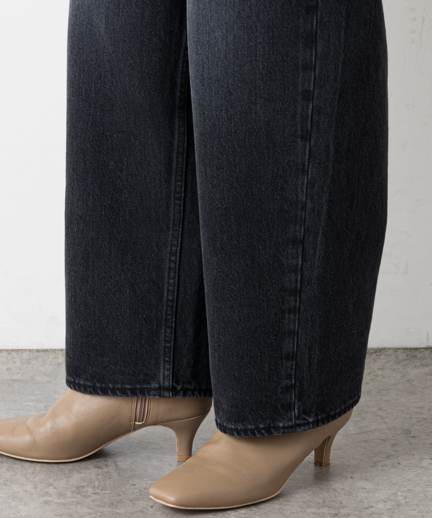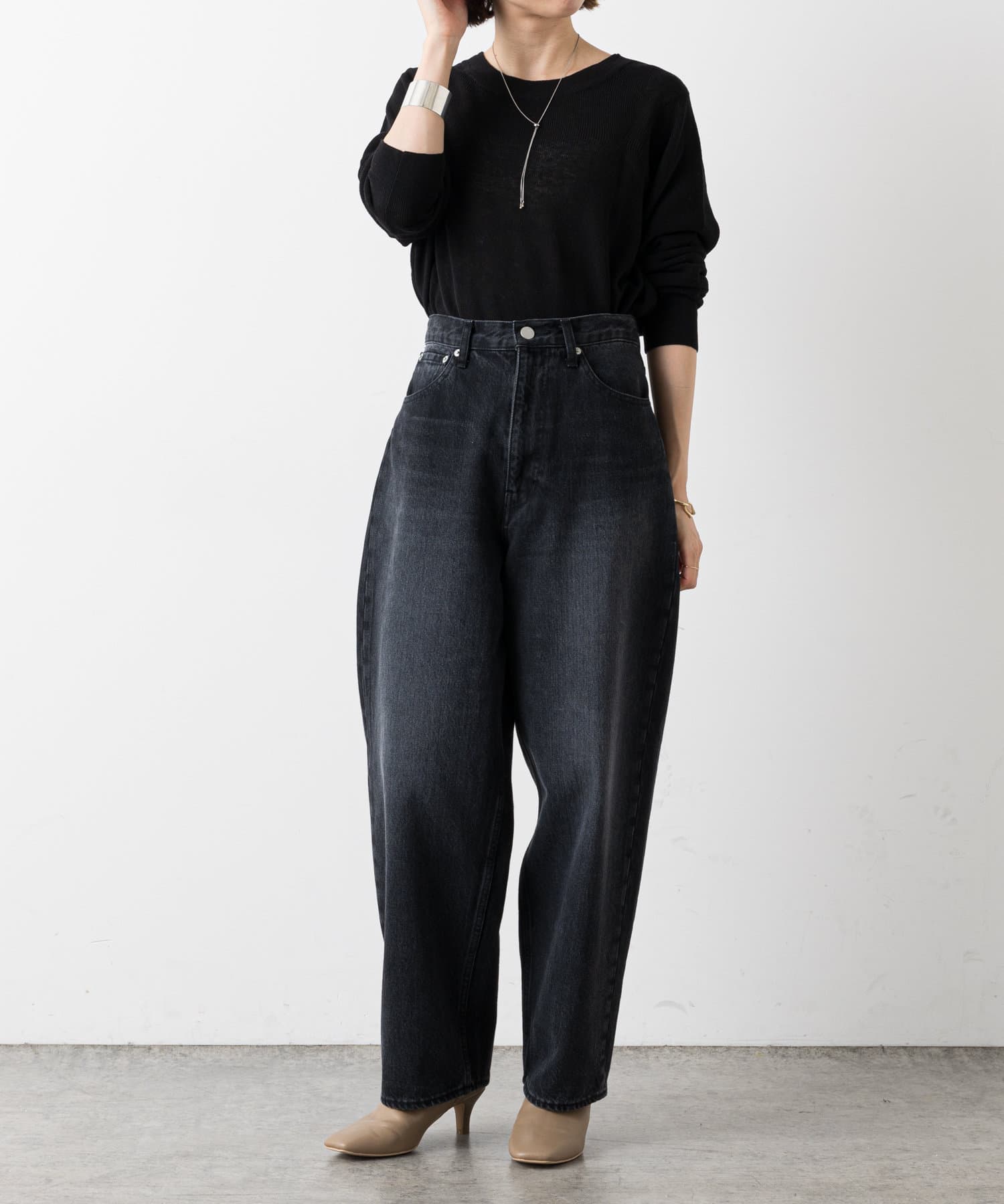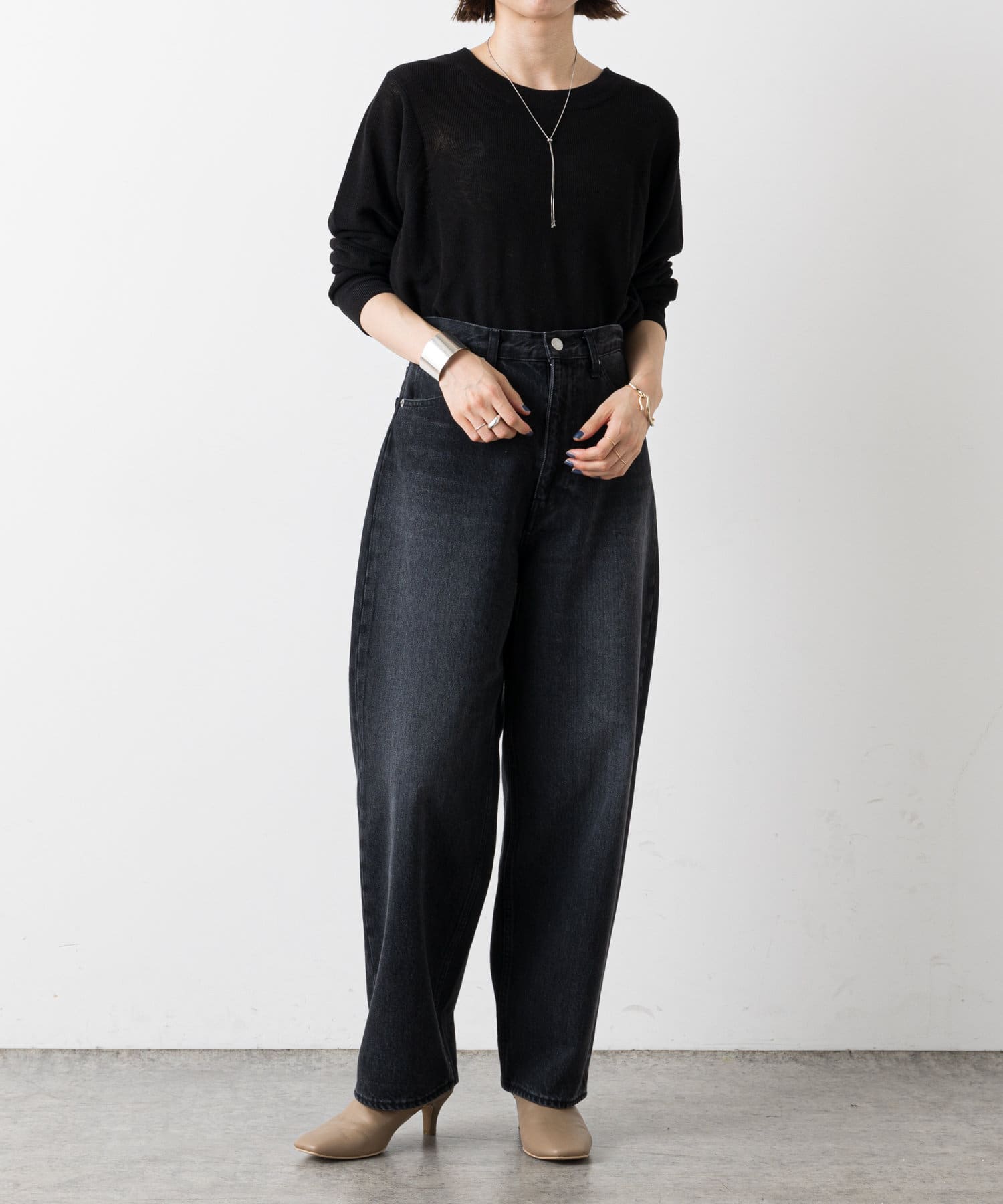 ・全体的にボリューム感がしっかりと出るワイドシルエットのアイテムで、裾は少しテーパードを効かしている為、丸みのあるシルエットが特徴的です。