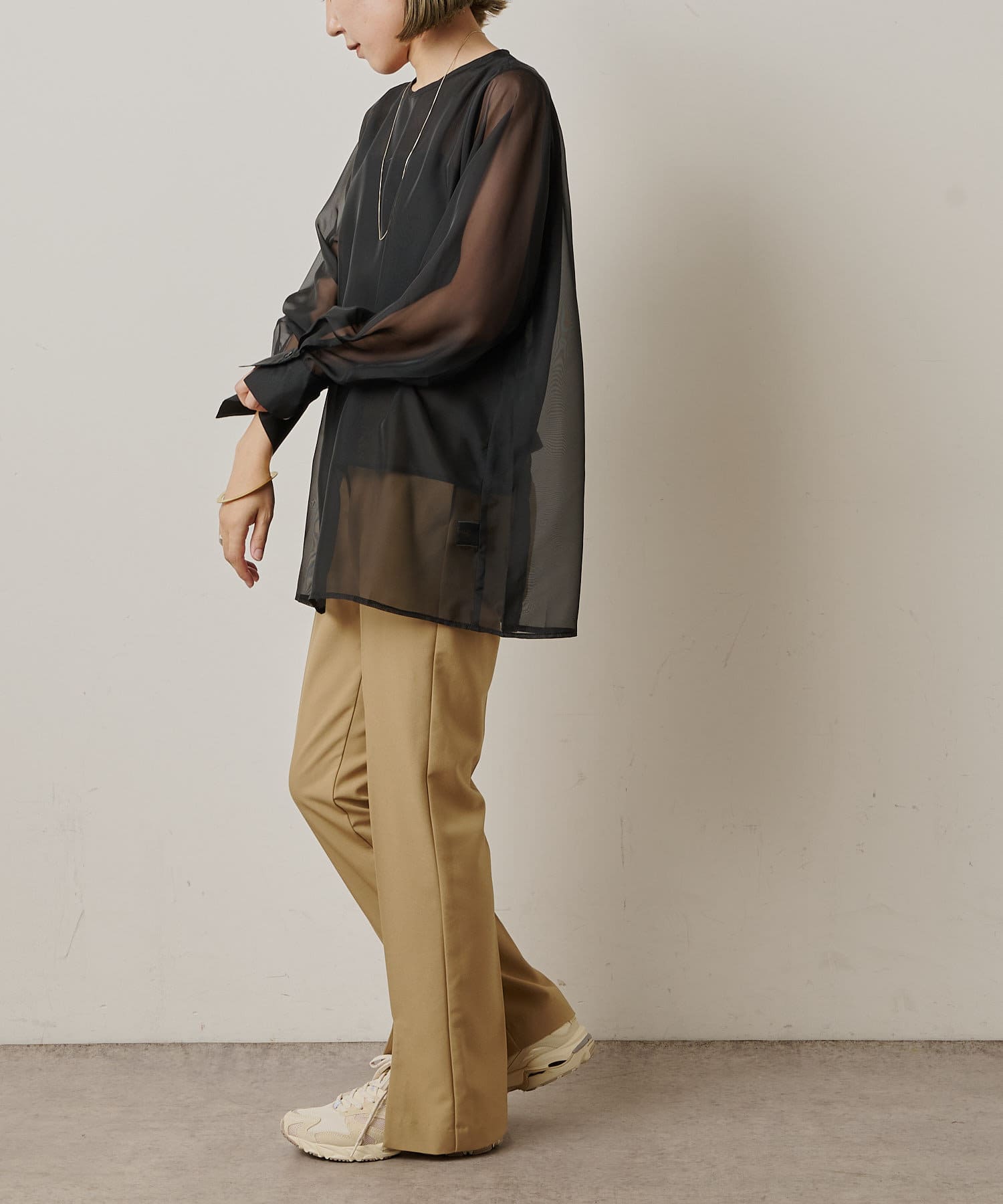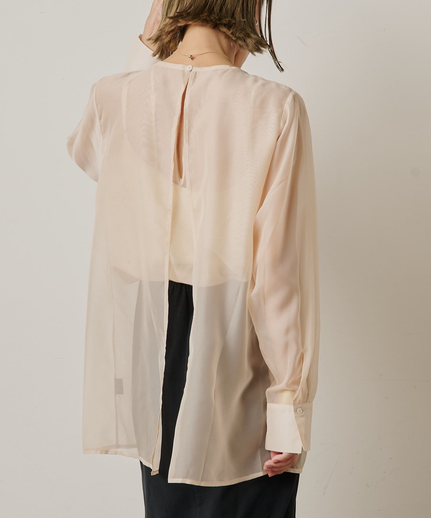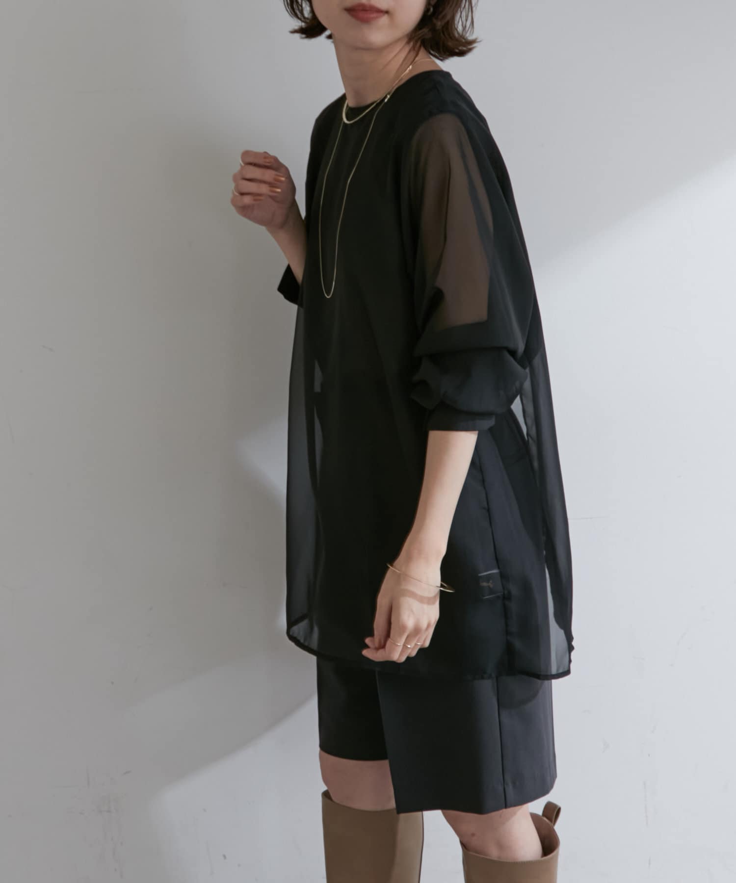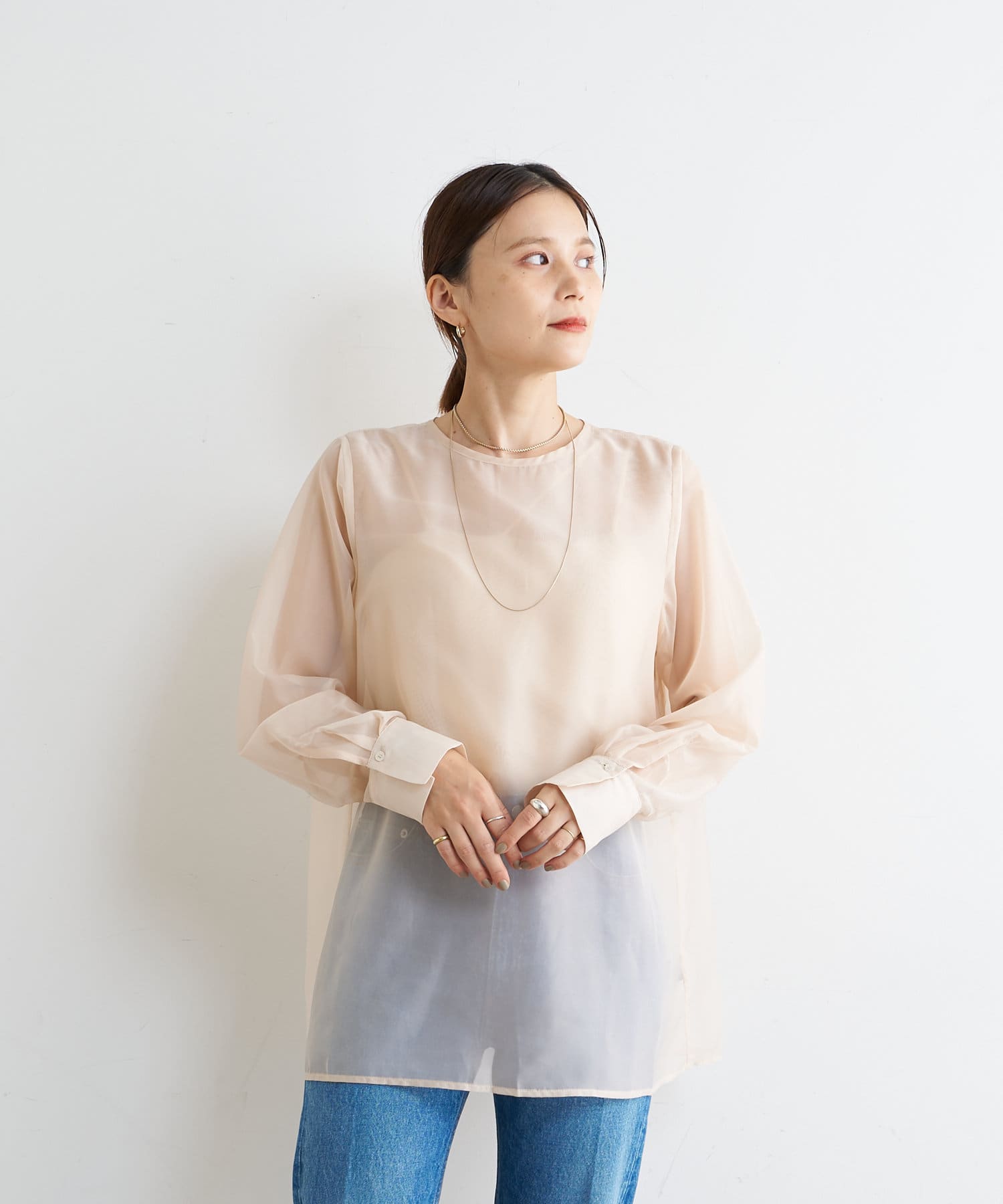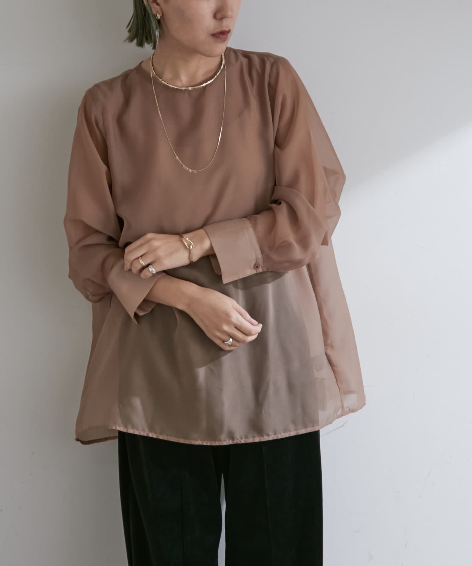 ・二重になっているシアー素材が着方次第でいろんな表情を見せてくれるブラウス。