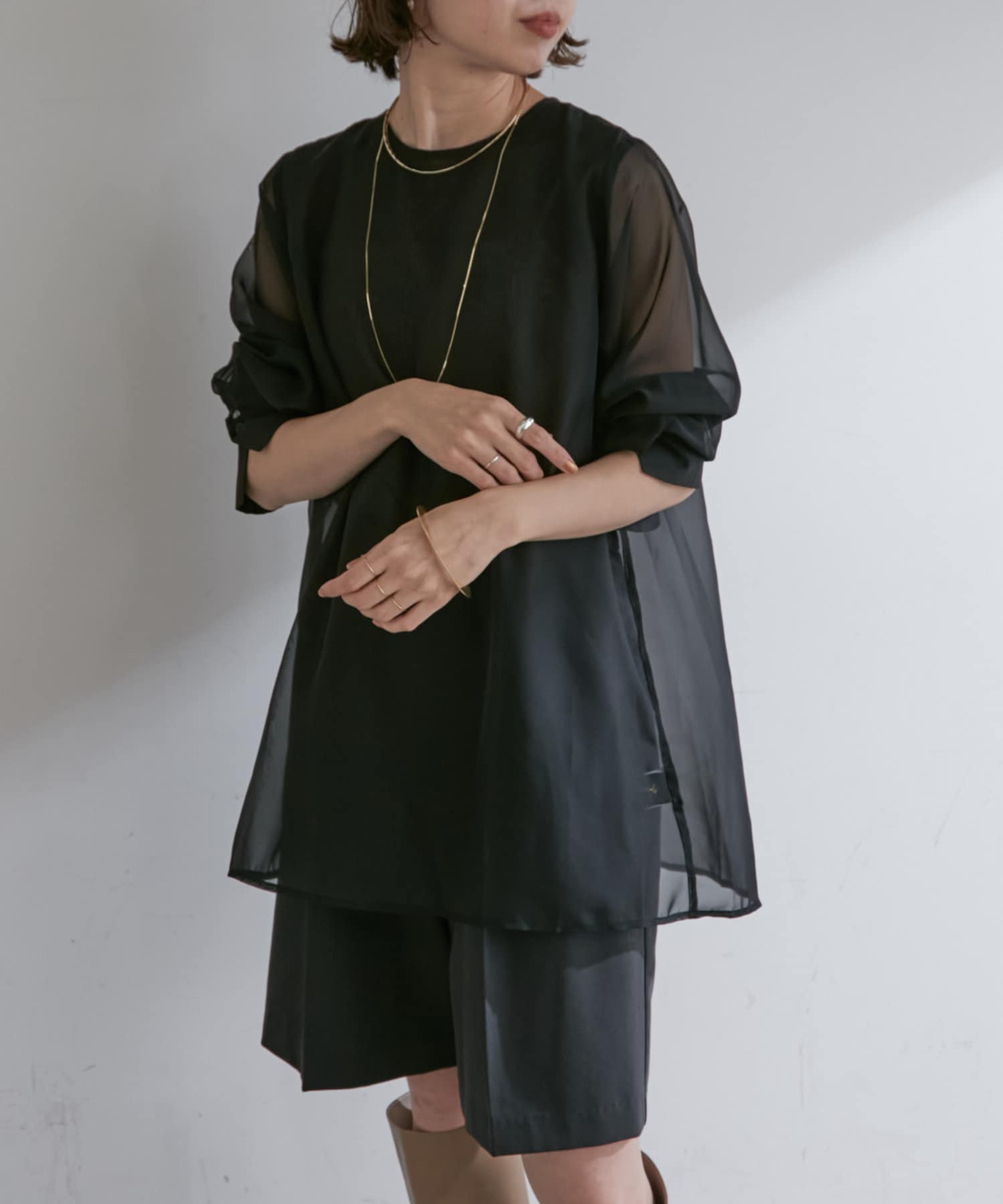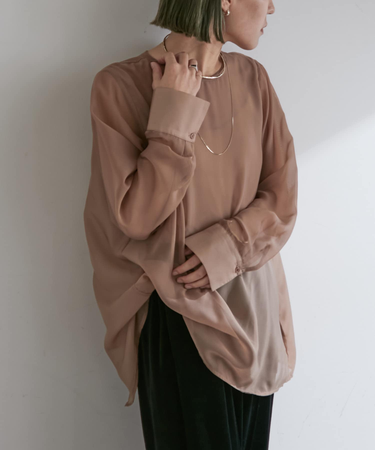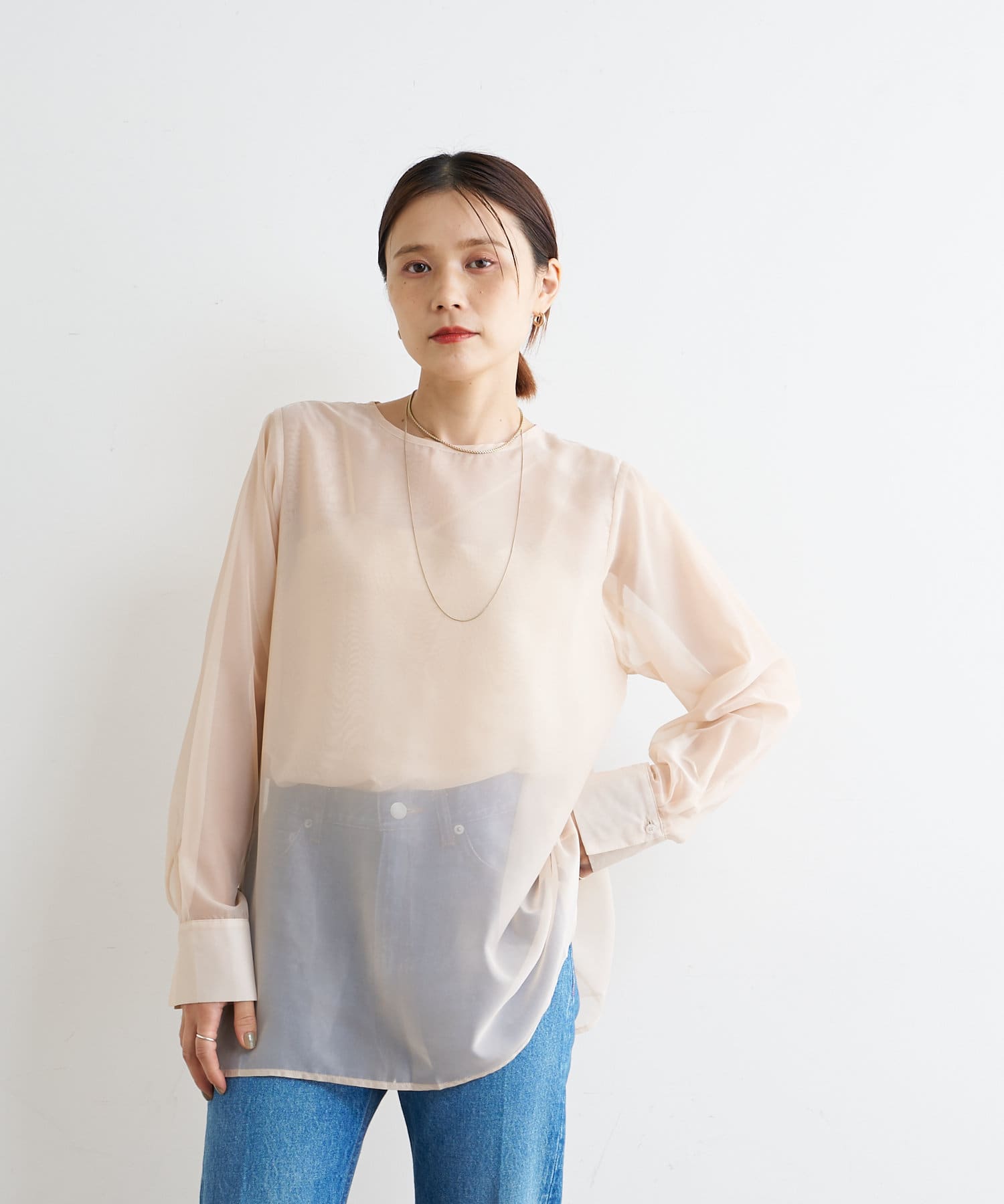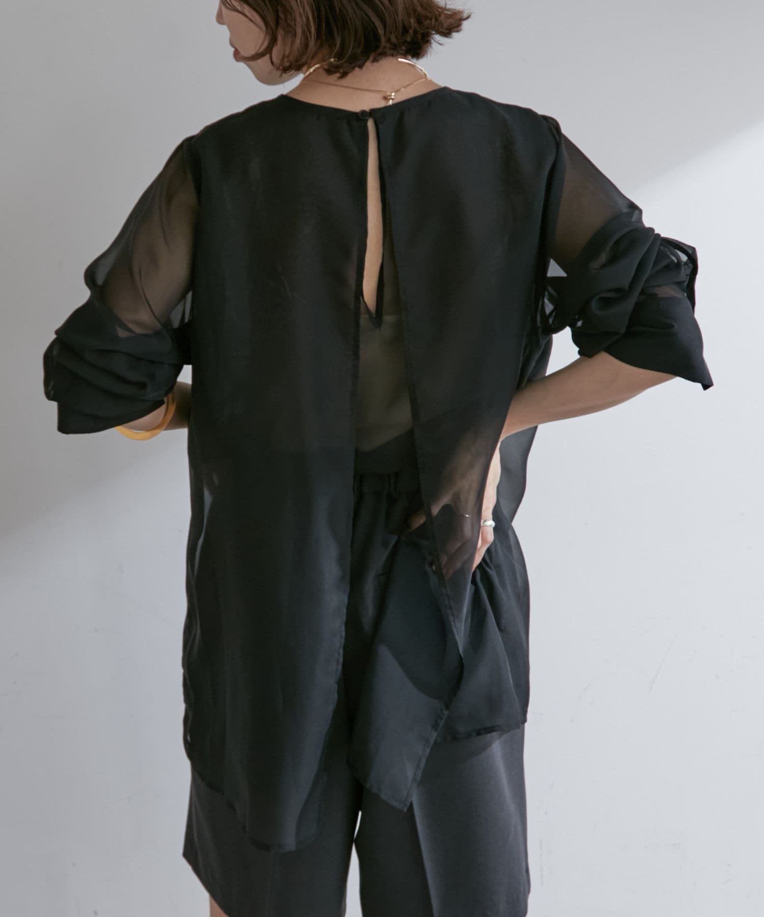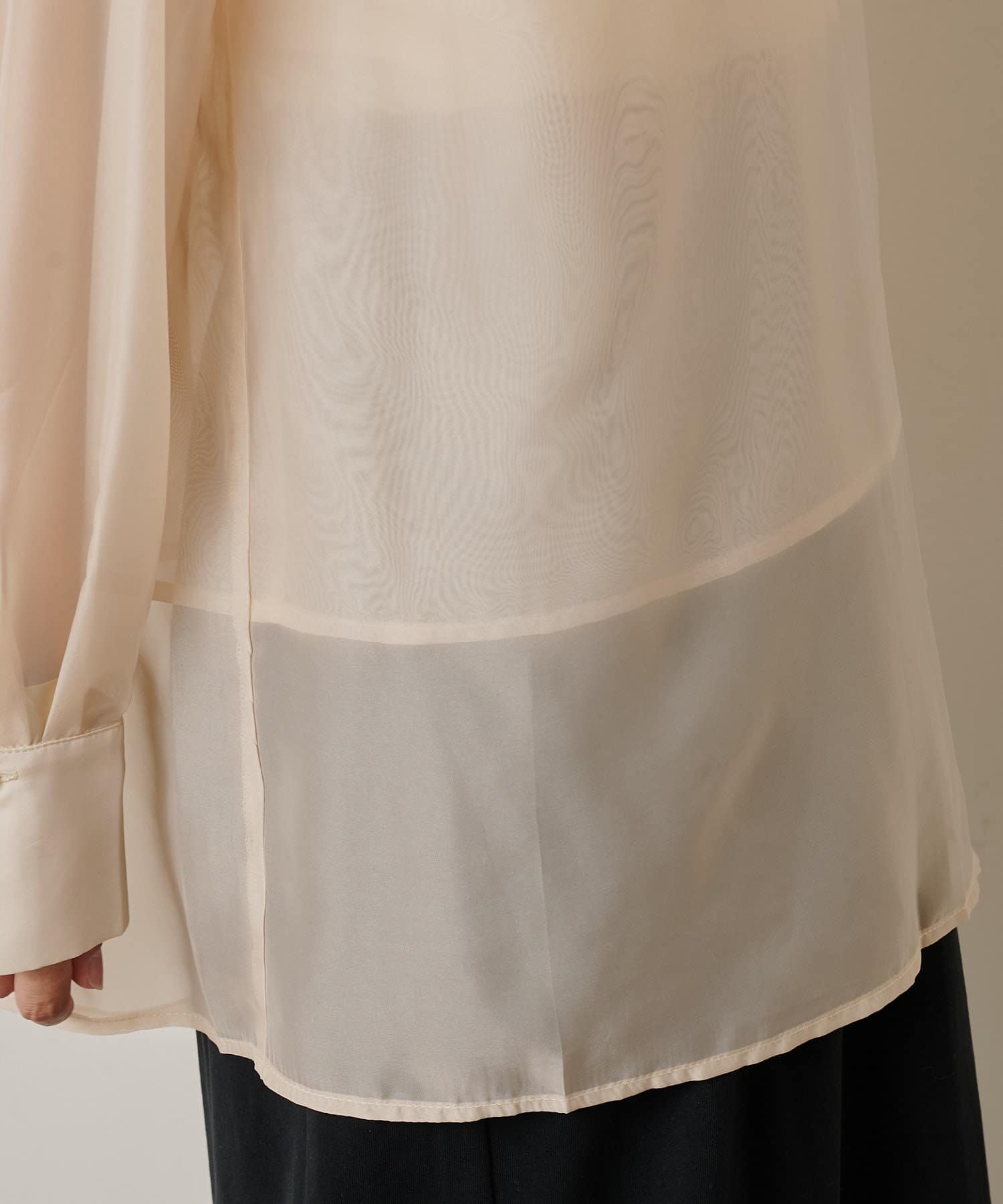 ・二重になっているシアー素材が着方次第でいろんな表情を見せてくれるブラウス。