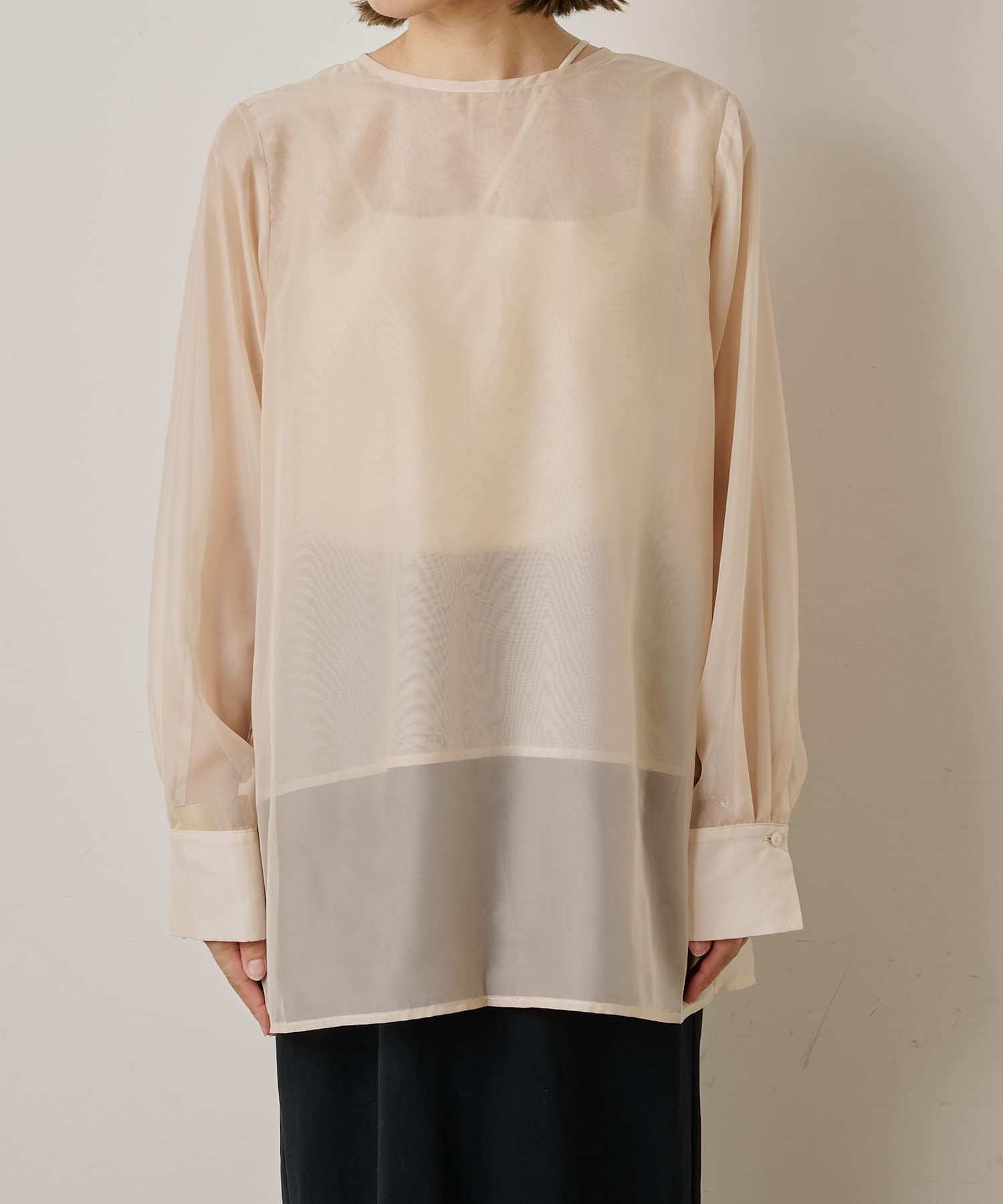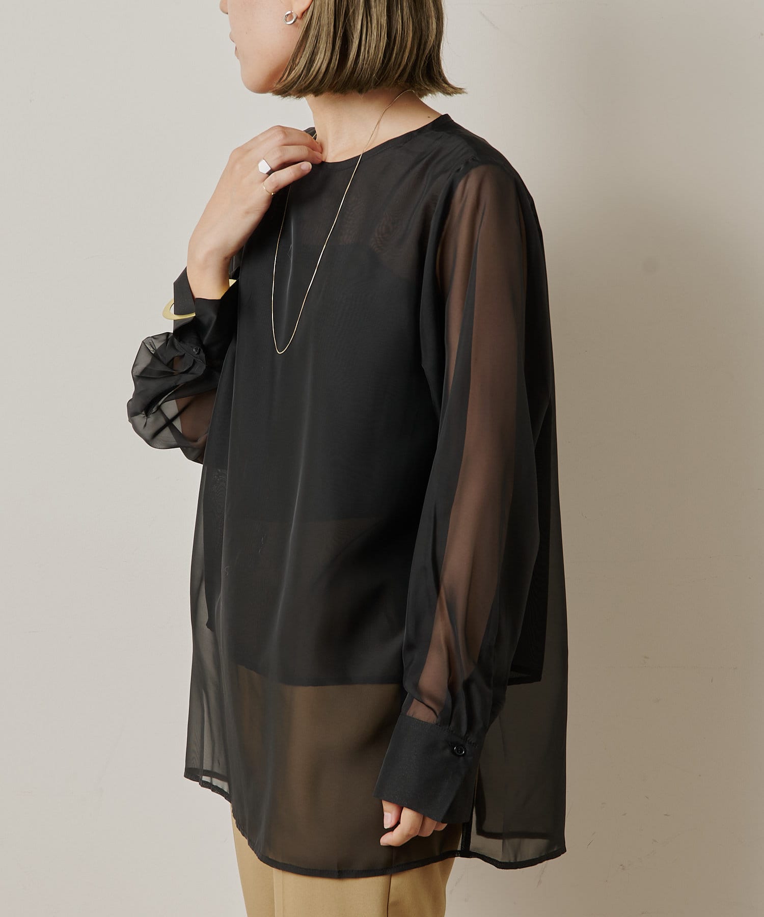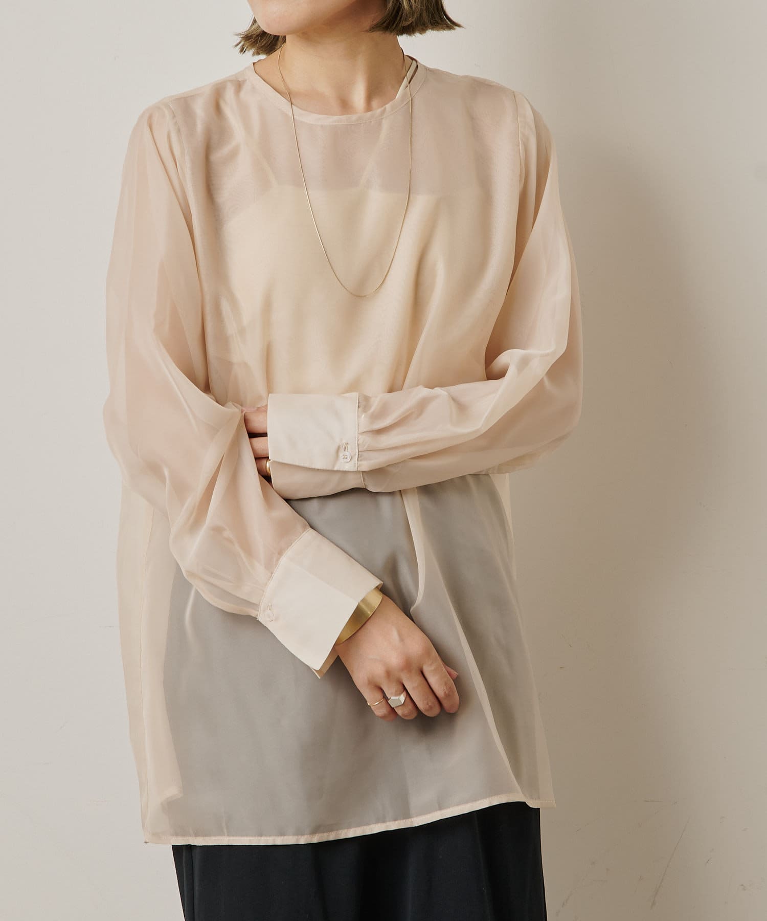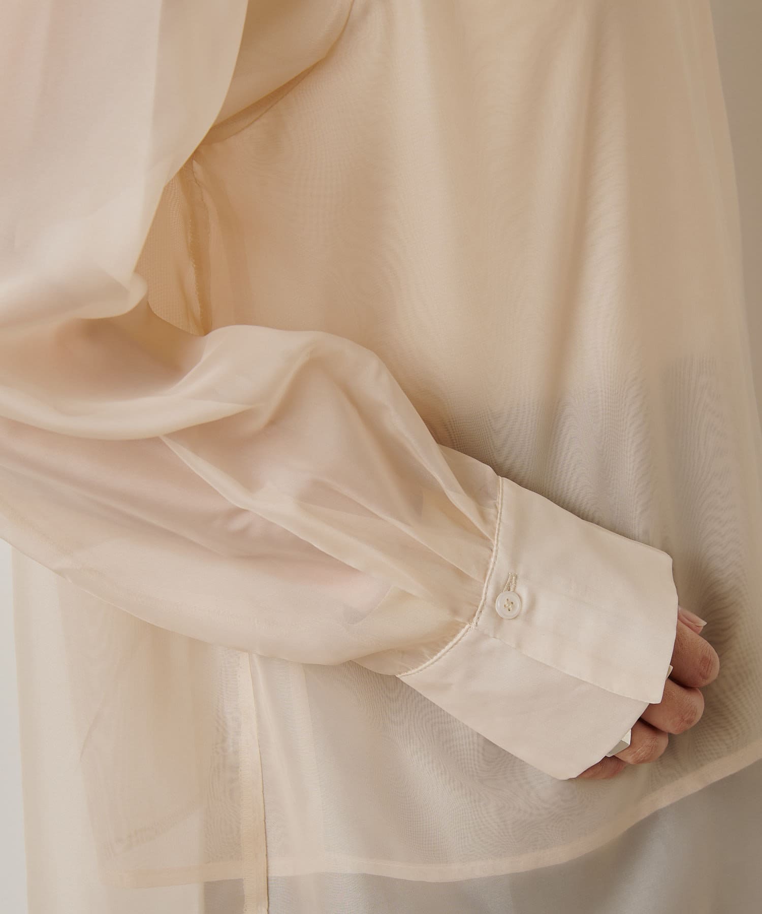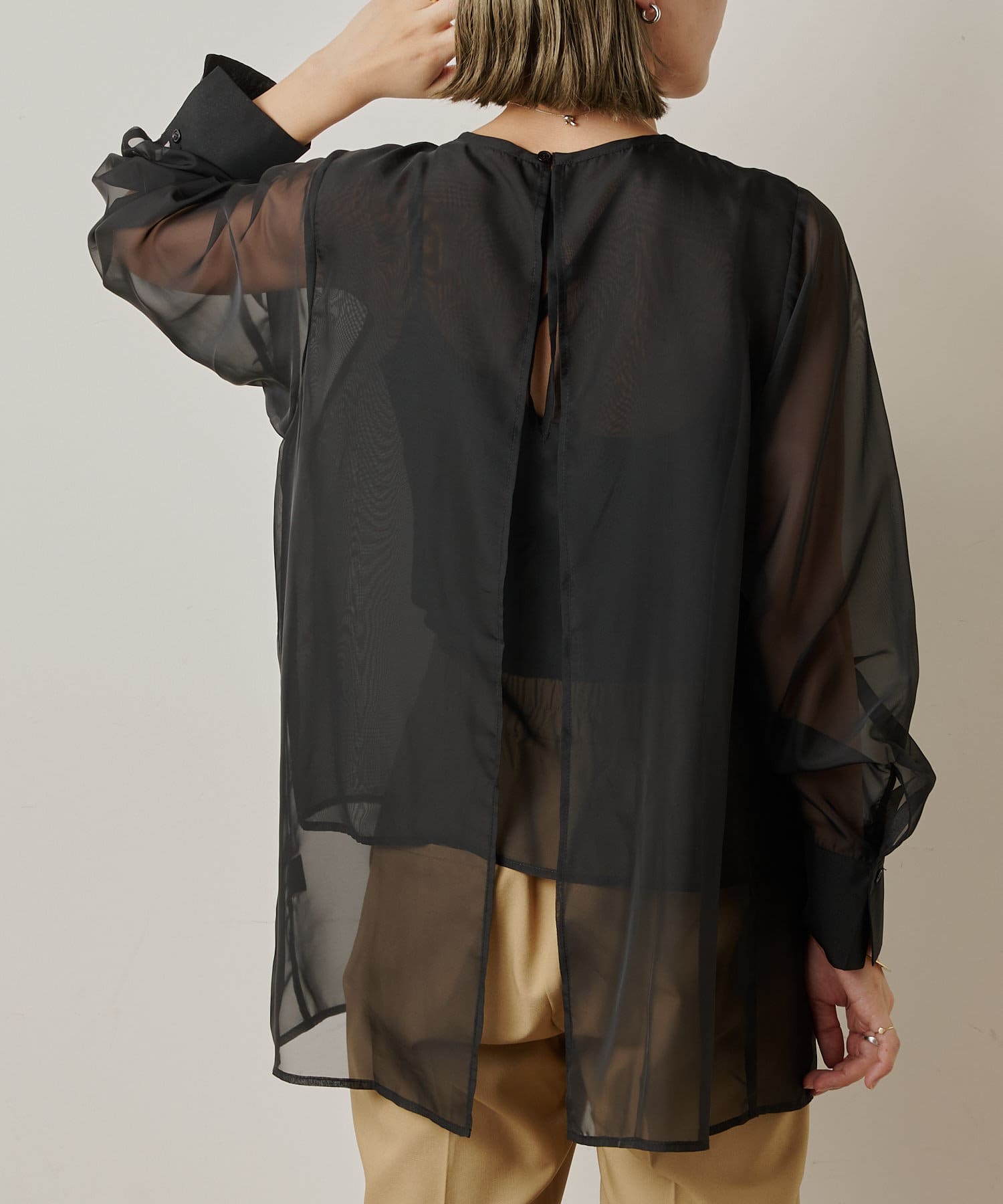 ・二重になっているシアー素材が着方次第でいろんな表情を見せてくれるブラウス。