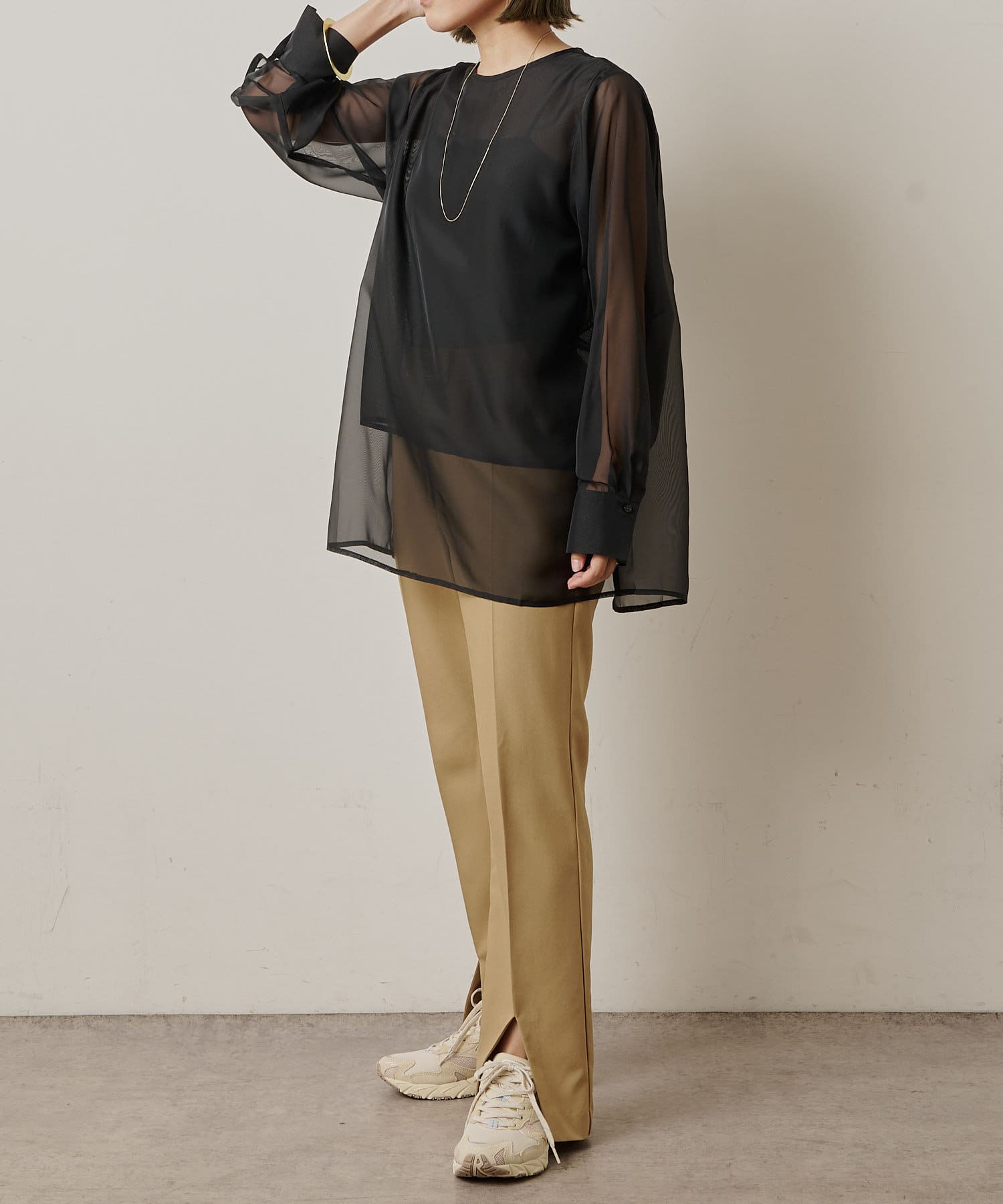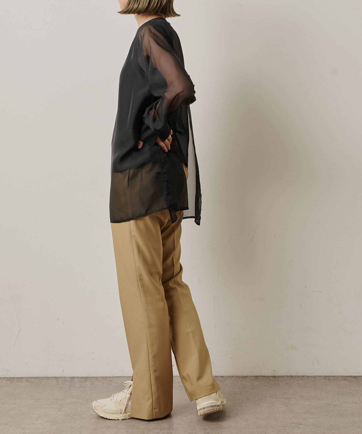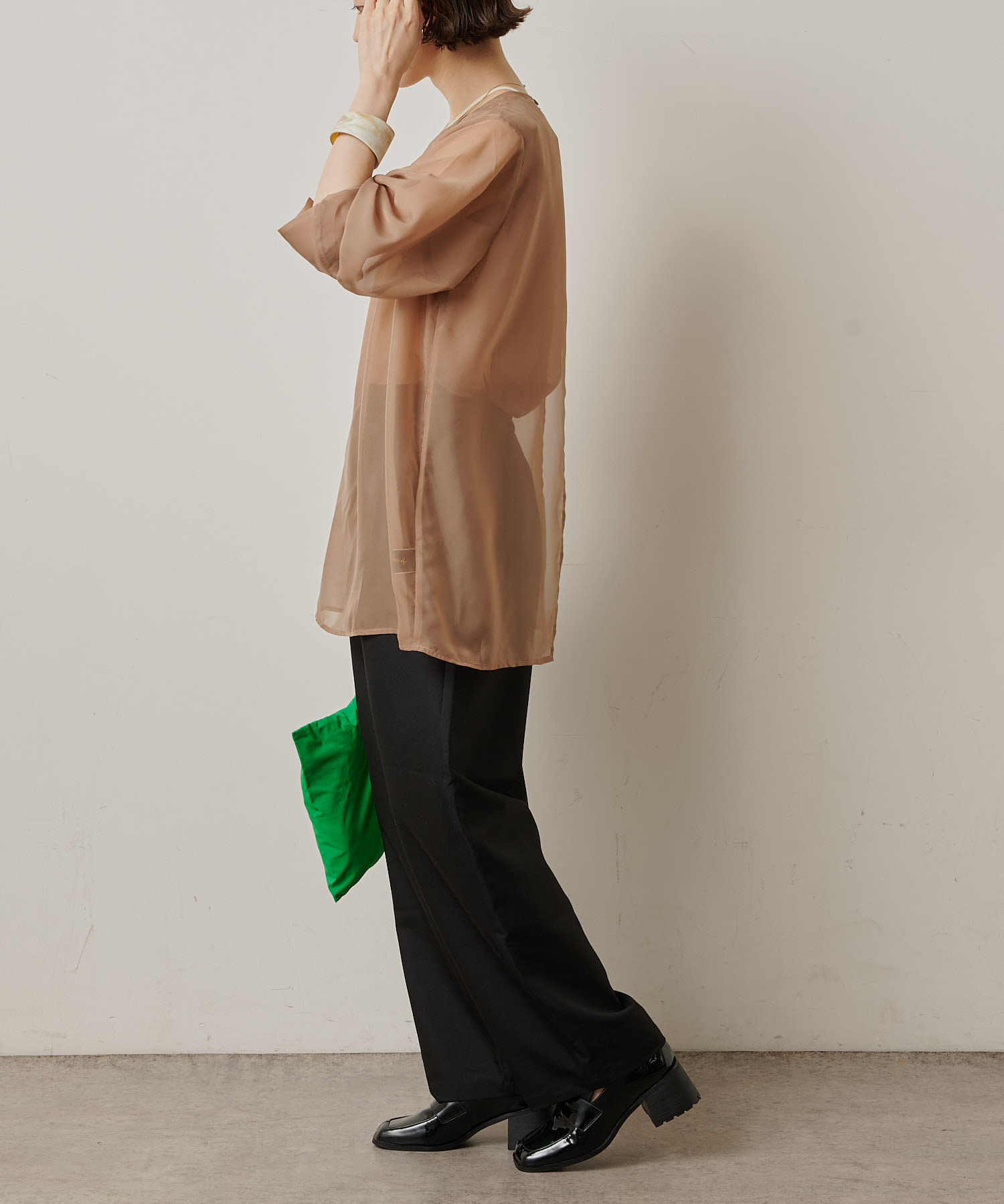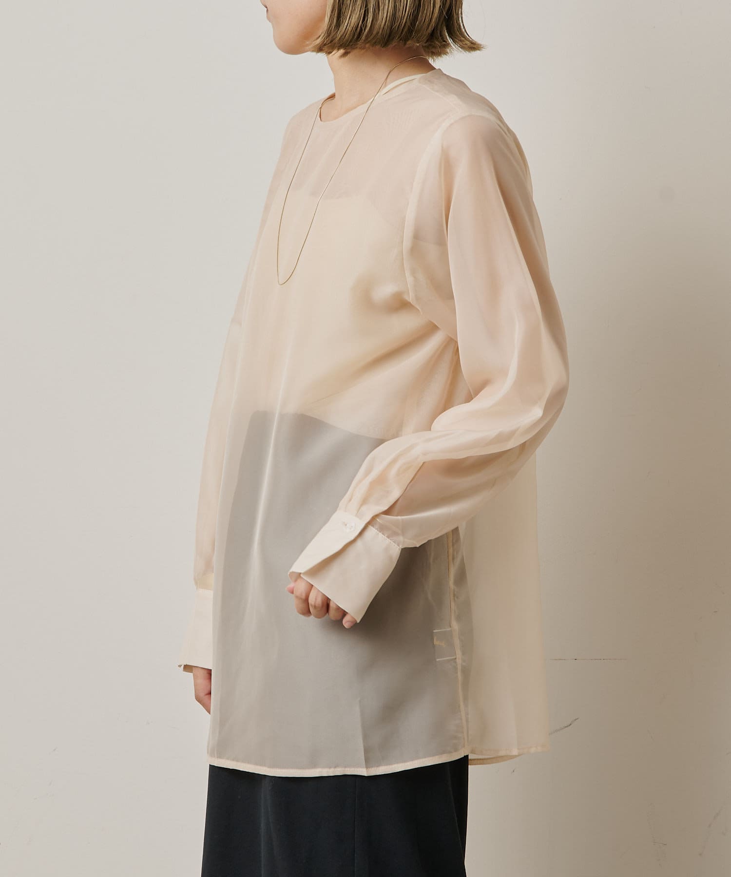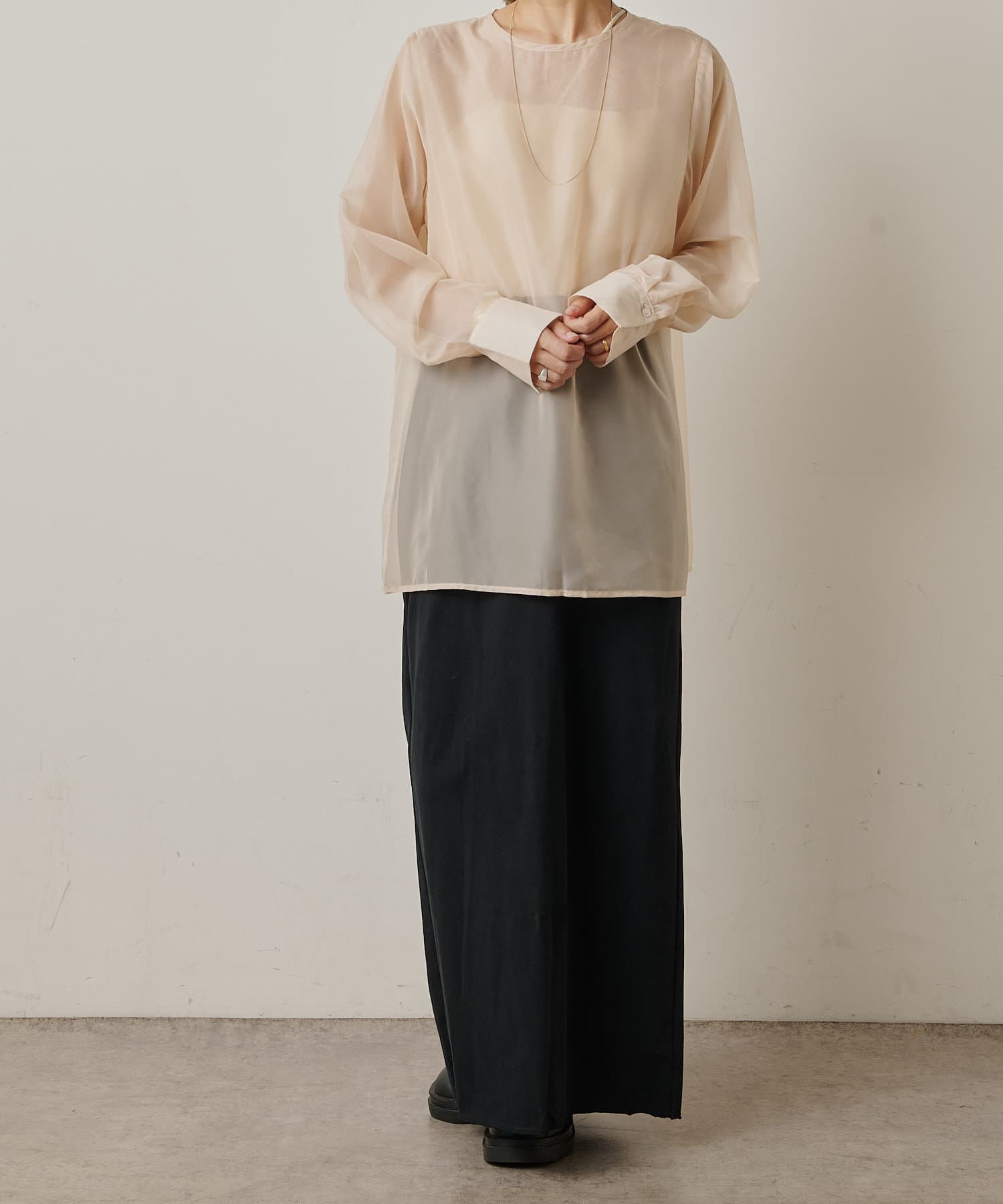 ・二重になっているシアー素材が着方次第でいろんな表情を見せてくれるブラウス。