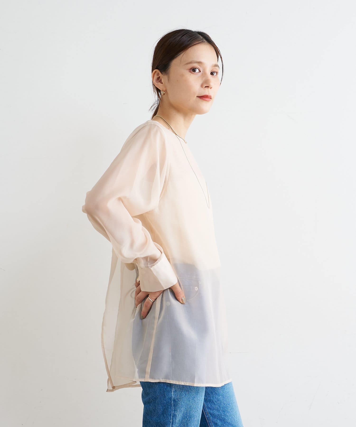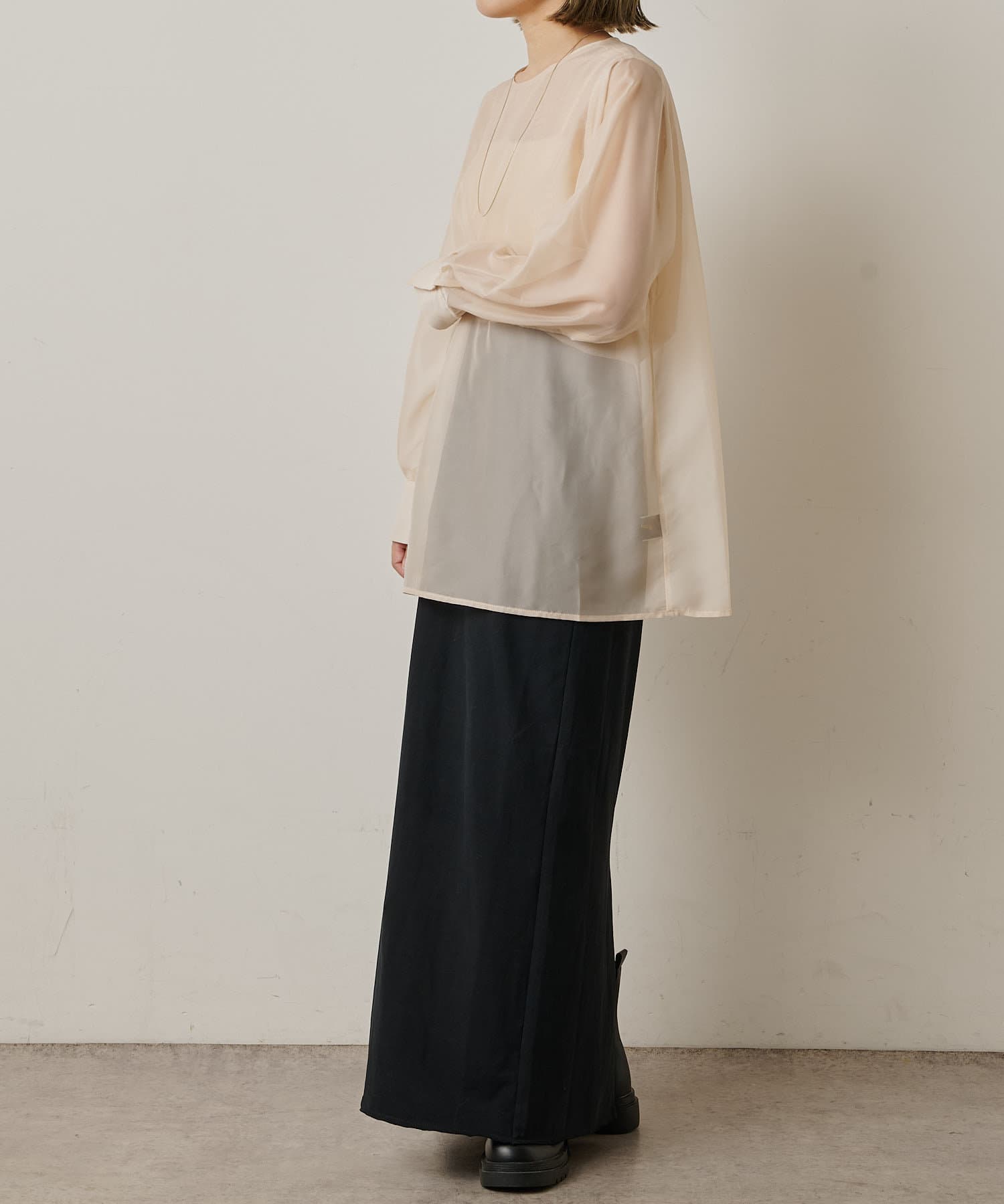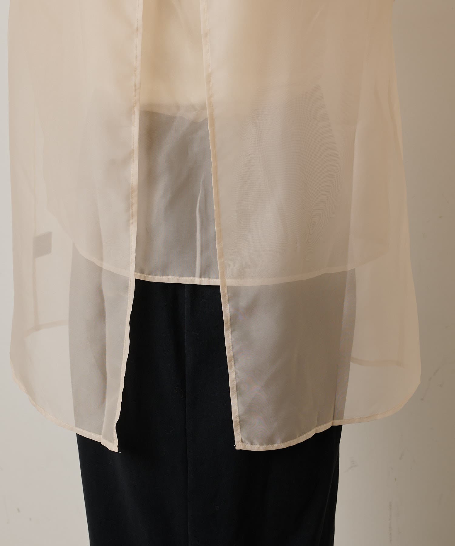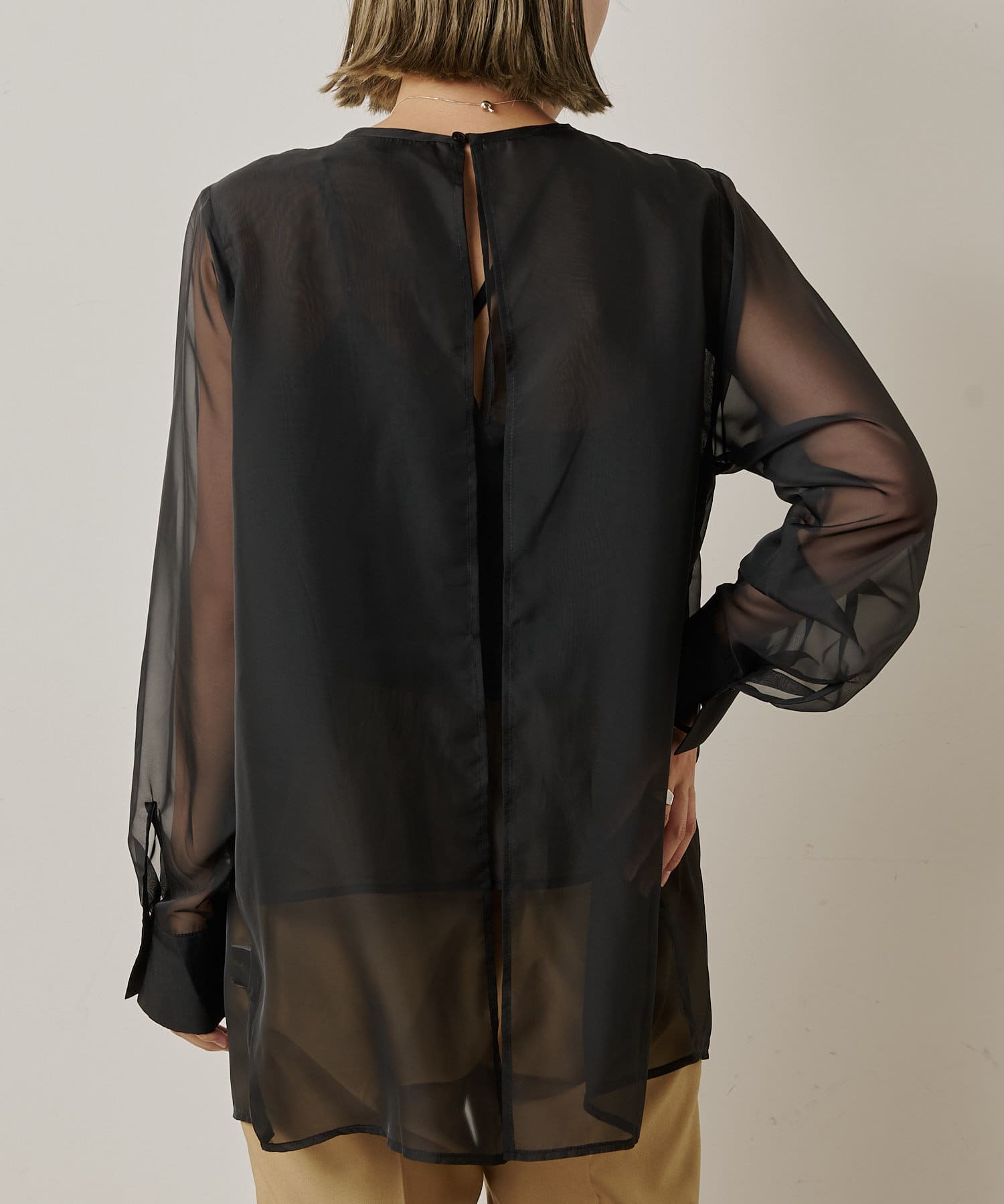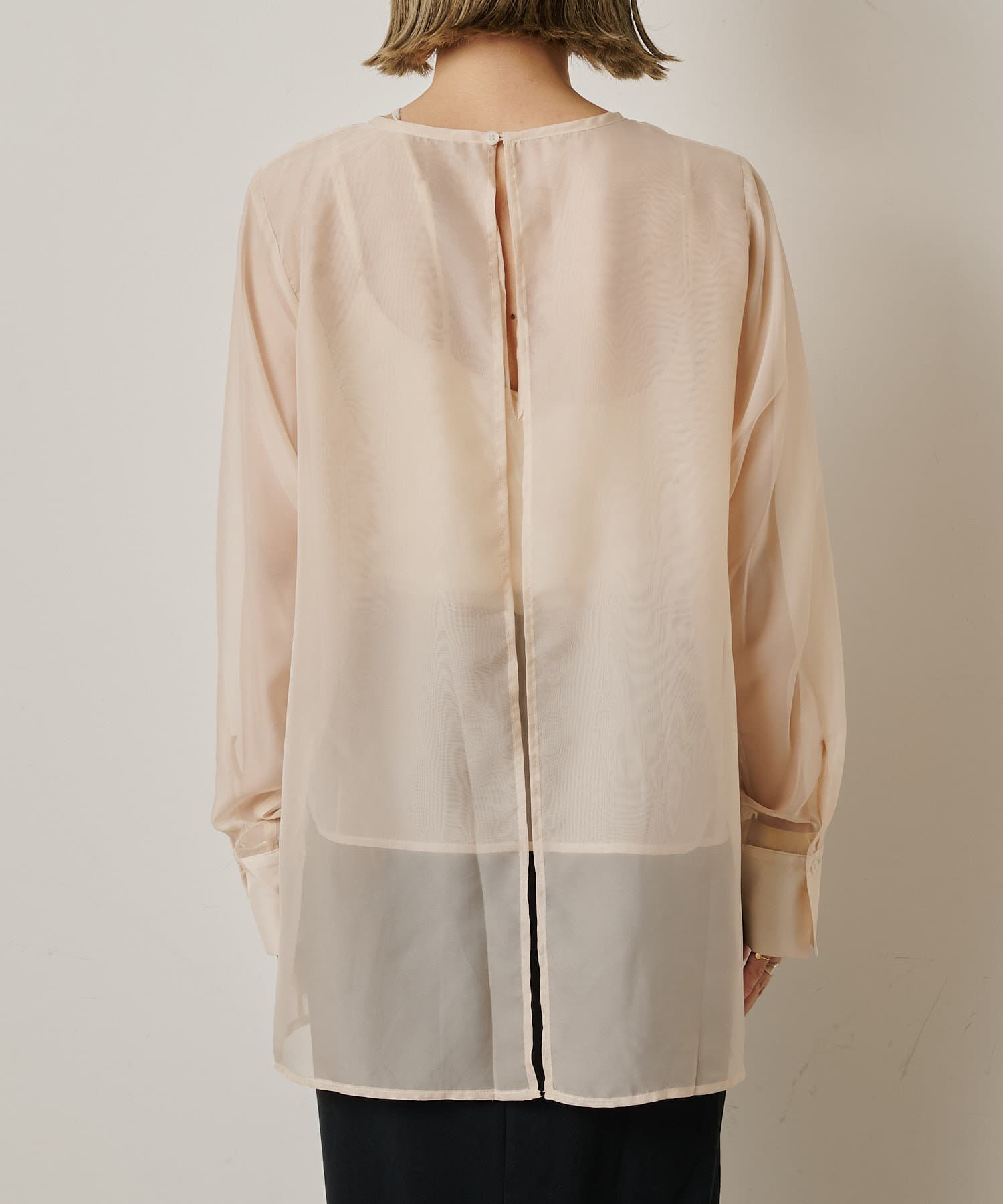 ・二重になっているシアー素材が着方次第でいろんな表情を見せてくれるブラウス。