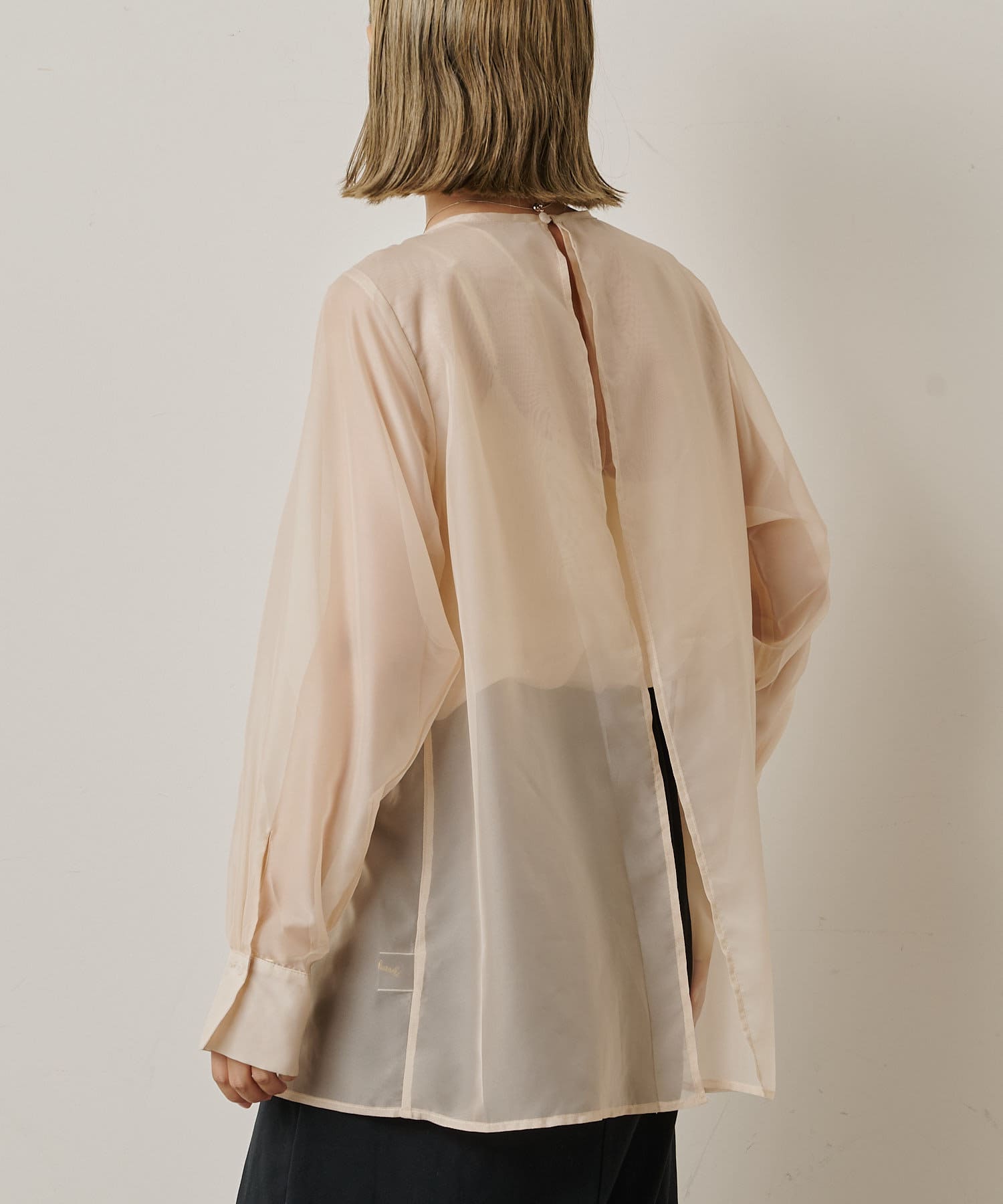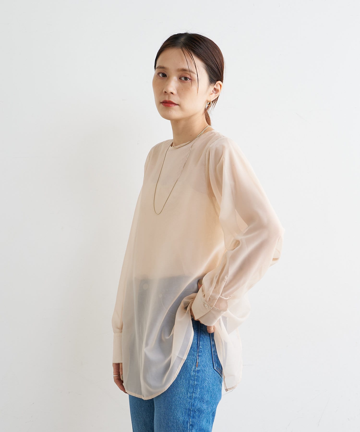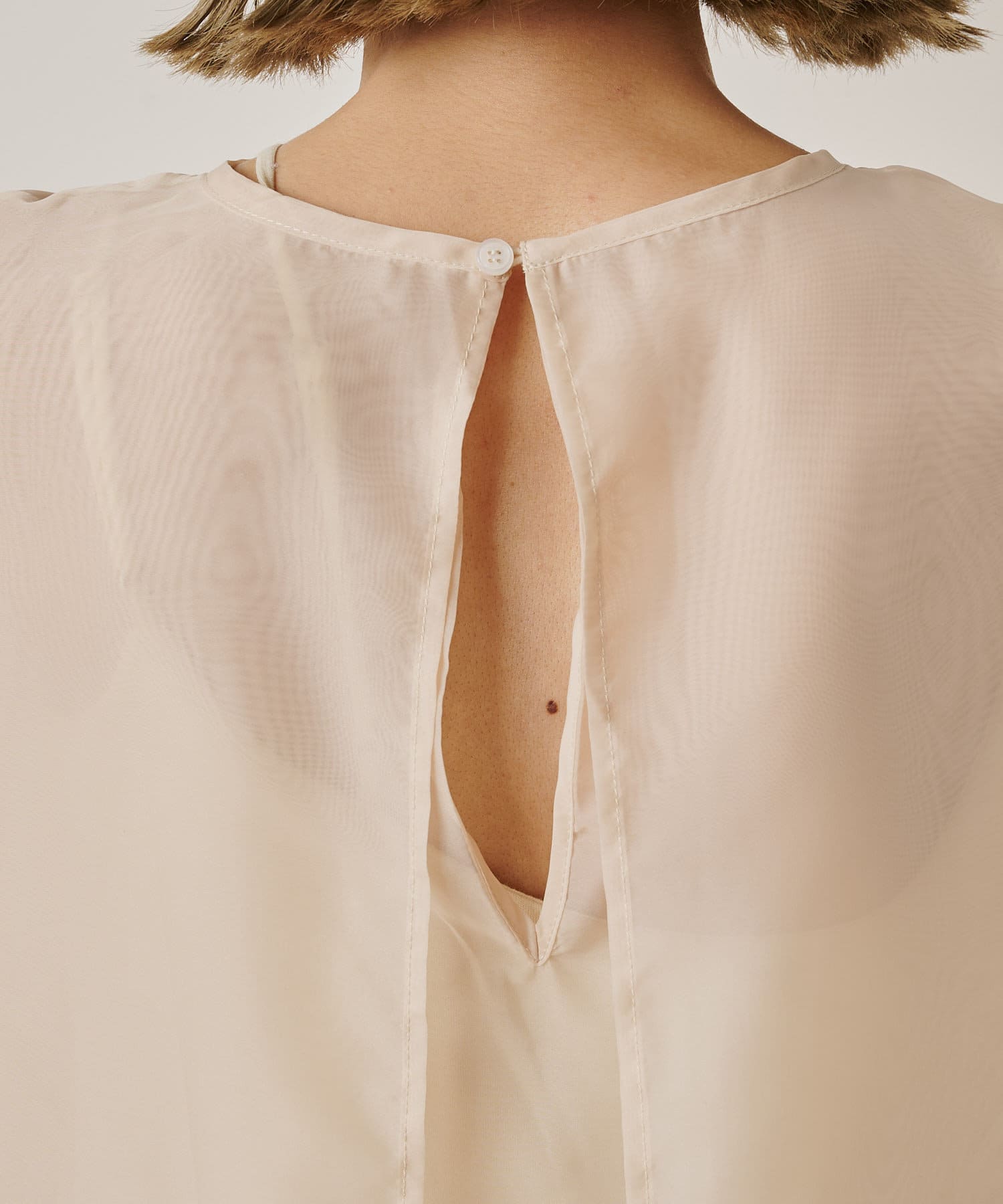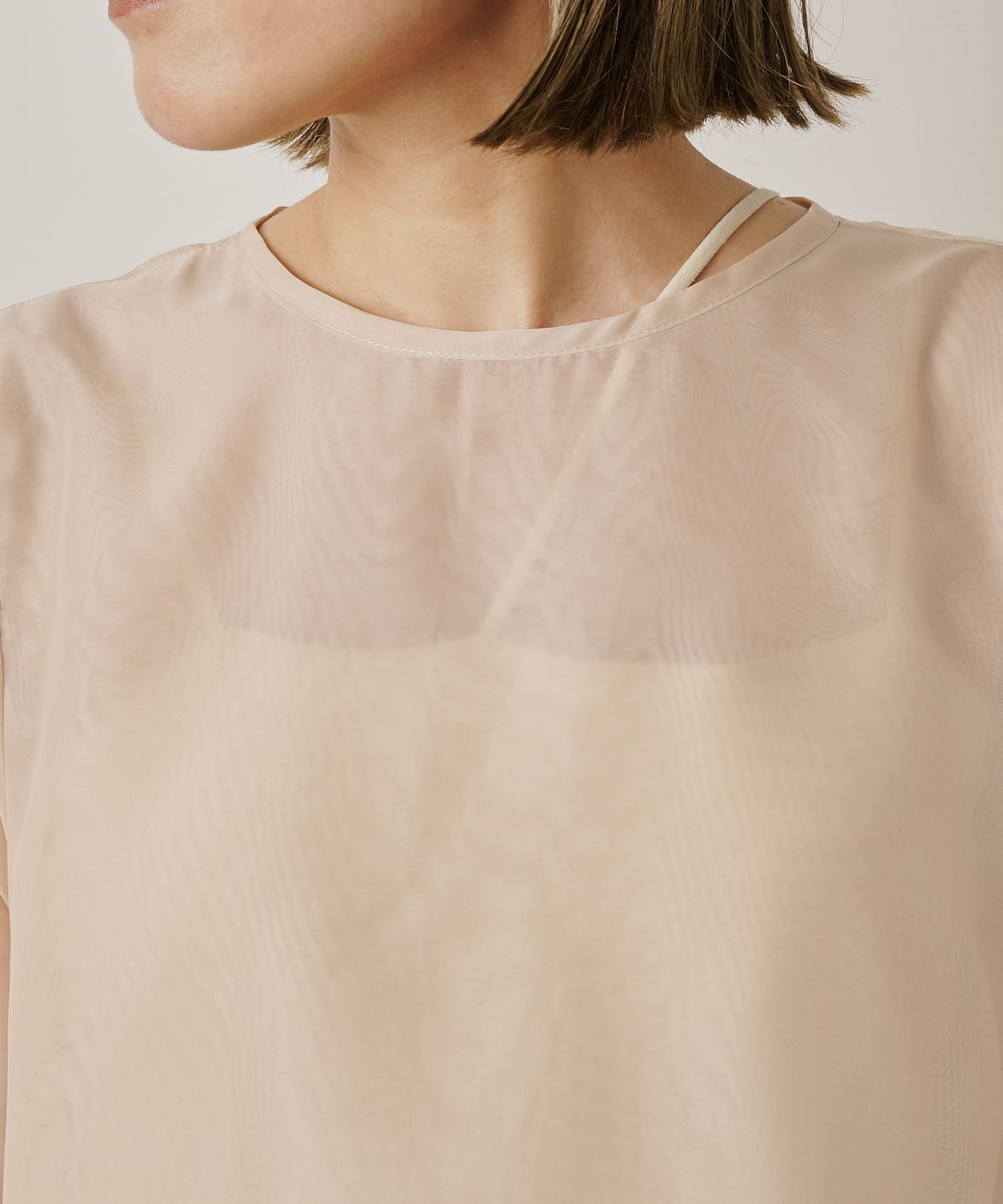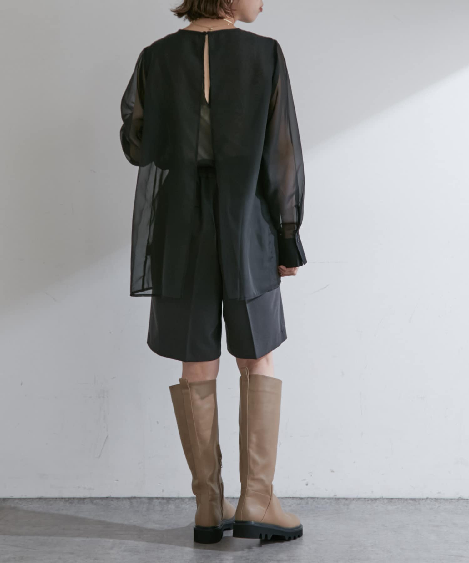 ・二重になっているシアー素材が着方次第でいろんな表情を見せてくれるブラウス。