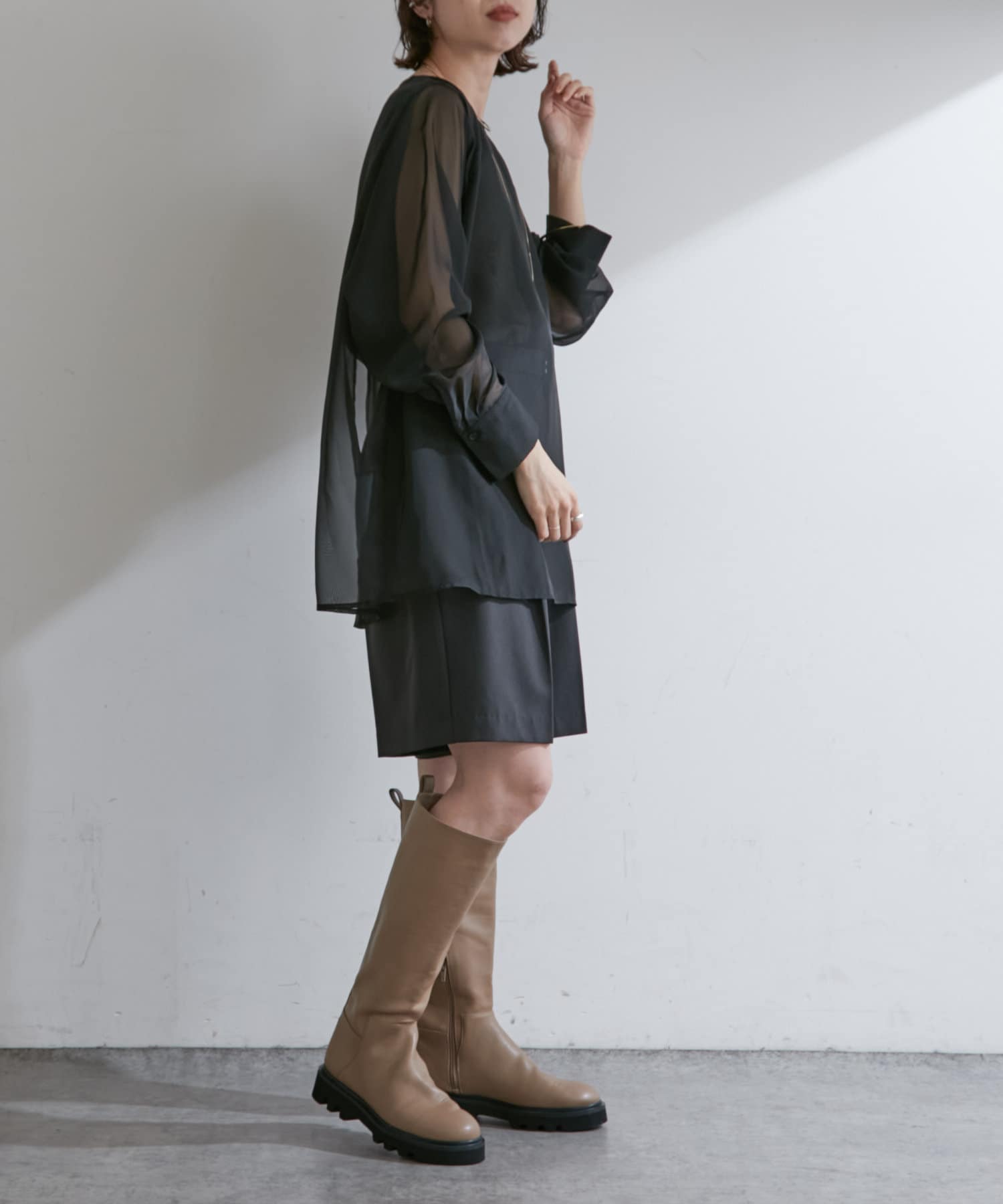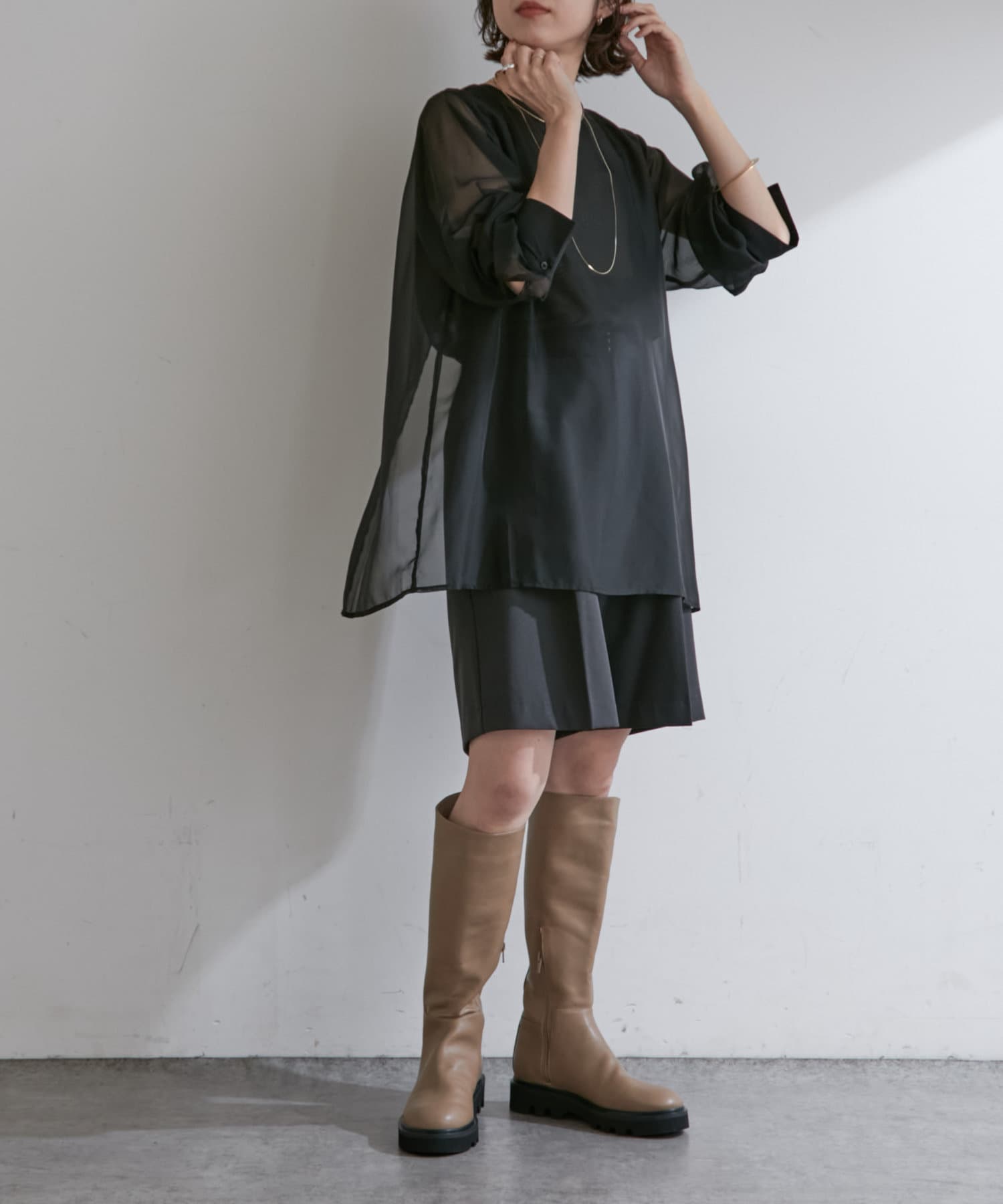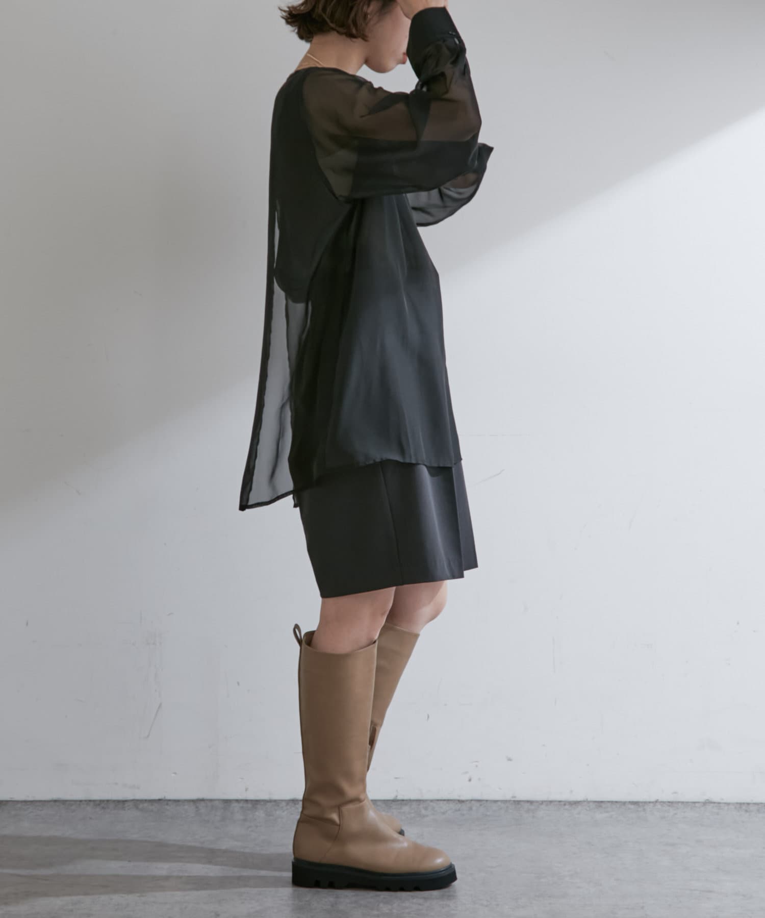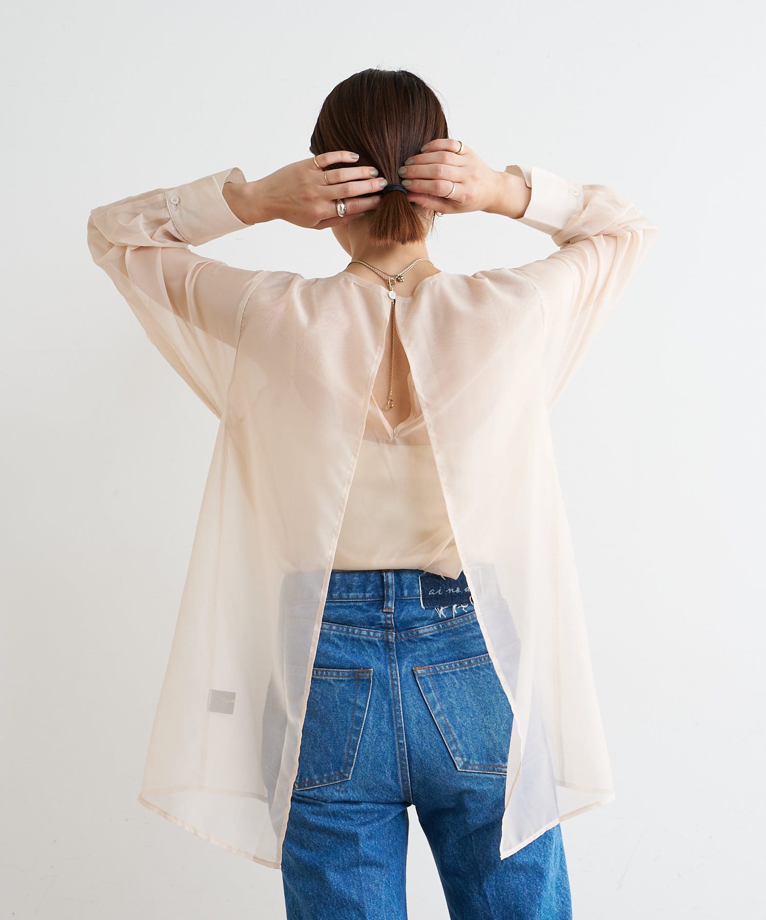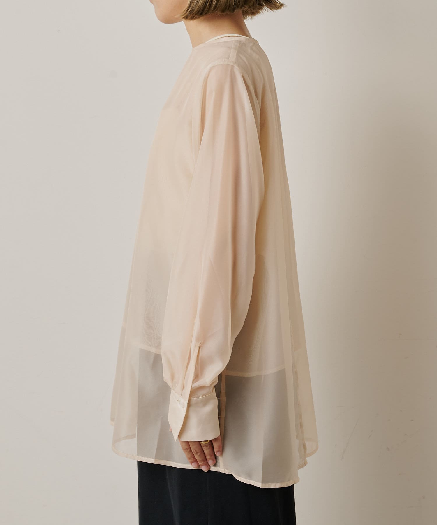 ・二重になっているシアー素材が着方次第でいろんな表情を見せてくれるブラウス。