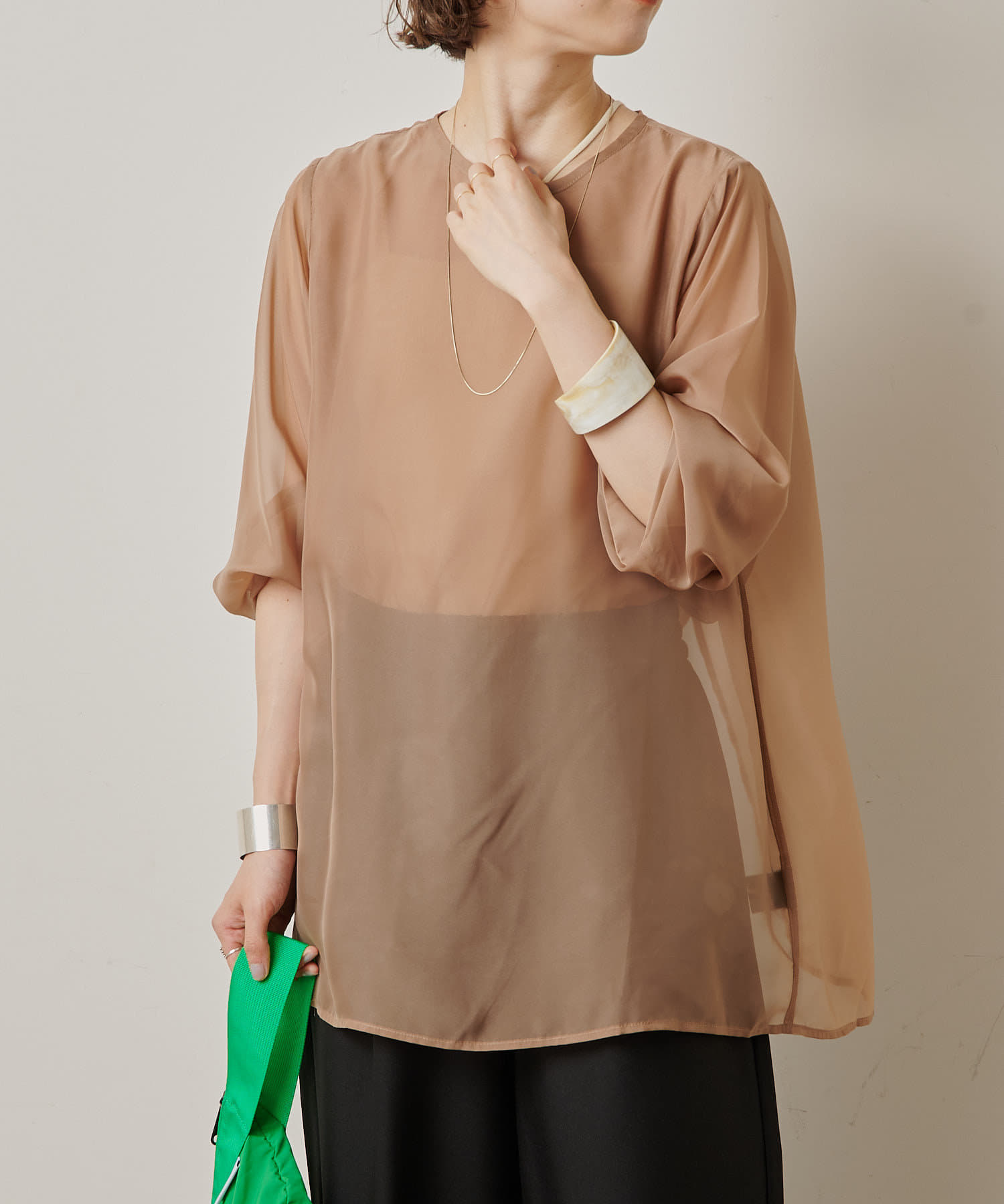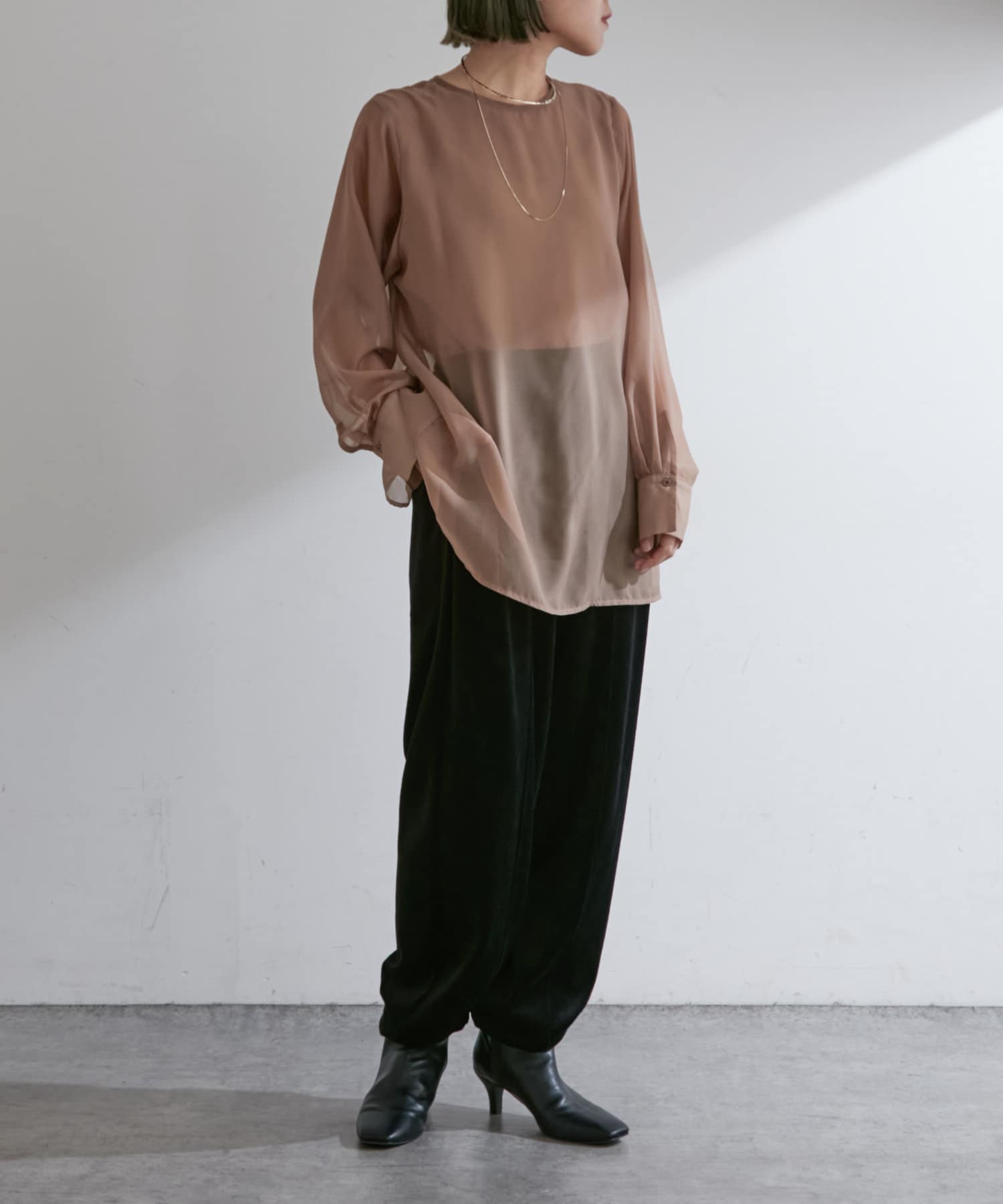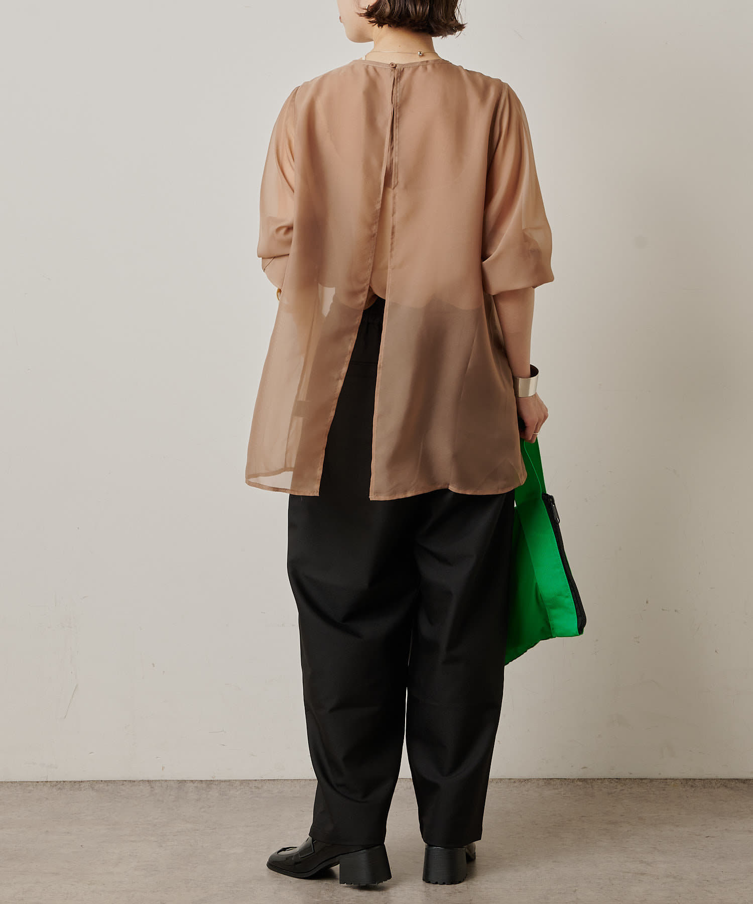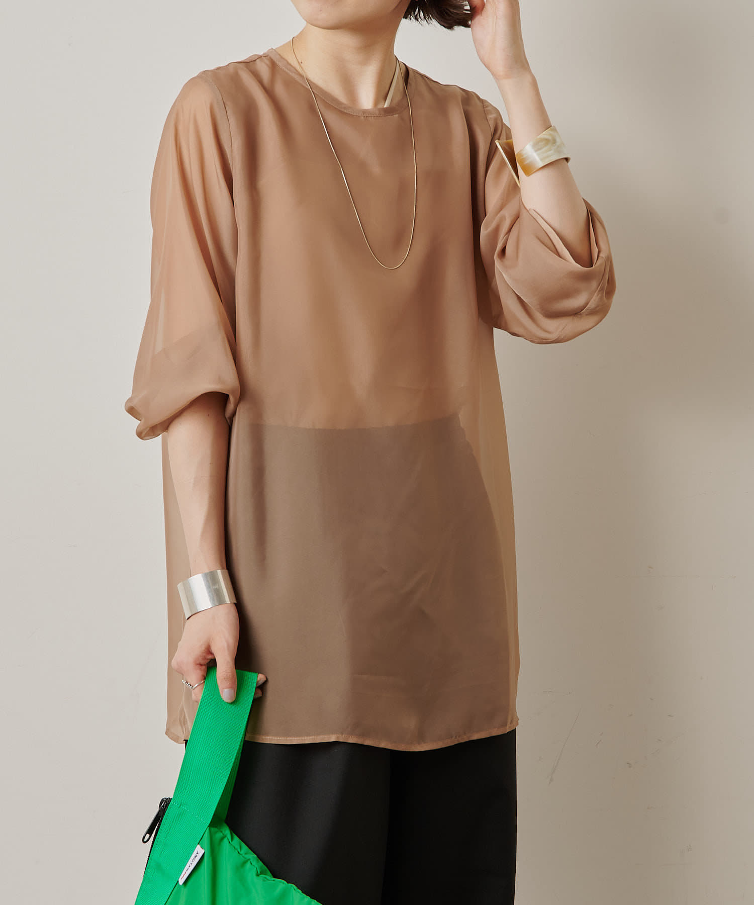 ふんわりとしたフォルムとシアー素材が女性らしいブラウス