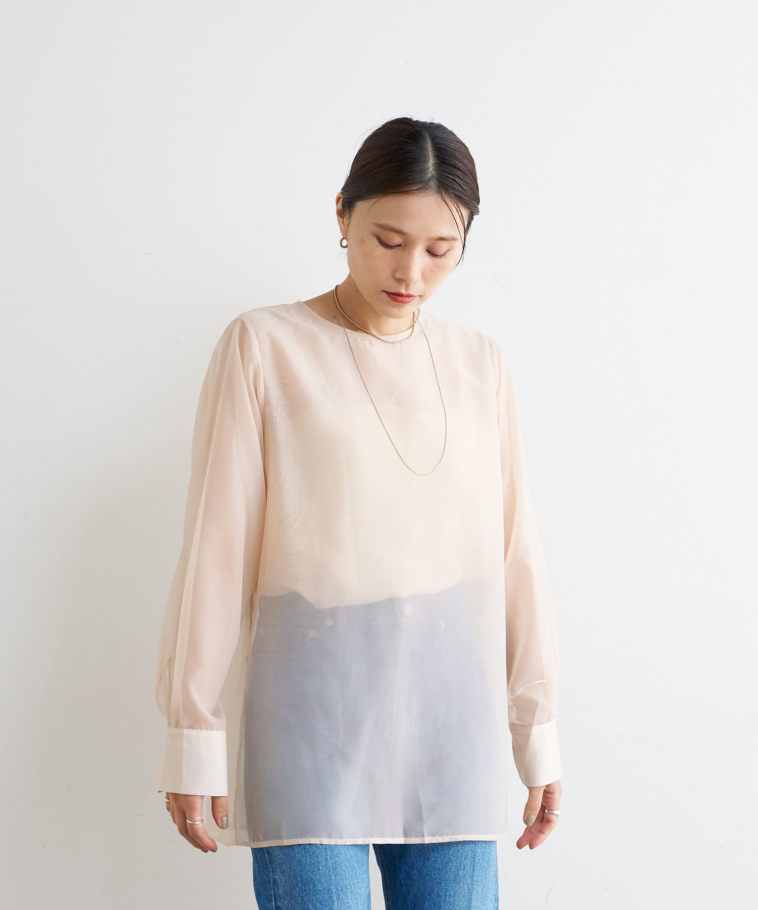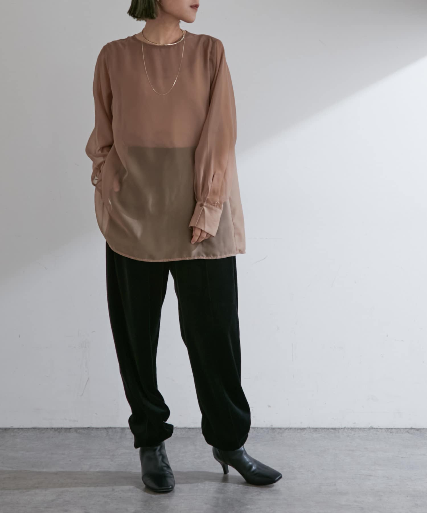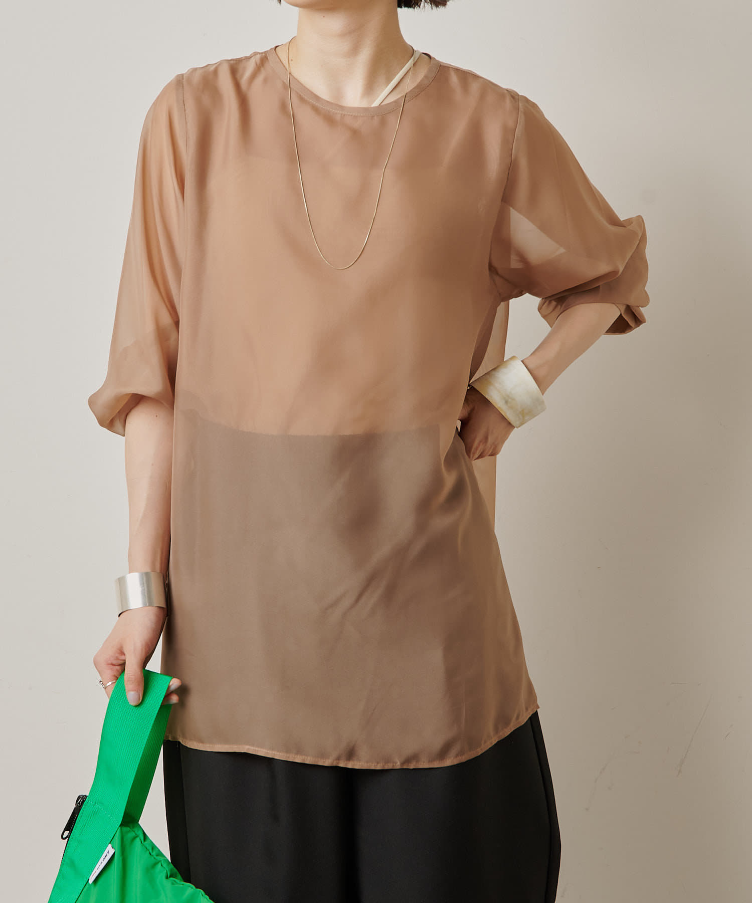 ふんわりとしたフォルムとシアー素材が女性らしいブラウス