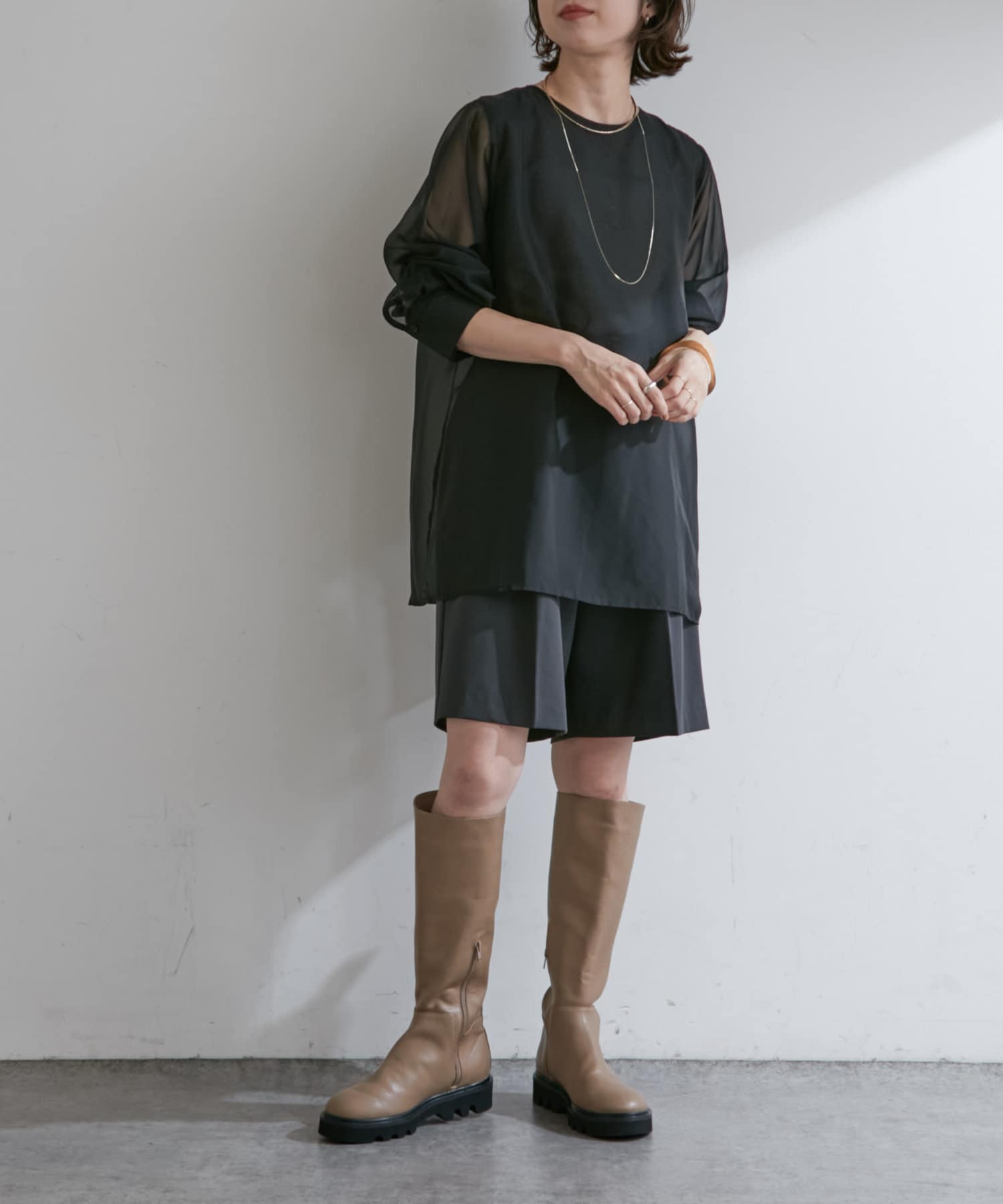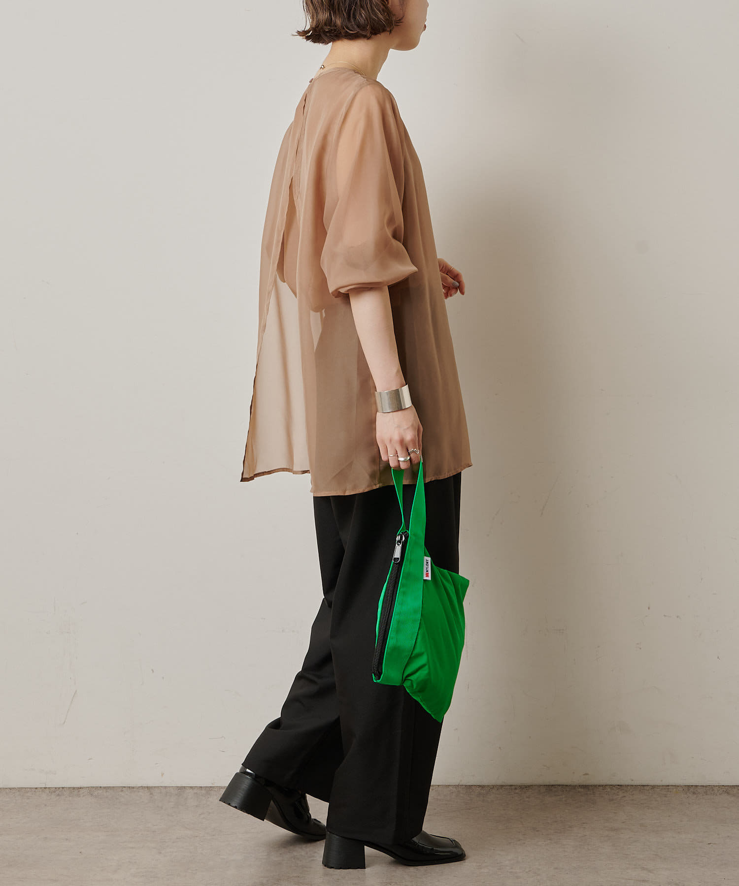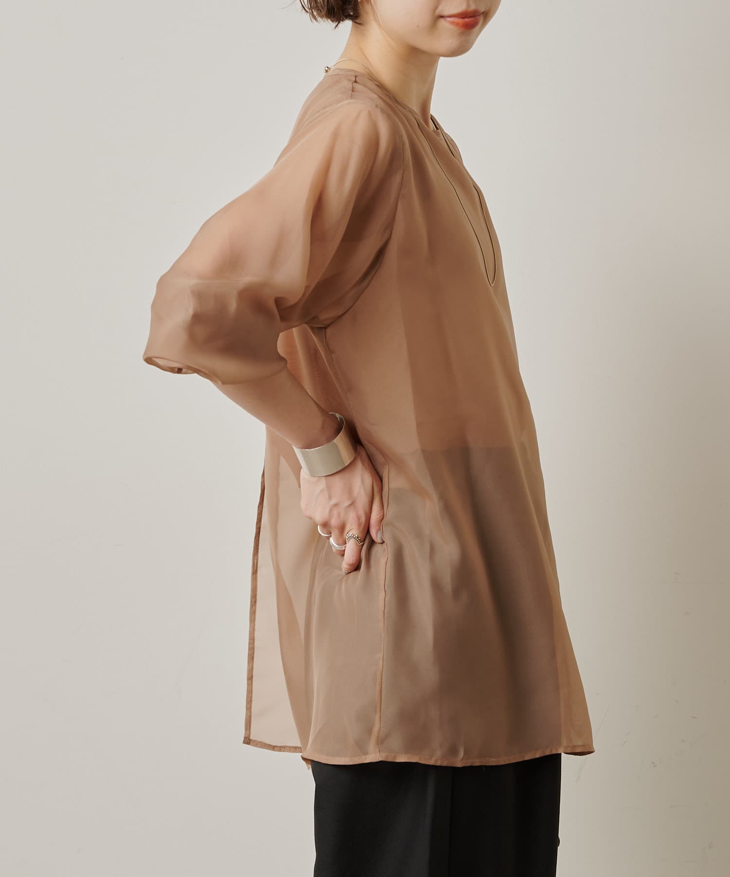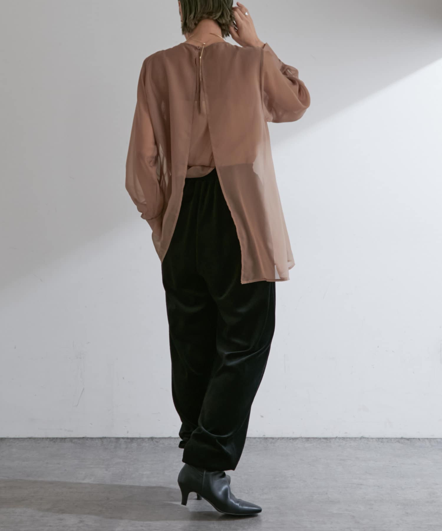 ふんわりとしたフォルムとシアー素材が女性らしいブラウス