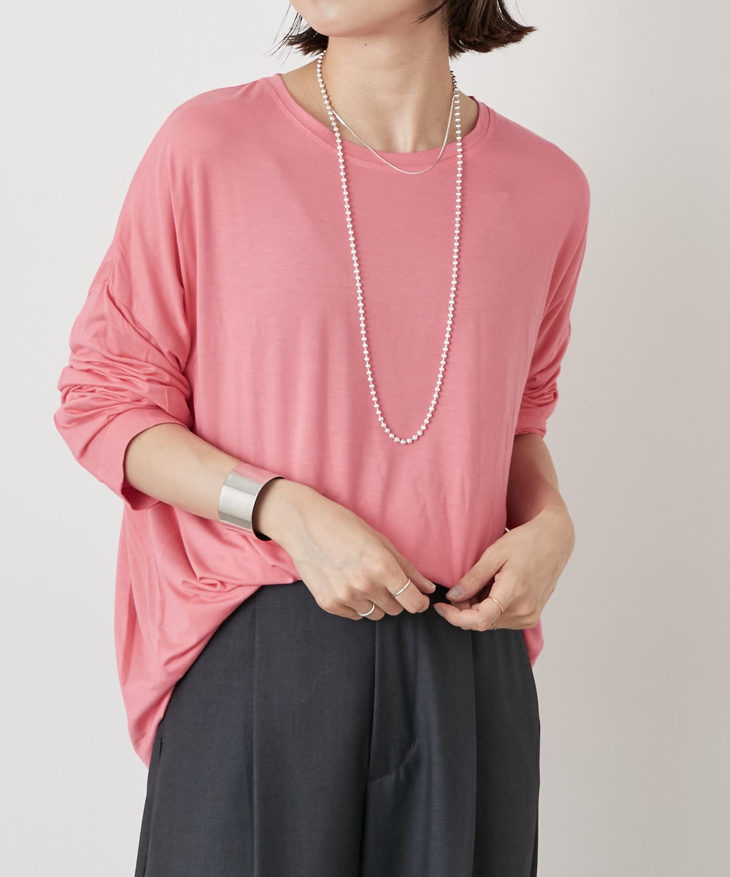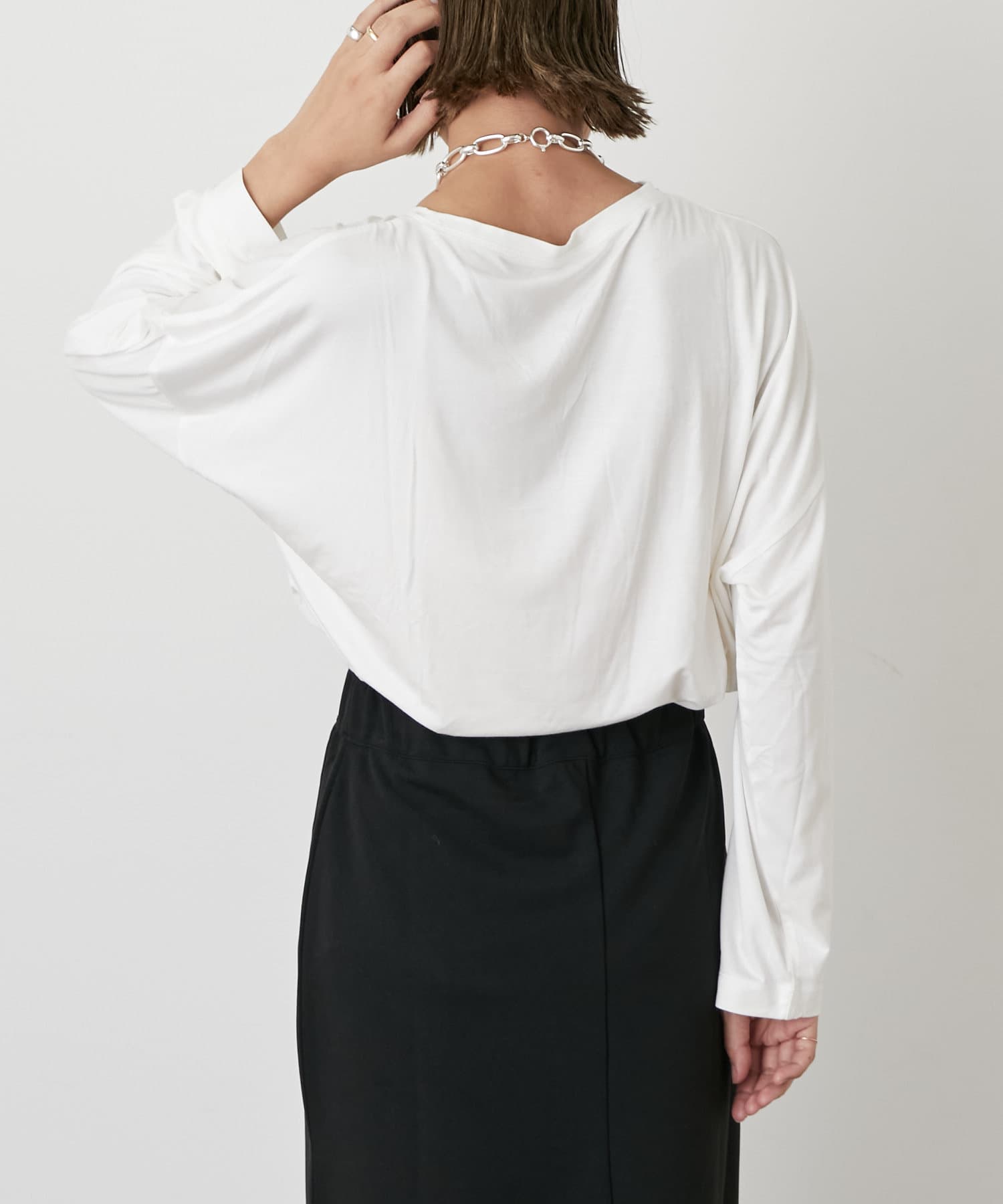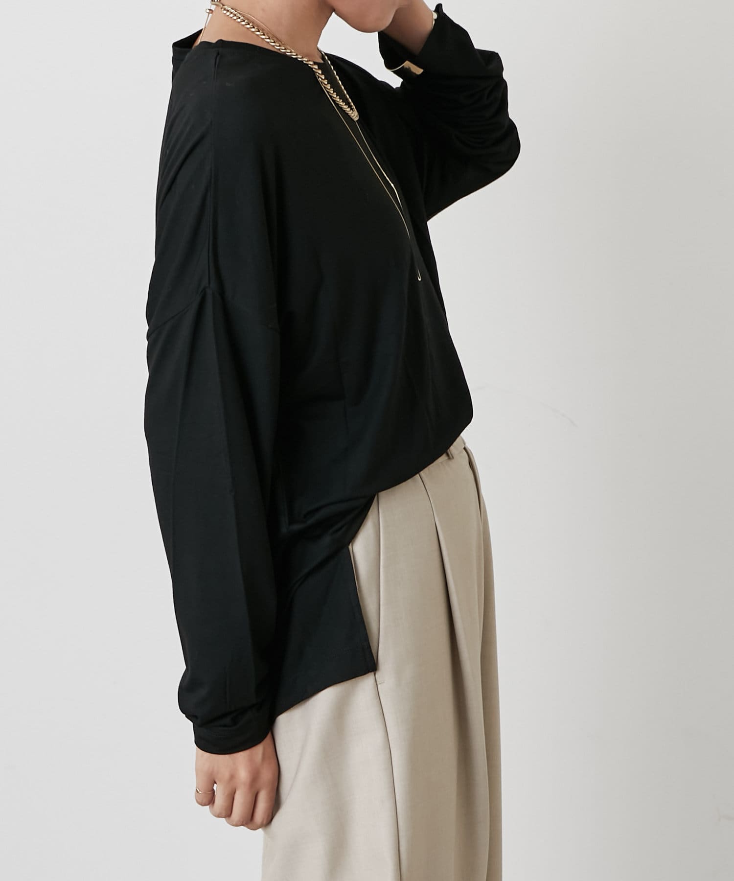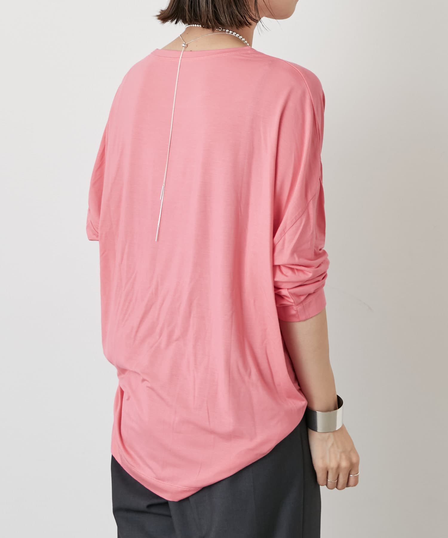 ・柔らかく肌馴染みの良い生地を使用しており、程よいシアー感が今年らしいレイヤードにもぴったりな一枚。