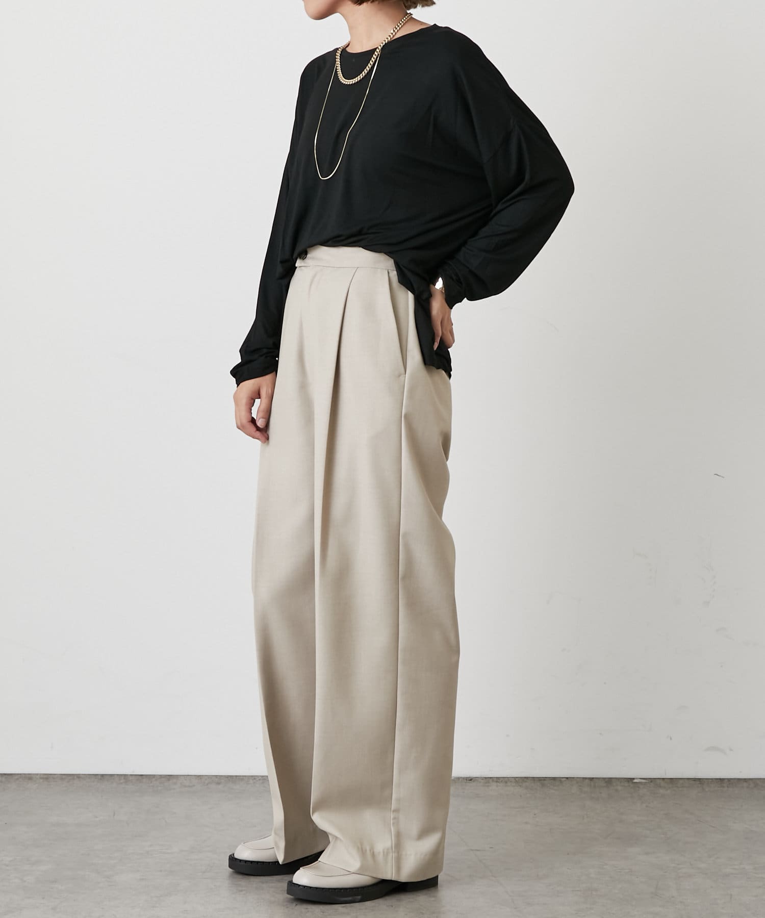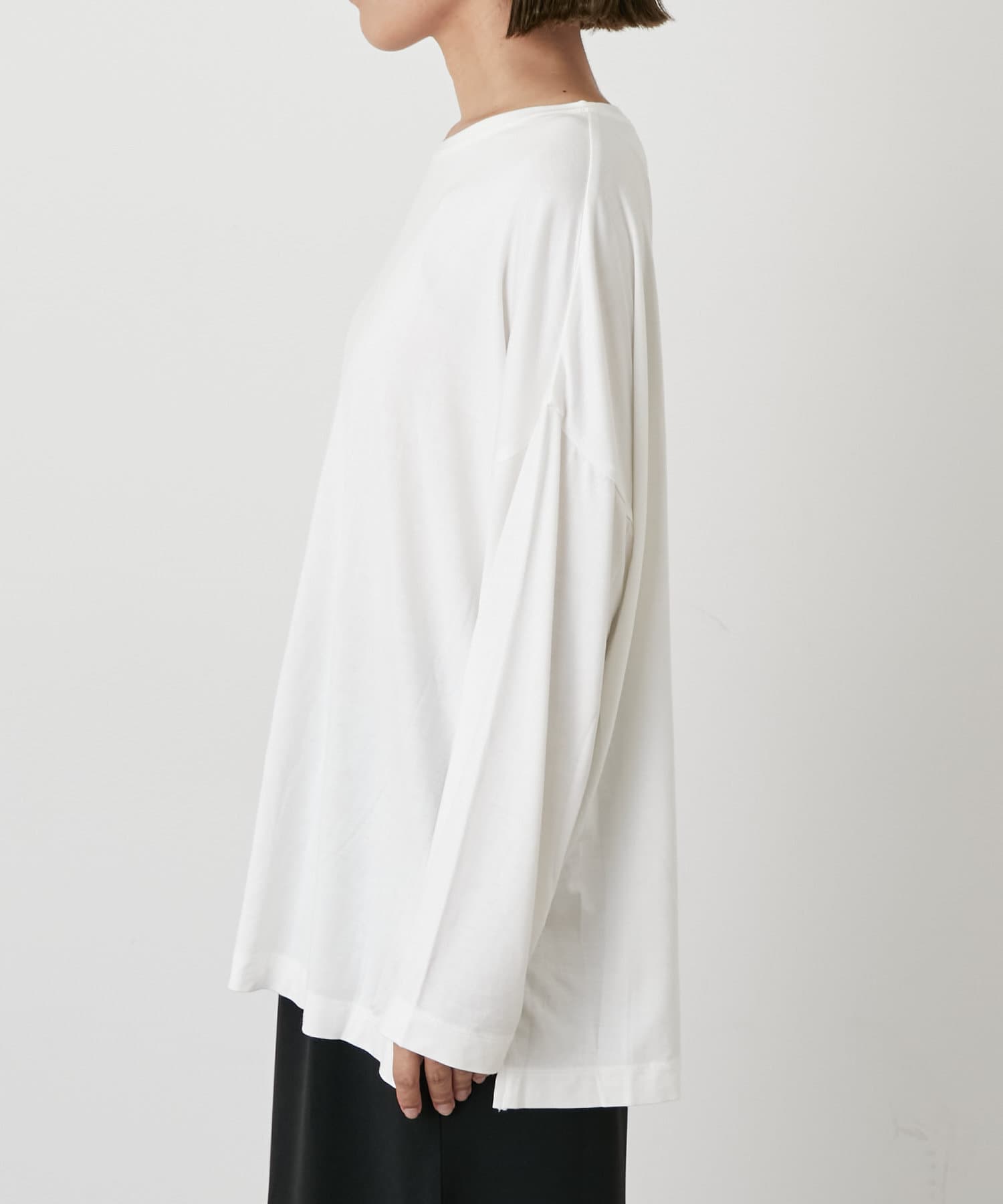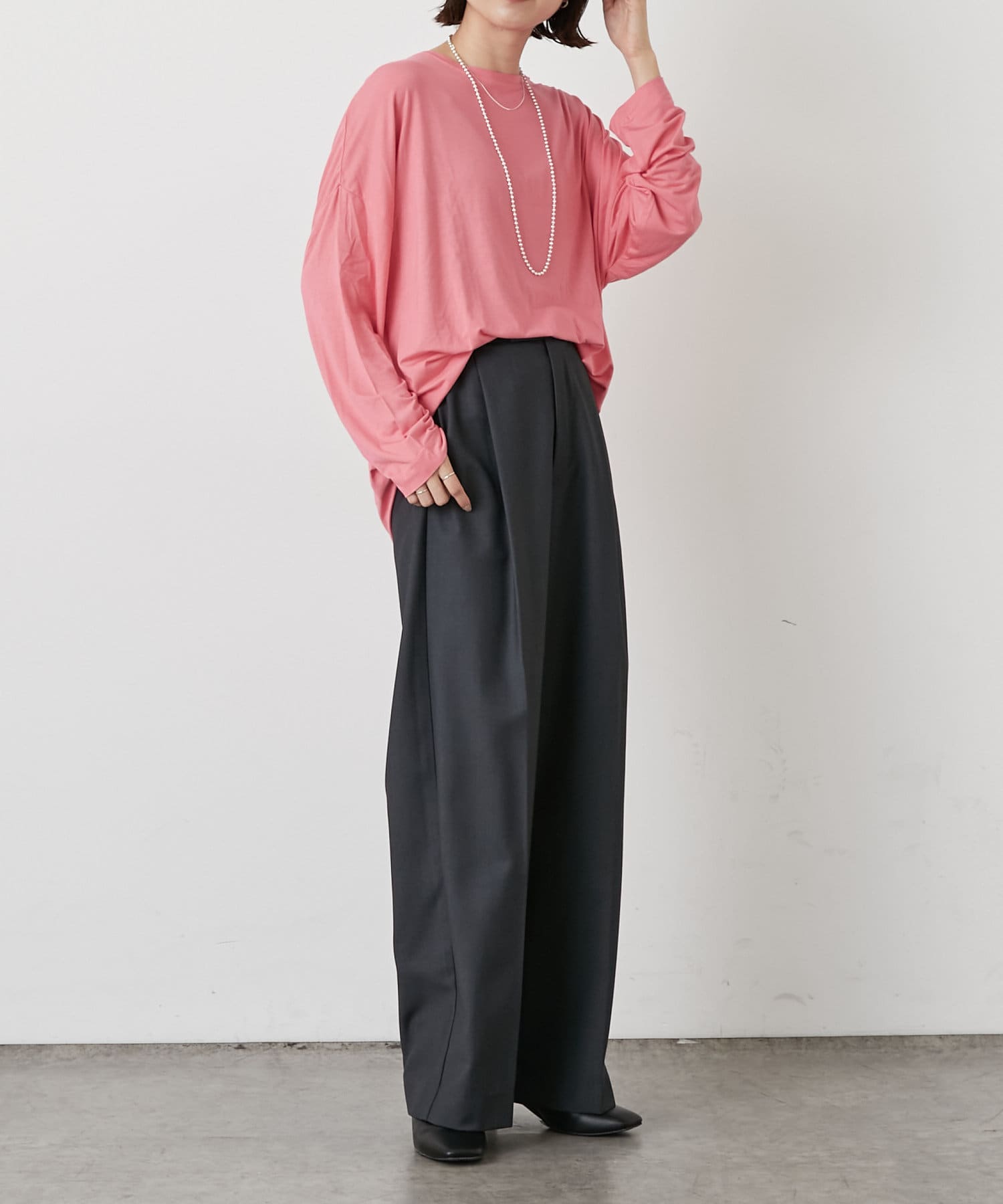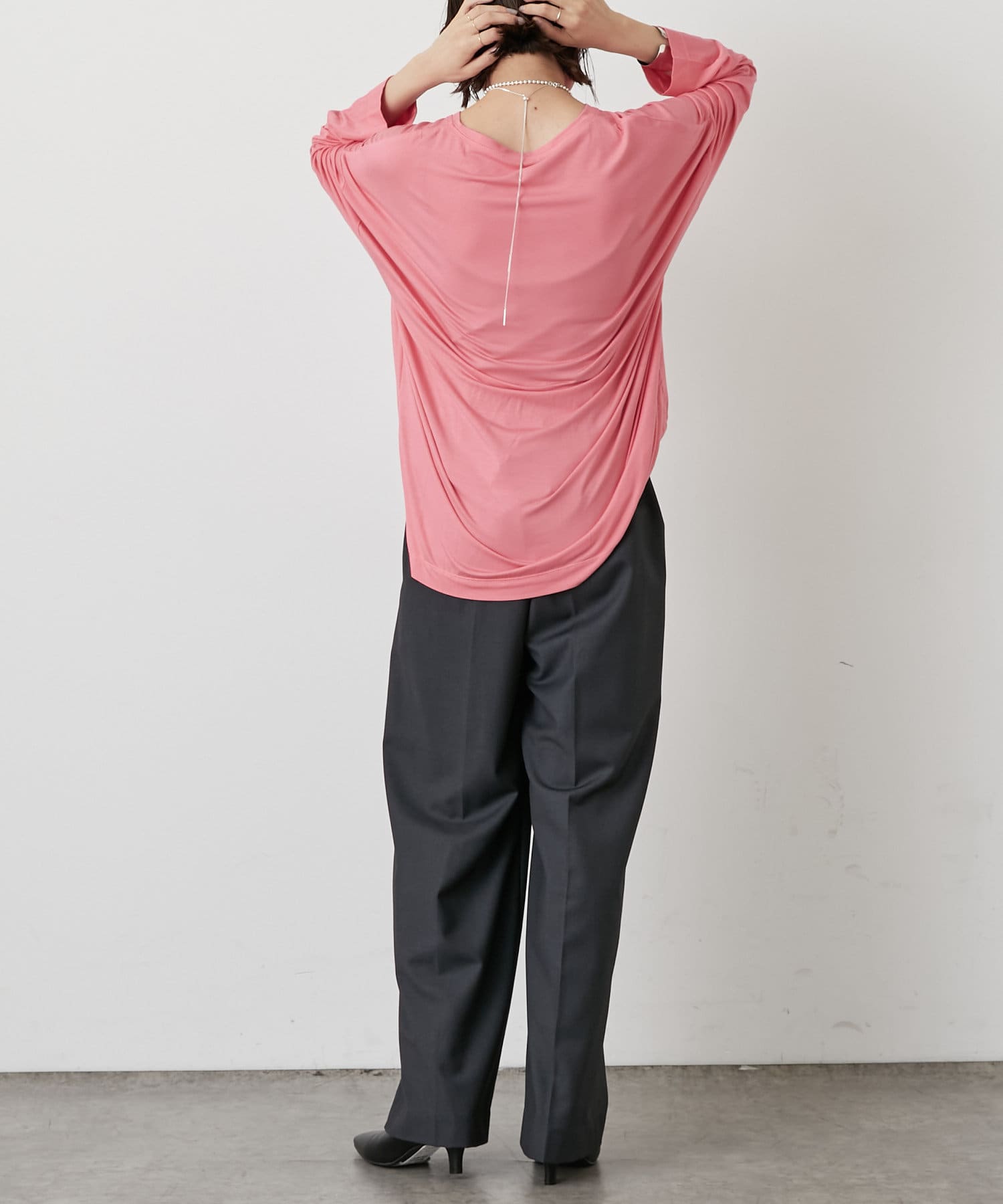 ・柔らかく肌馴染みの良い生地を使用しており、程よいシアー感が今年らしいレイヤードにもぴったりな一枚。