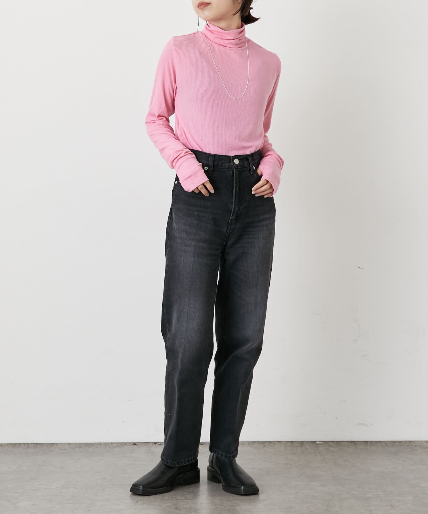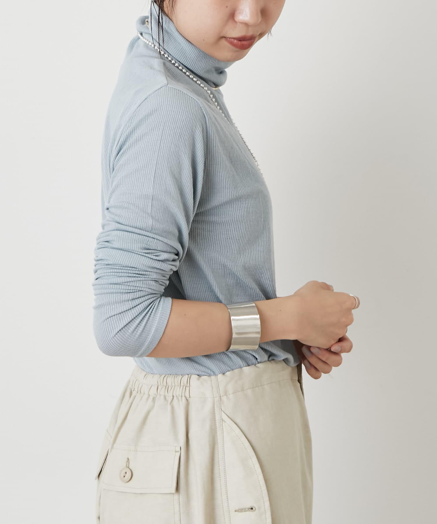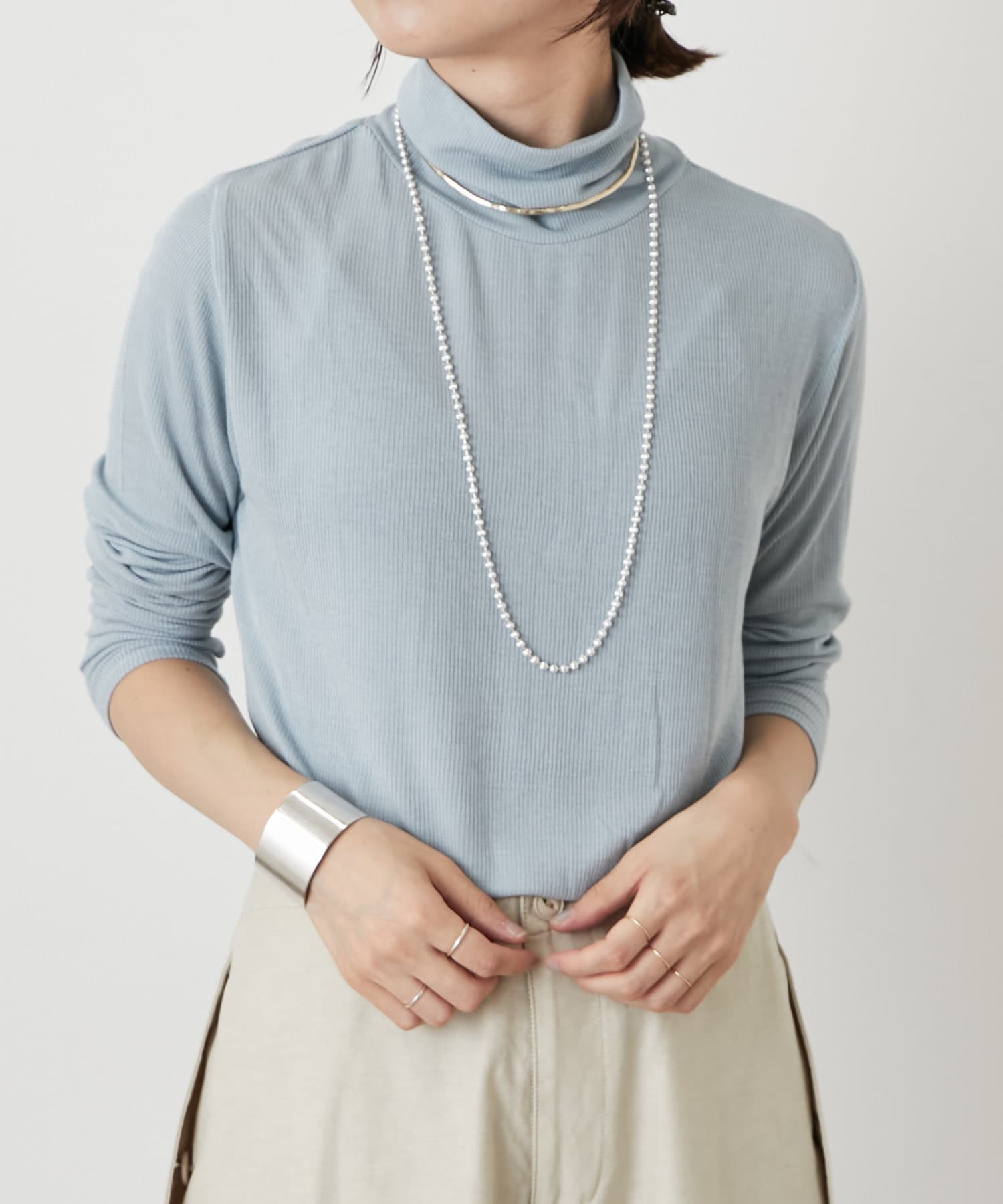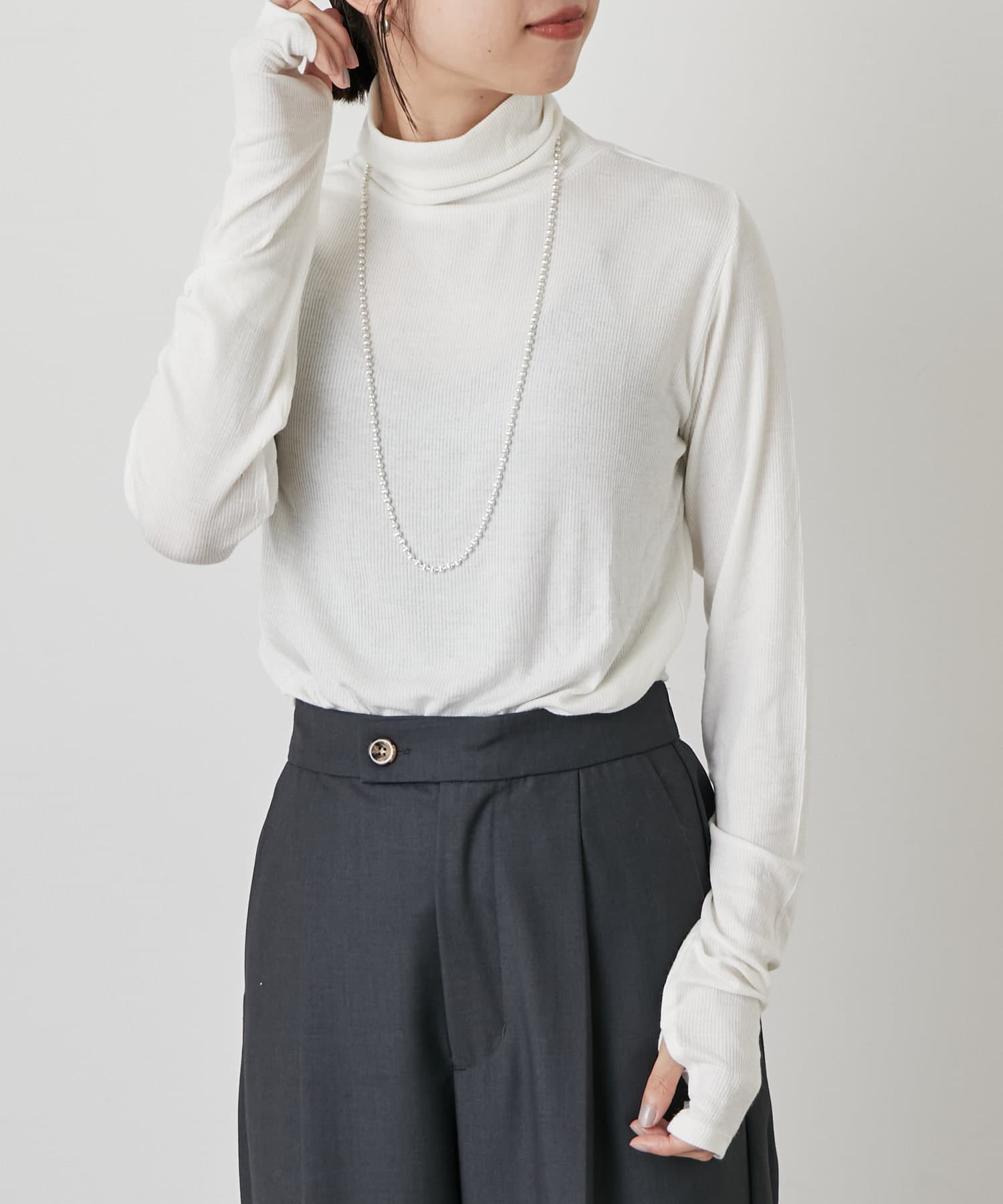 ・タイトなシルエットが女性らしく、重くならない抜け感のあるハイネックです。