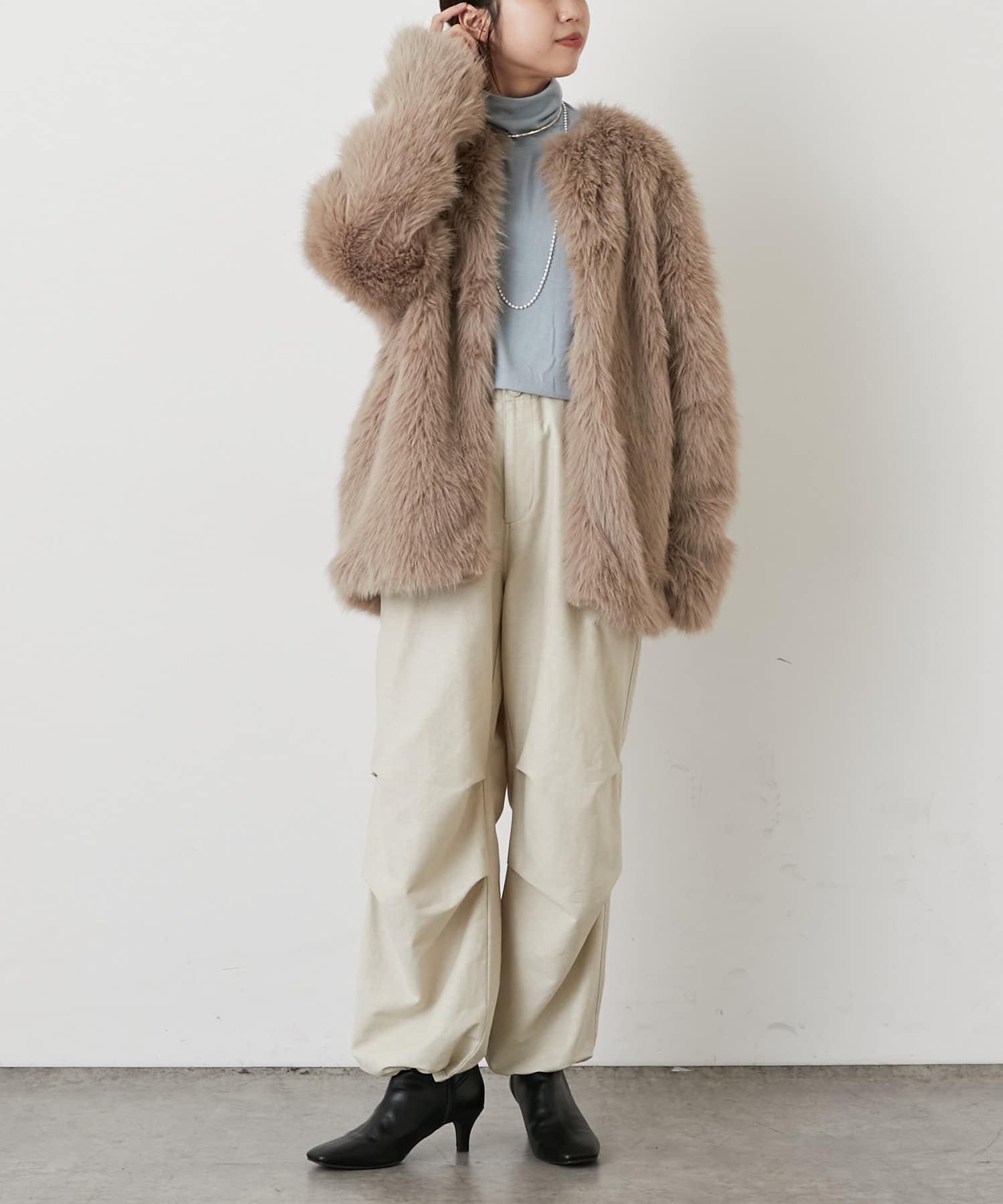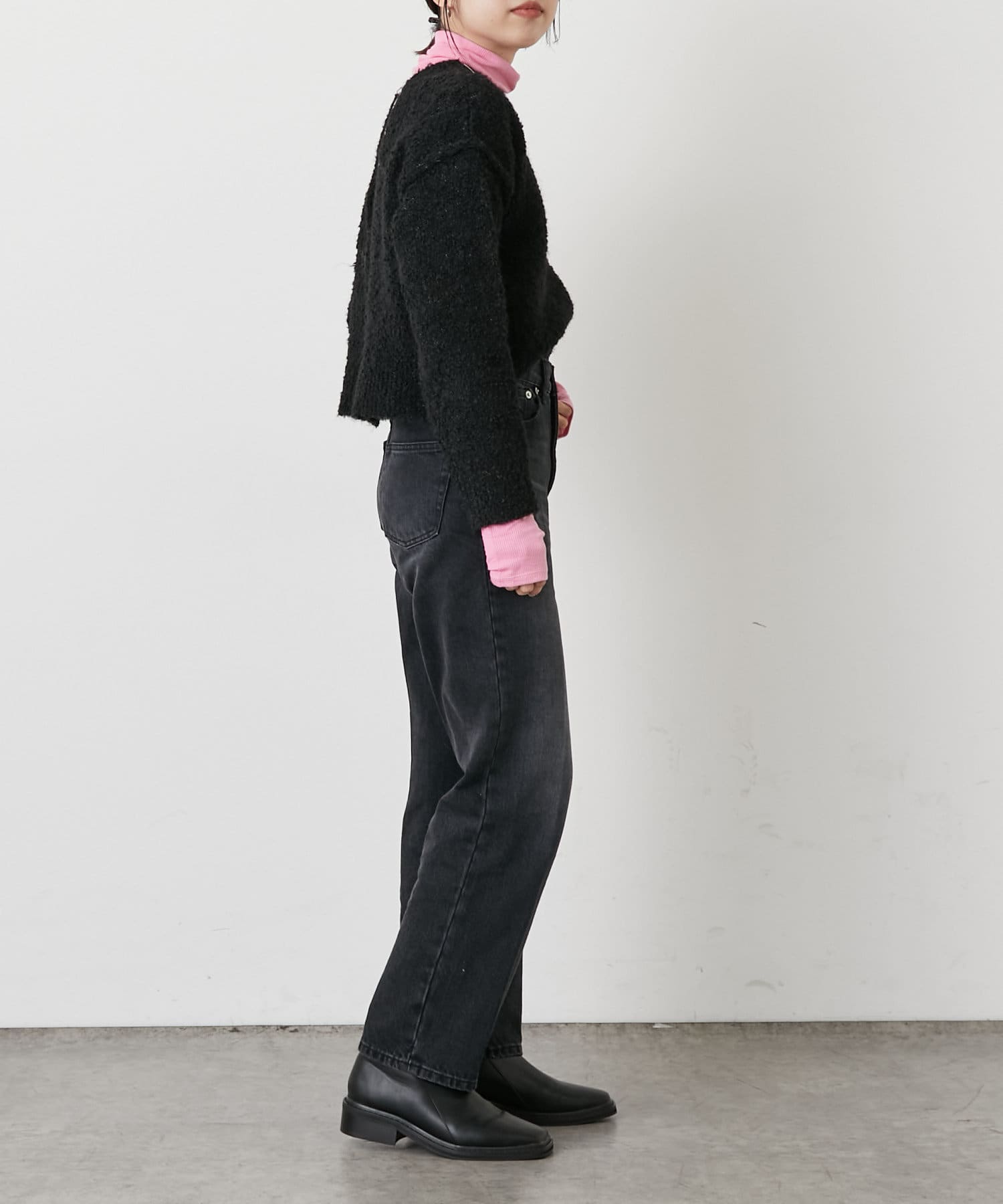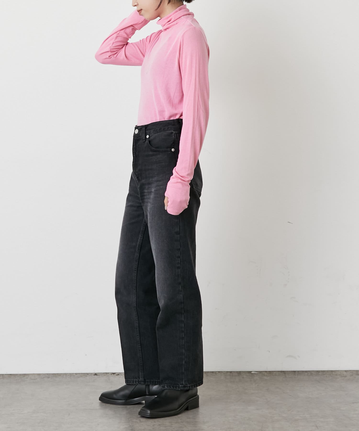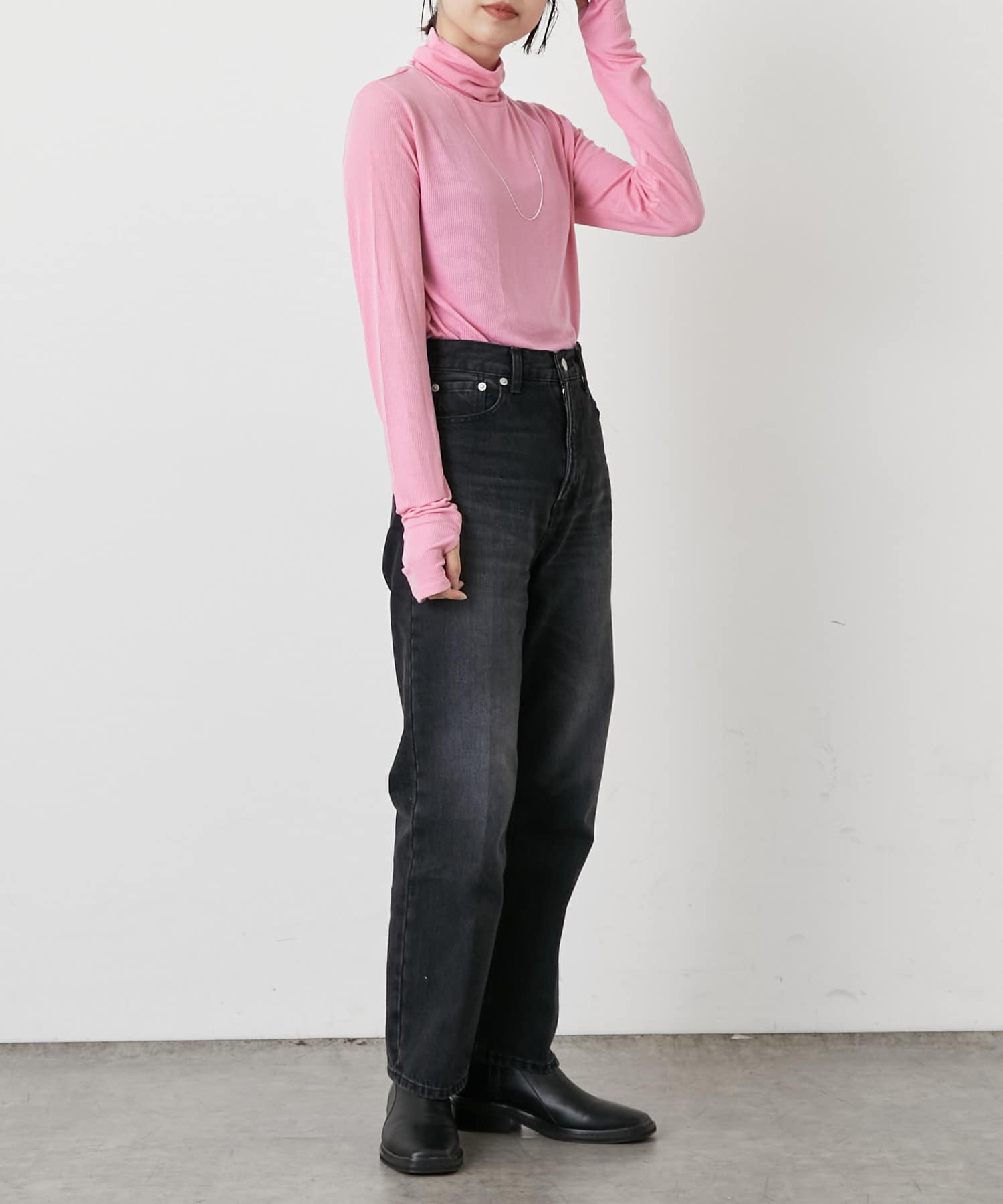 ・タイトなシルエットが女性らしく、重くならない抜け感のあるハイネックです。
