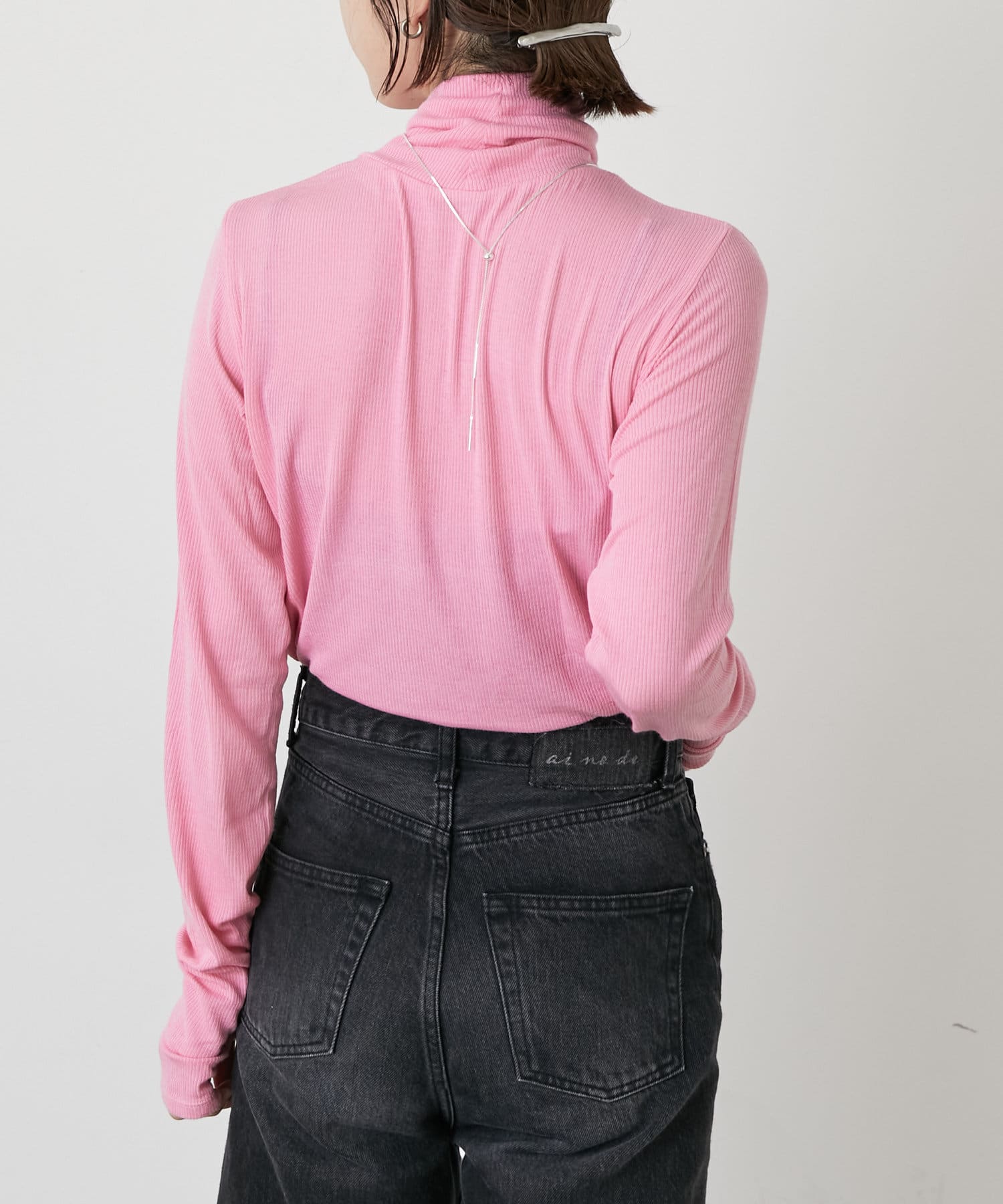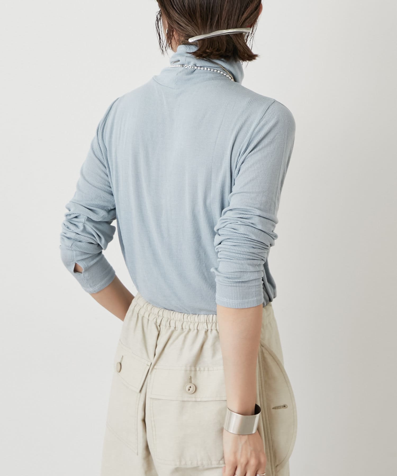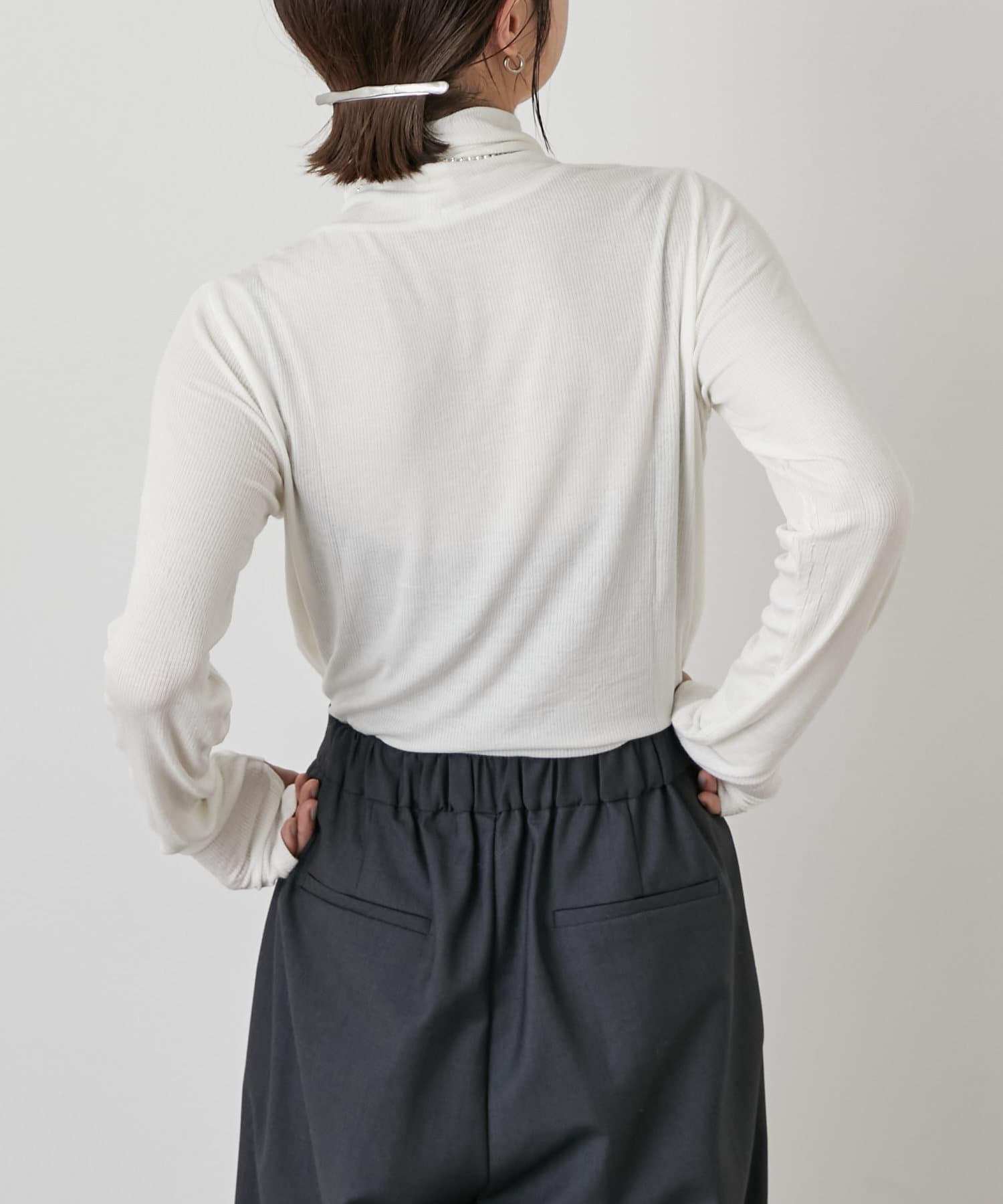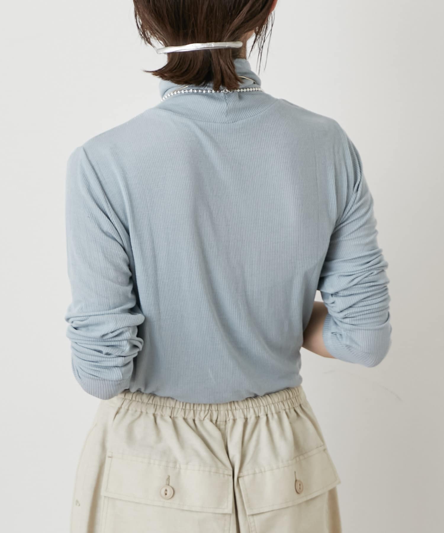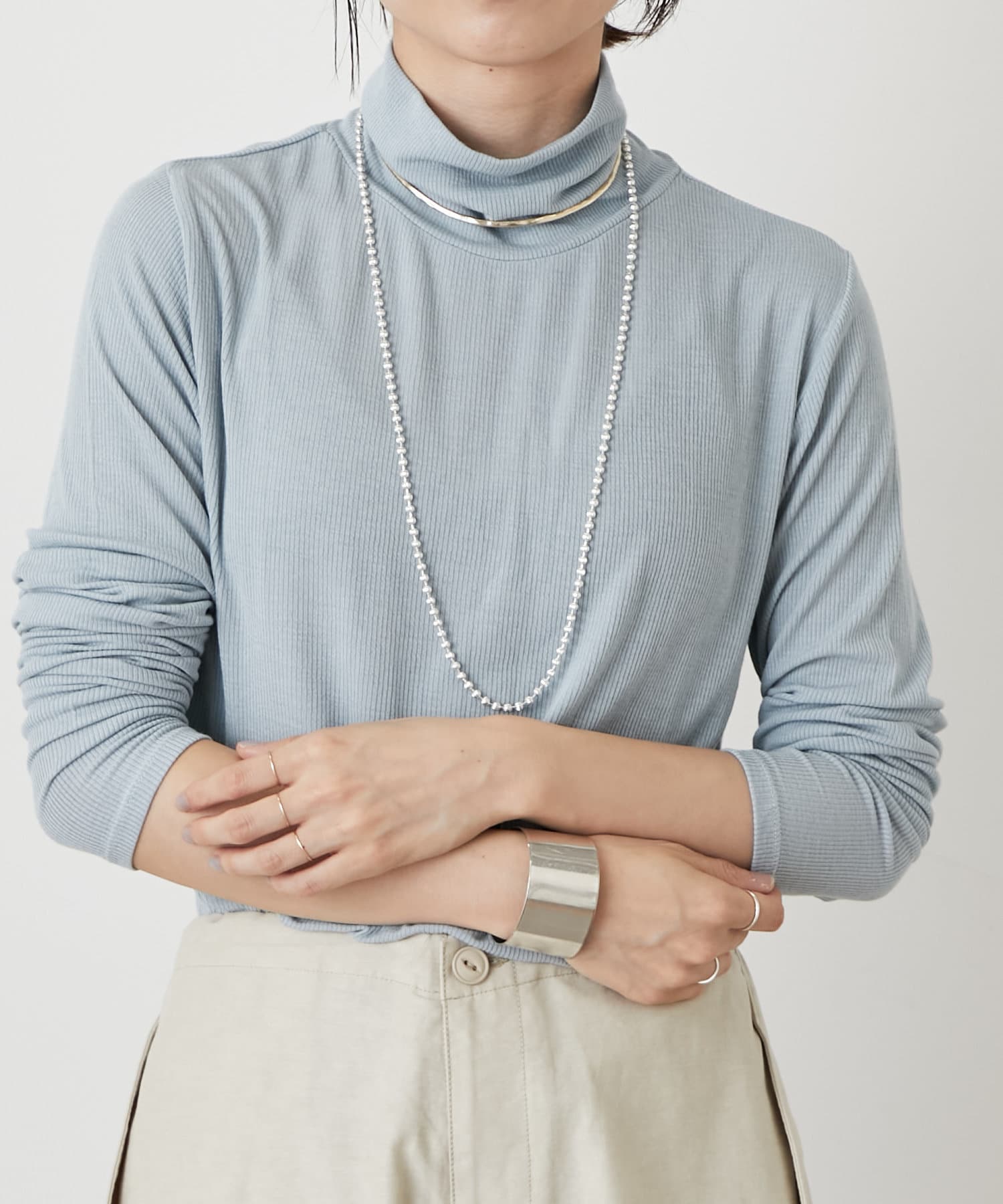 ・ほどよいシアー感で、秋の立ちあがりから春先まで着られるハイネックプルオーバー。