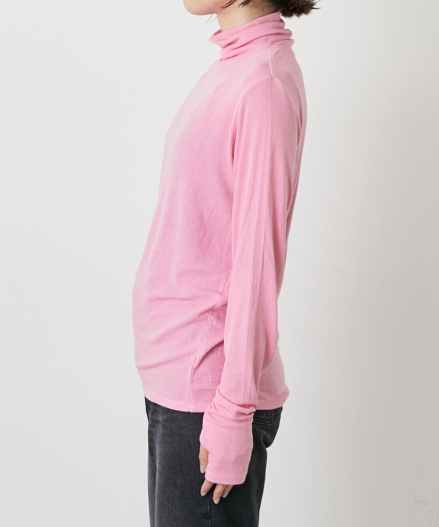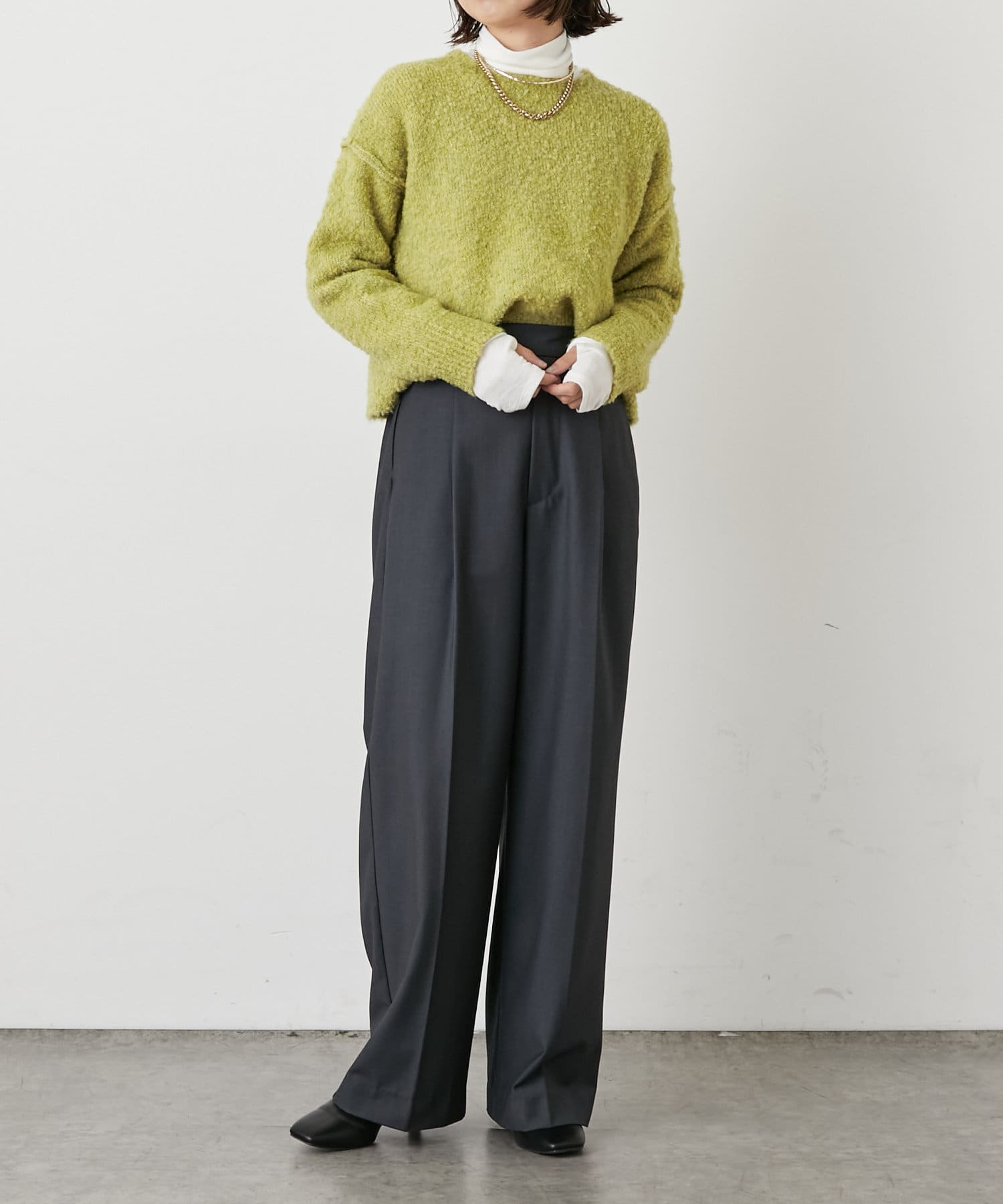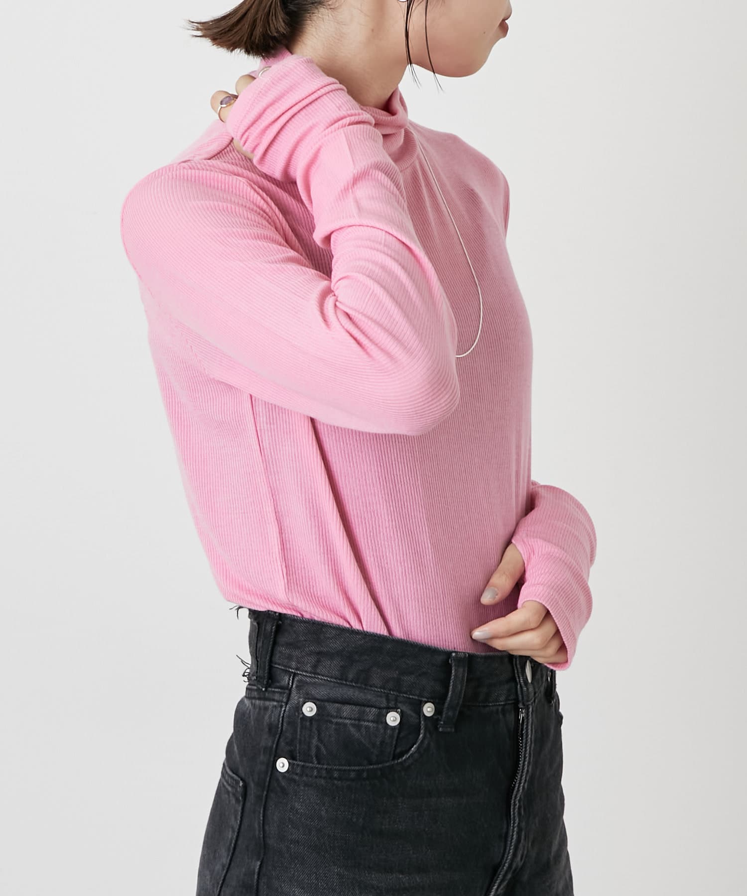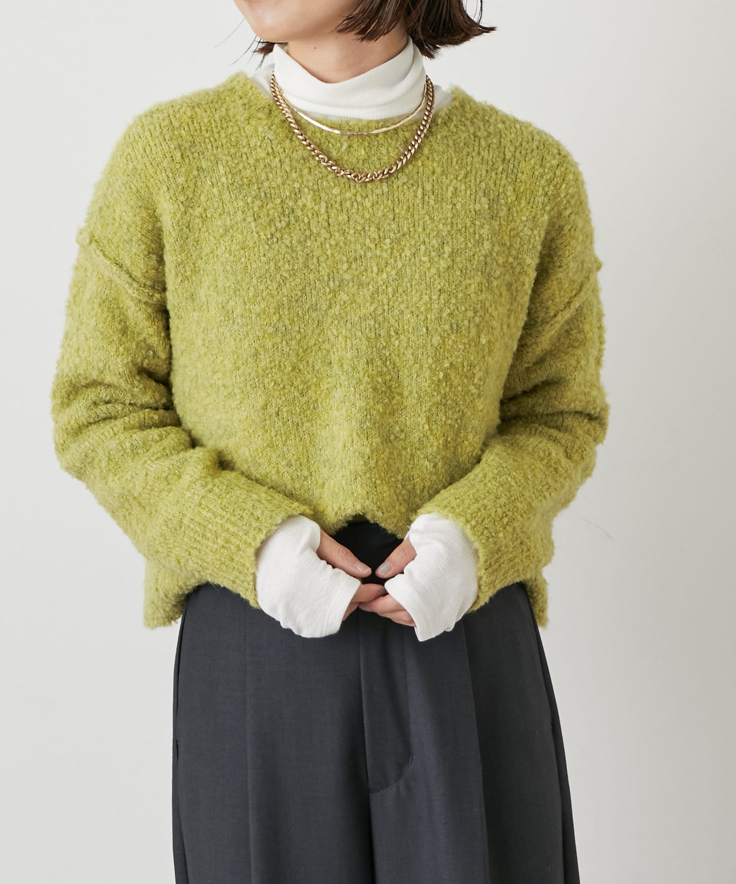 ・ほどよいシアー感で、秋の立ちあがりから春先まで着られるハイネックプルオーバー。