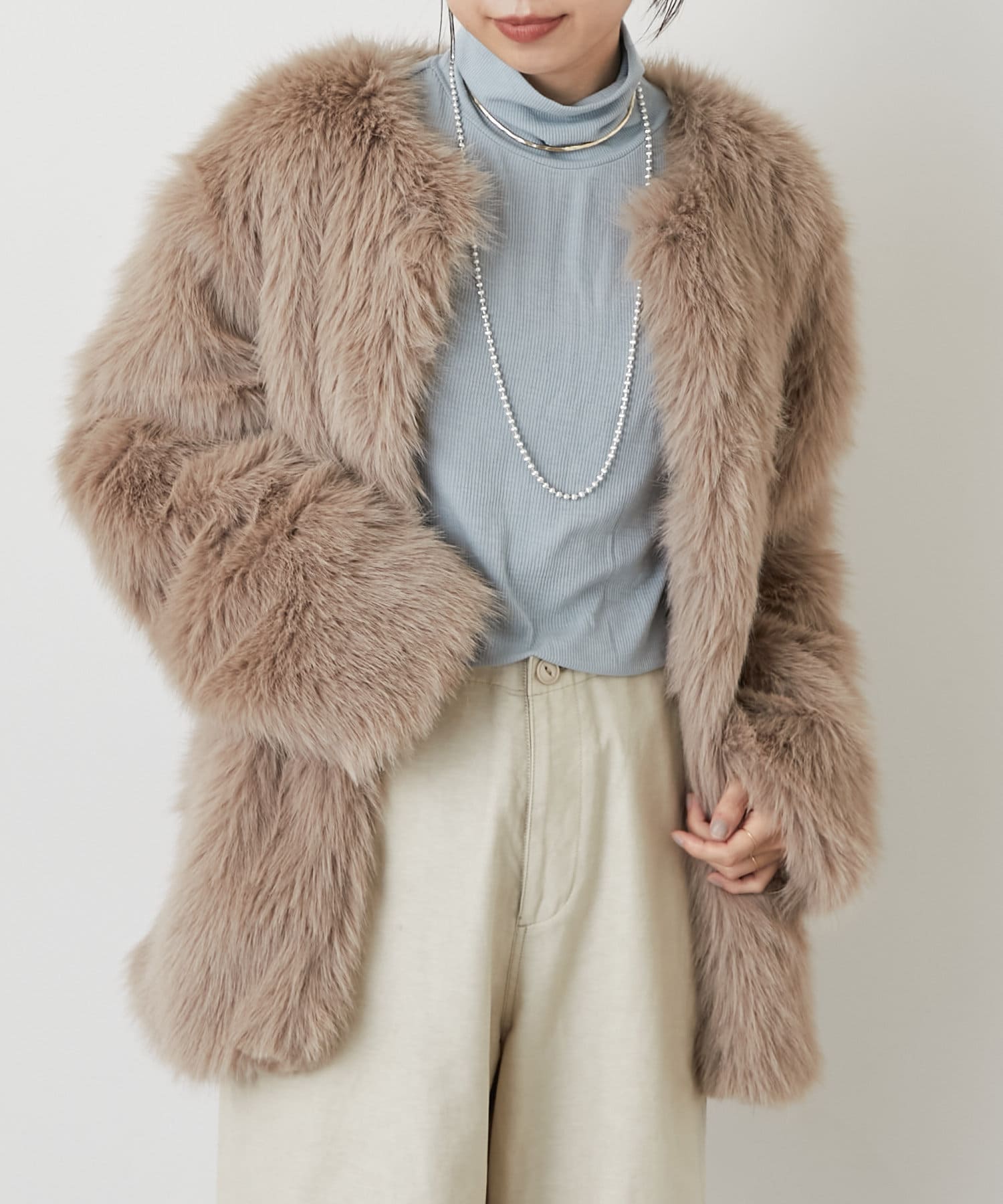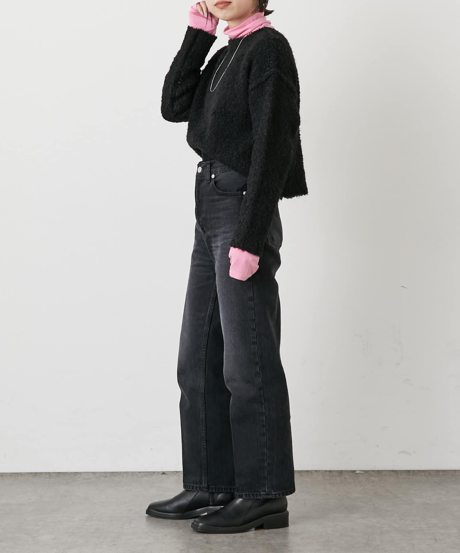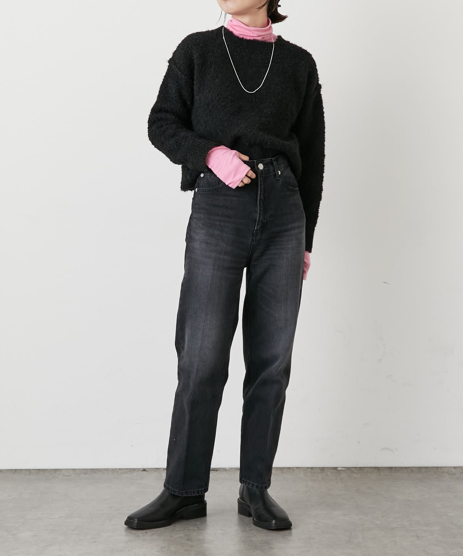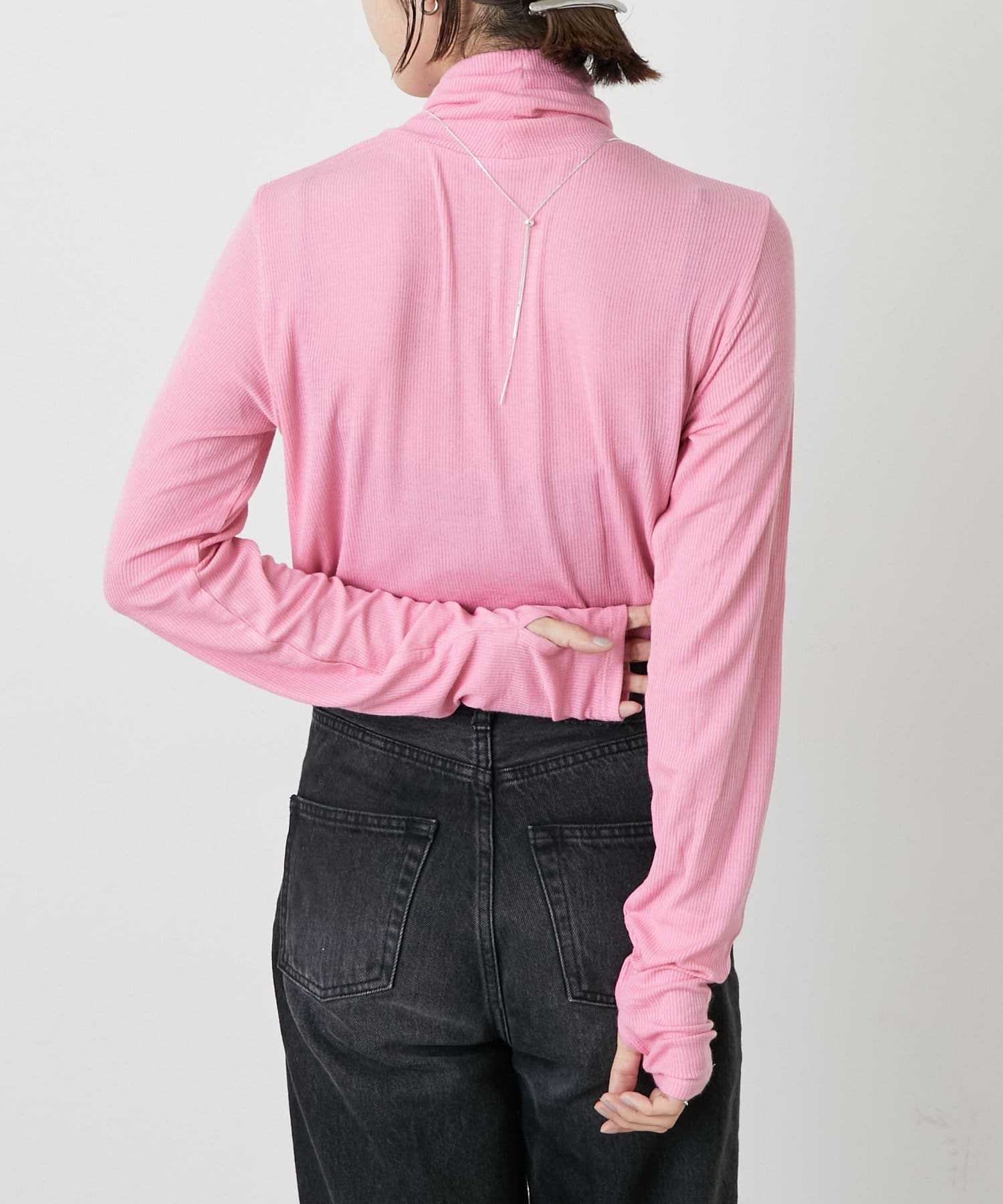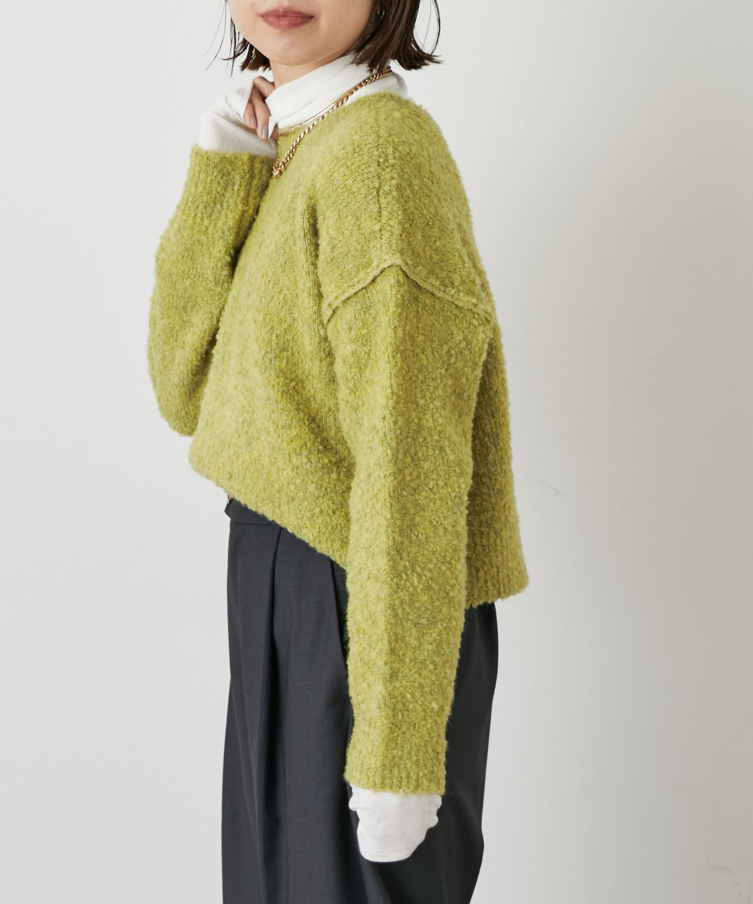 ・ほどよいシアー感で、秋の立ちあがりから春先まで着られるハイネックプルオーバー。