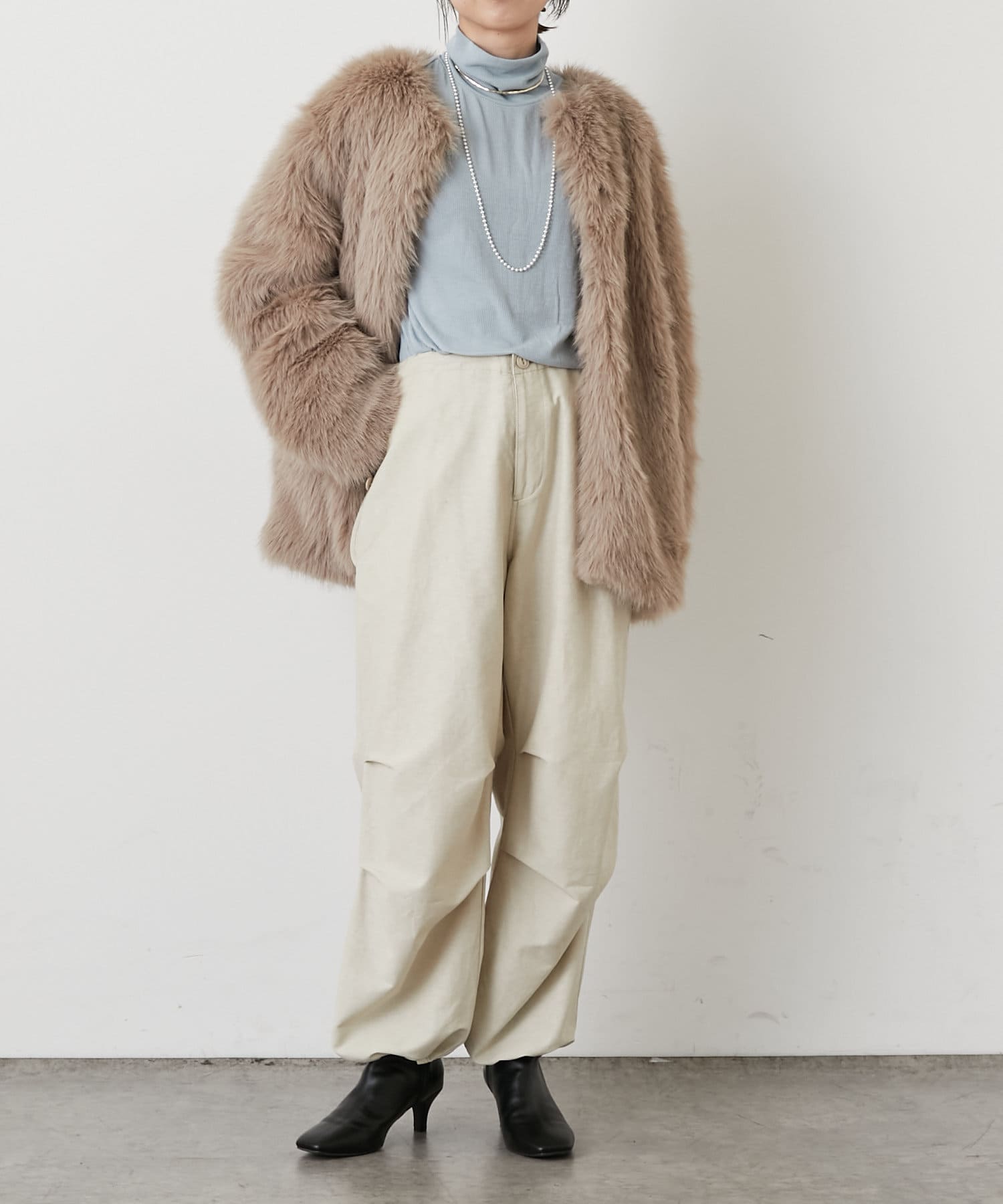 ・一枚ではもちろん、ニットやスウェット、シャツなどのインナーに着用し、ネックや袖口のレイヤードを楽しんでいただけます。