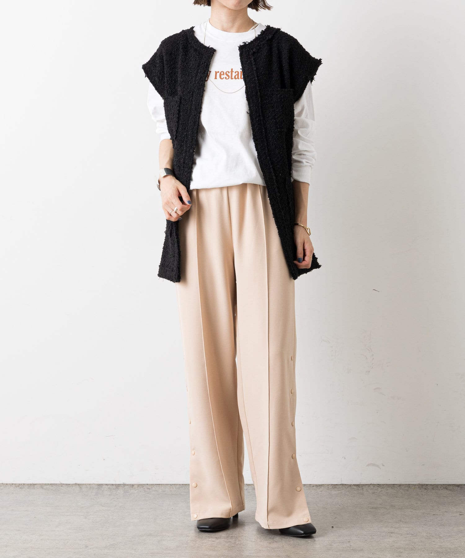 ・パンツでもスカートでもボトムを選ばずに楽しめるのが魅力。