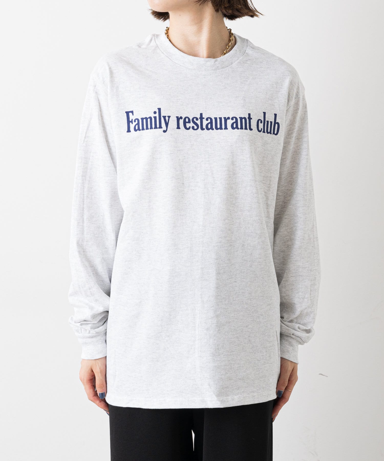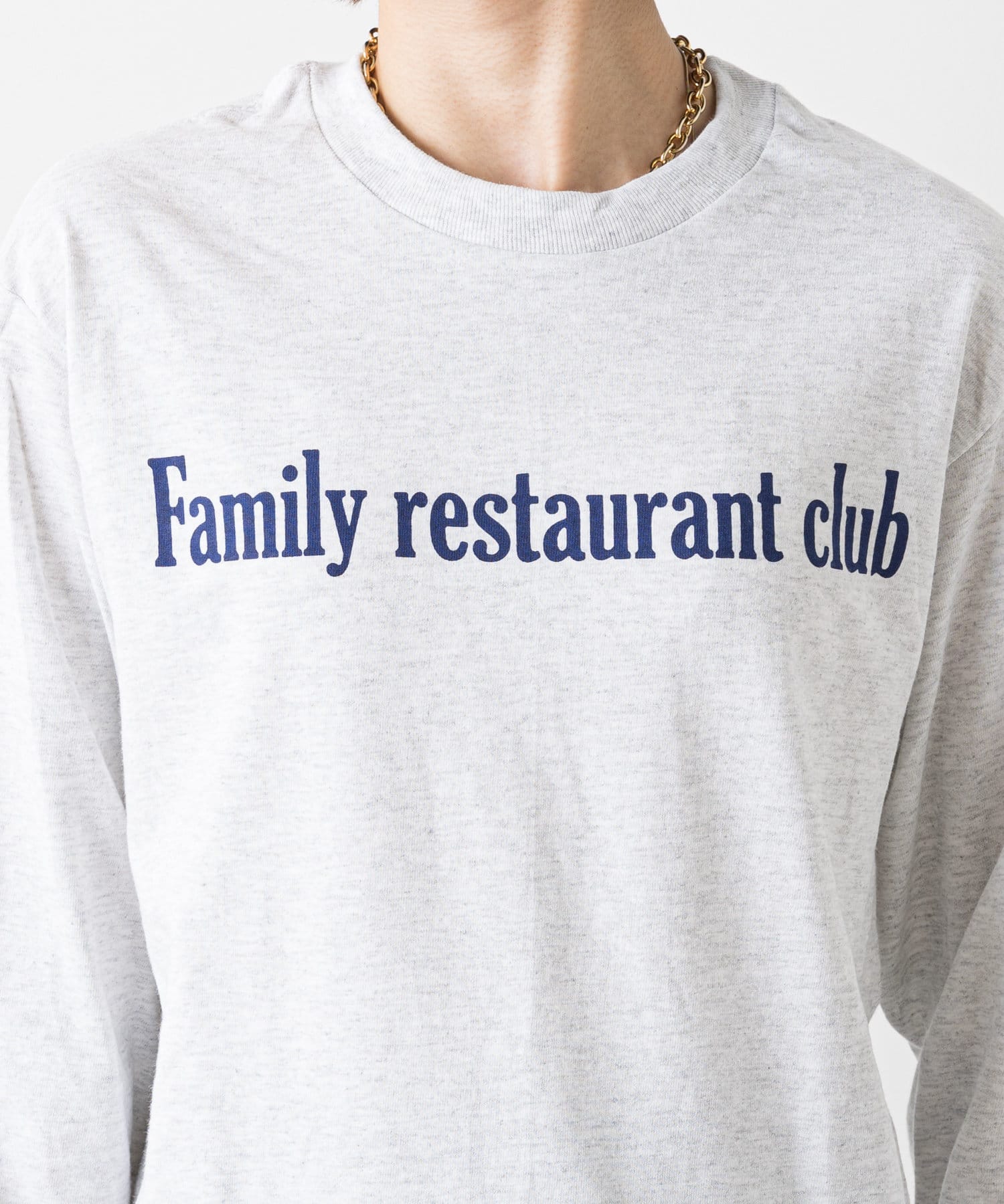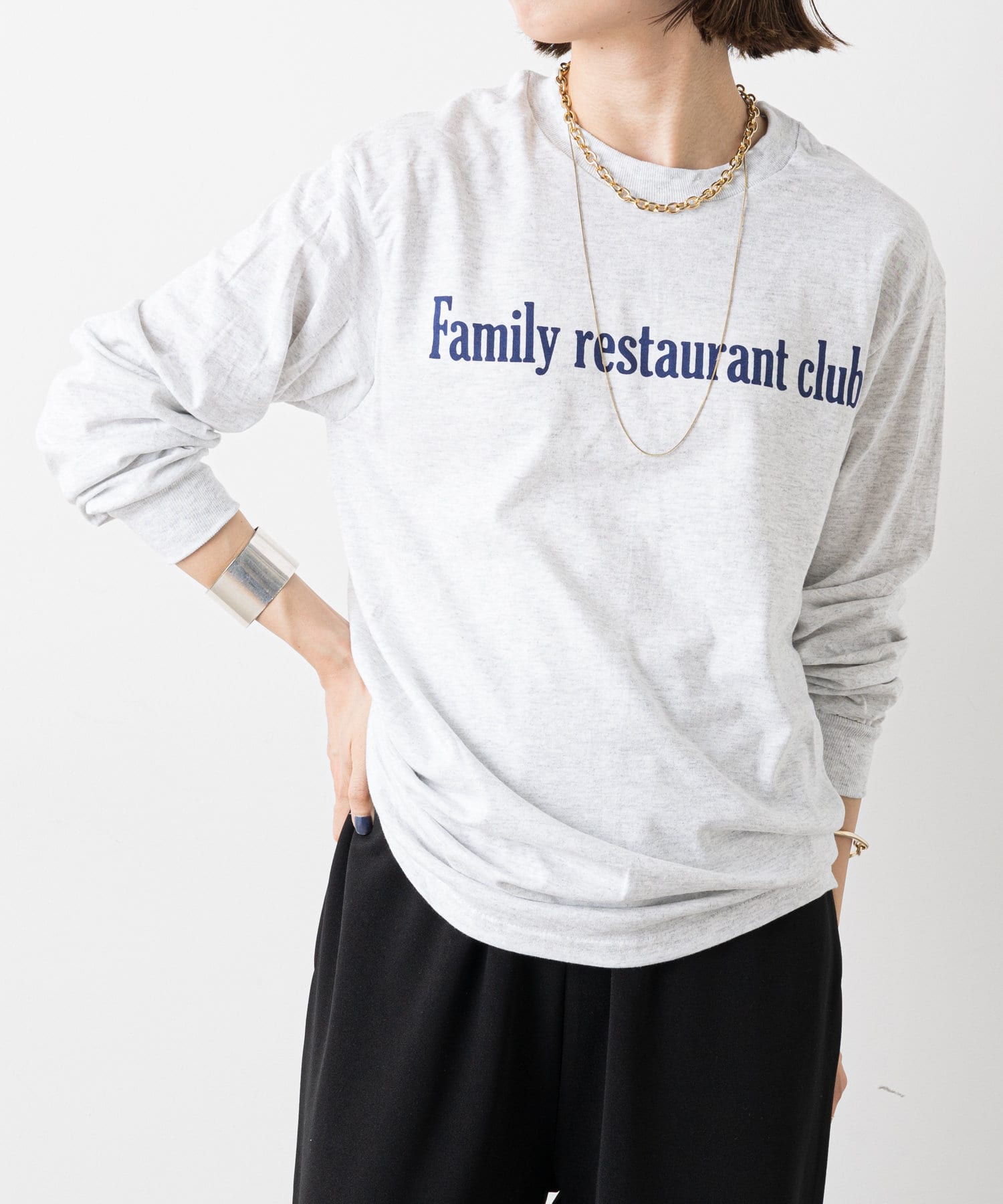 ・Family restaurant clubのロゴがポイントになり、大人のカジュアルスタイルにぴったりなロンT