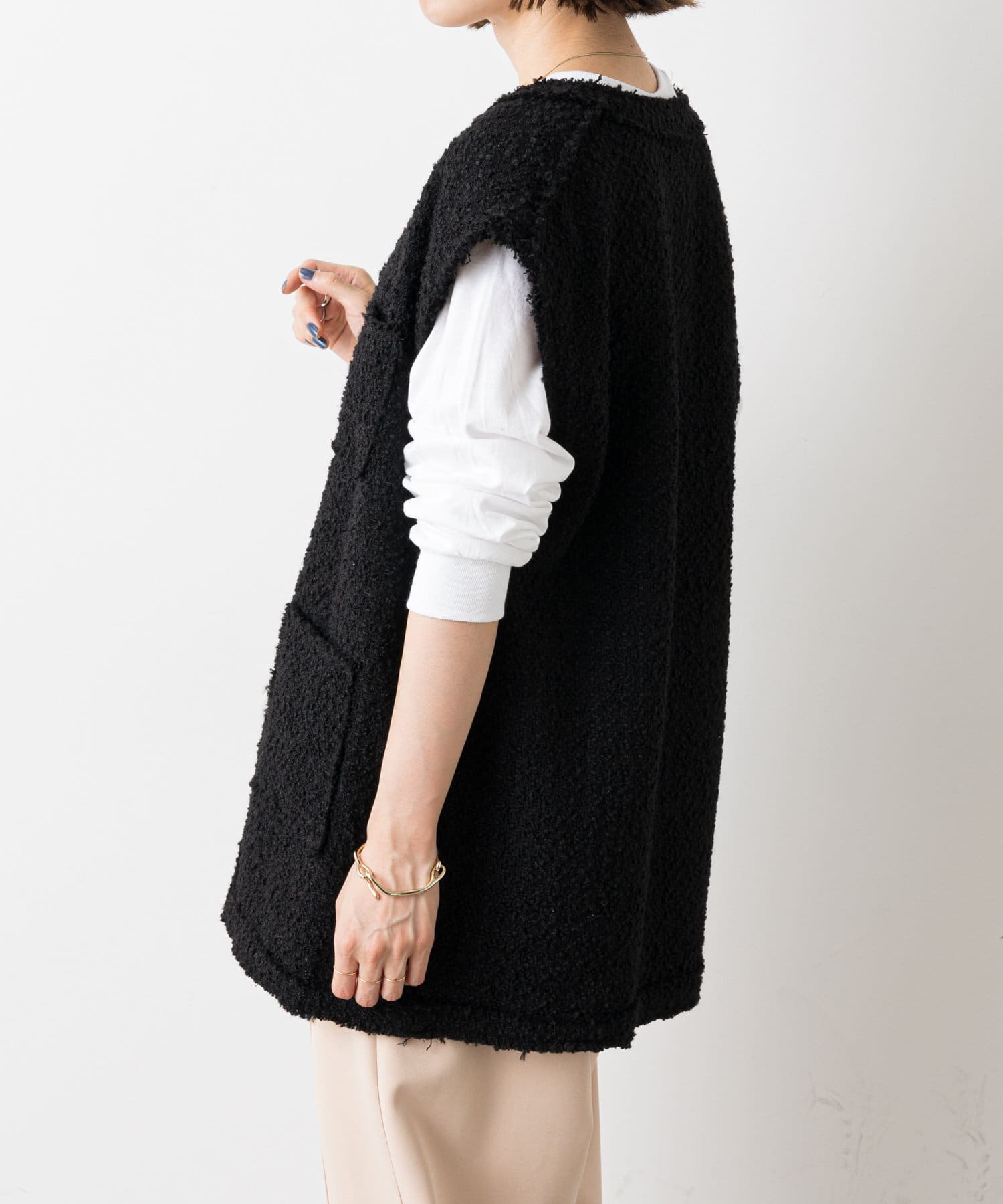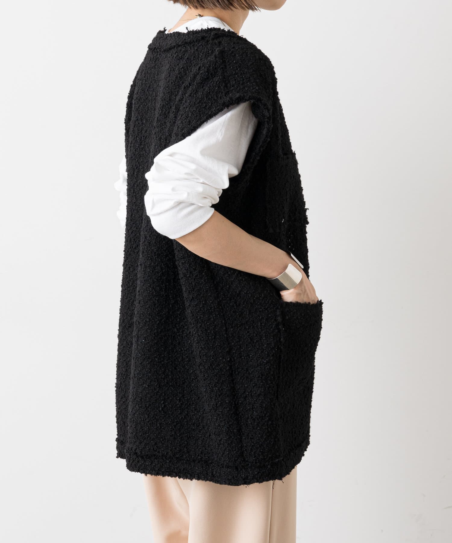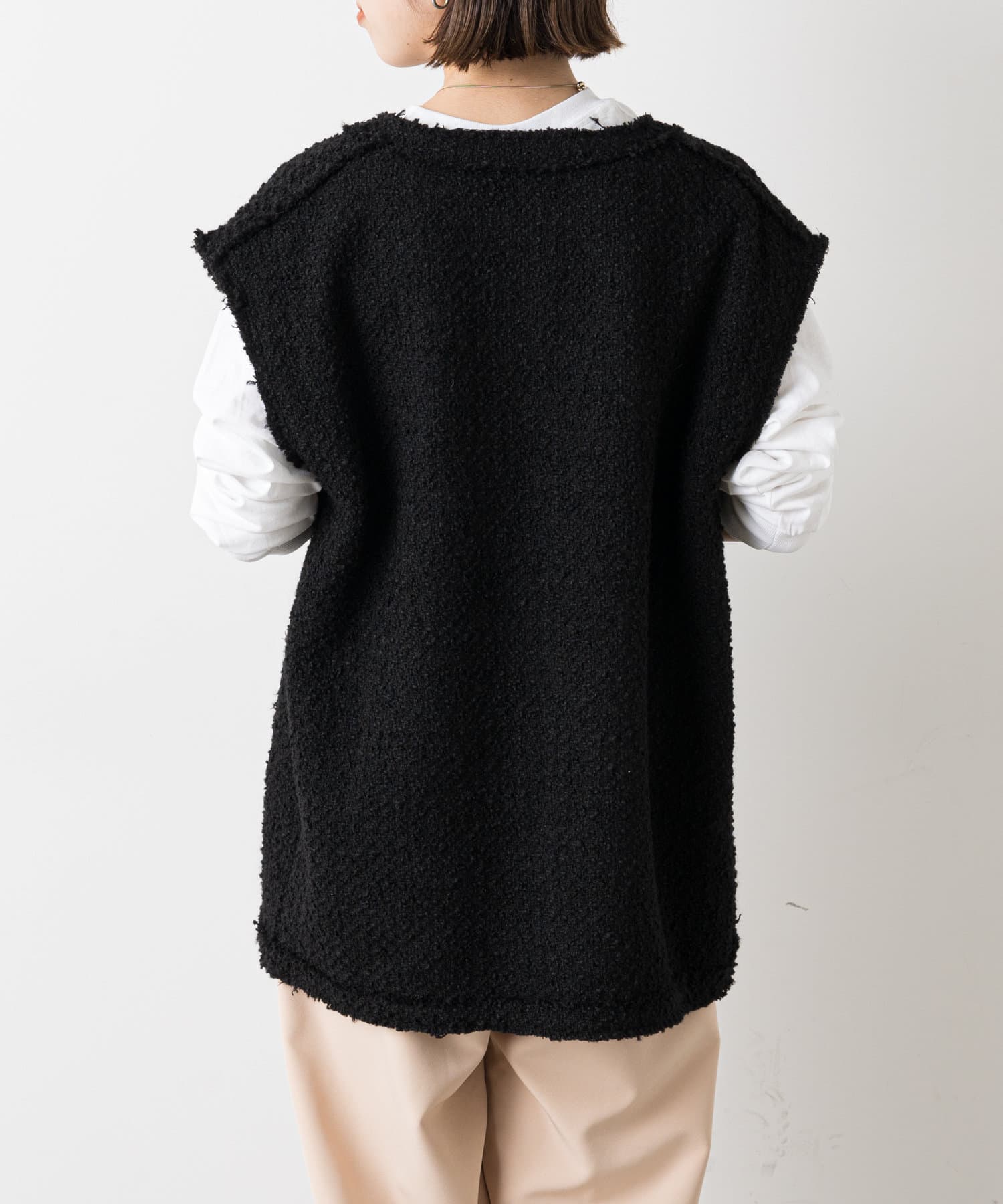 ・秋冬らしいツイード生地を使用したベストは、スタイリングにプラスするだけで一気にこなれた印象に仕上げてくれます。