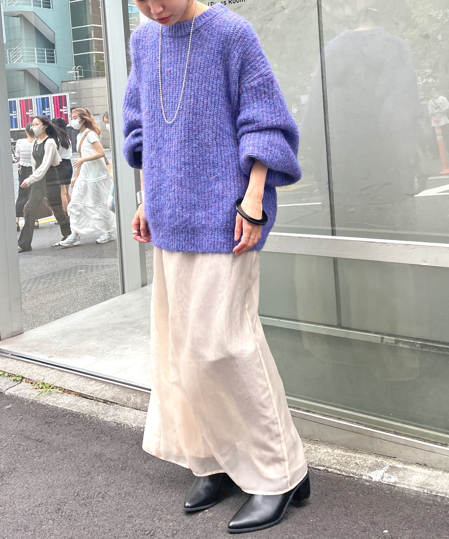 ・ロゴTをインしてカジュアルMIXスタイルや、ニットを合わせて上品なフェミニンスタイルもおすすめ