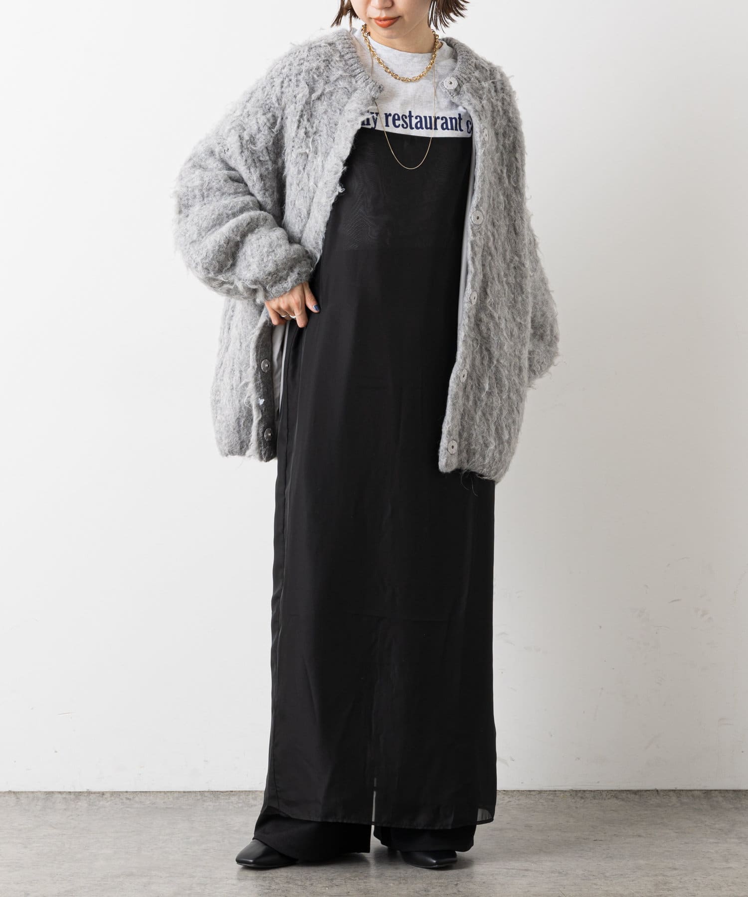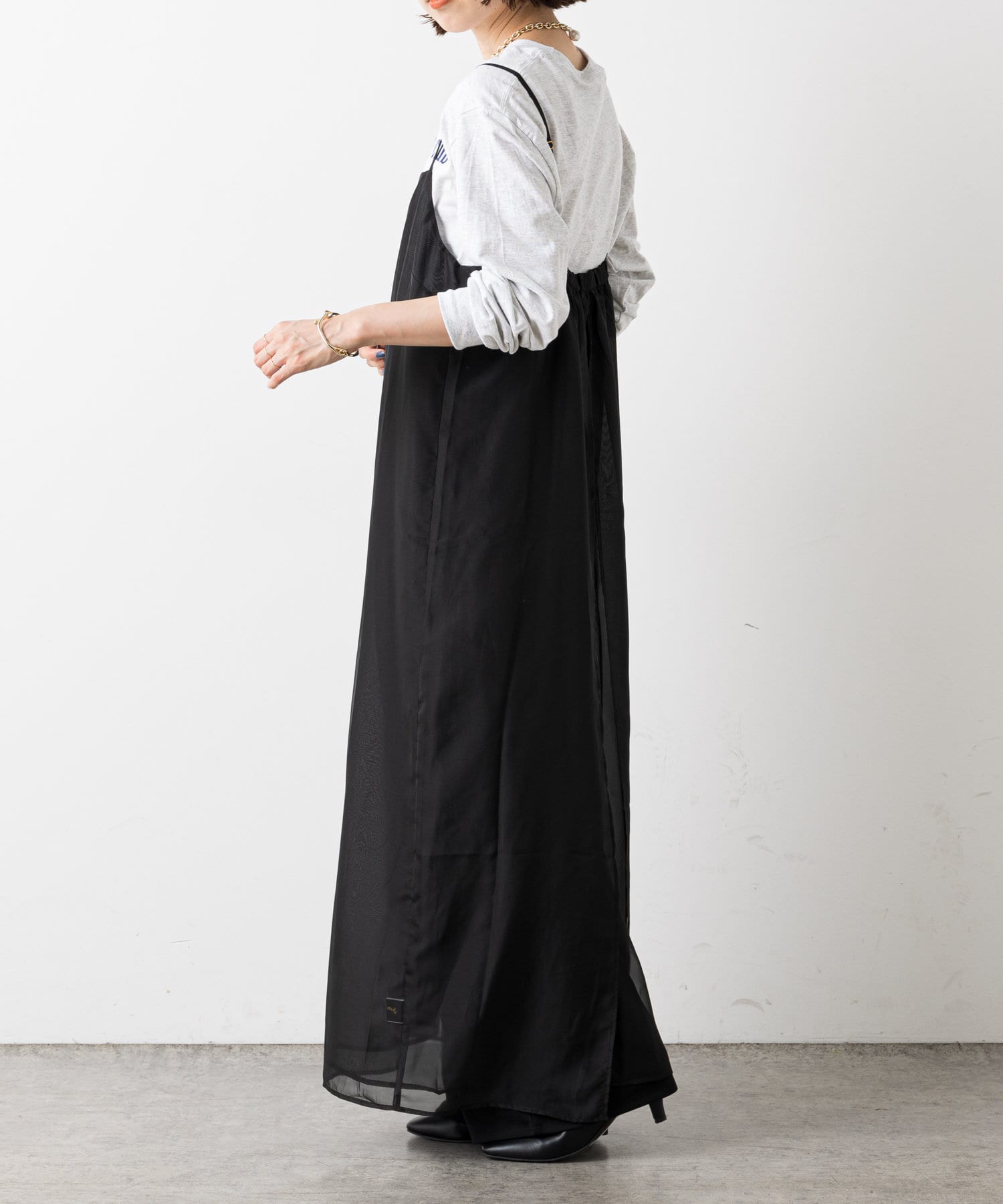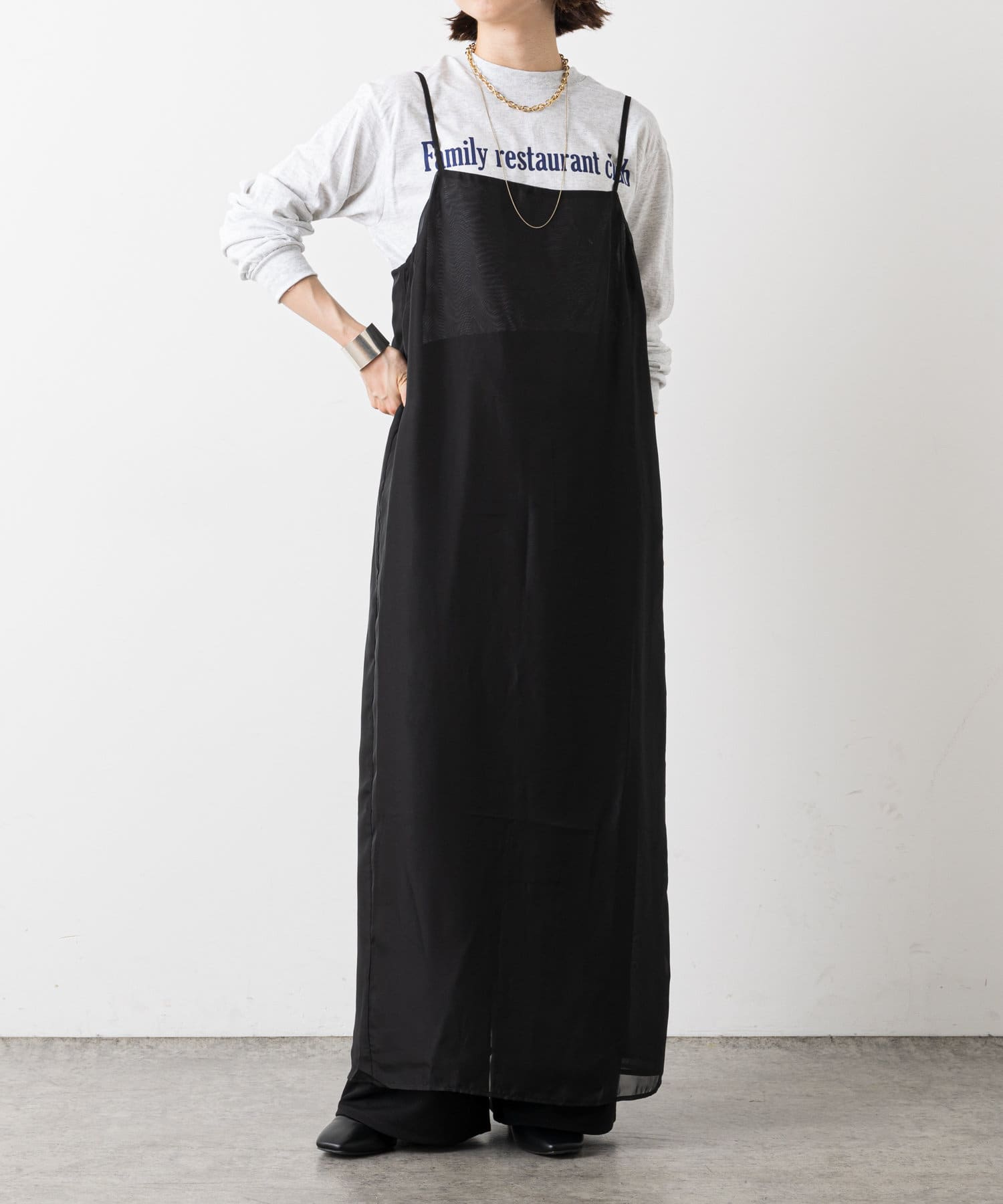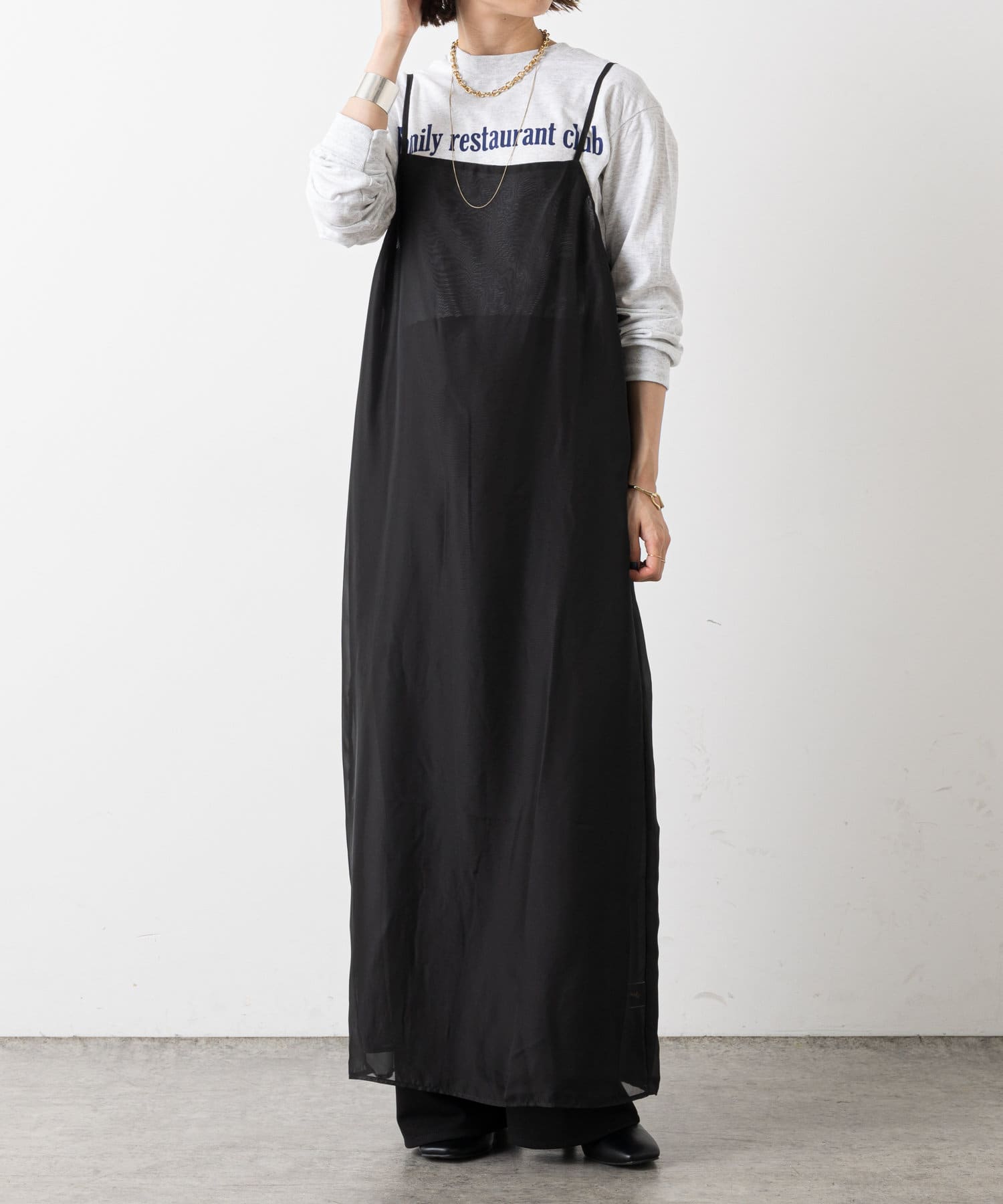旬なレイヤードスタイルを楽しめるシアーキャミワンピ