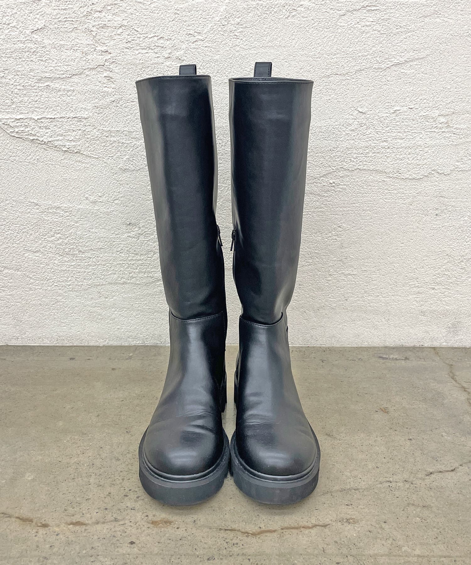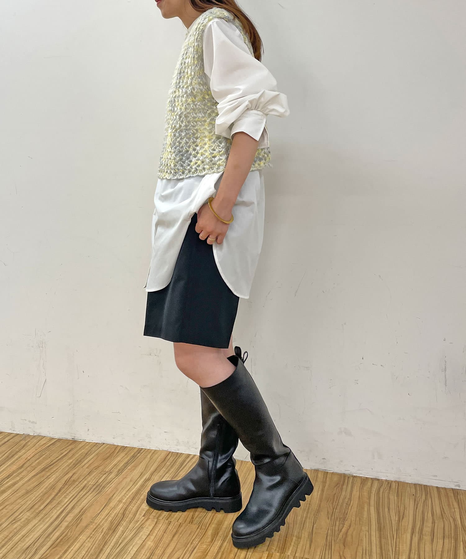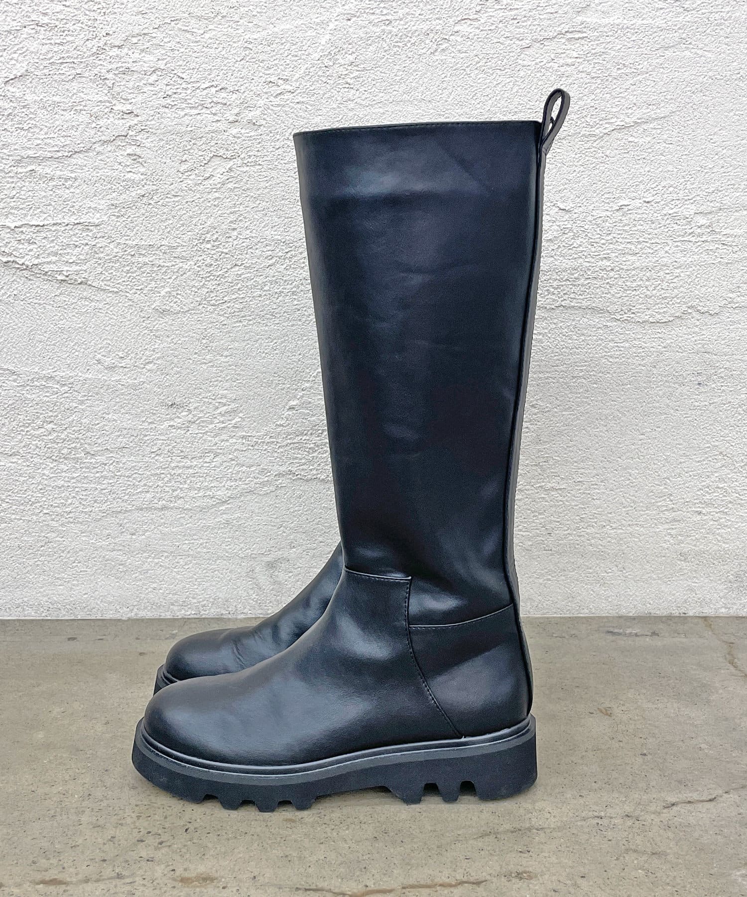 ・トレンドのロングブーツ。筒広のデザインで履くだけで今年らしいスタイリングになる1足です。