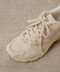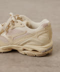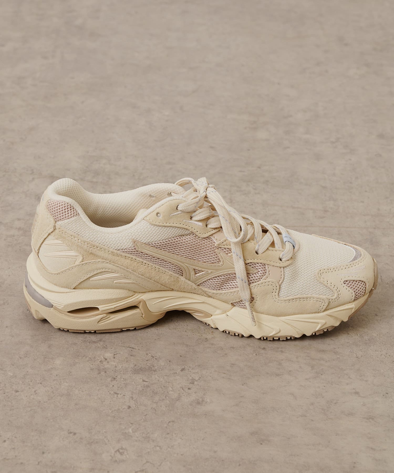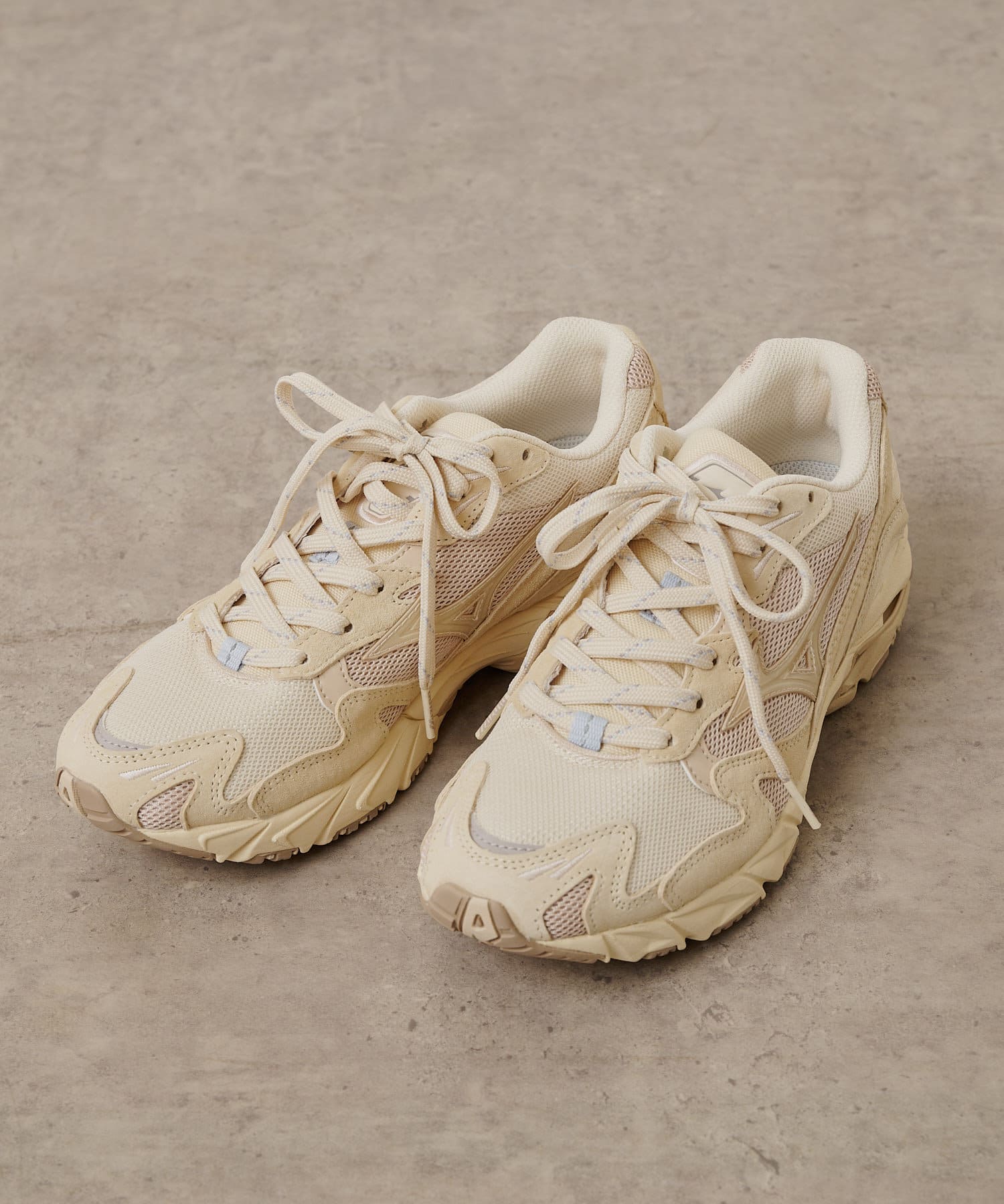 ・スポーツ用品メーカーMIZUNOのスニーカー。オープンメッシュ素材と、スエードレザーの組み合わせが、プレミアム感のある仕上がりに。シンプルで合わせやすいながら、重層的な素材使いで、特別感の強いデザインとなっています。