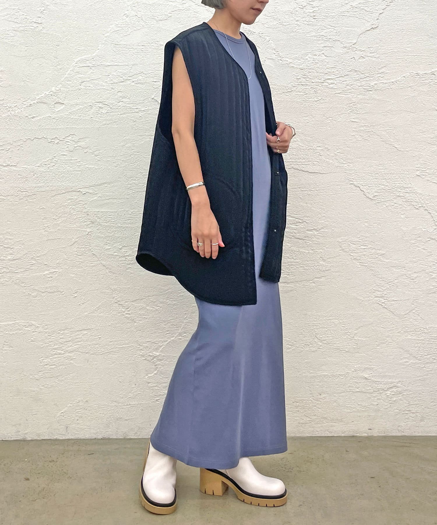 ・女性らしいワンピースやタイトスカートの外しとしてもオススメのアイテムです。