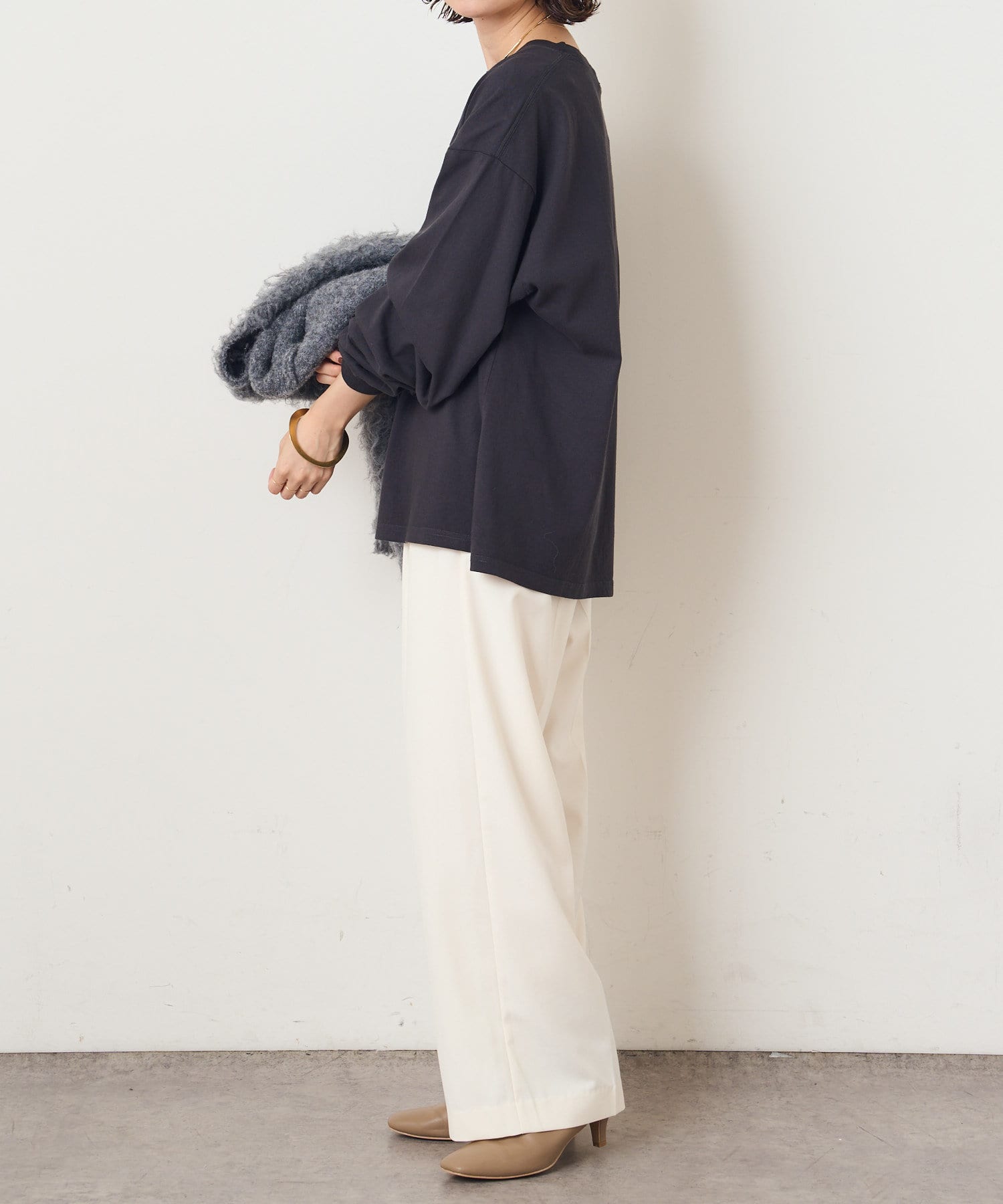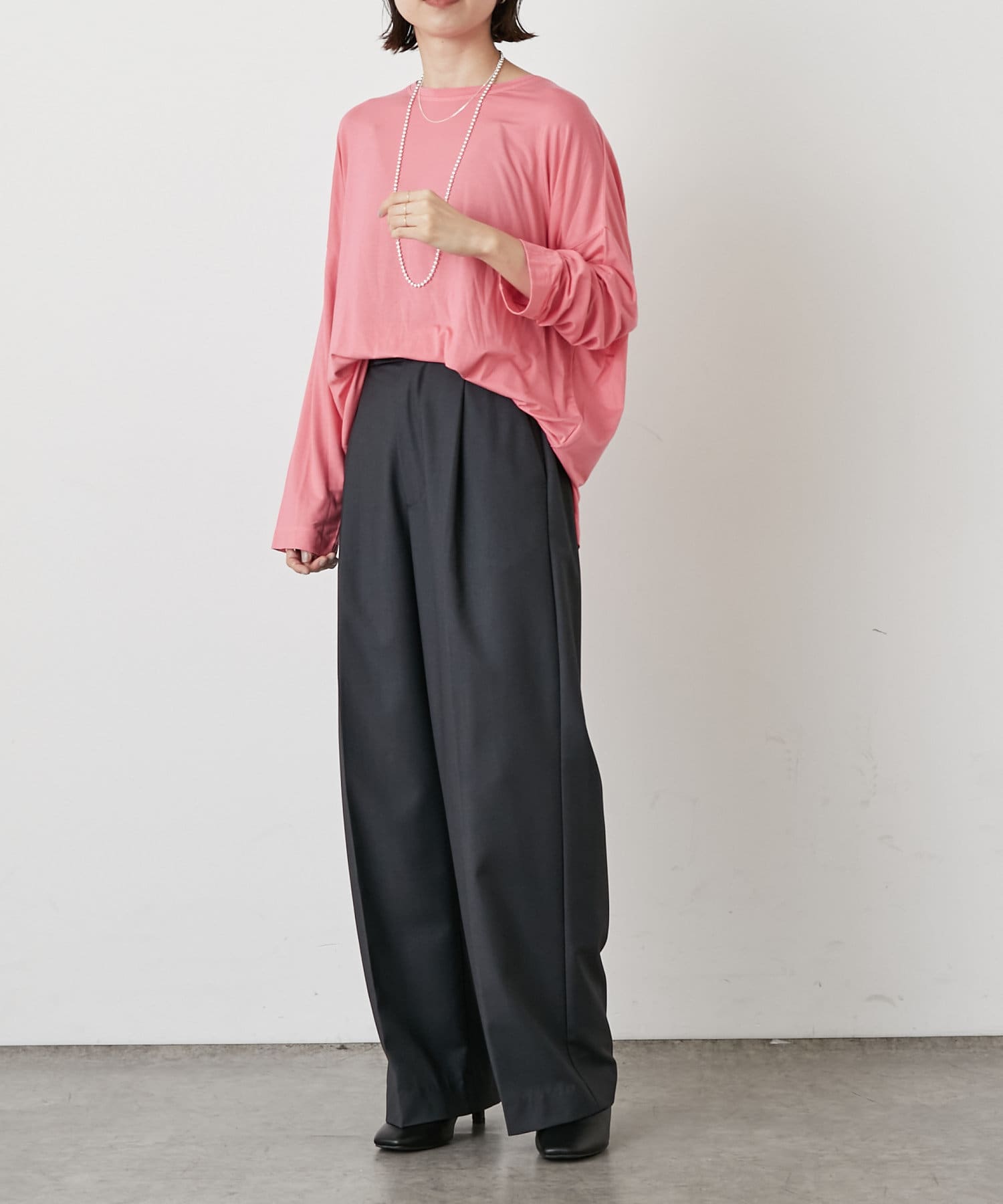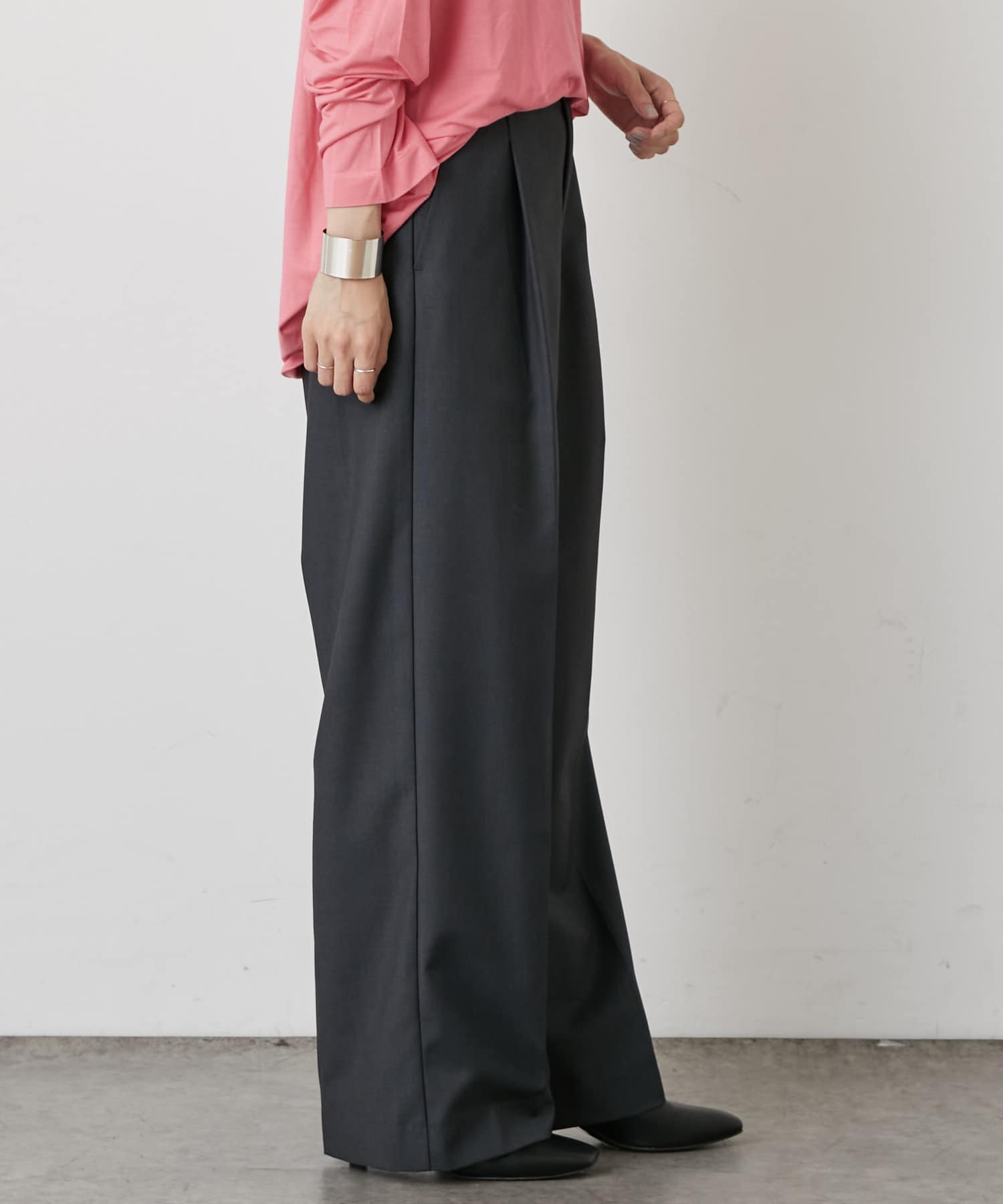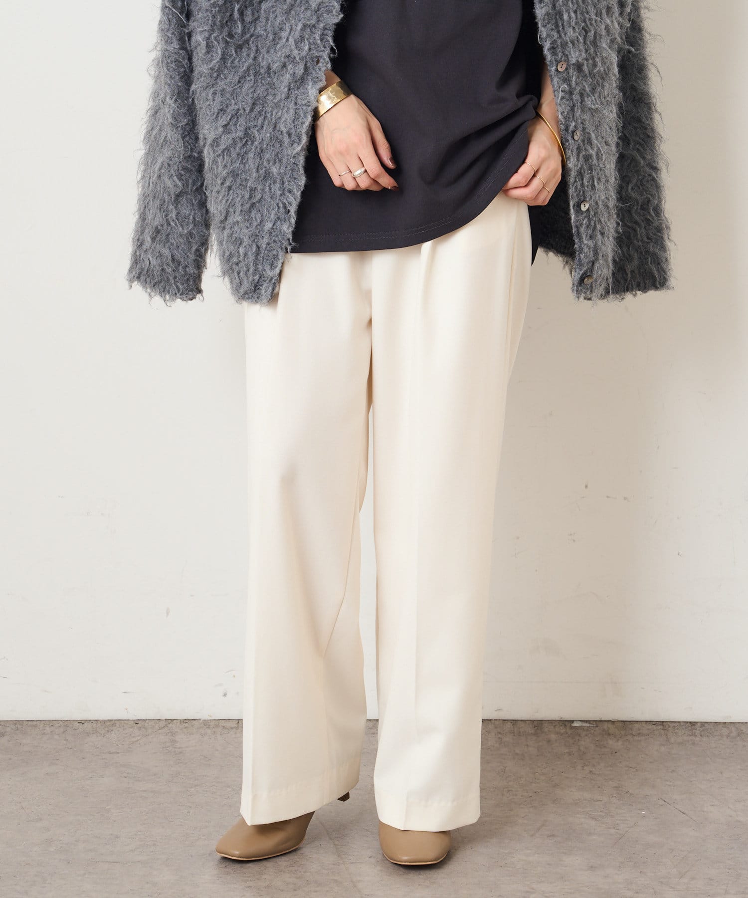 ・ワイドなシルエットと高めのウエスト位置で脚を長く、美脚見えが叶う一本。
