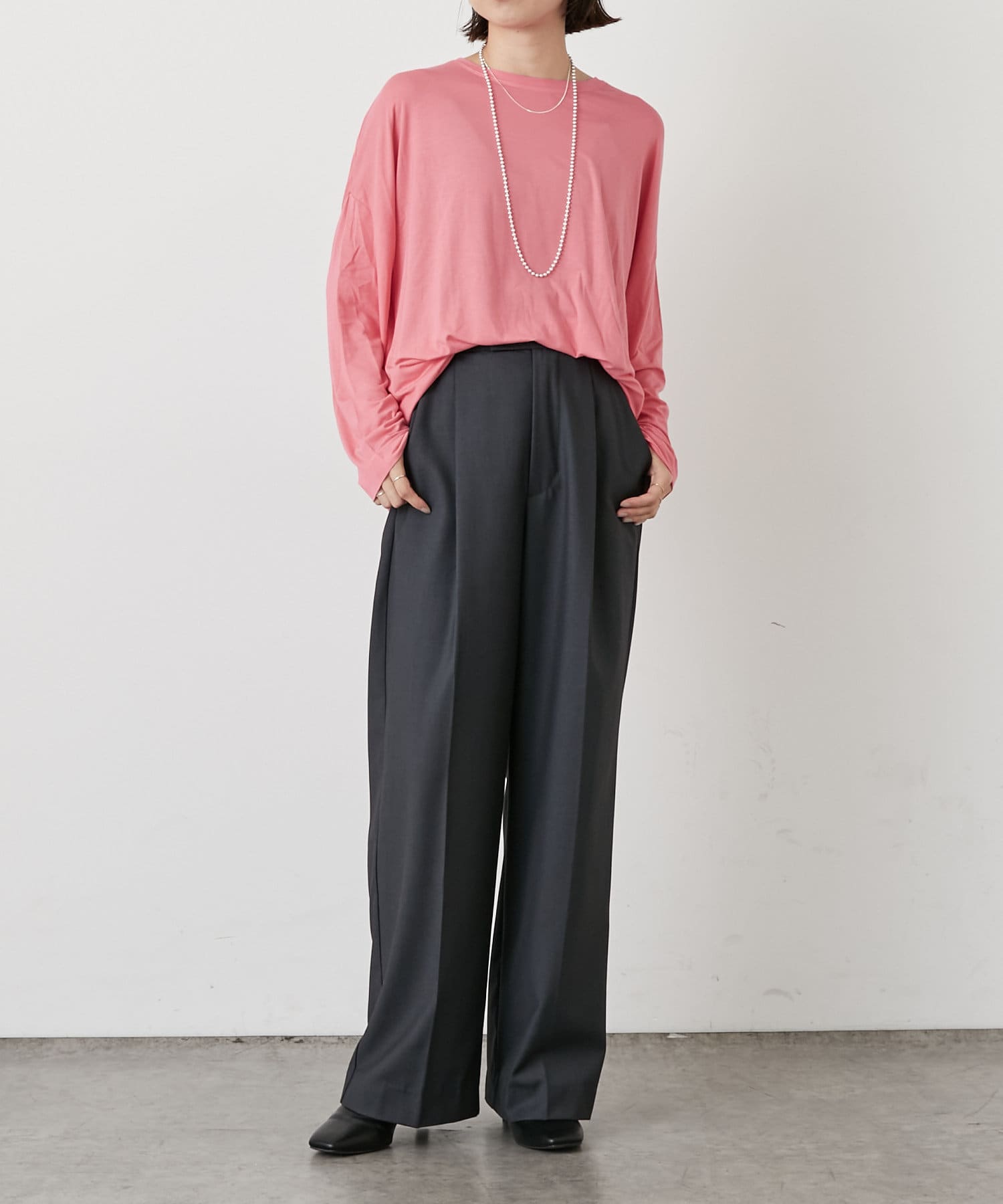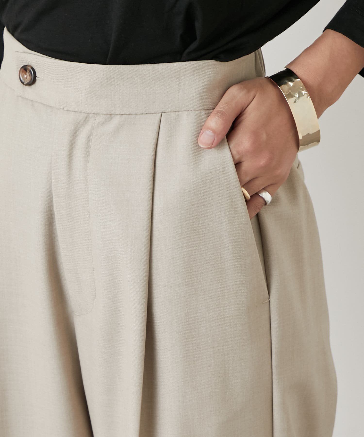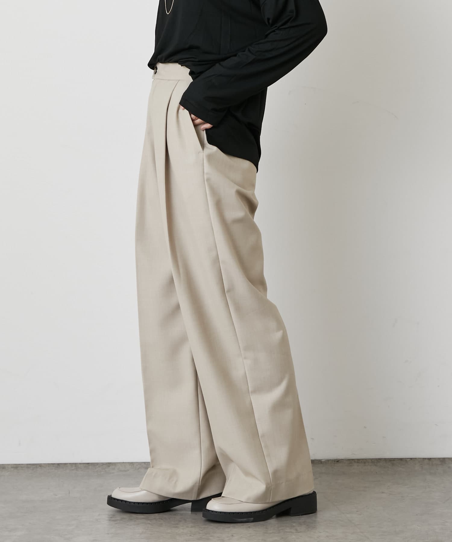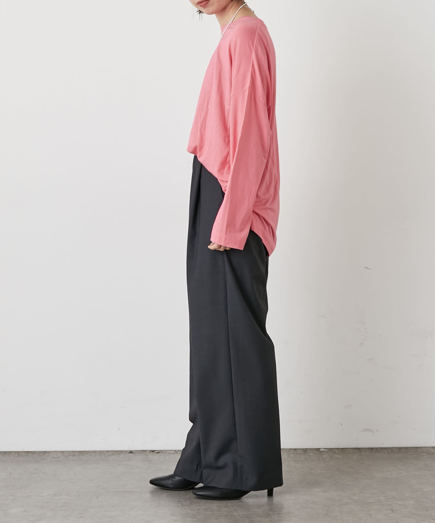 ・ワイドなシルエットと高めのウエスト位置で脚を長く、美脚見えが叶う一本。
