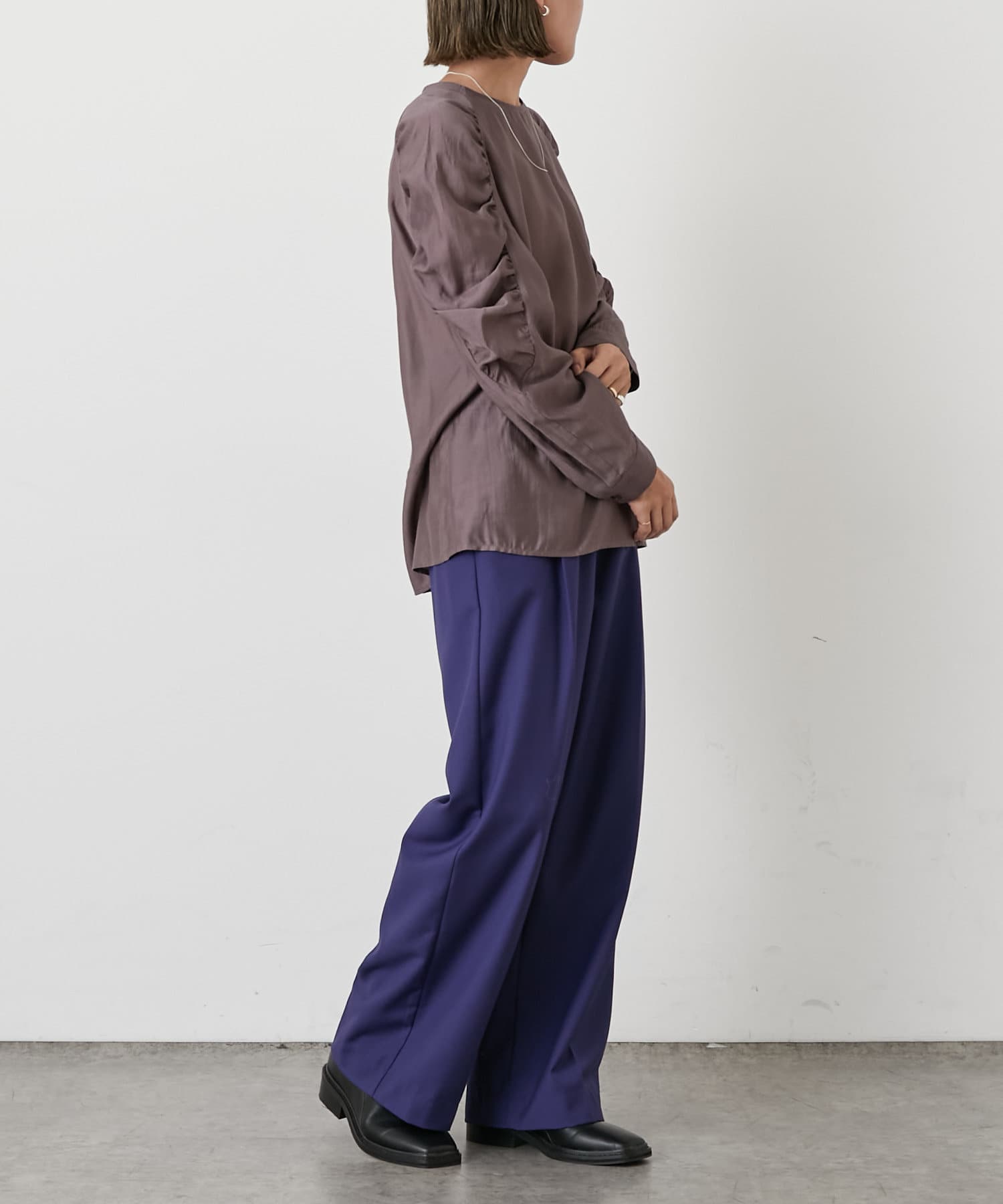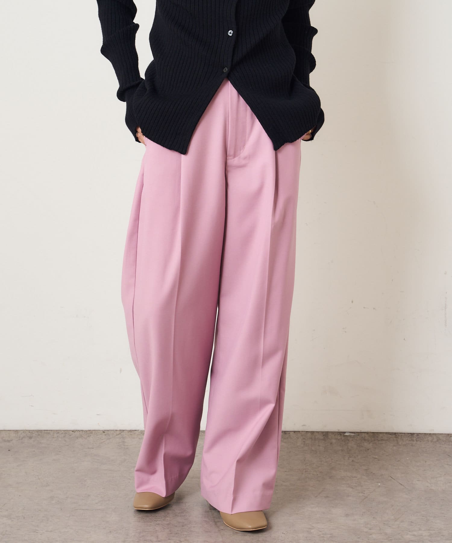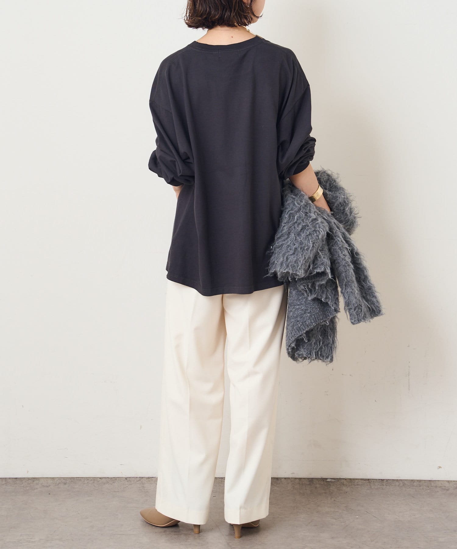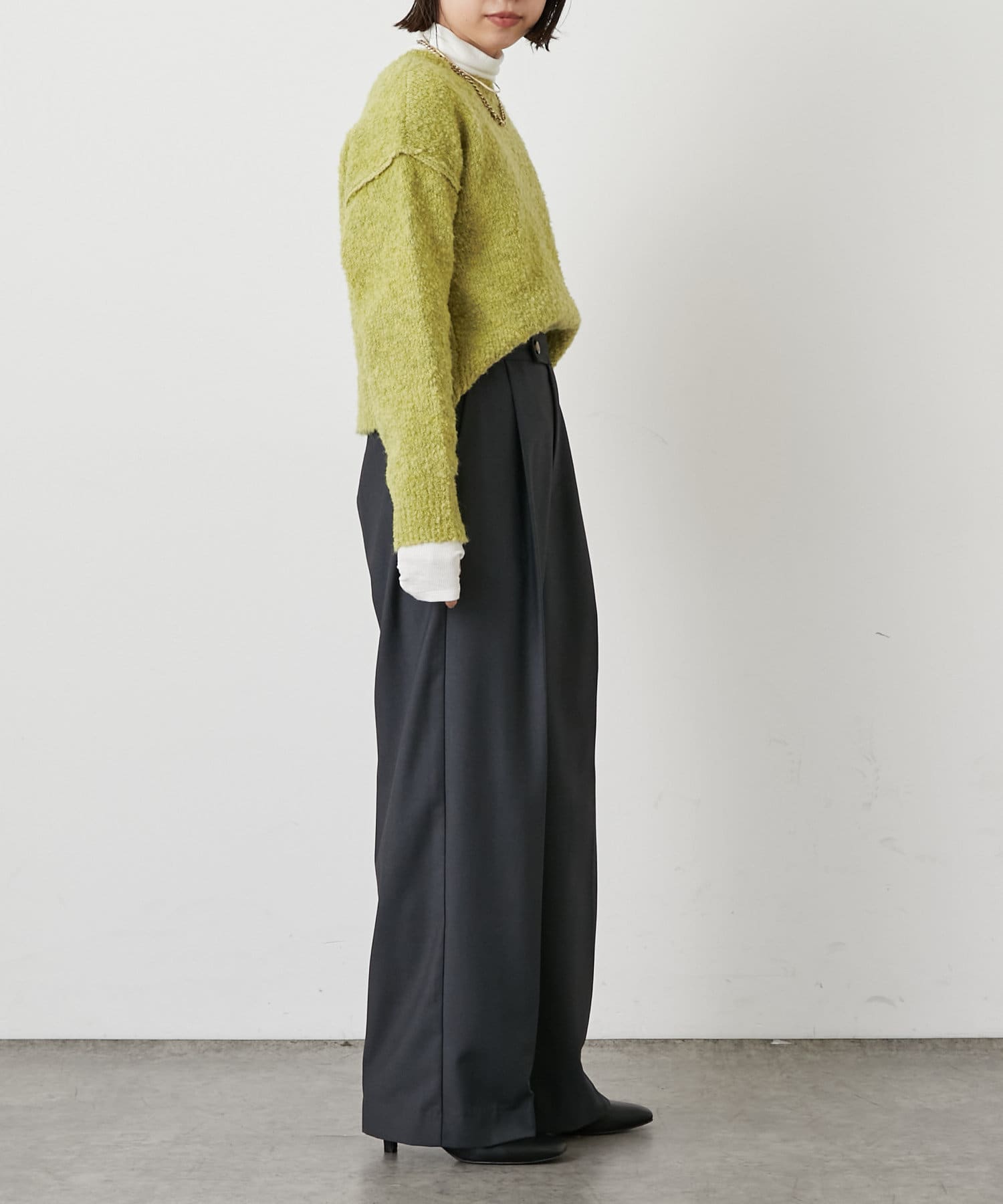 ・ワイドなシルエットと高めのウエスト位置で脚を長く、美脚見えが叶う一本。