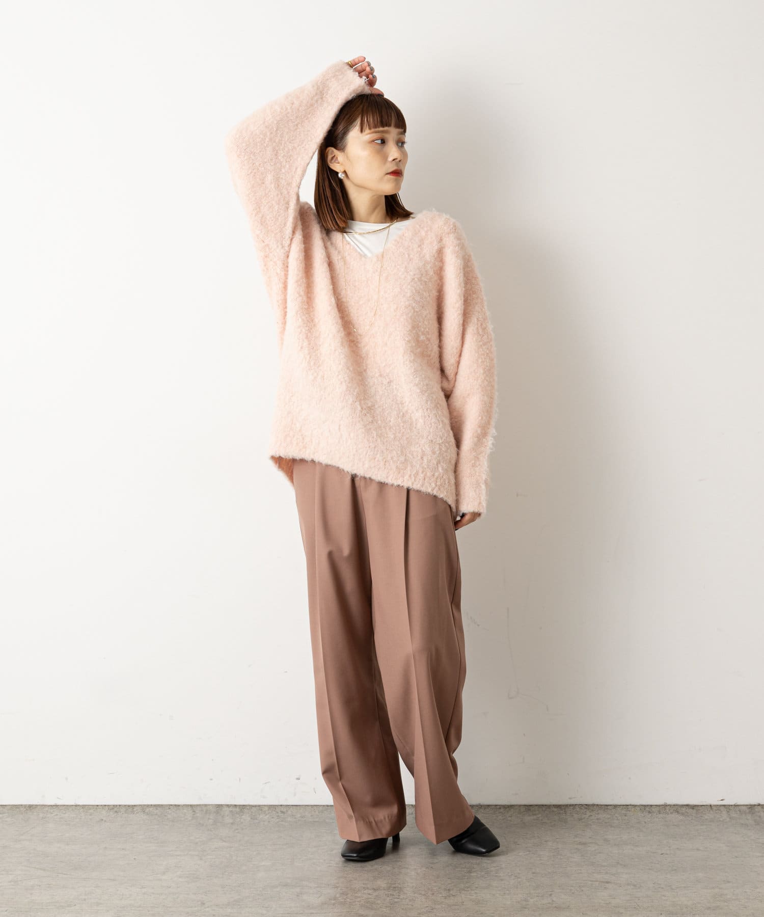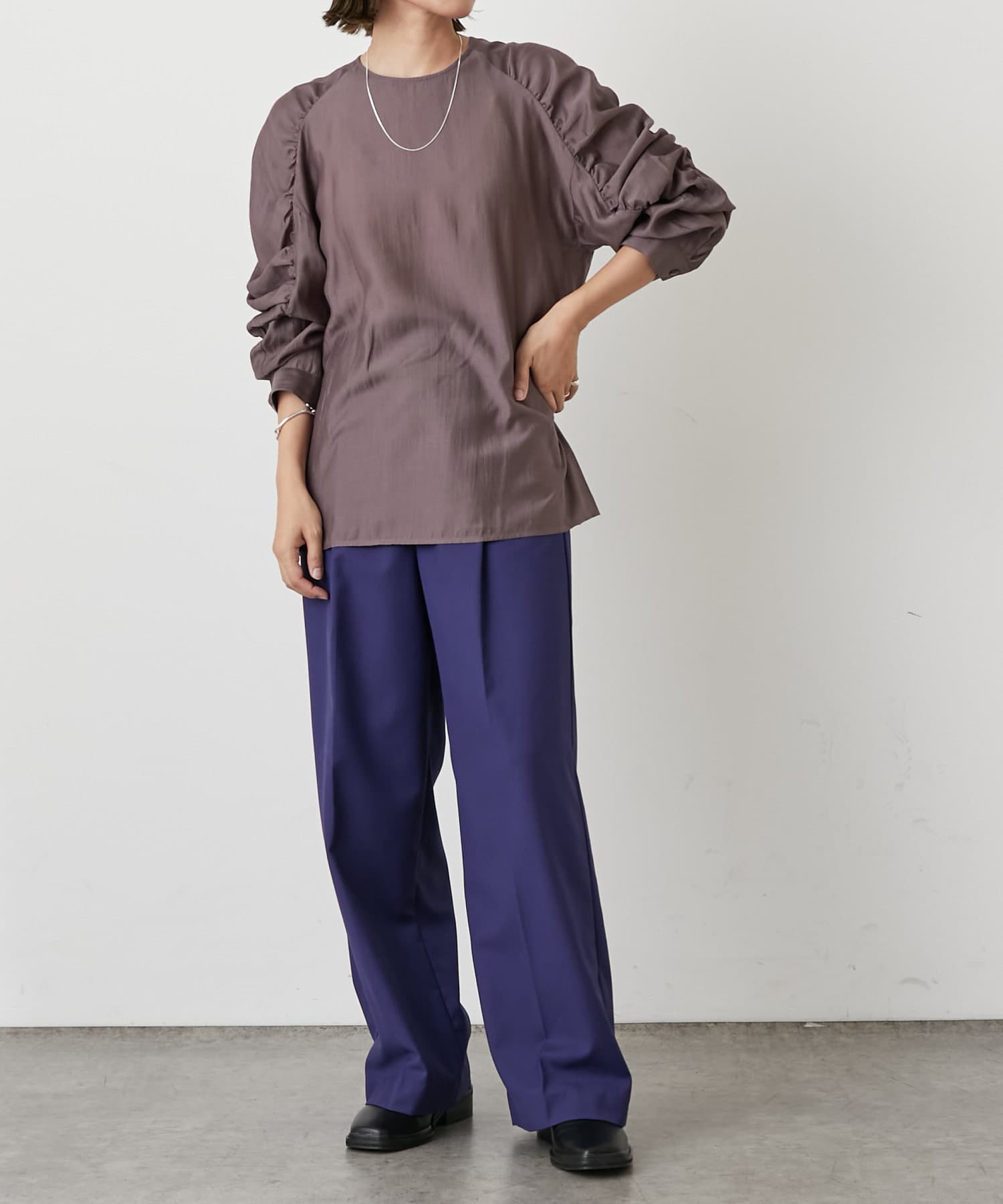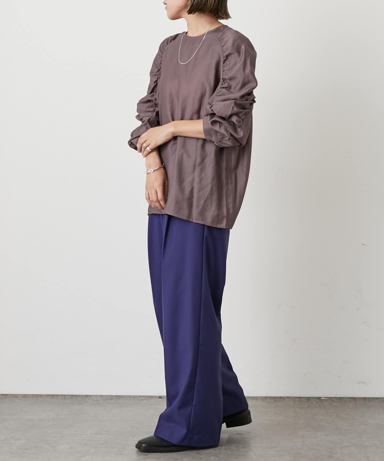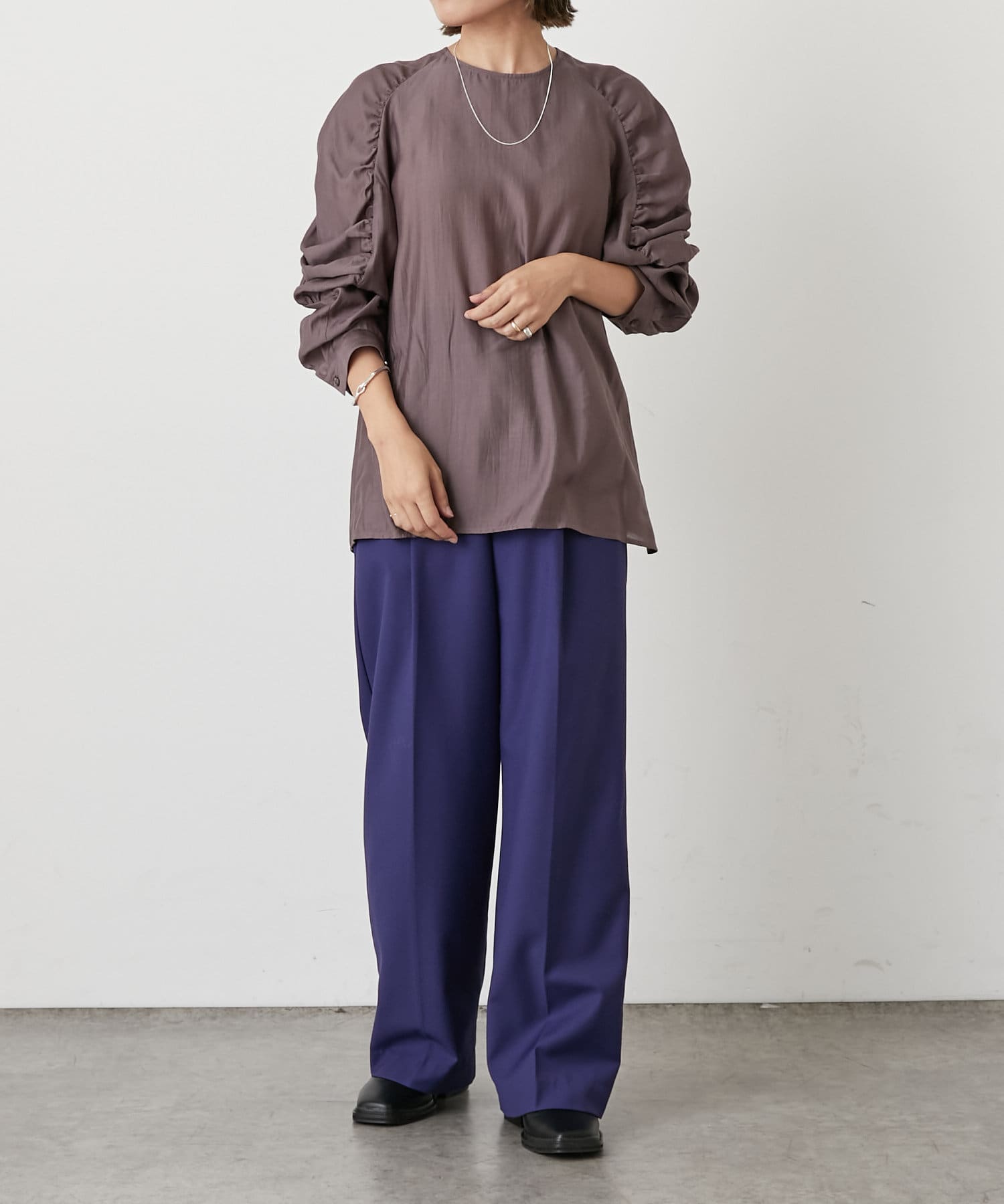 ・ワイドなシルエットと高めのウエスト位置で脚を長く、美脚見えが叶う一本。