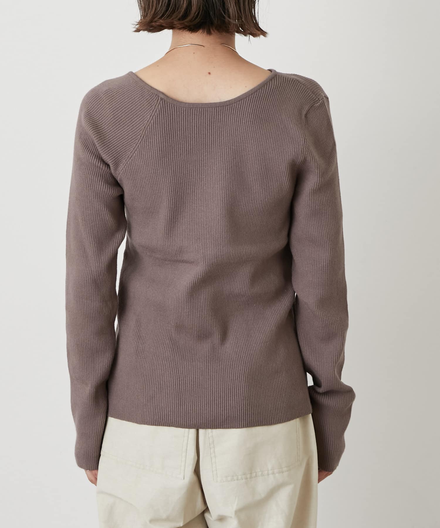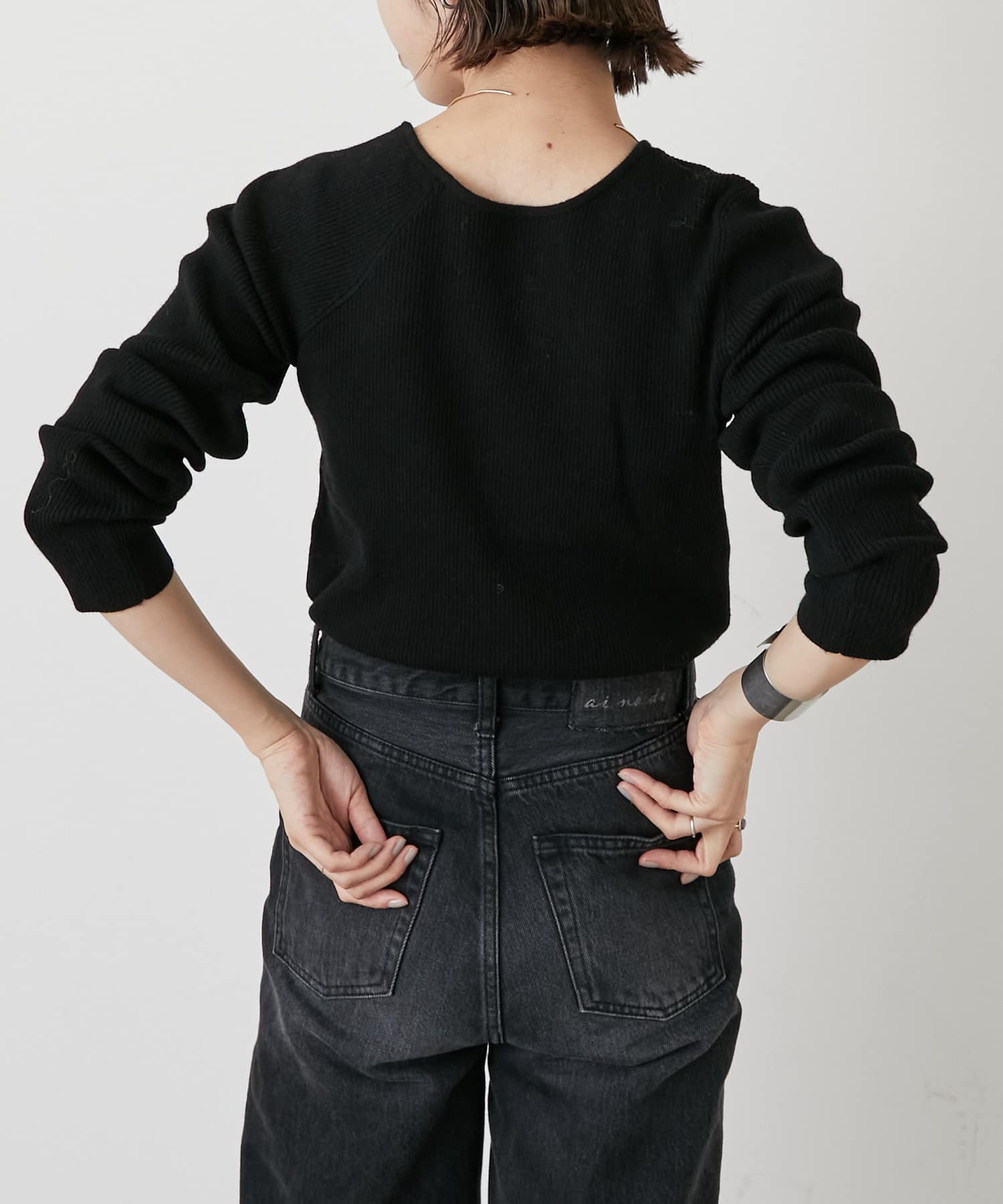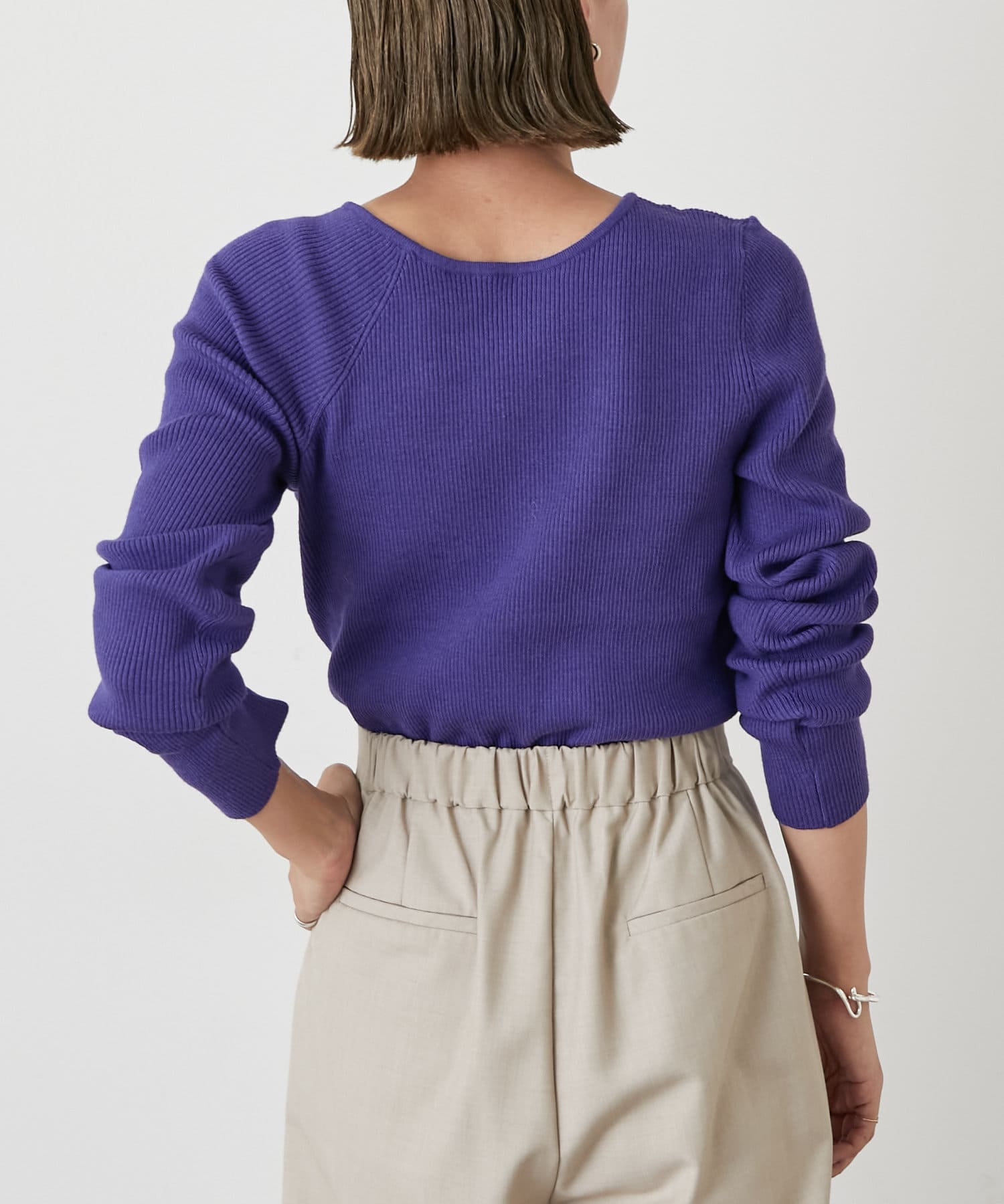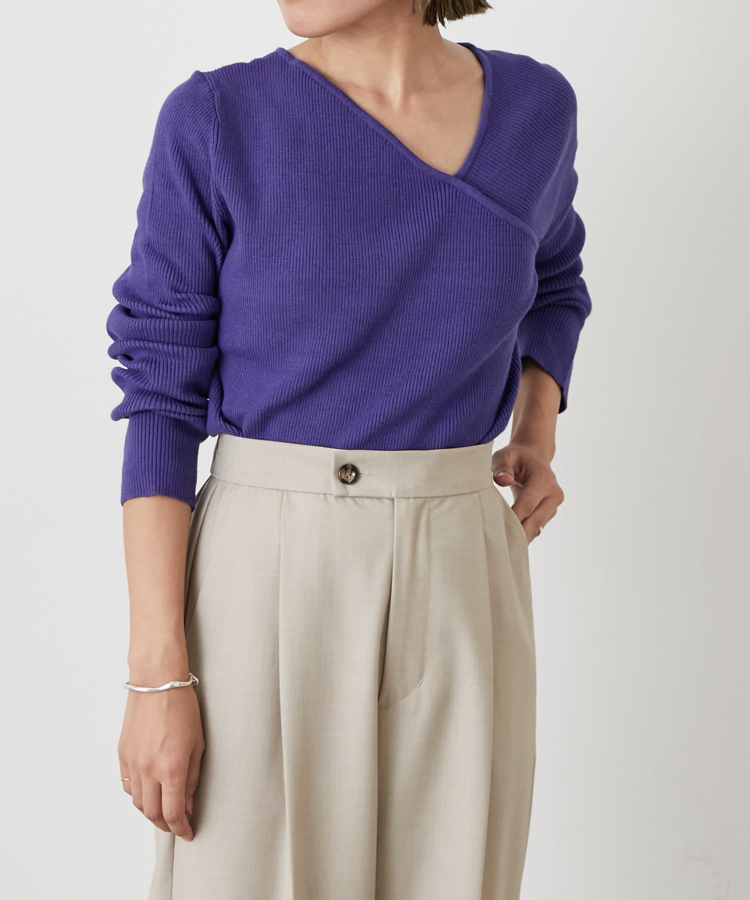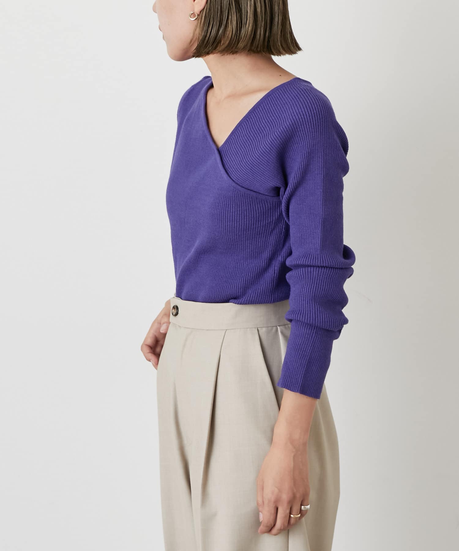 ・伸縮性のあるリブの編地がボディラインに程よくフィット。上半身をすっきりと女性らしく見せてくれます。