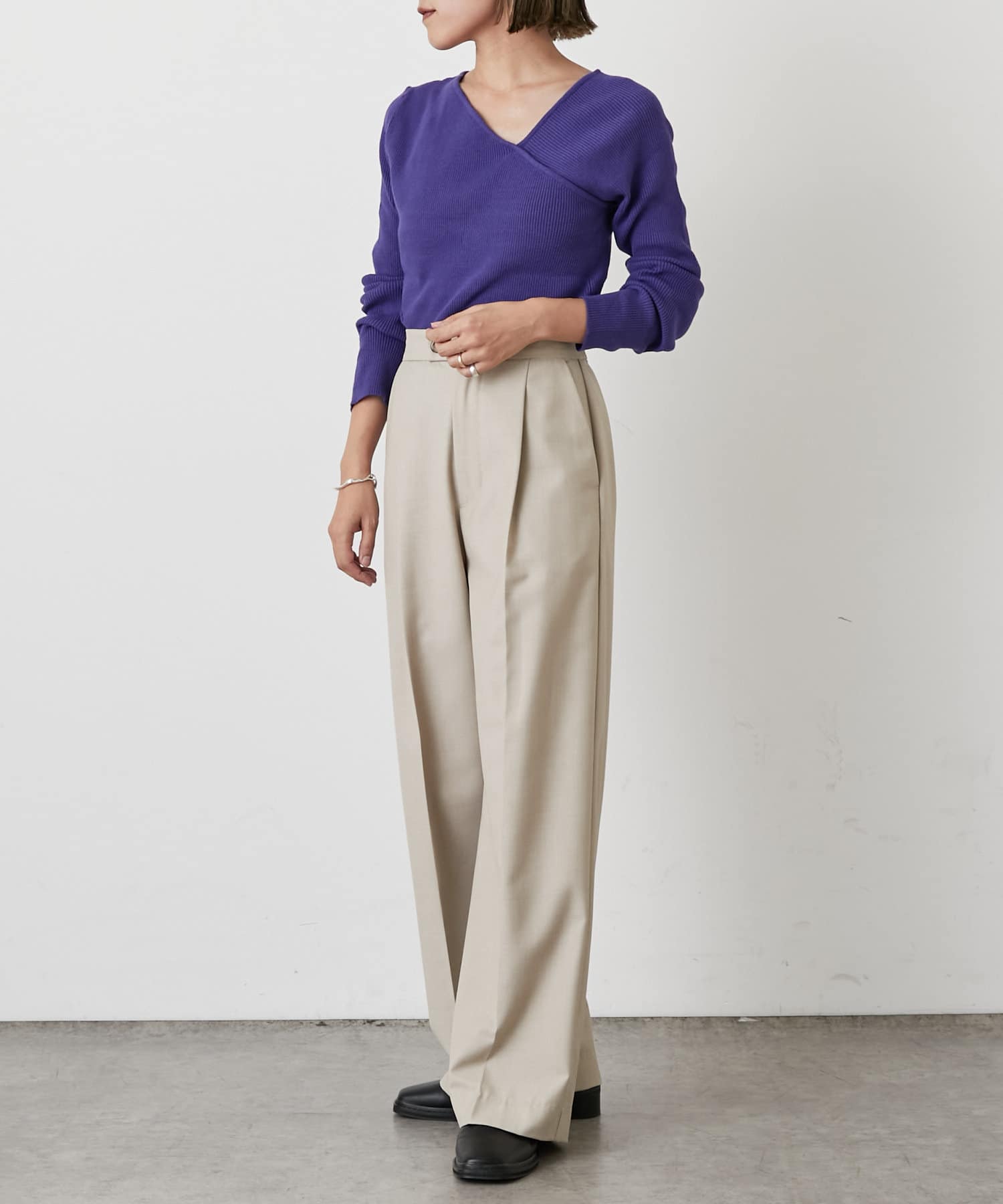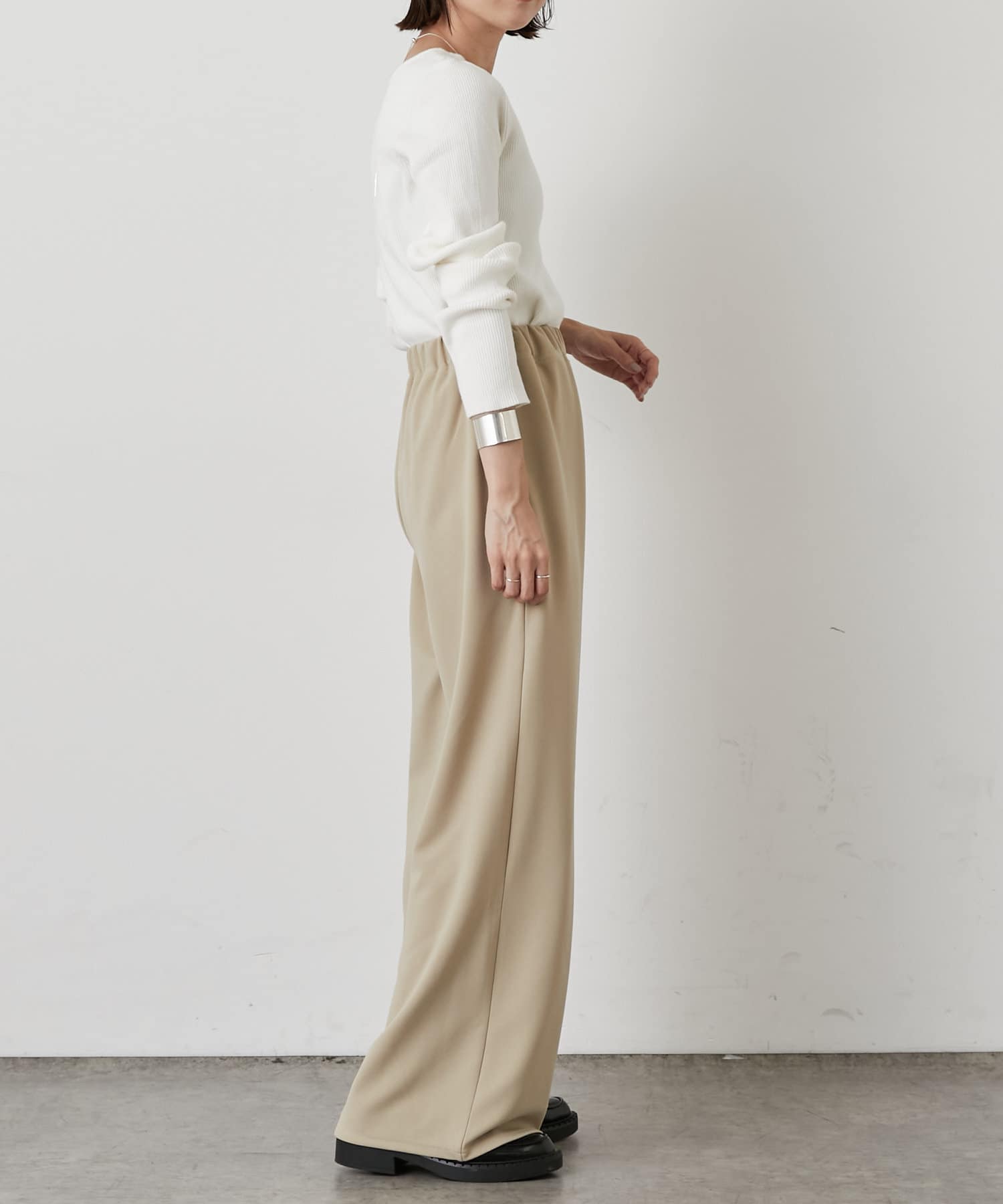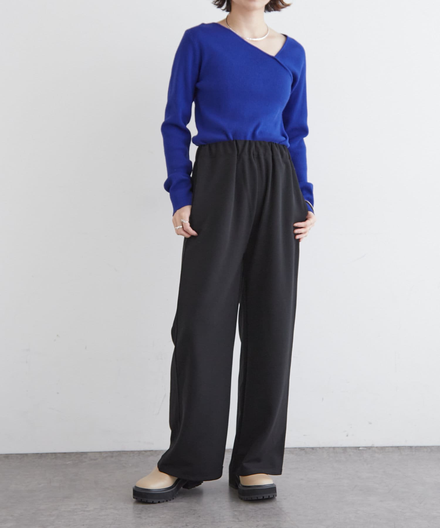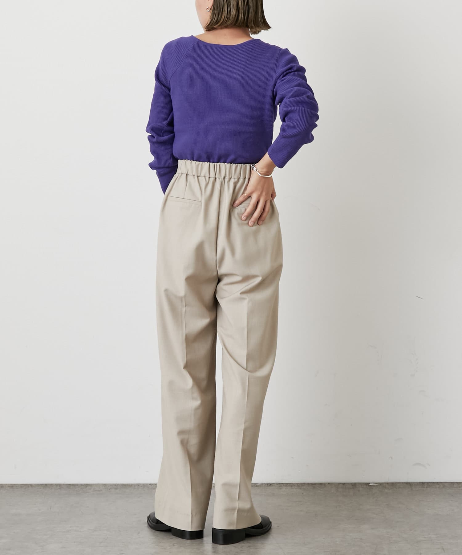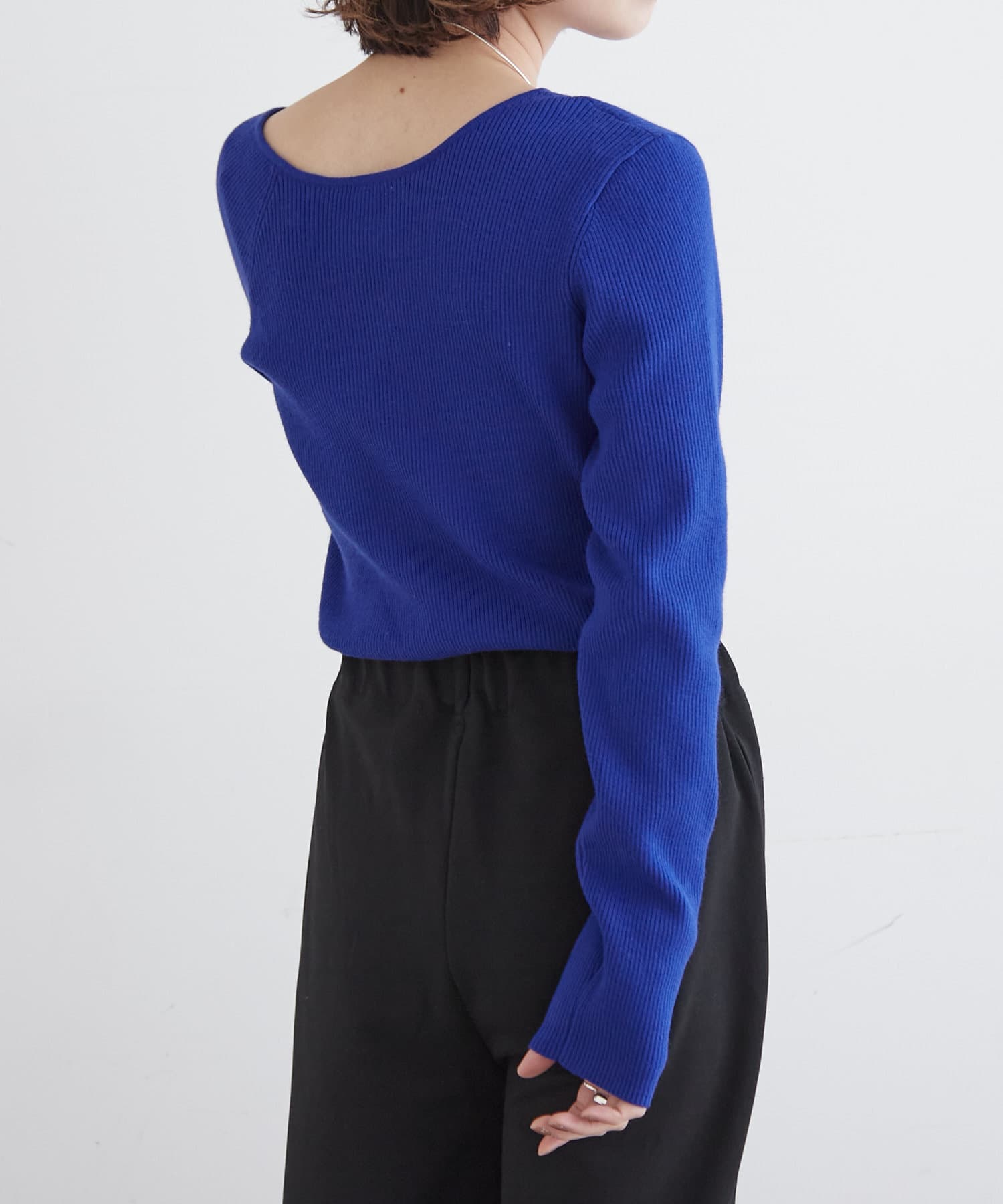 ・伸縮性のあるリブの編地がボディラインに程よくフィット。上半身をすっきりと女性らしく見せてくれます。