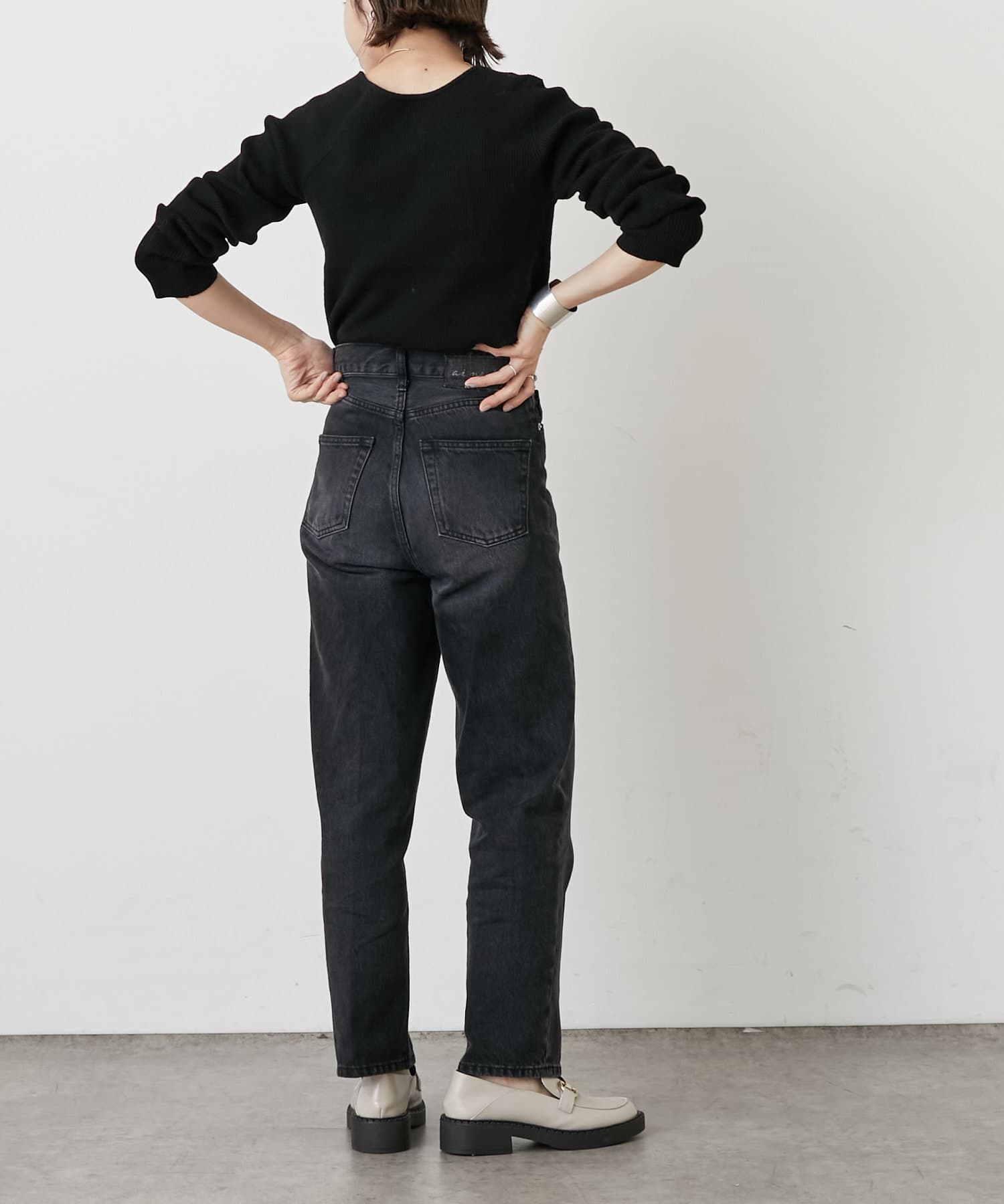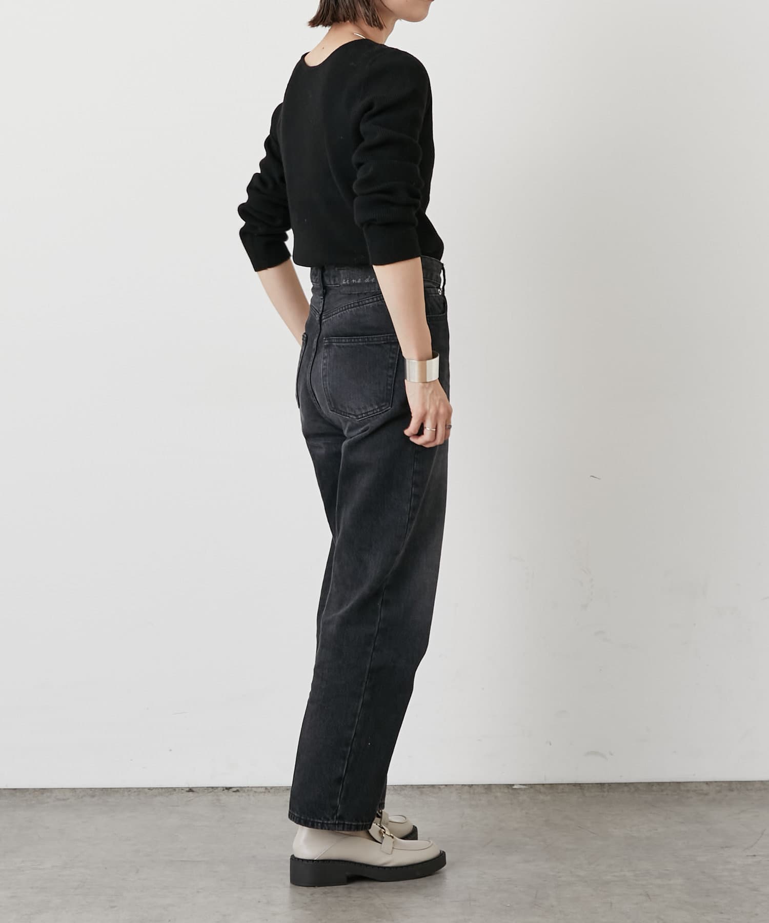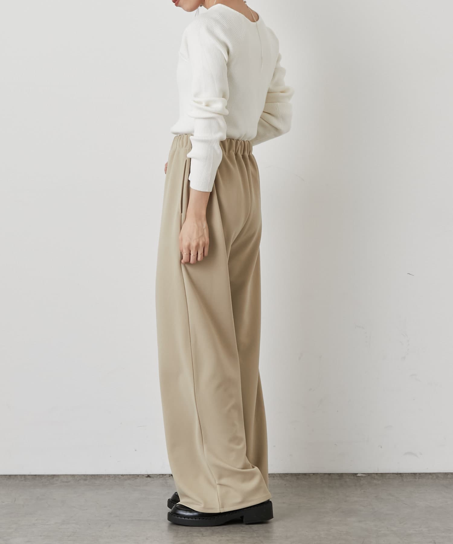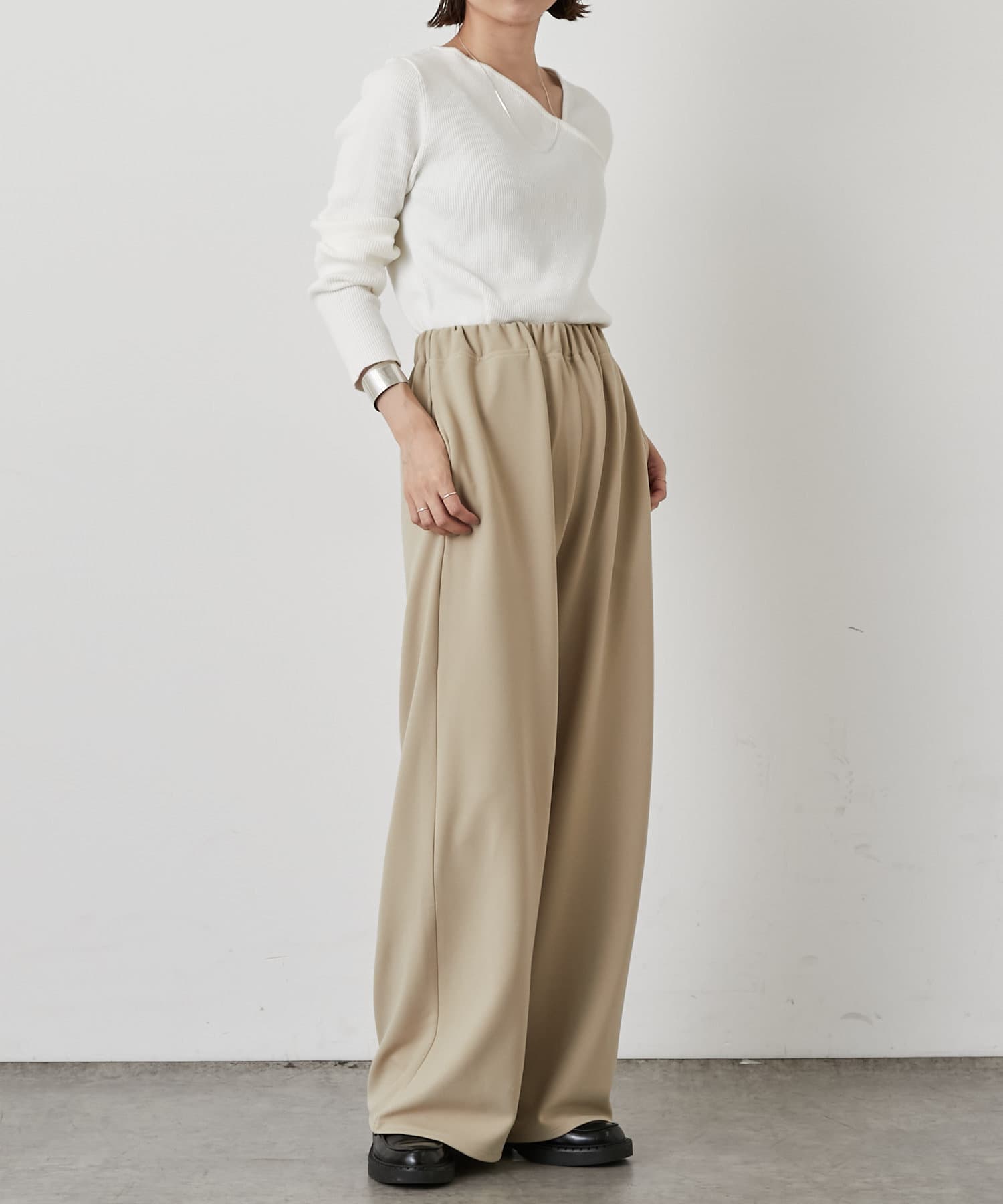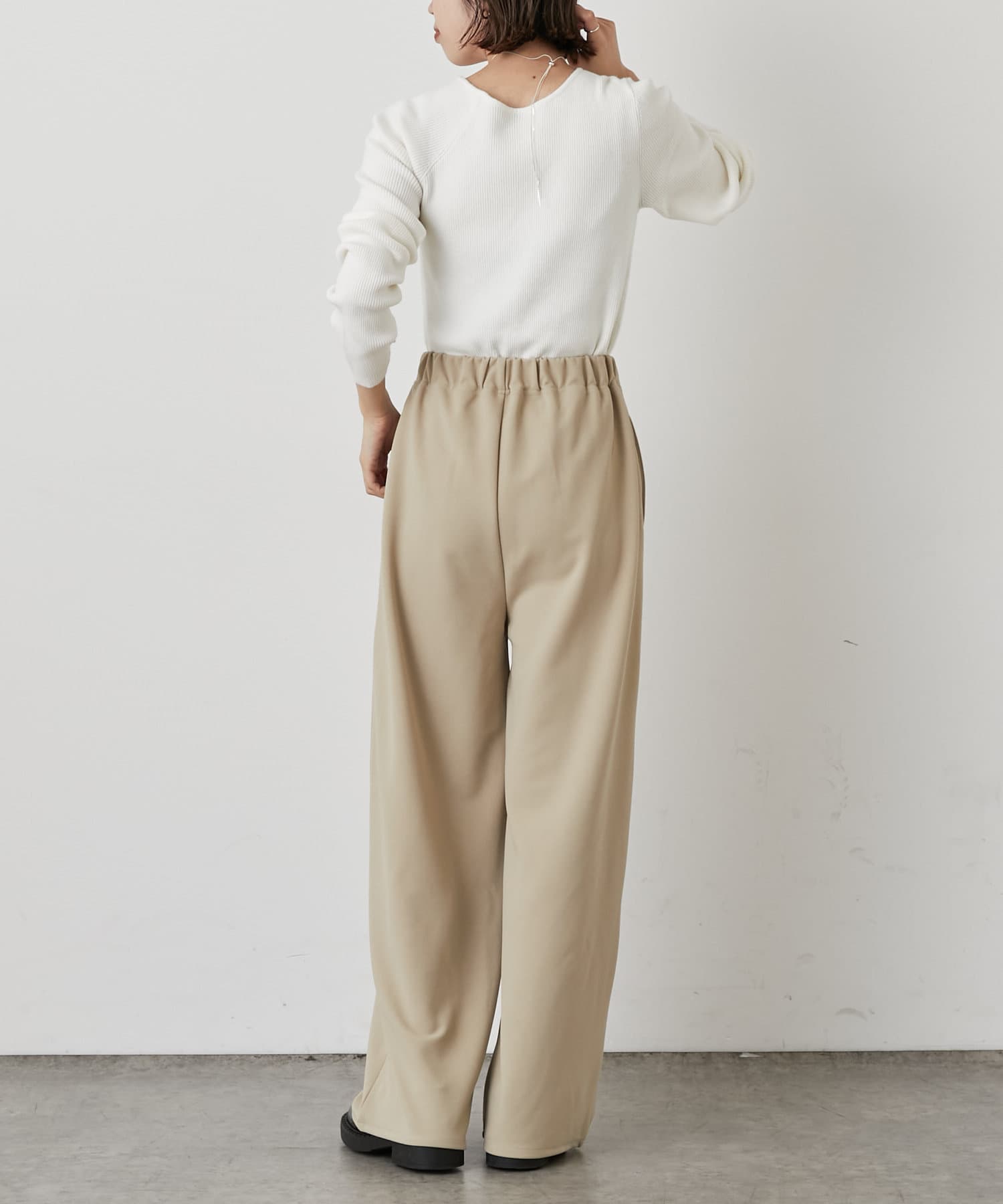 ・伸縮性のあるリブの編地がボディラインに程よくフィット。上半身をすっきりと女性らしく見せてくれます。