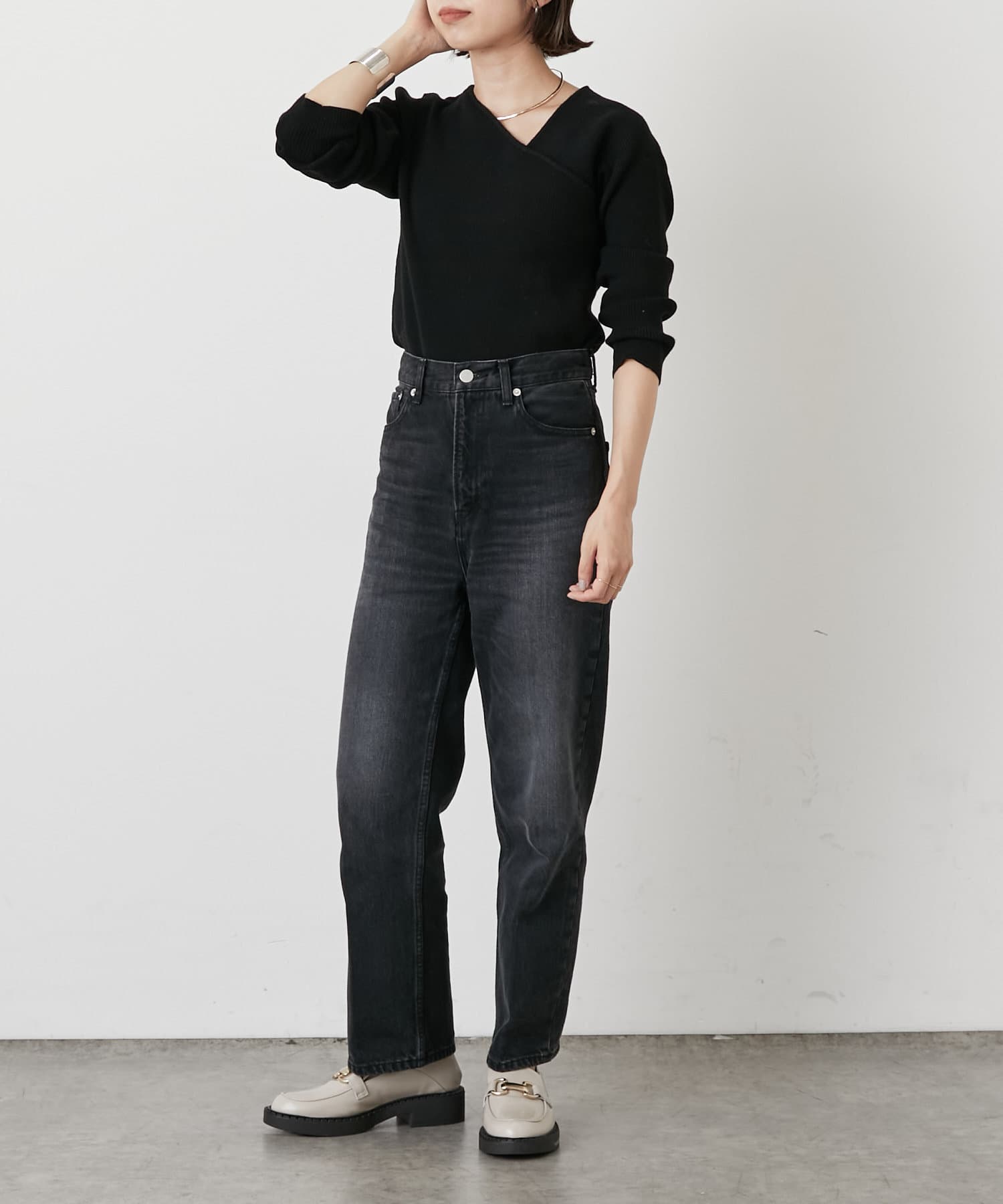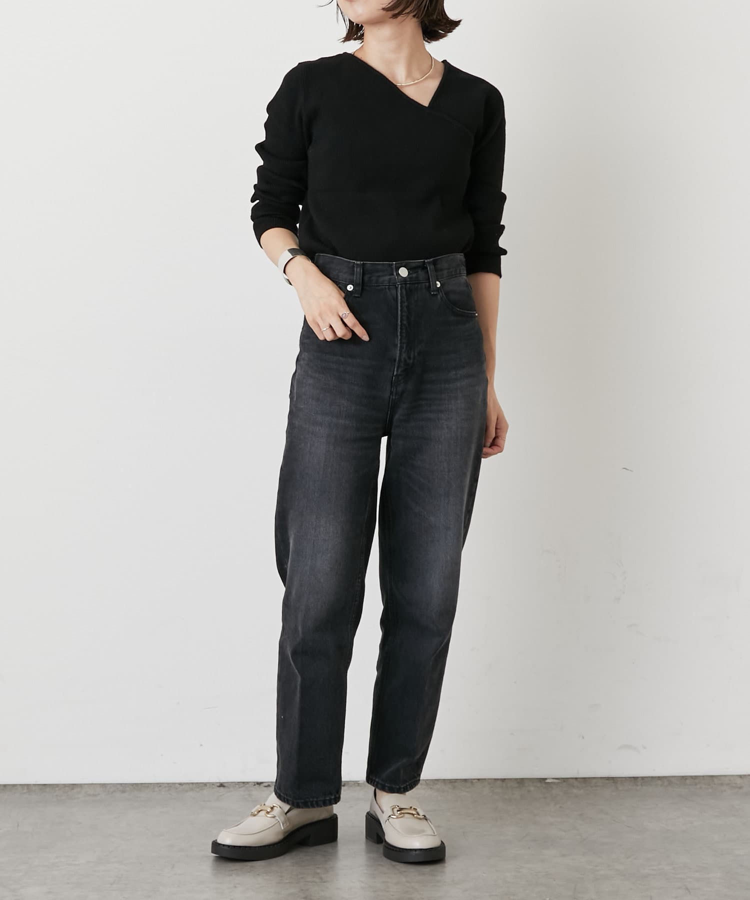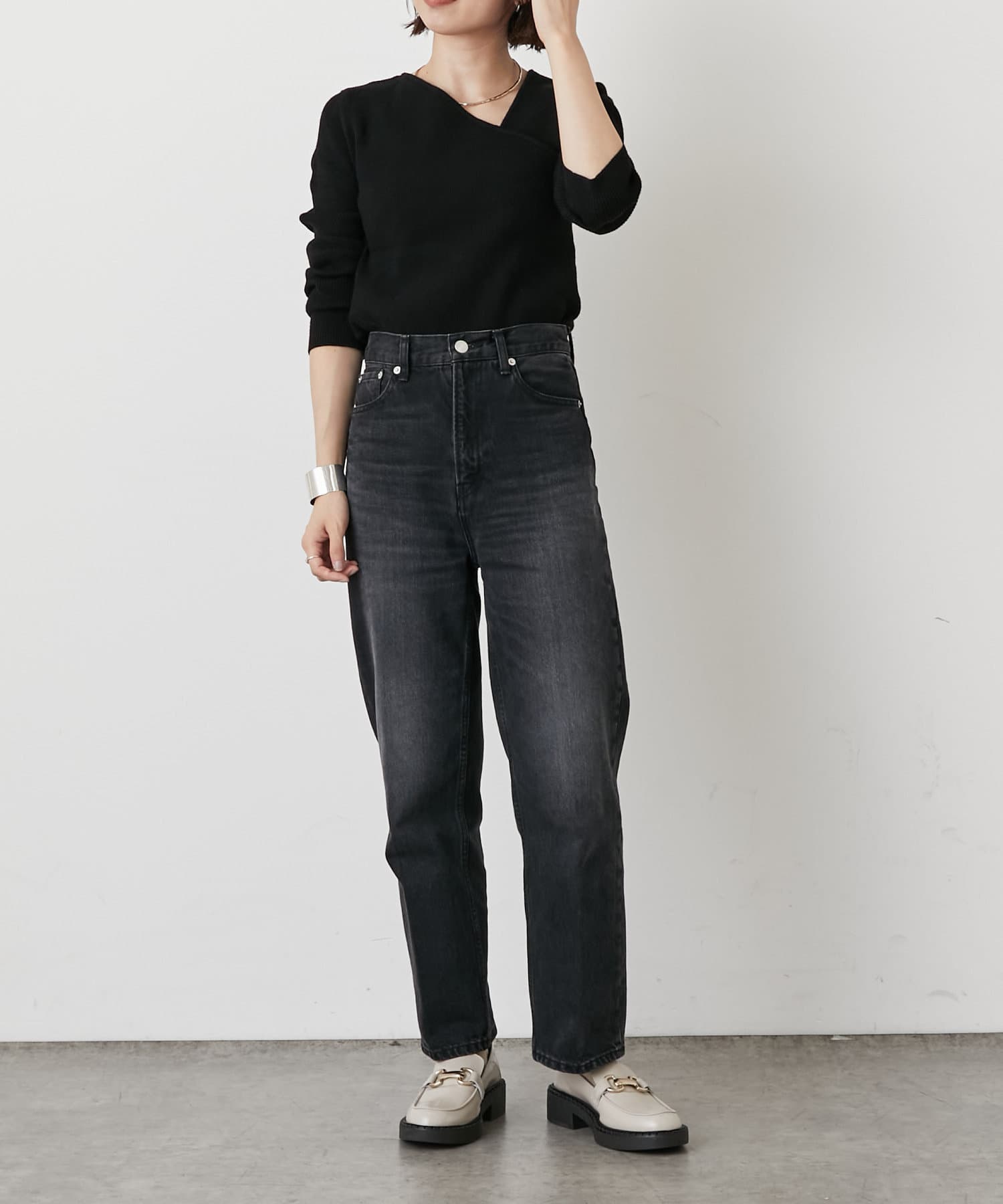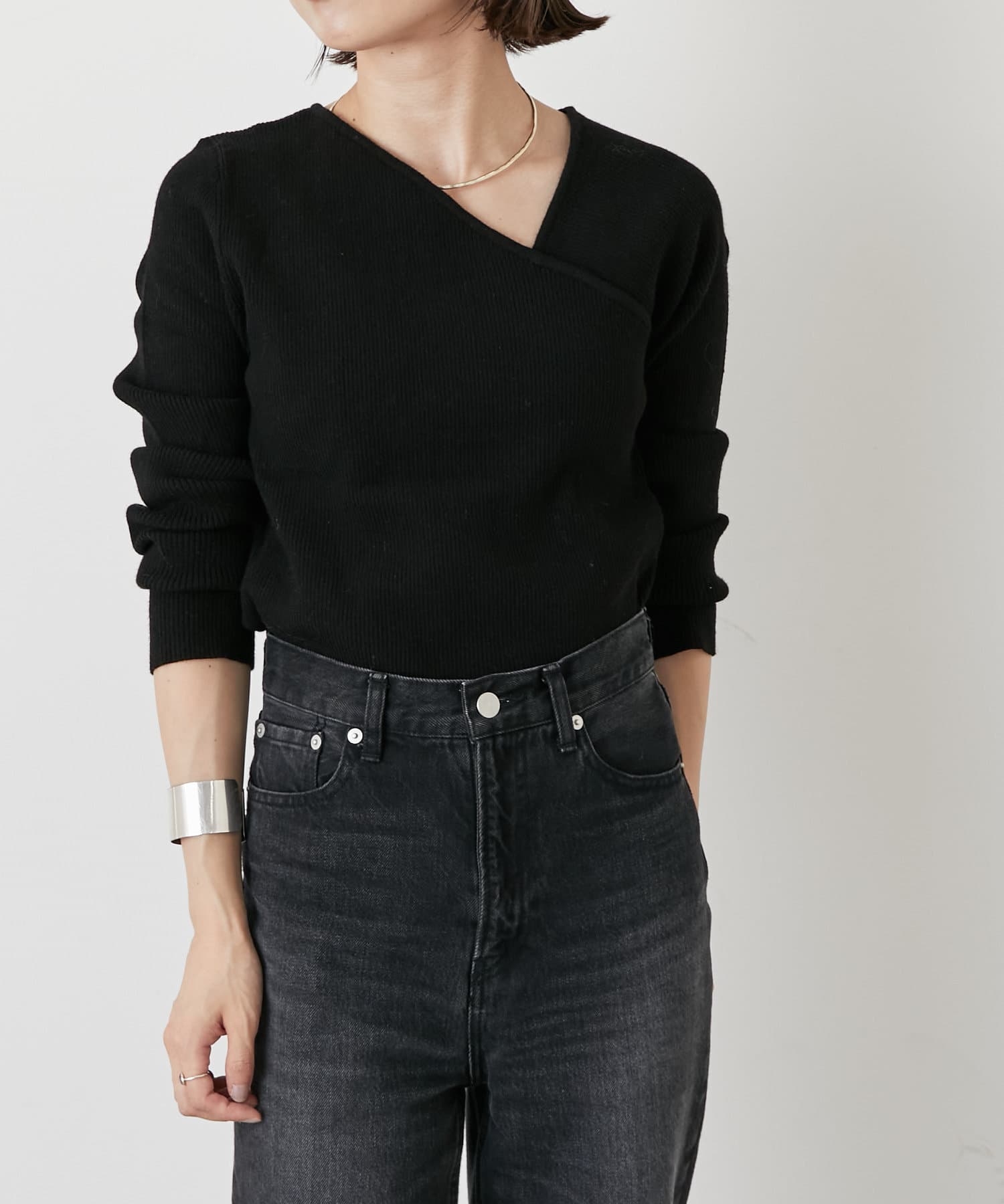 ・ヘルシーな大人の肌見せを叶える変形Vネックデザインが、シンプルながらポイントになる一着。