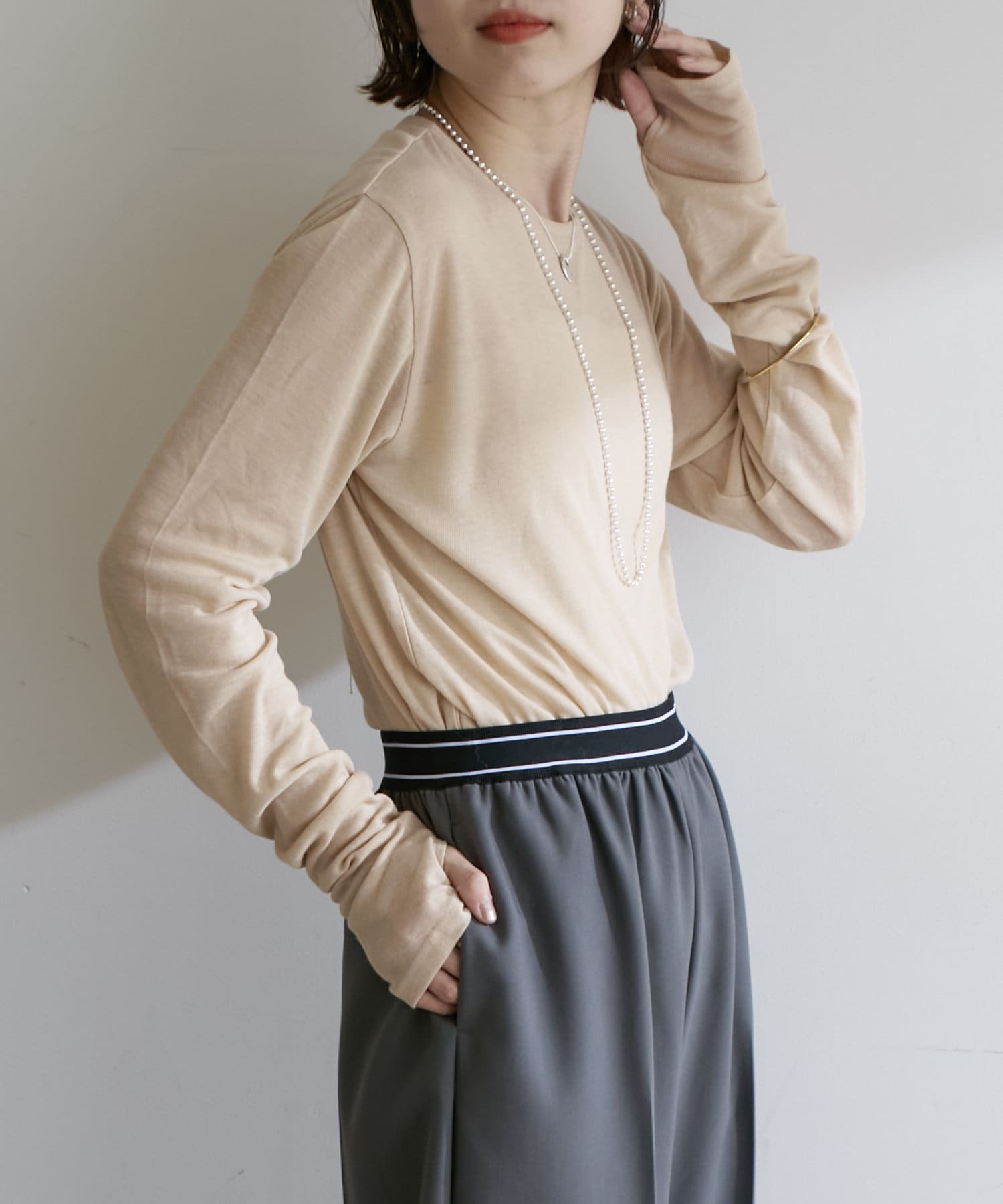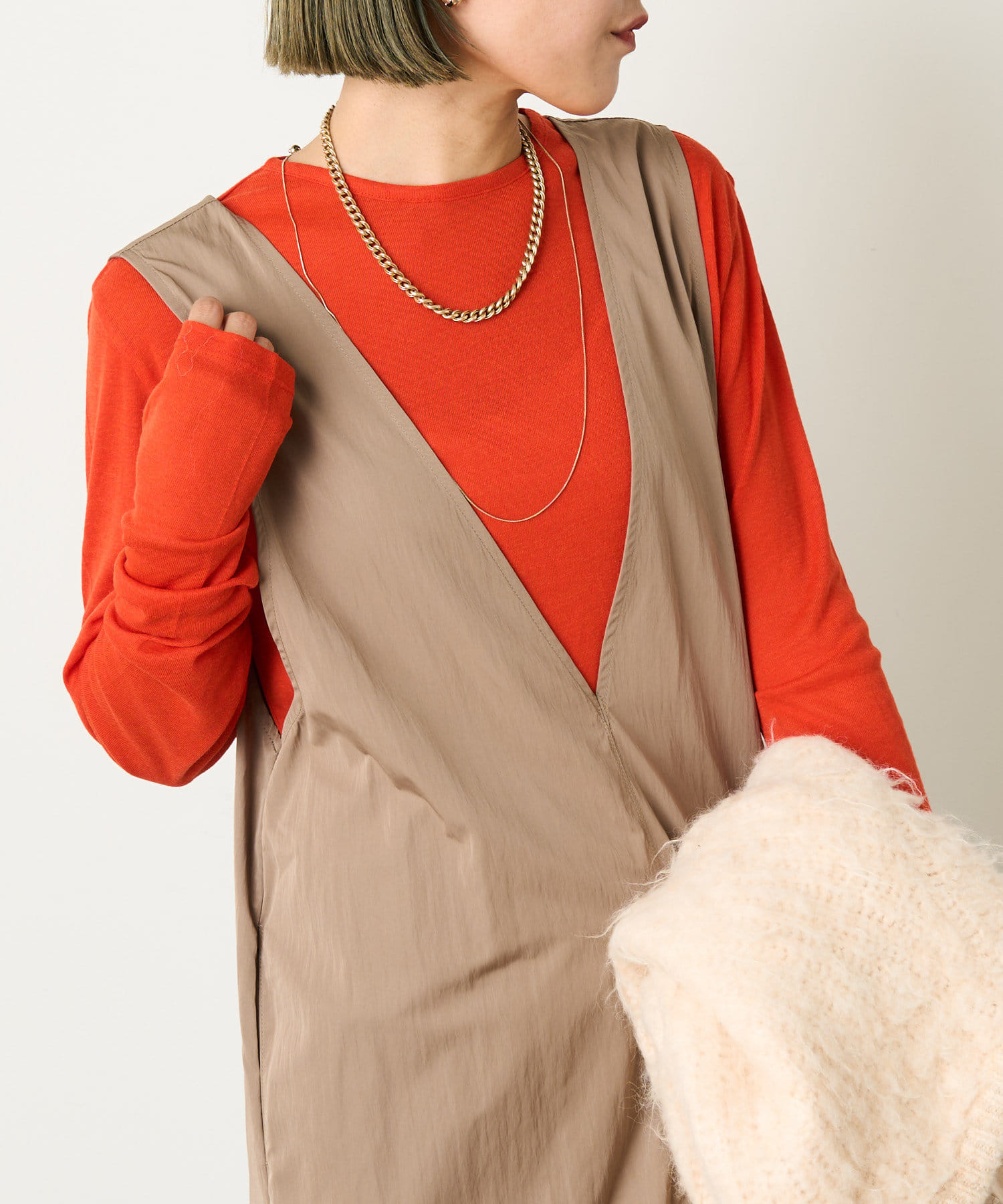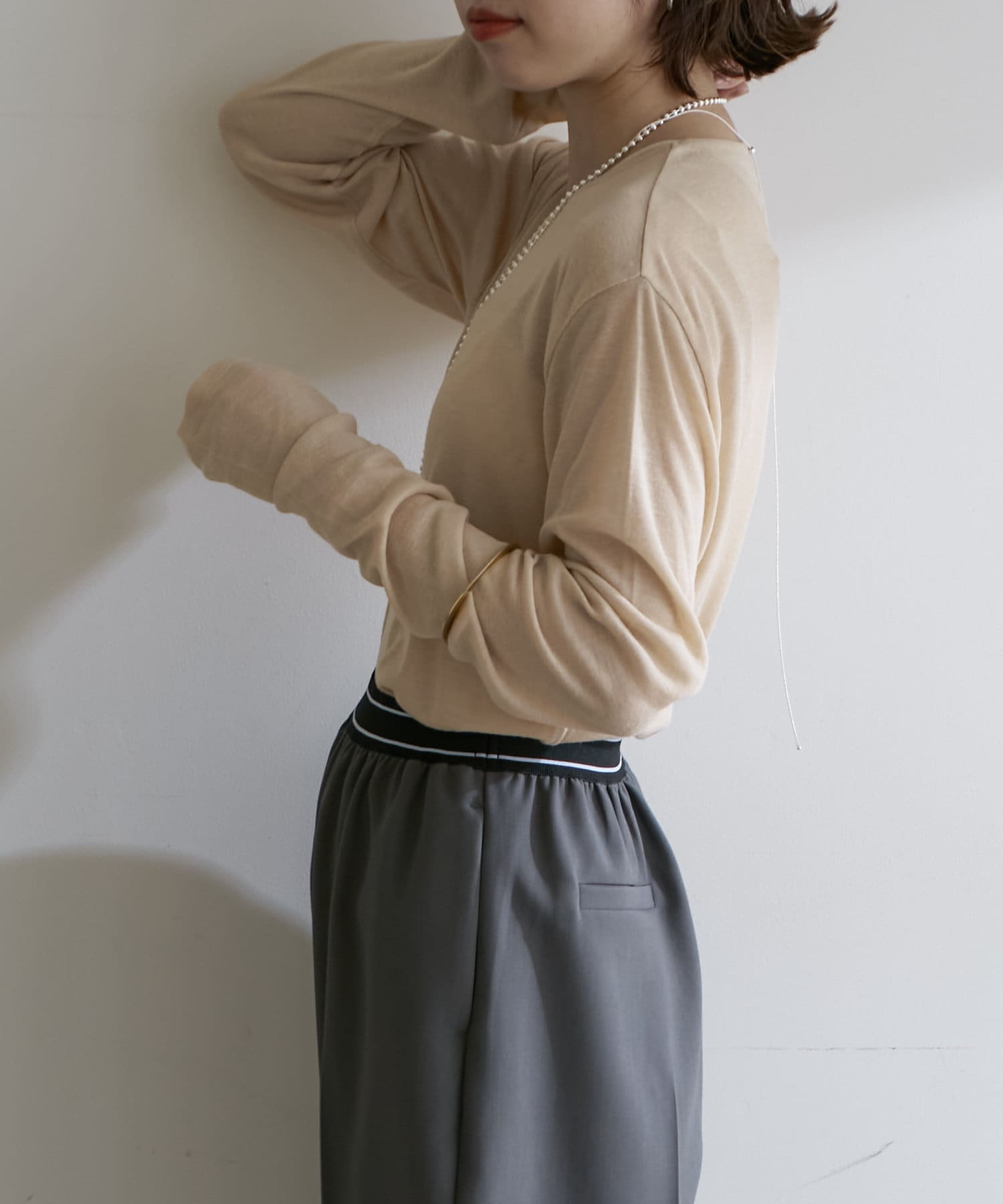 ・一枚ではもちろん、カーディガンやジャケットなどのインナーに着用し、レイヤードを楽しんでいただけます。