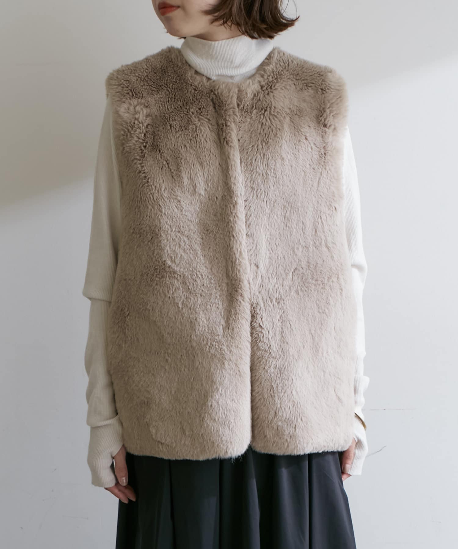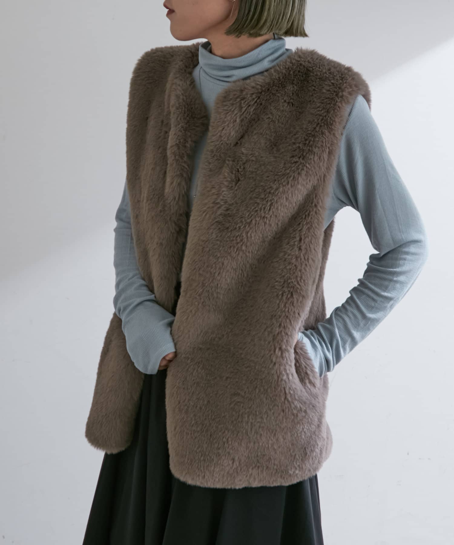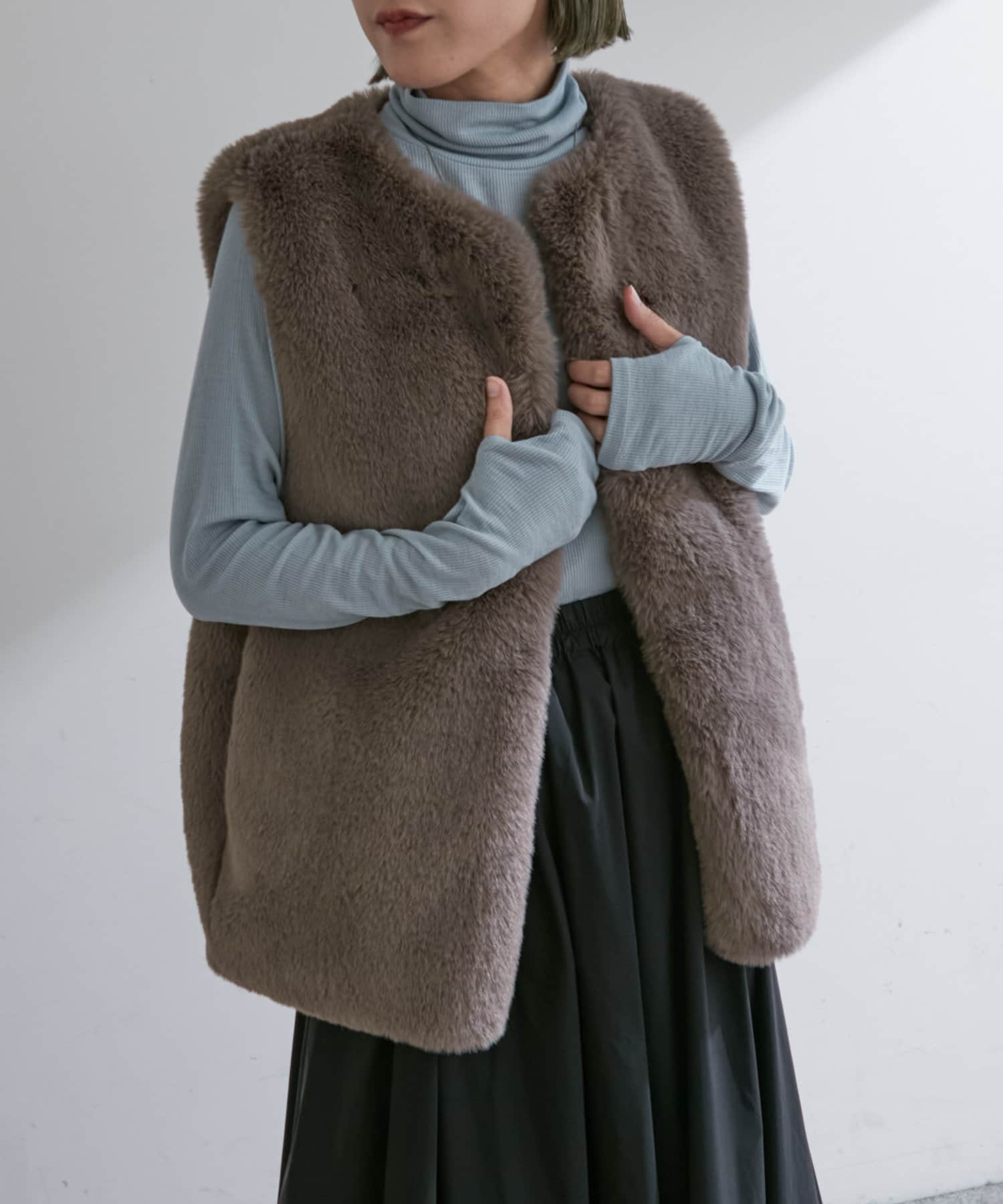 ・程よいボリューム感で華美になり過ぎずデイリー使いもしやすいファーベスト。