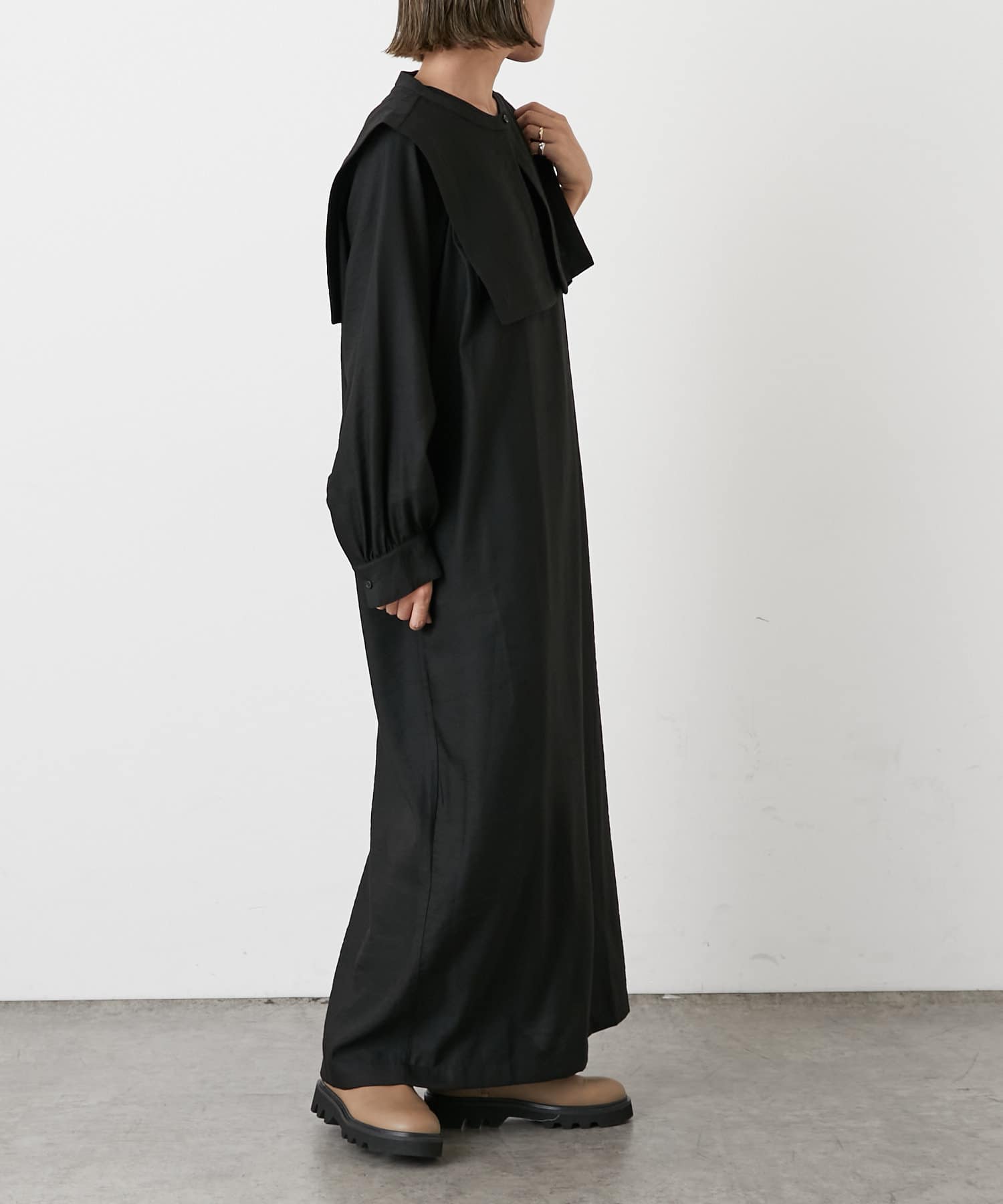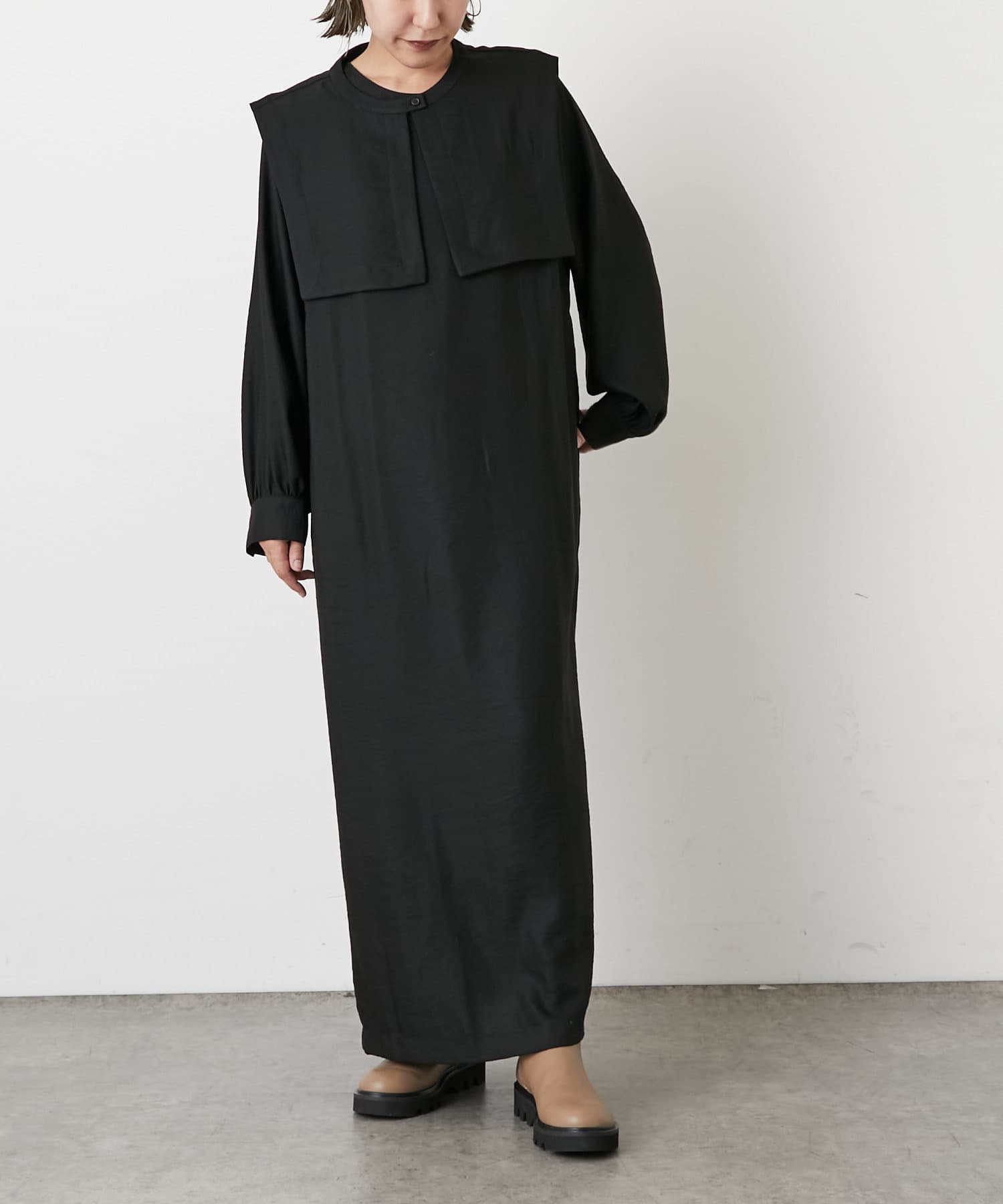 ・滑らかで落ち感のあるシンプルなワンピースと、印象的なビッグカラーのSET
