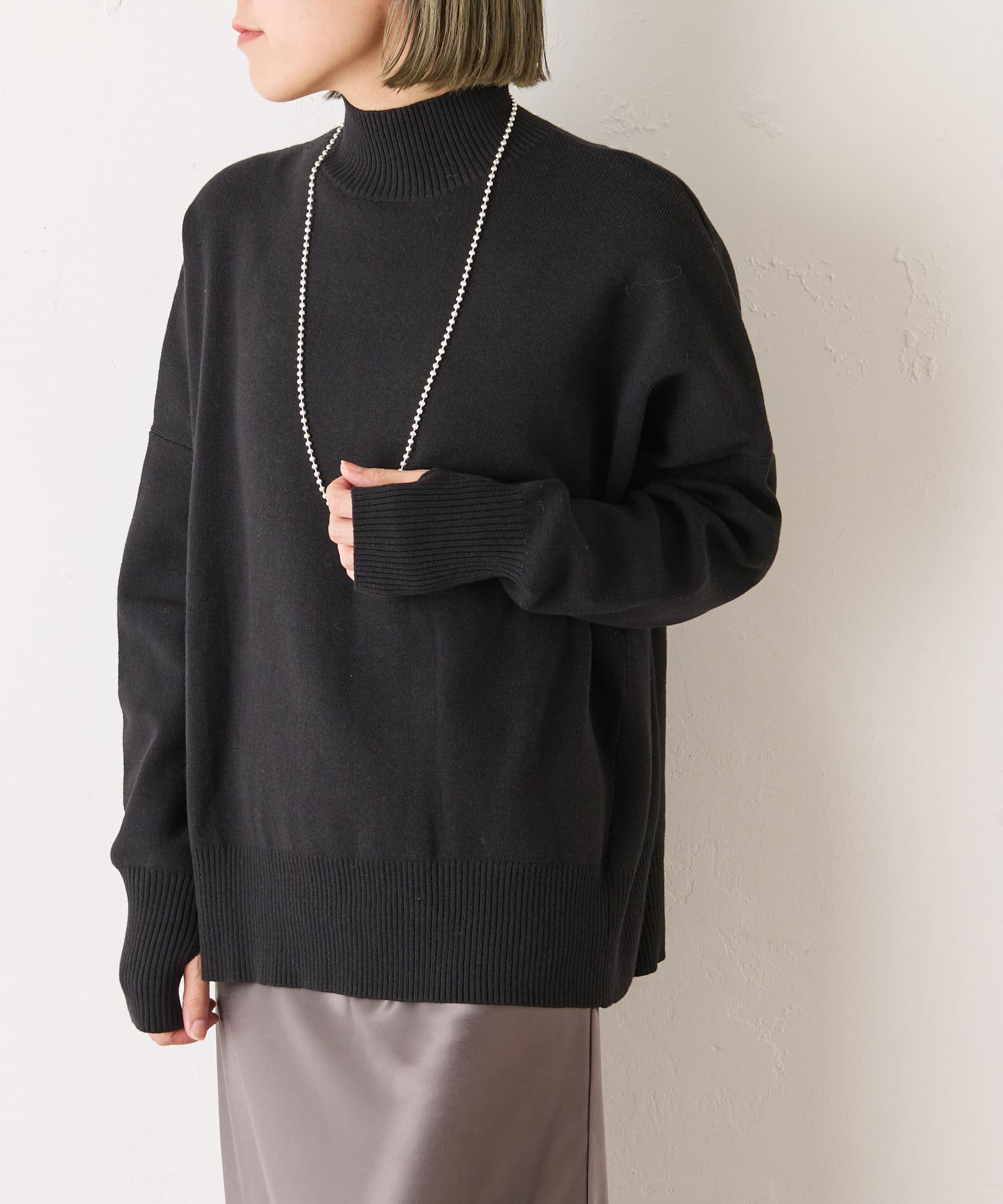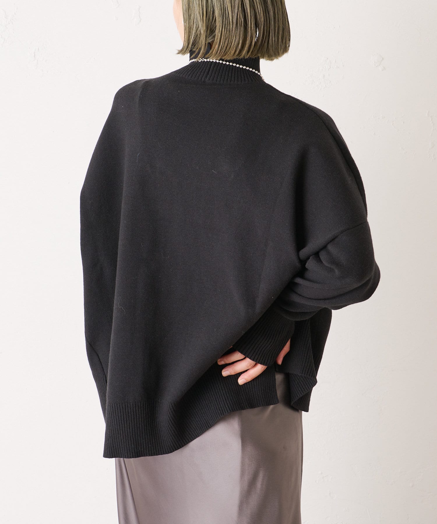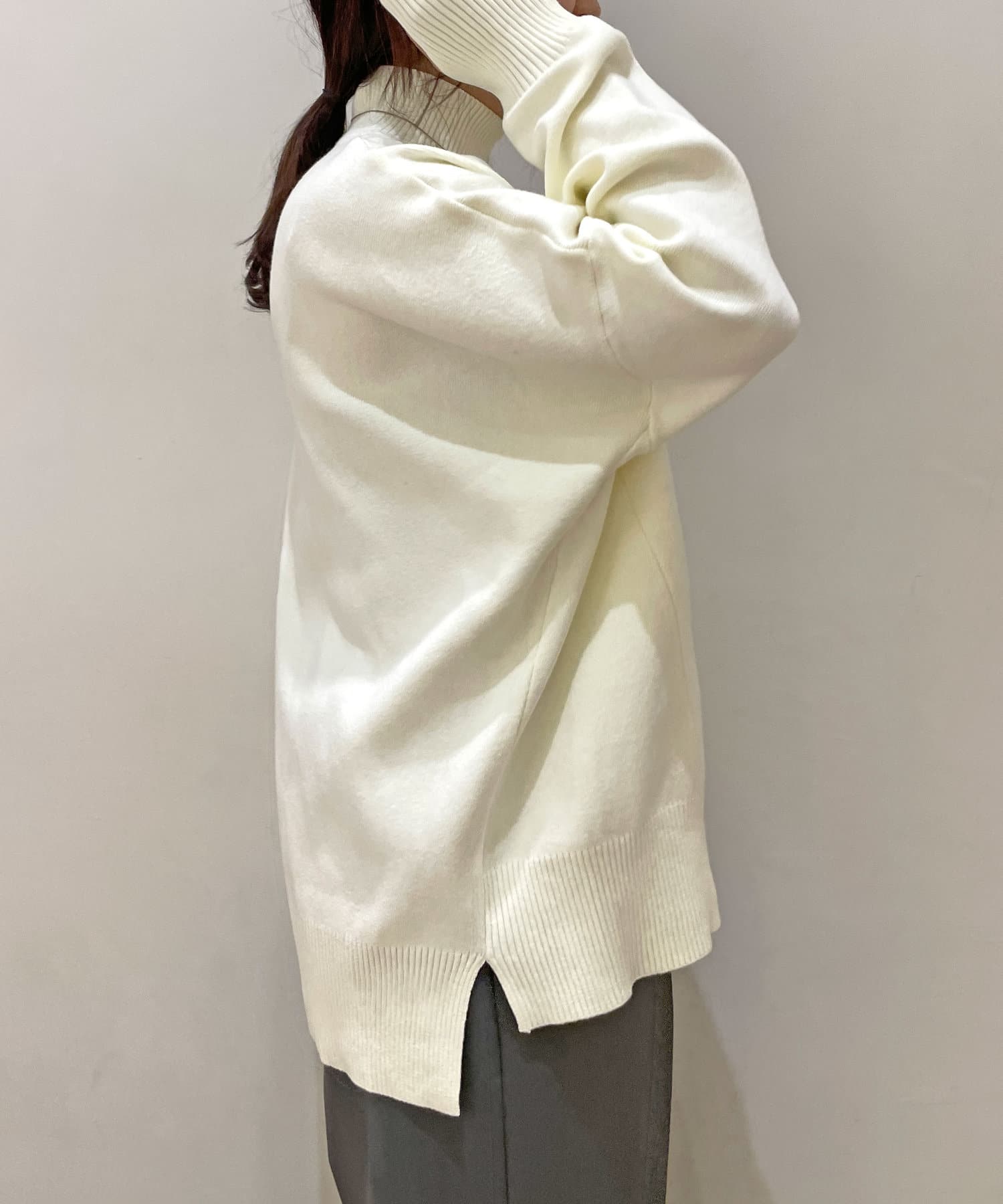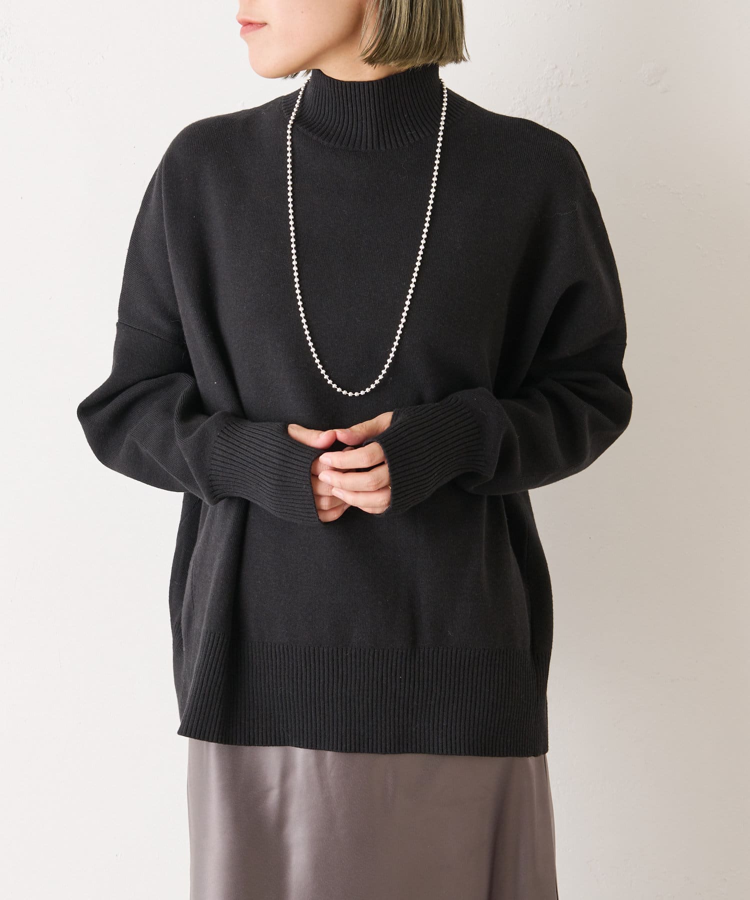 ・首元が詰まりすぎない程良い高さのタートルネックで、シンプルで着心地が良いニットプルオーバーです。