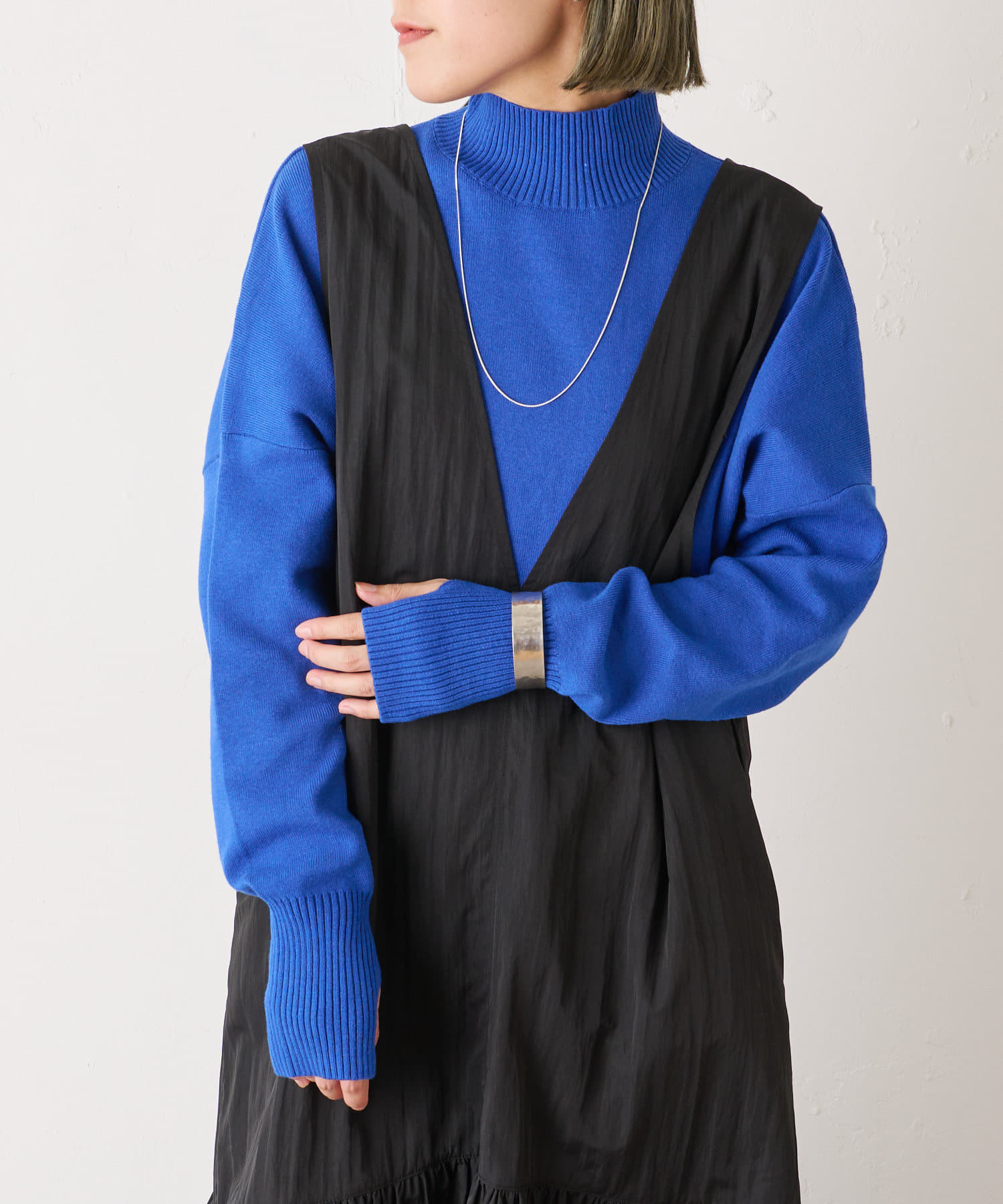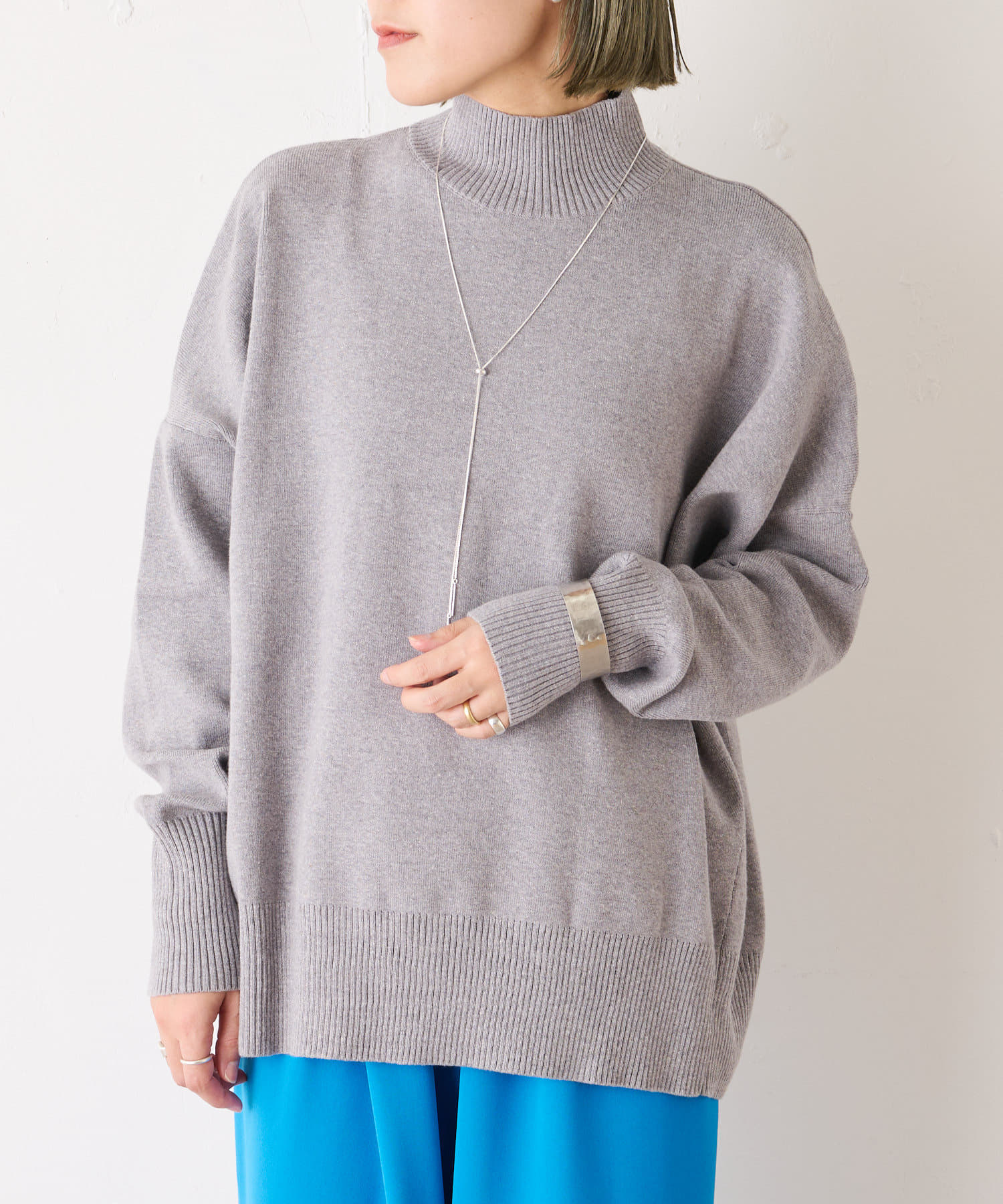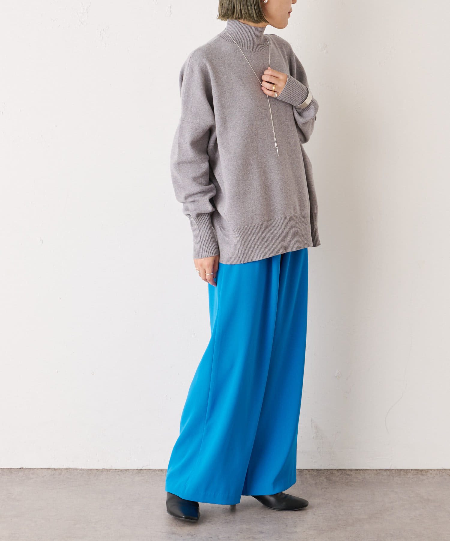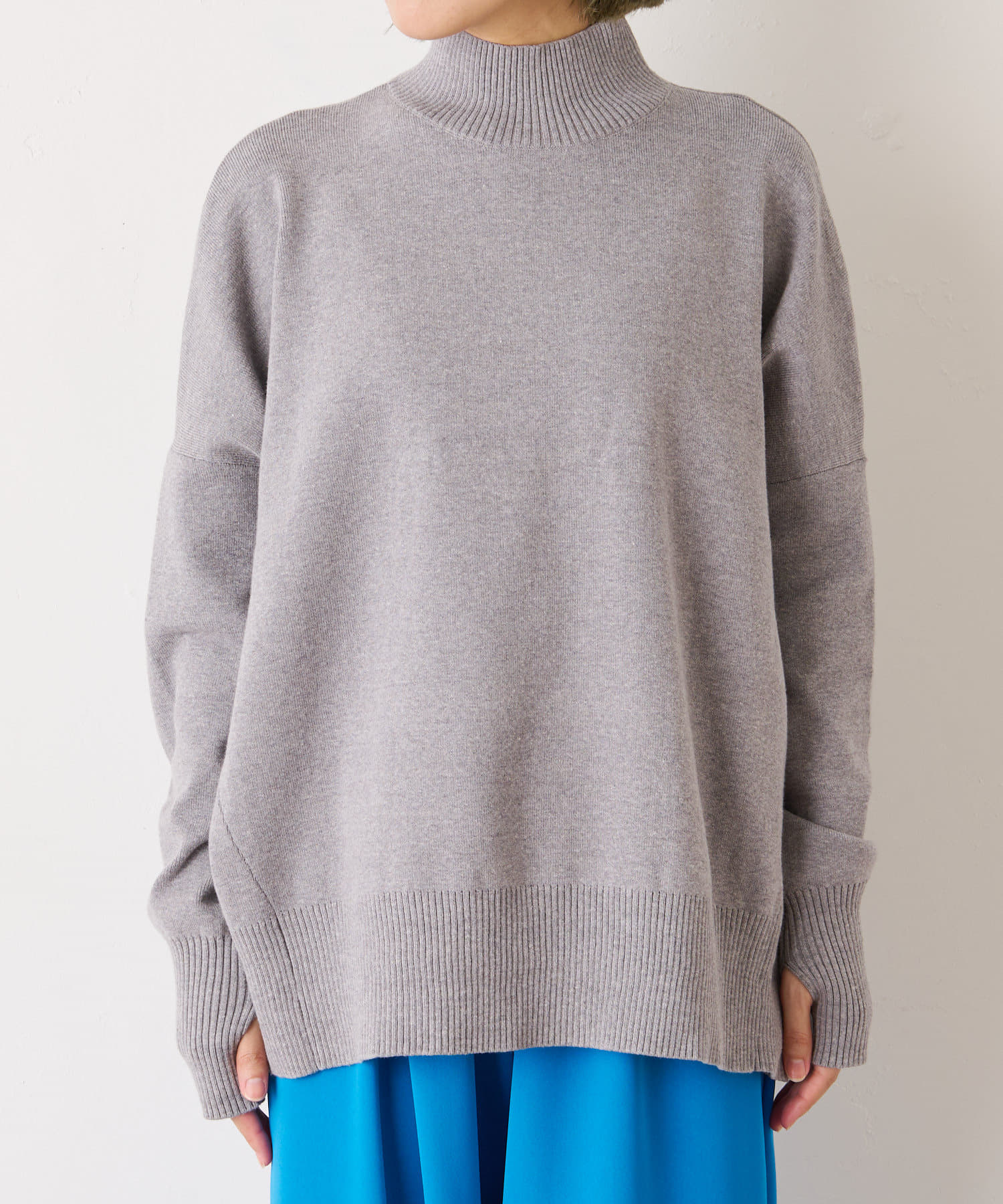 ・首元が詰まりすぎない程良い高さのタートルネックで、シンプルで着心地が良いニットプルオーバーです。