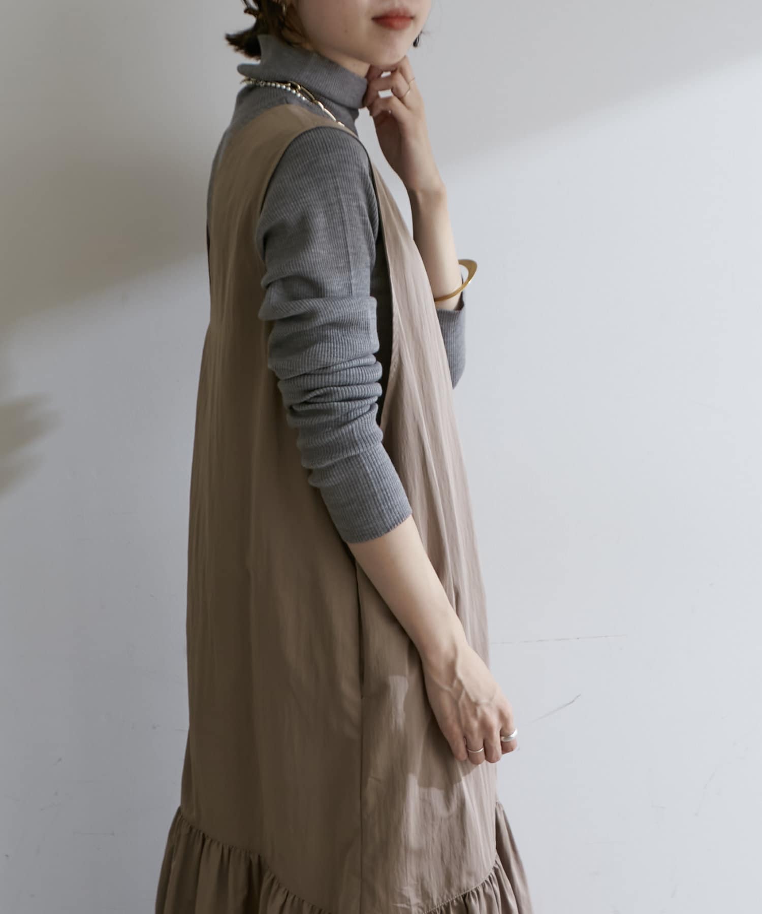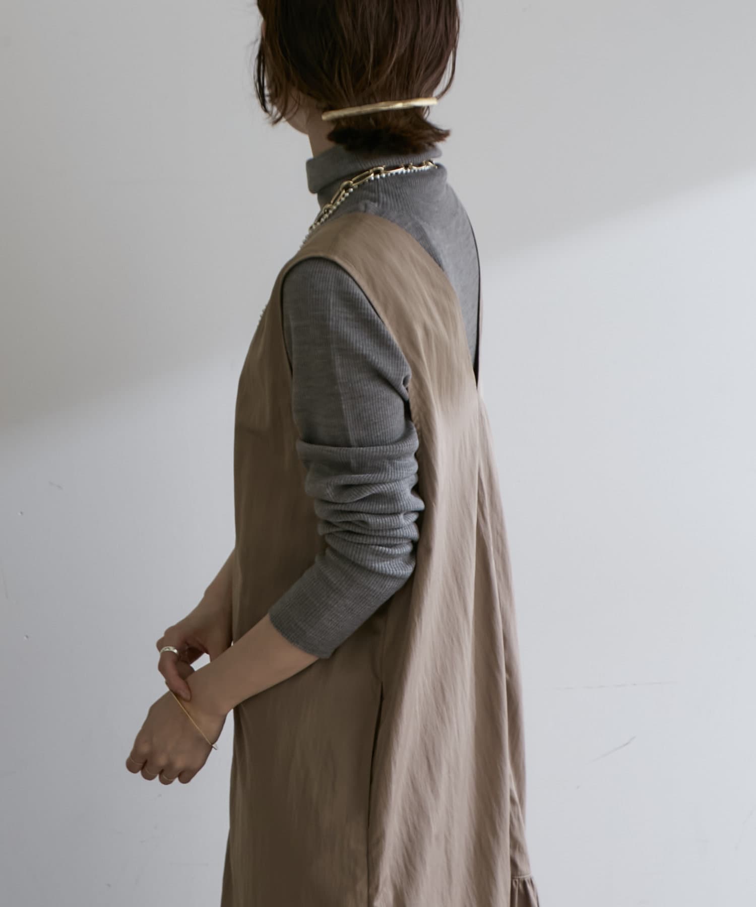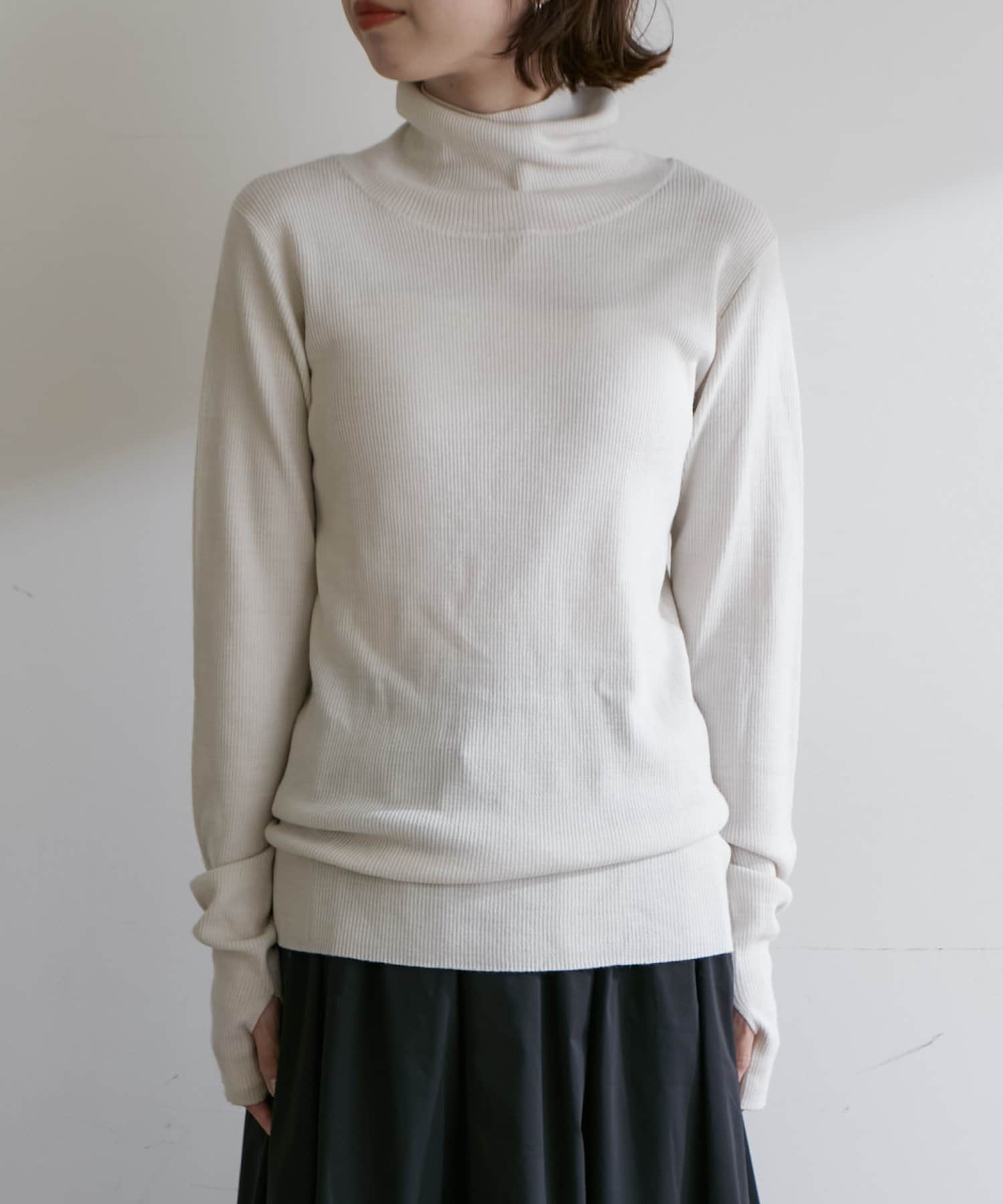 ・一枚ではもちろん、ニットやスウェット、シャツなどのインナーに着用し、ネックや袖口のレイヤードを楽しんでいただけます。