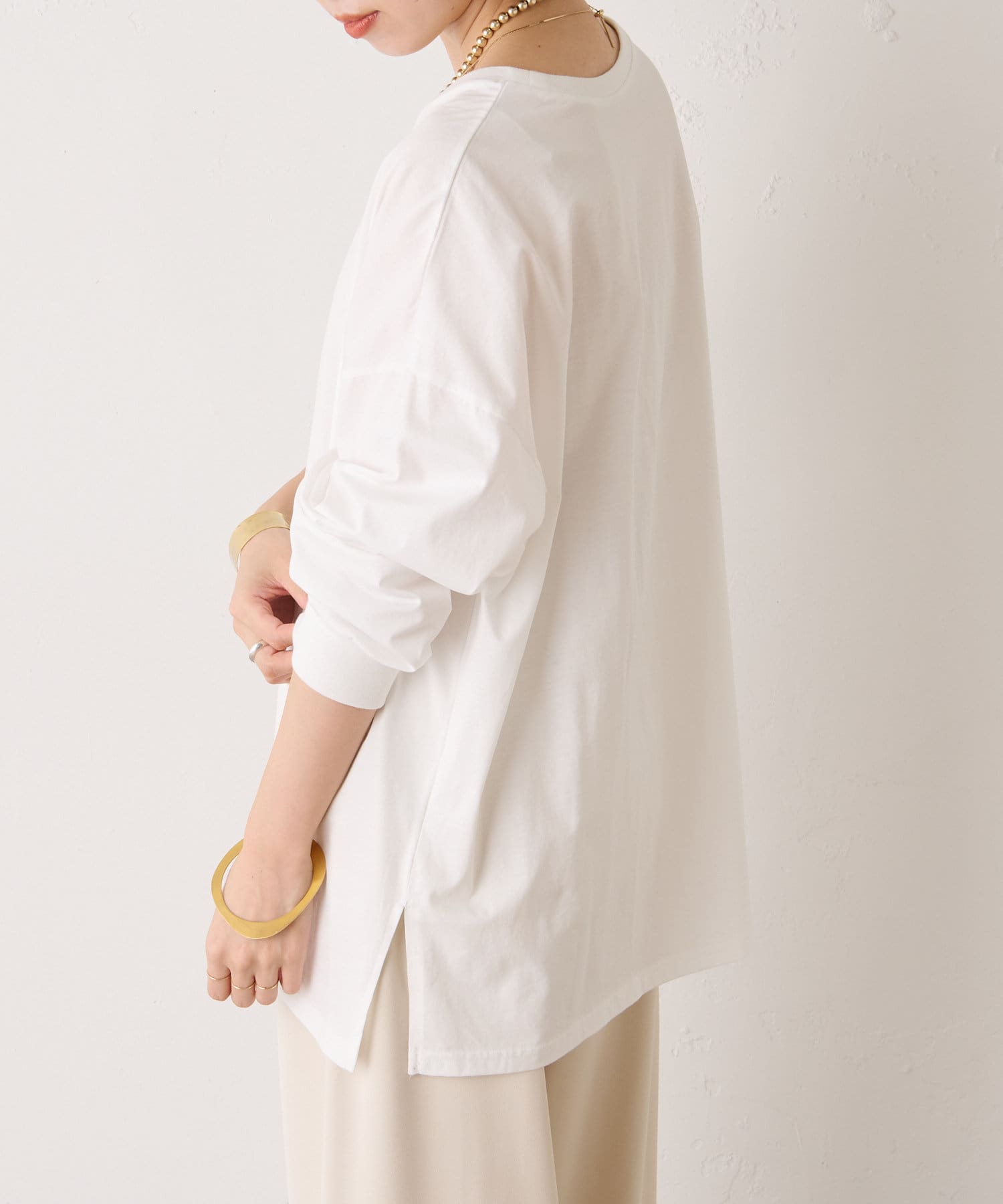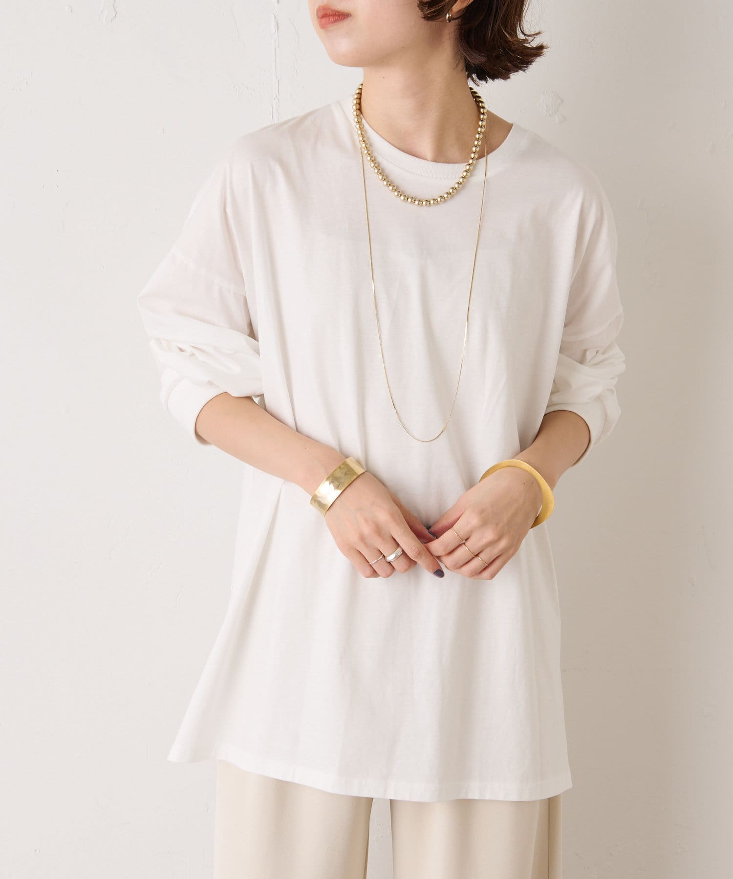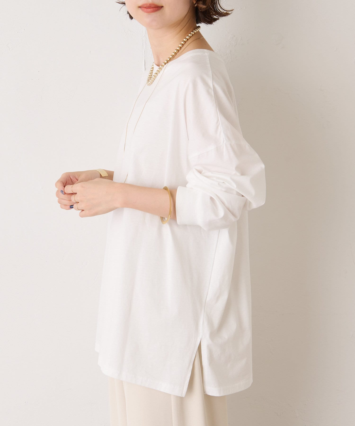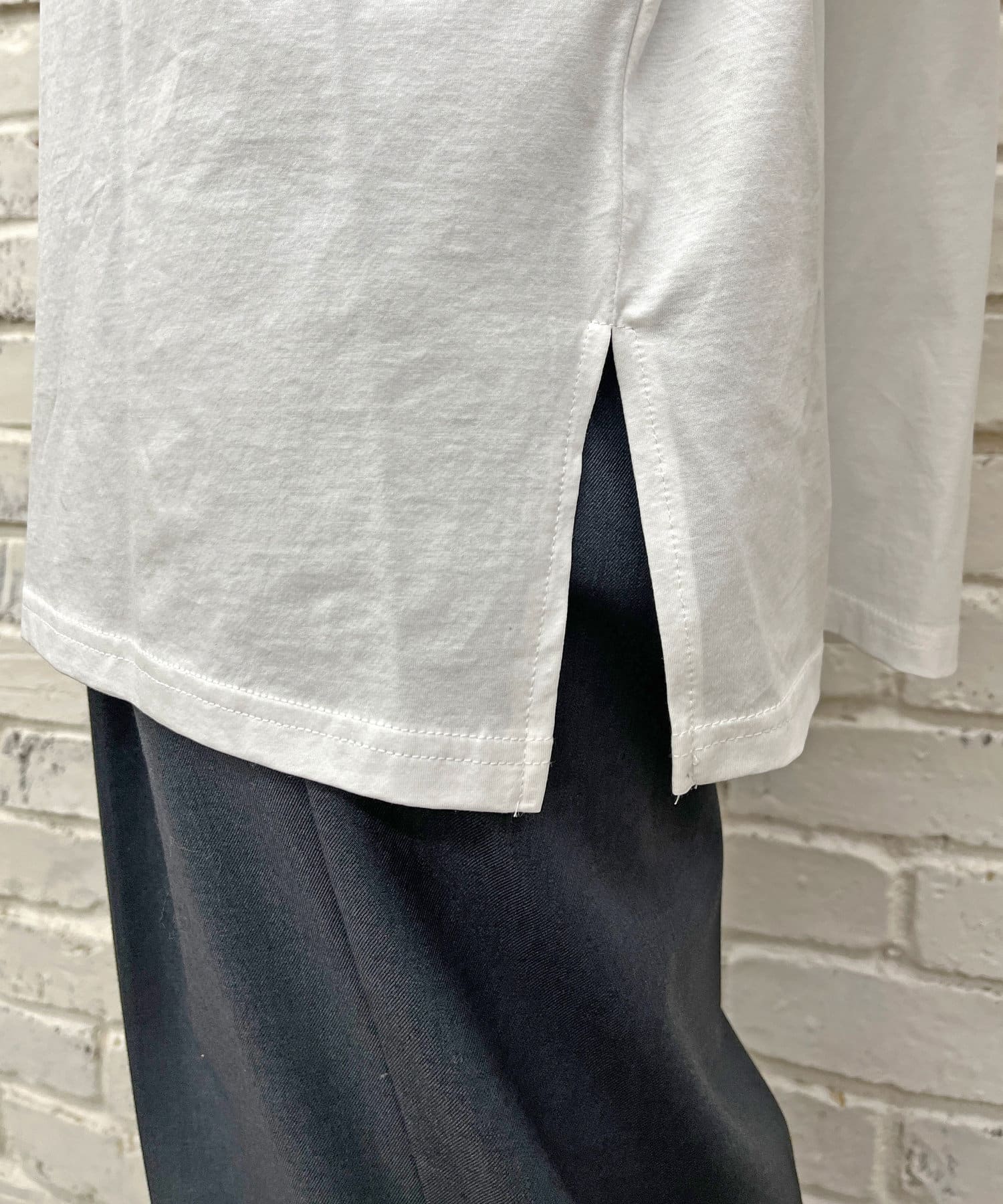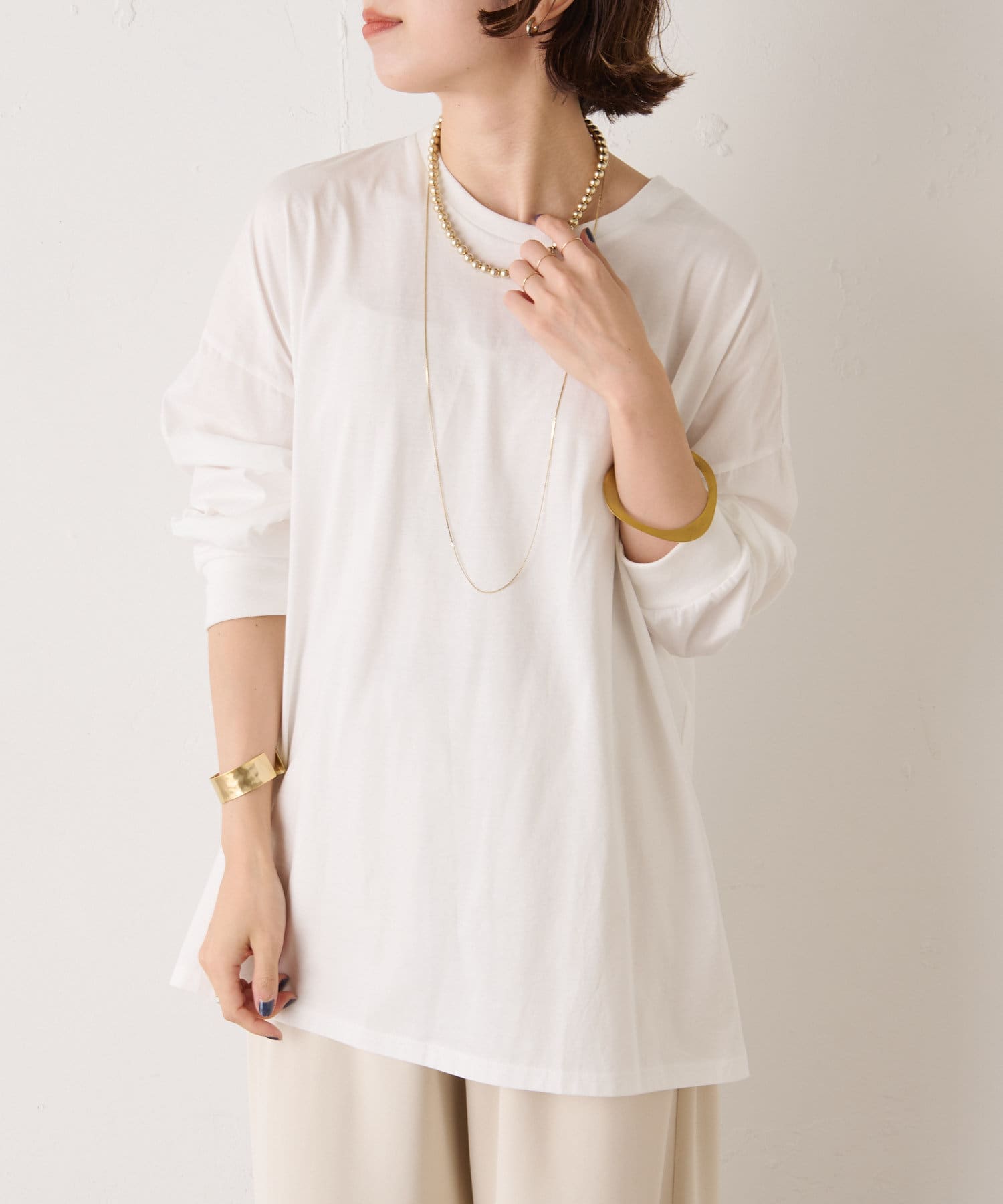 さらりとした肌触りのシルケット加工生地を使用したカットロングプルオーバー