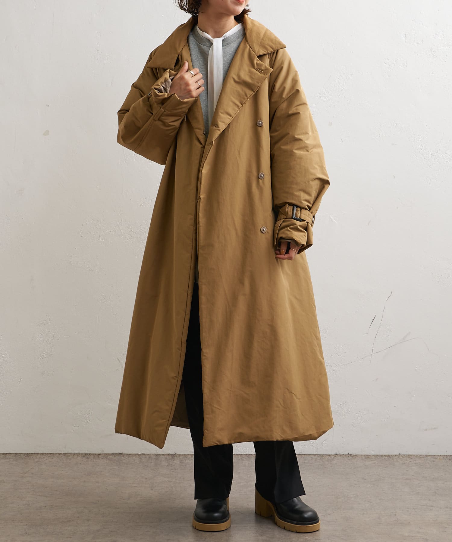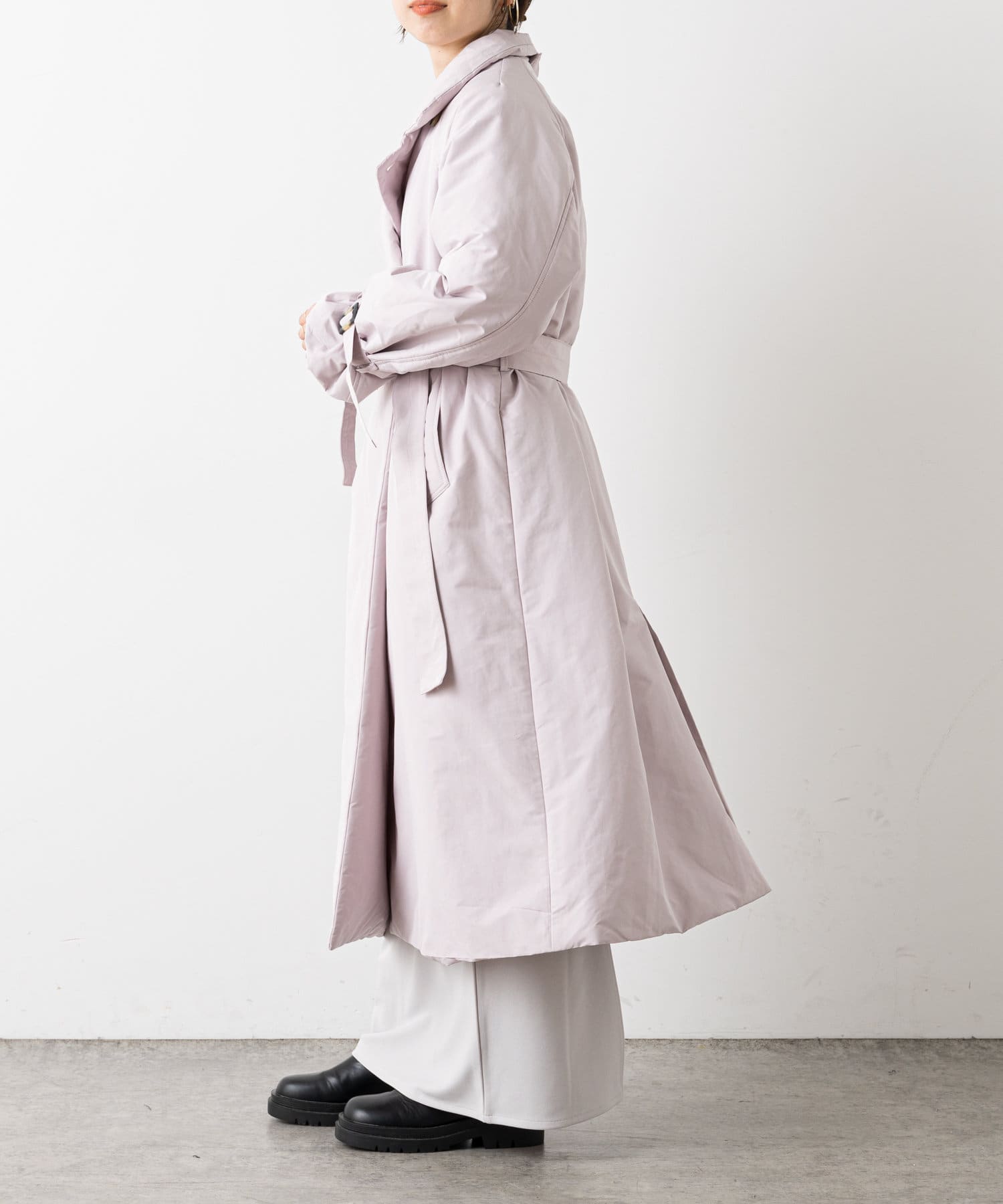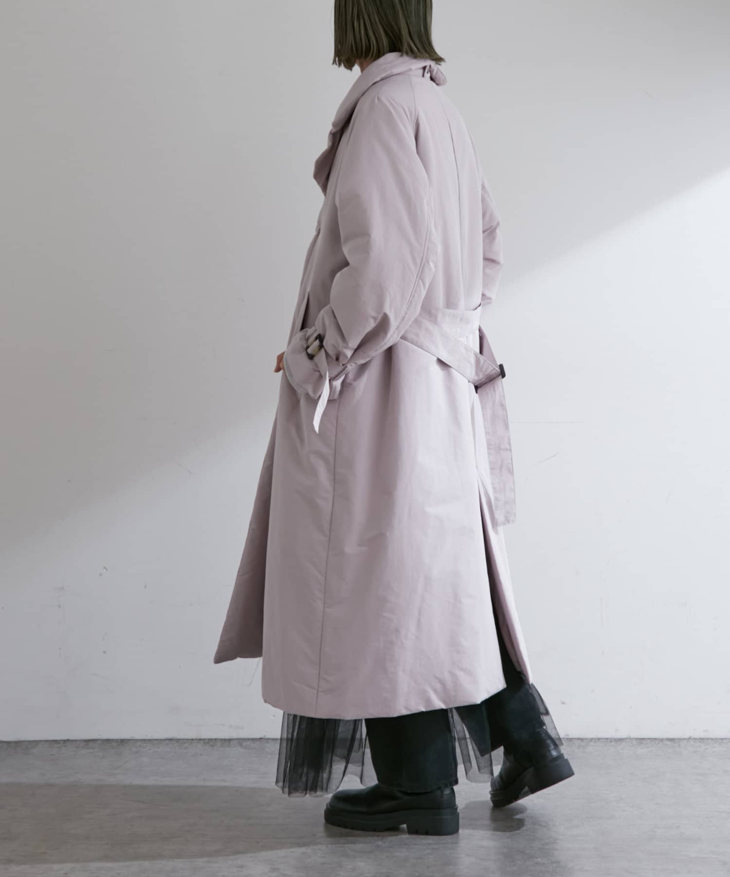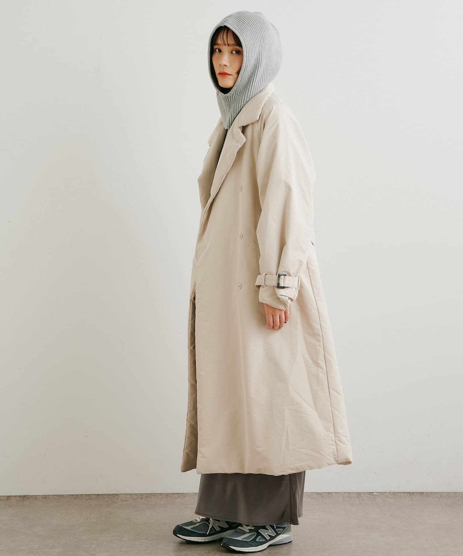 ・中綿を使用しているので保温性に優れ、しっかり暖かく冬まで着られるトレンチコートです。