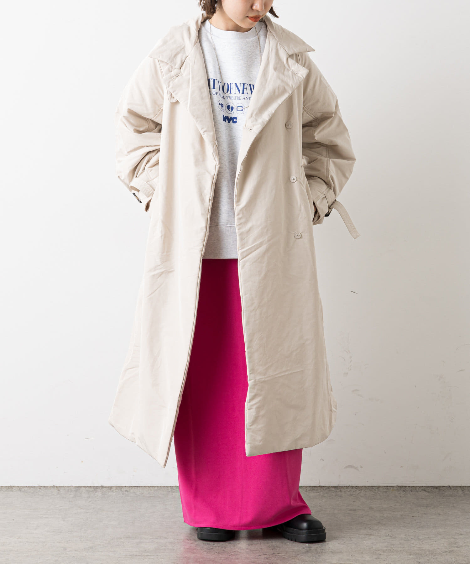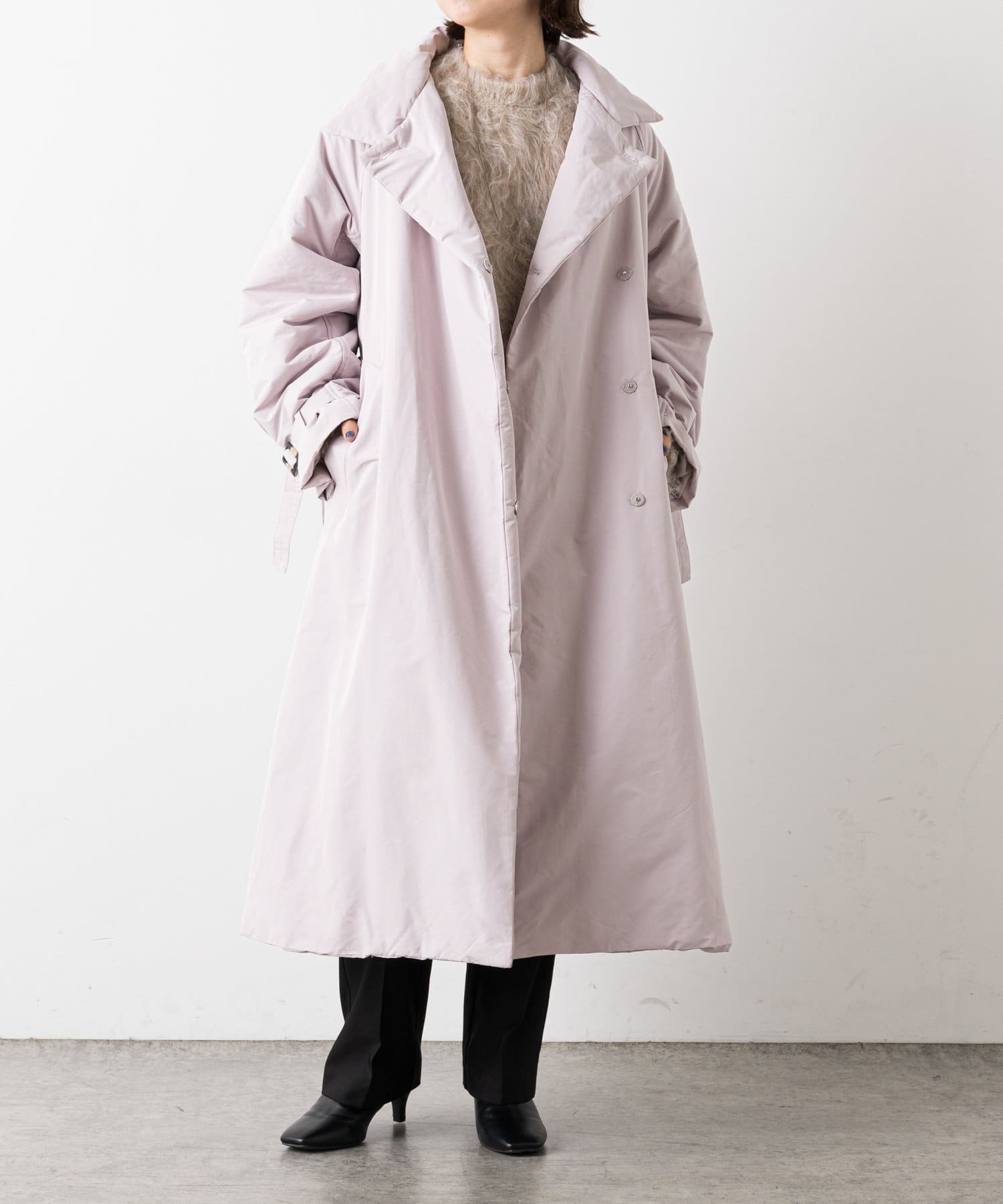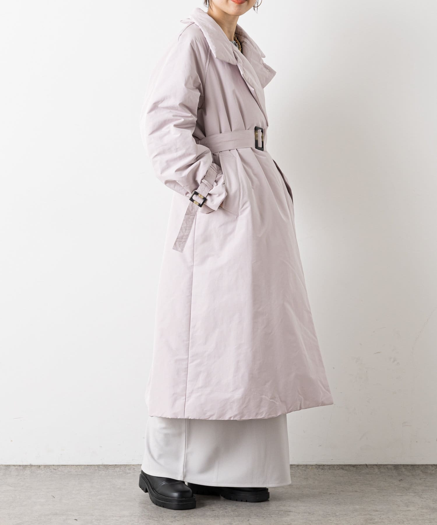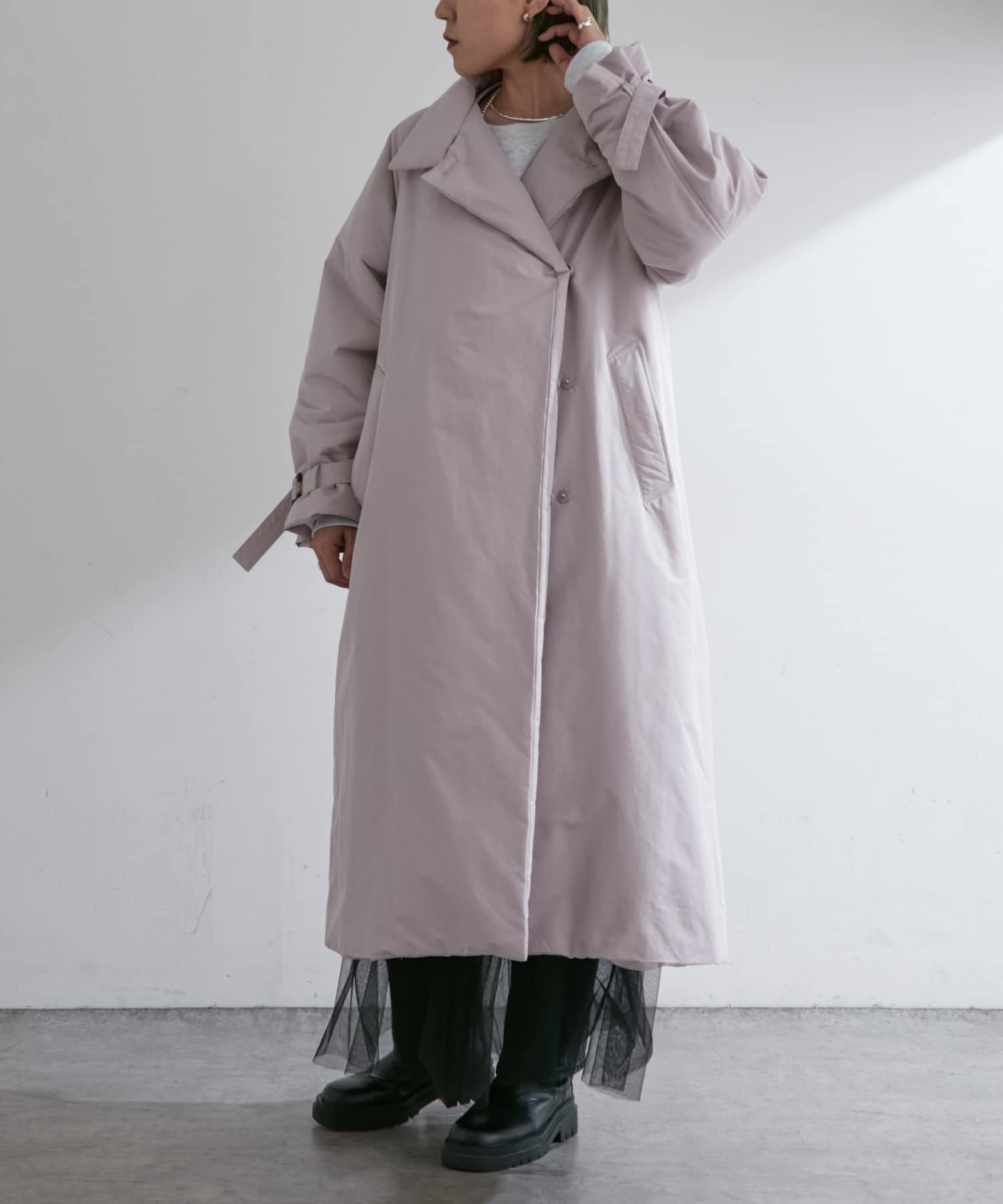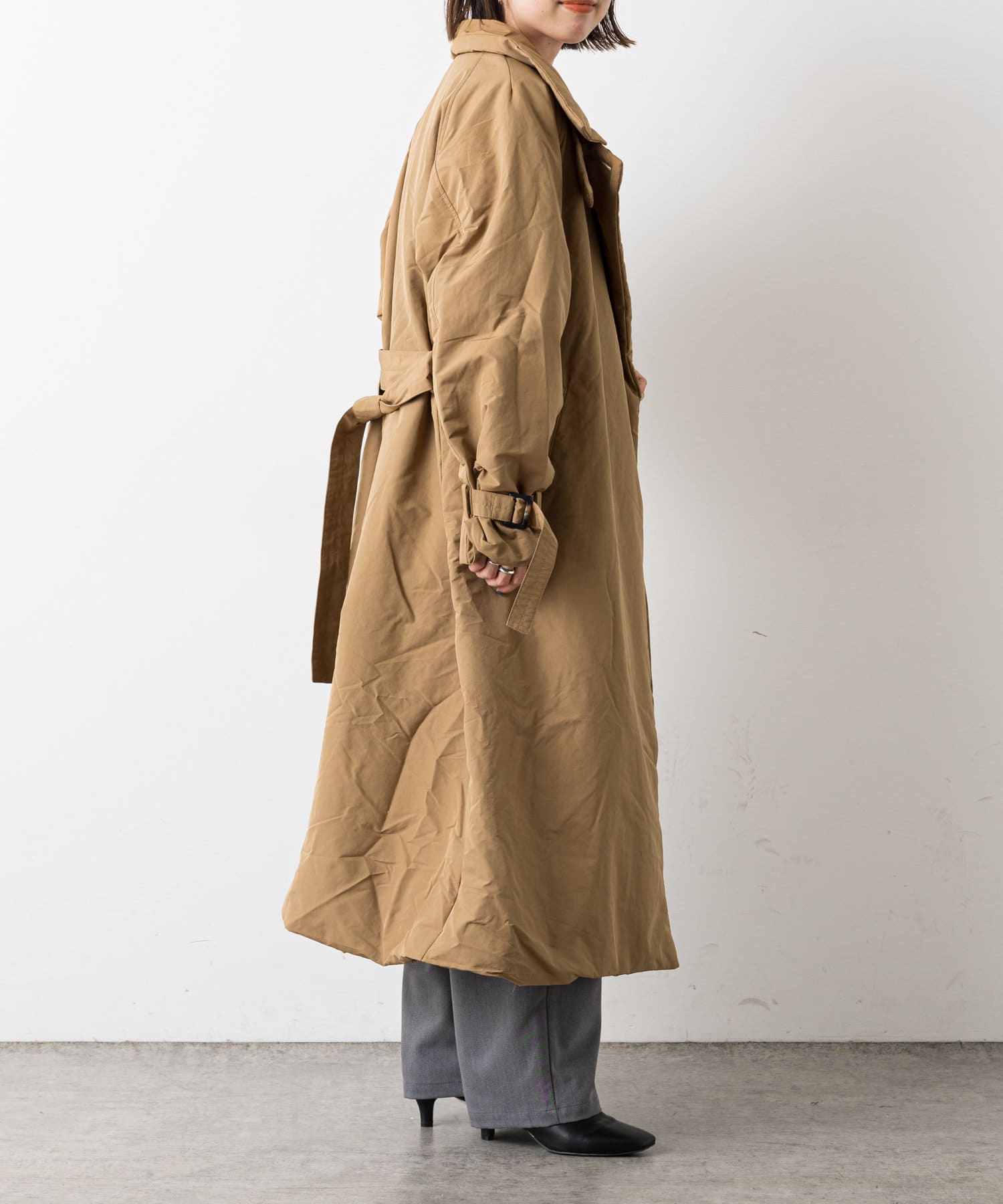 ・中綿を使用しているので保温性に優れ、しっかり暖かく冬まで着られるトレンチコートです。